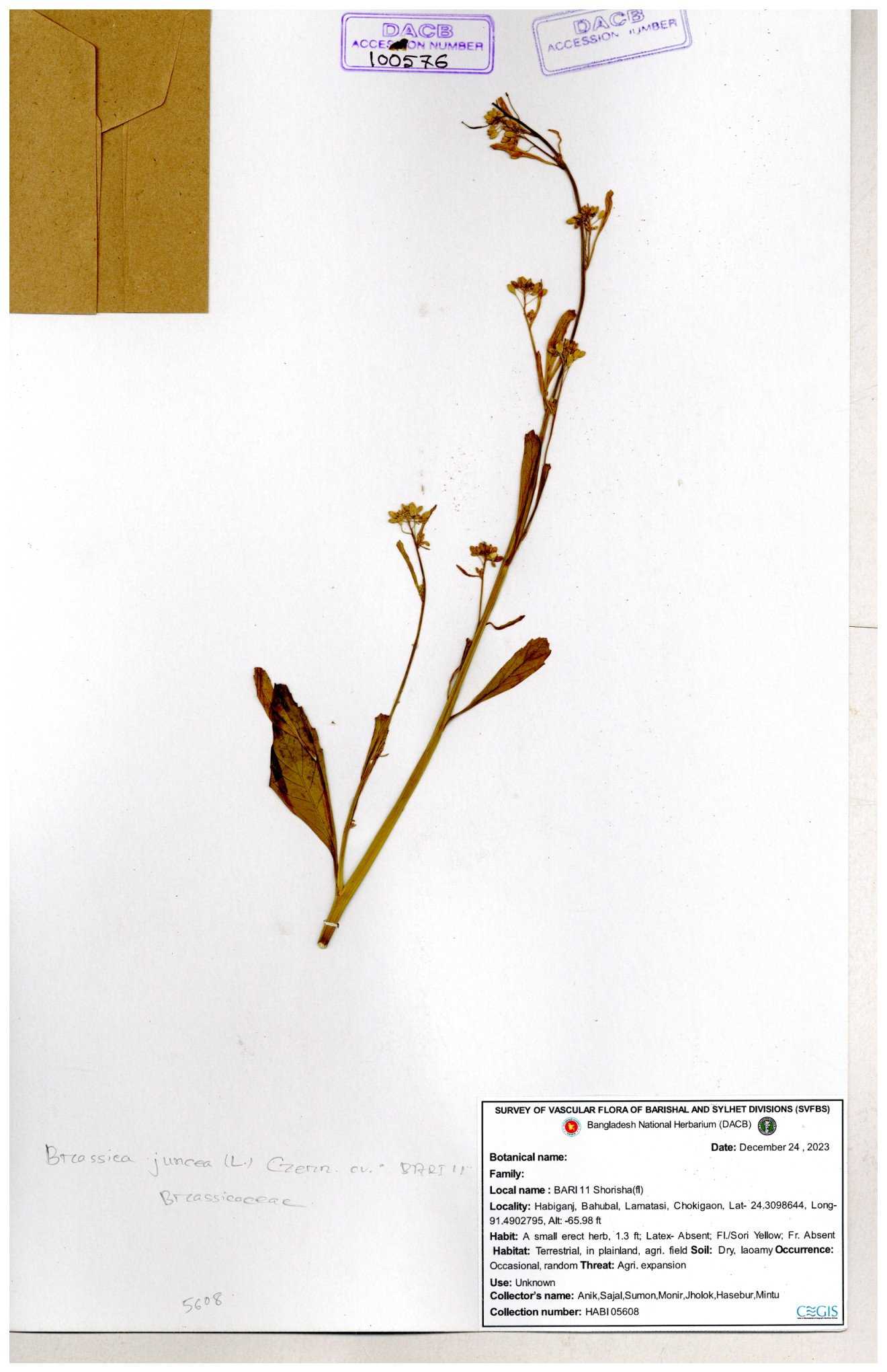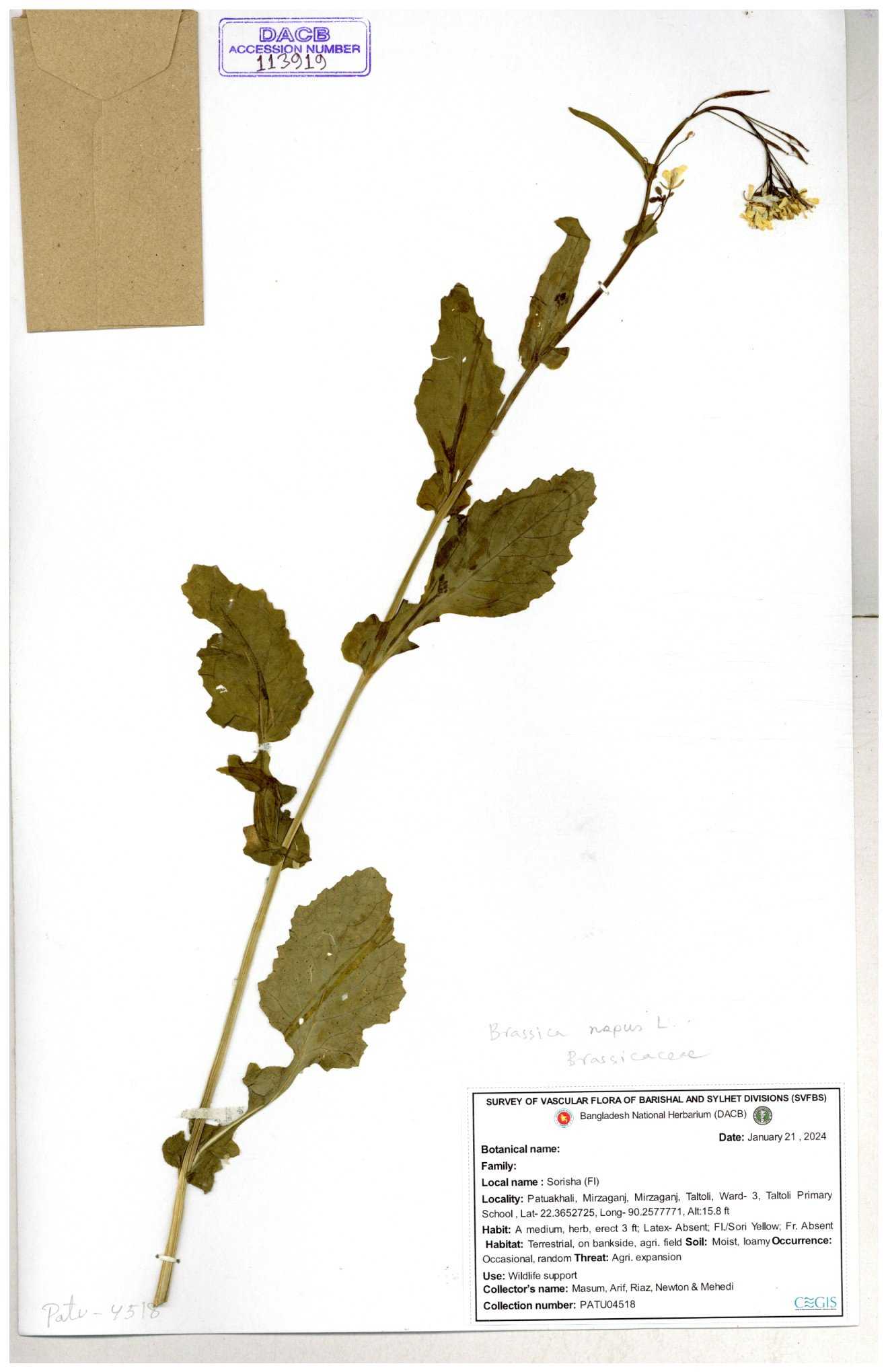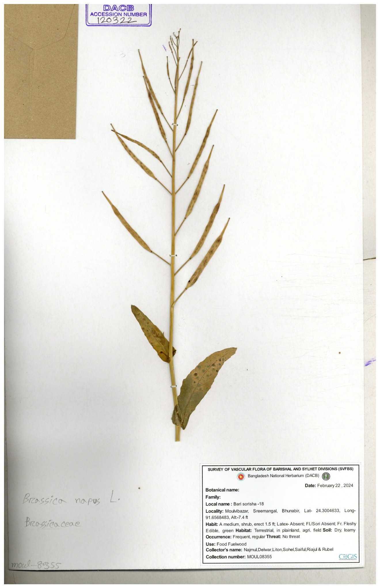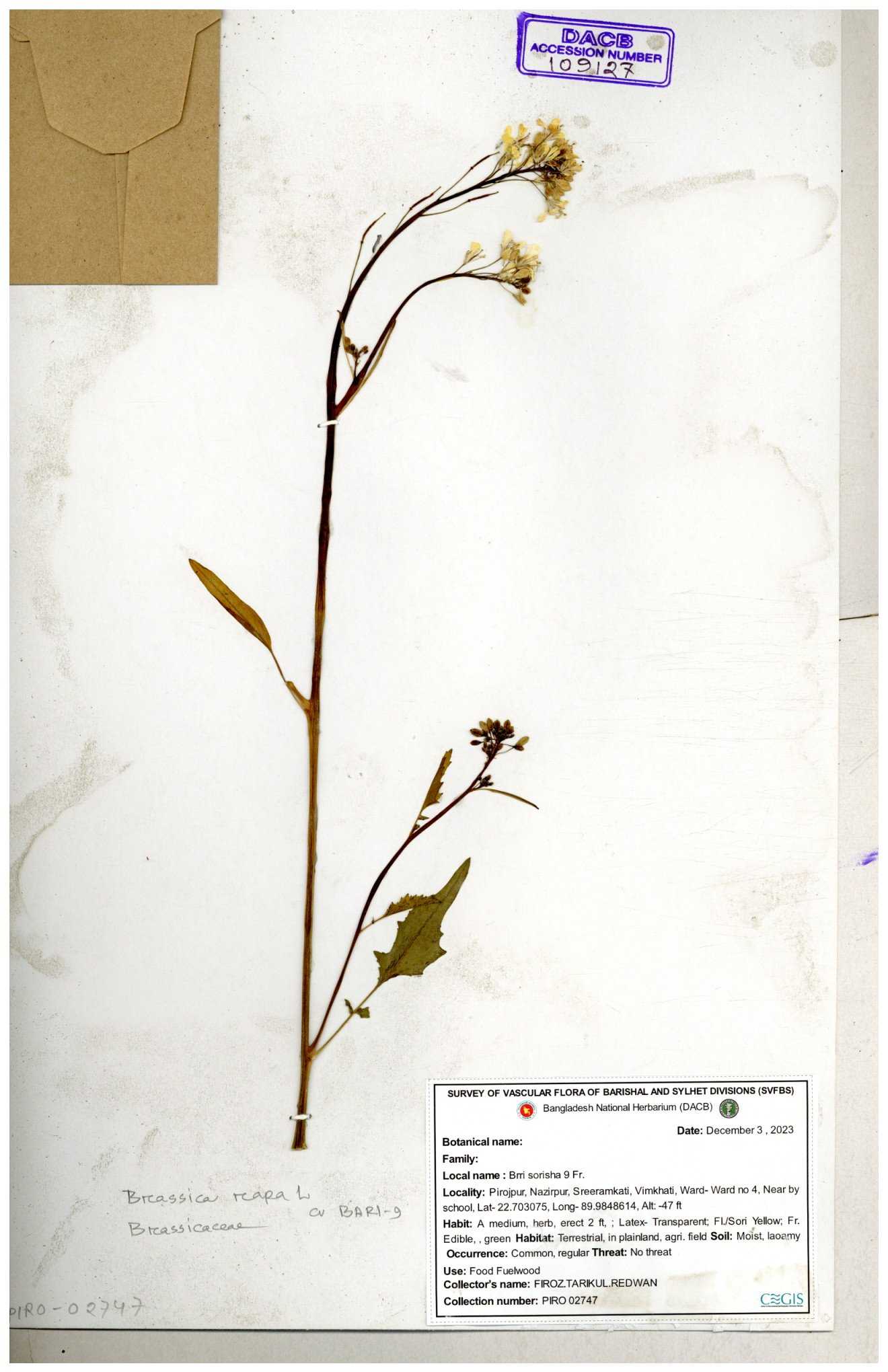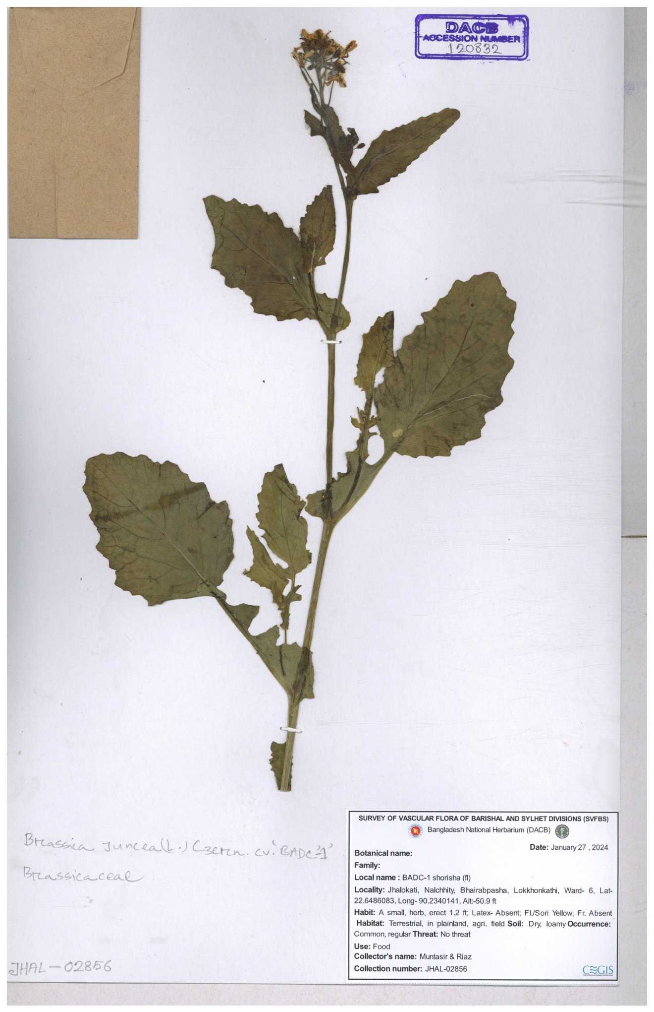 | 8360 | Brassicaceae | Brassica sp. | A.M. Huq et al | H. 8183 04-02-1987 |