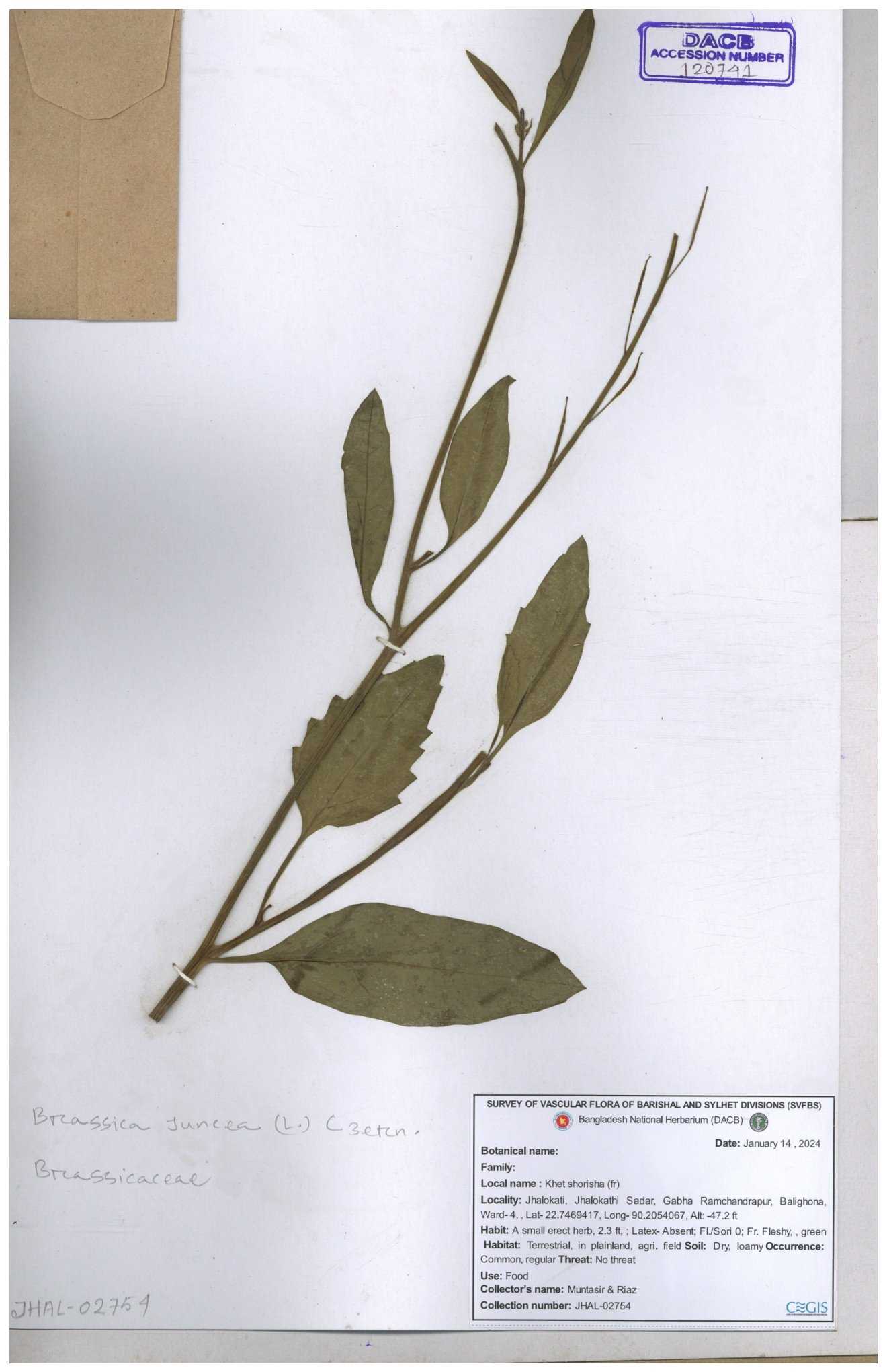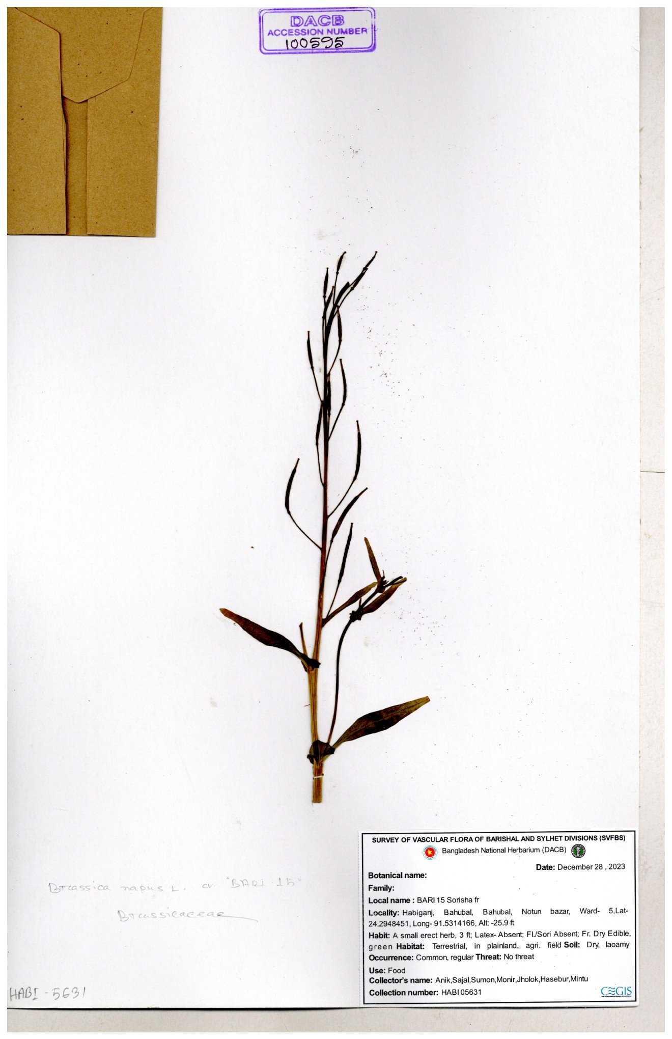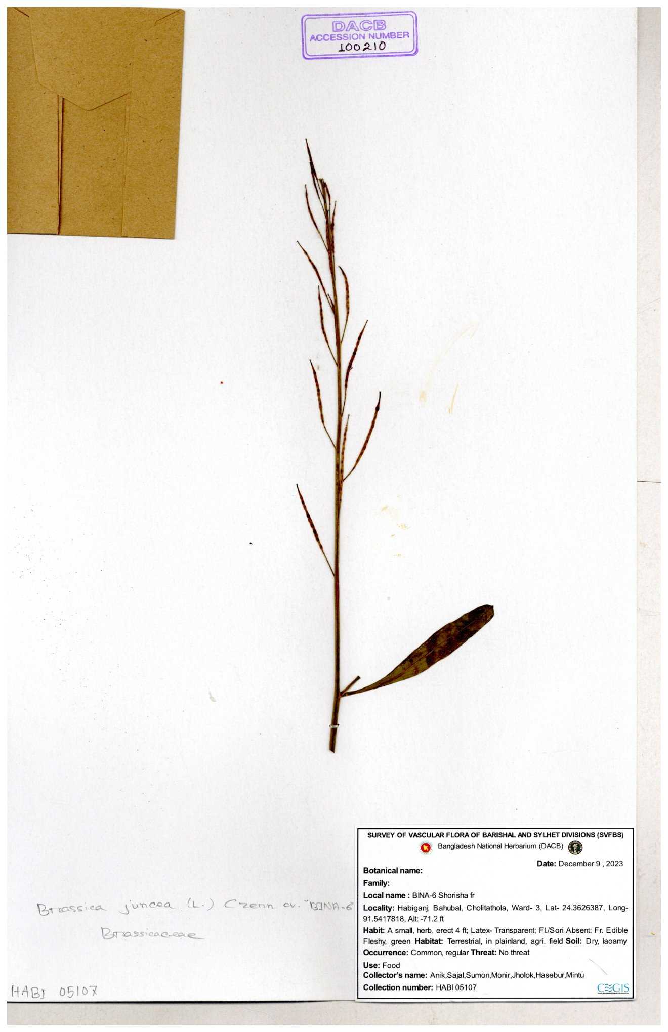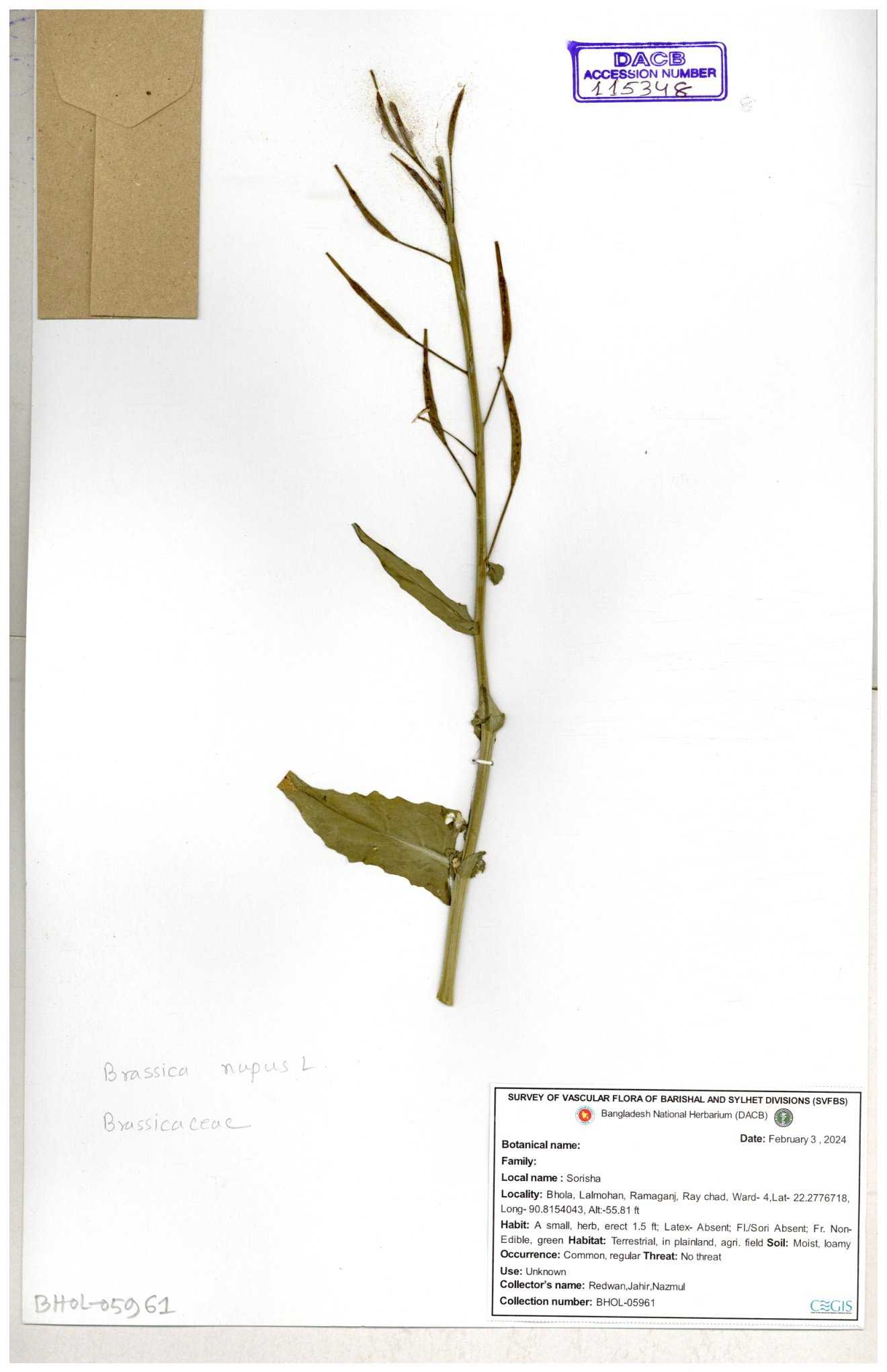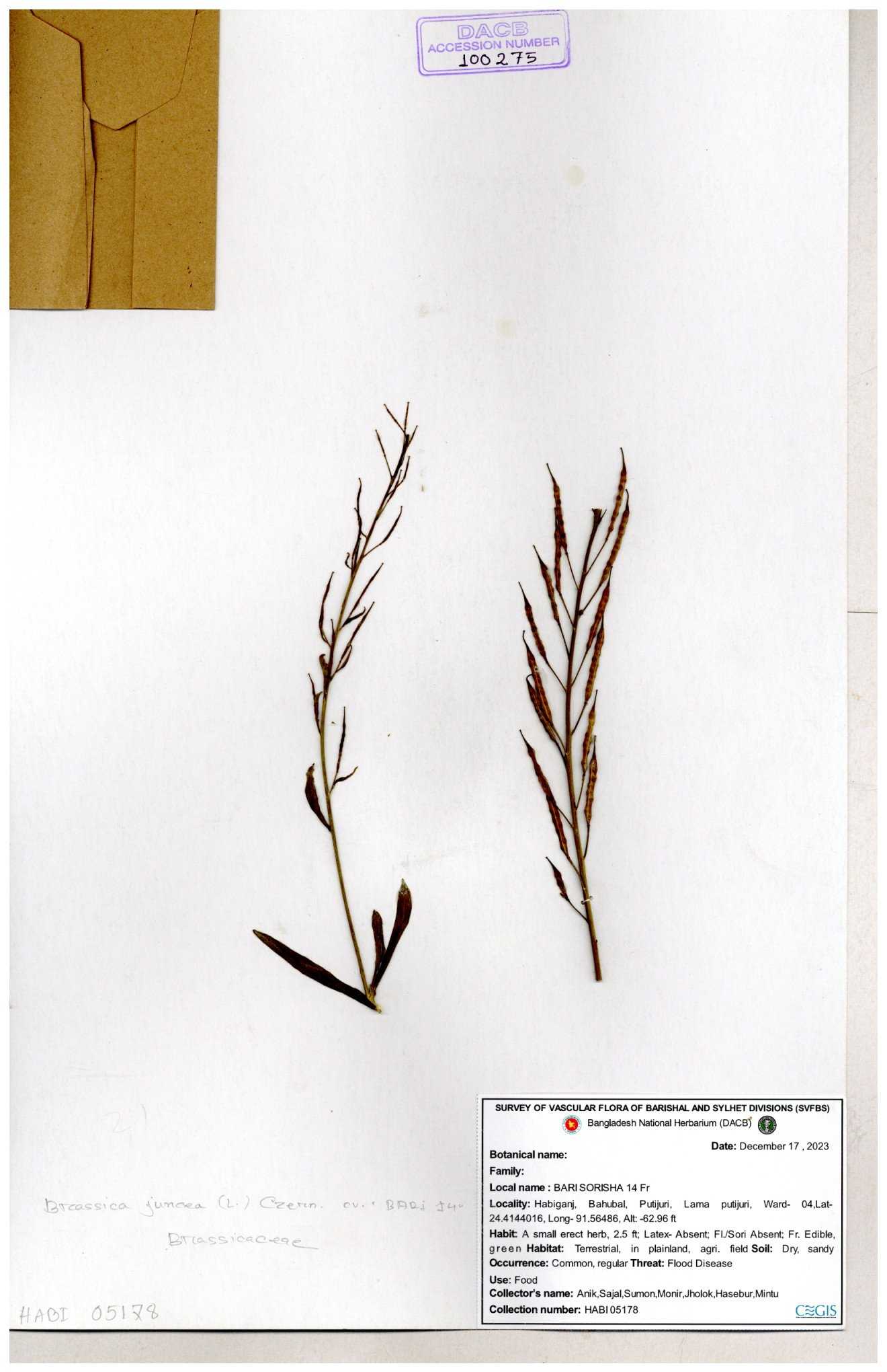 | 8360 | Brassicaceae | Brassica sp. | A.M. Huq et al | H. 8183 04-02-1987 |