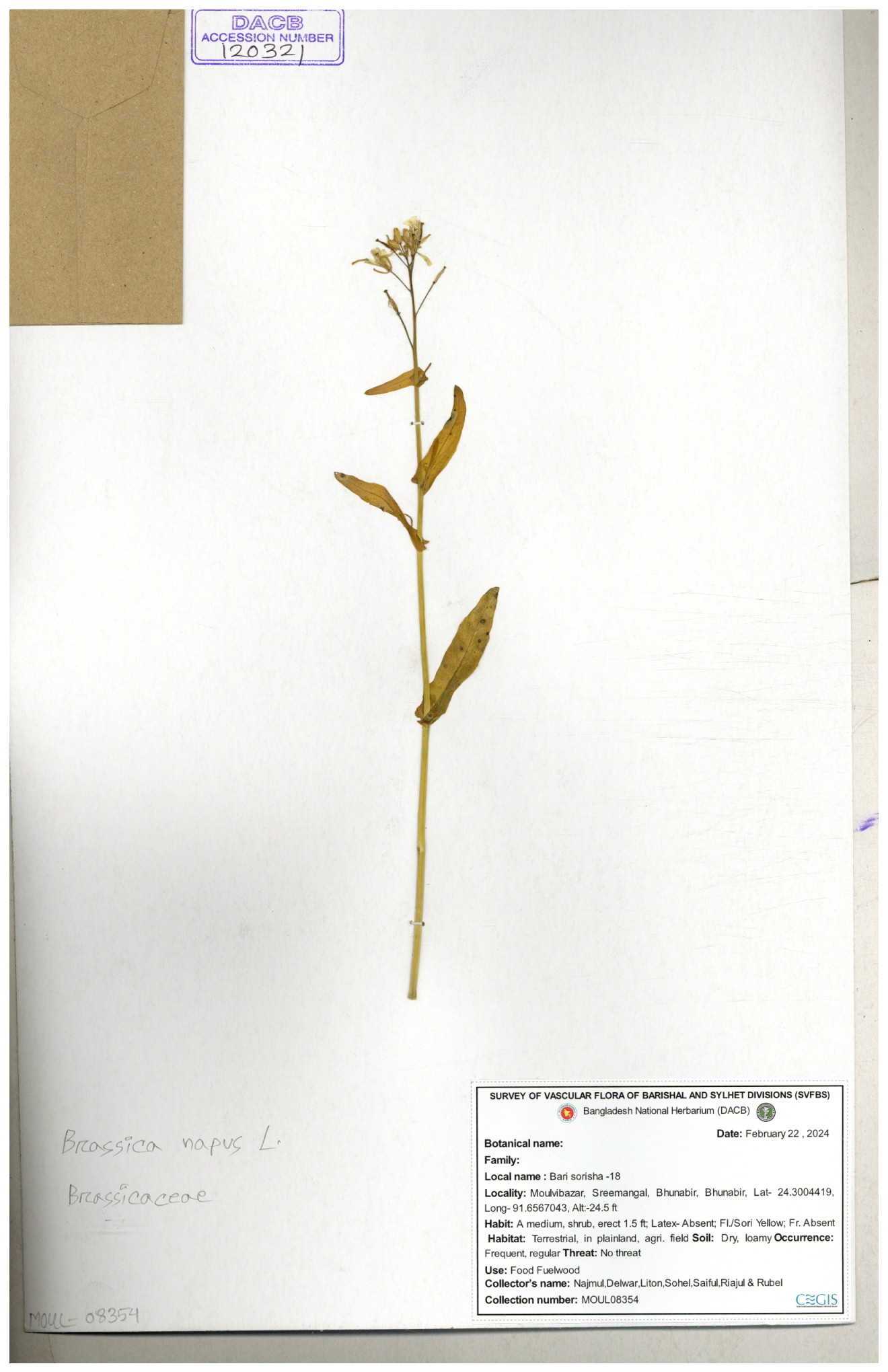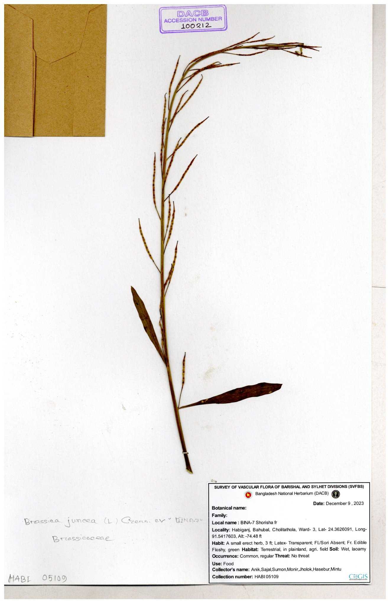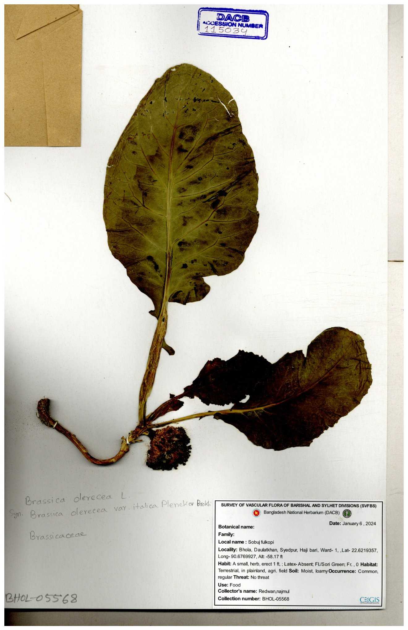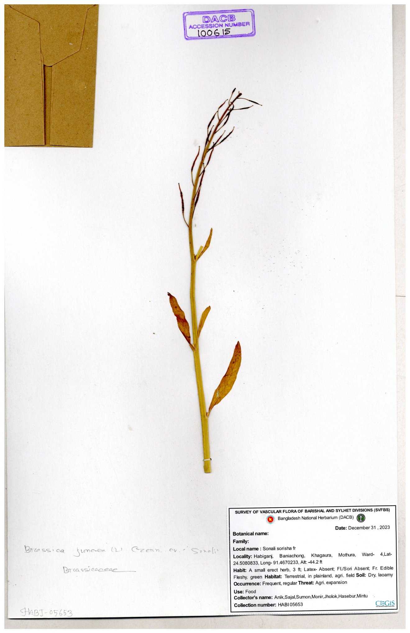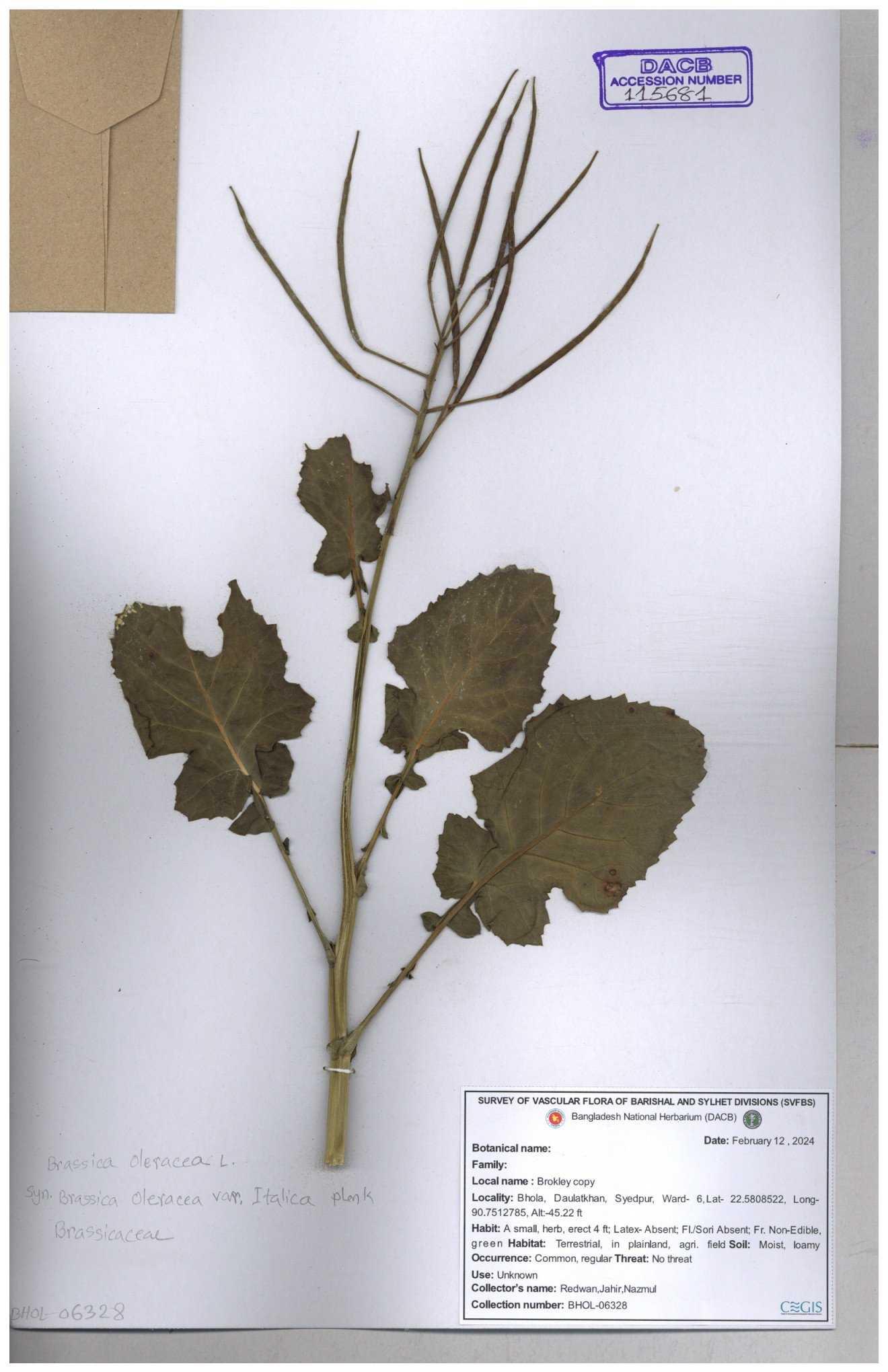 | 8360 | Brassicaceae | Brassica sp. | A.M. Huq et al | H. 8183 04-02-1987 |