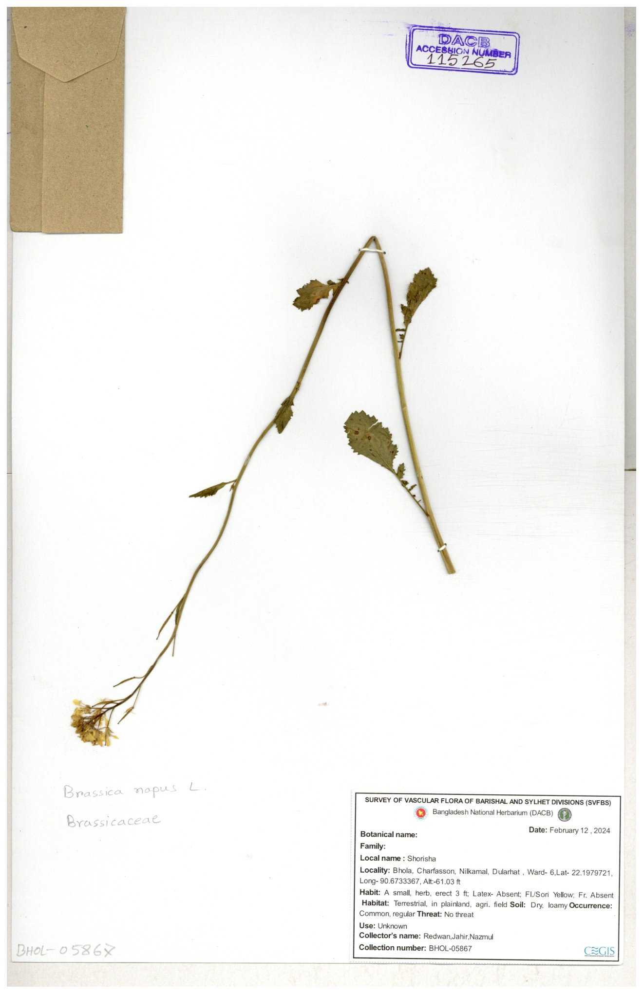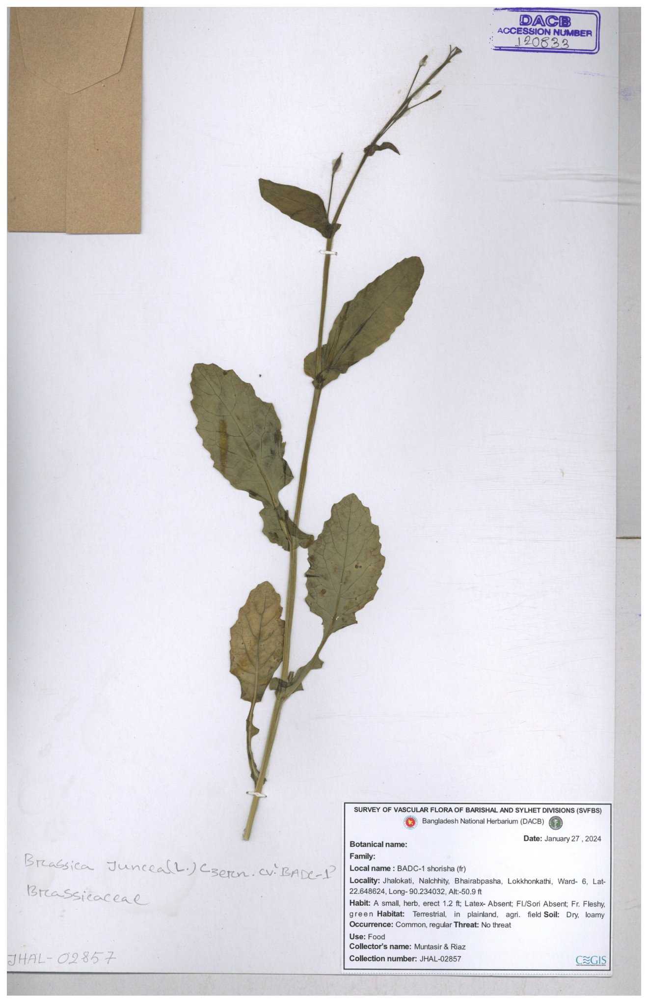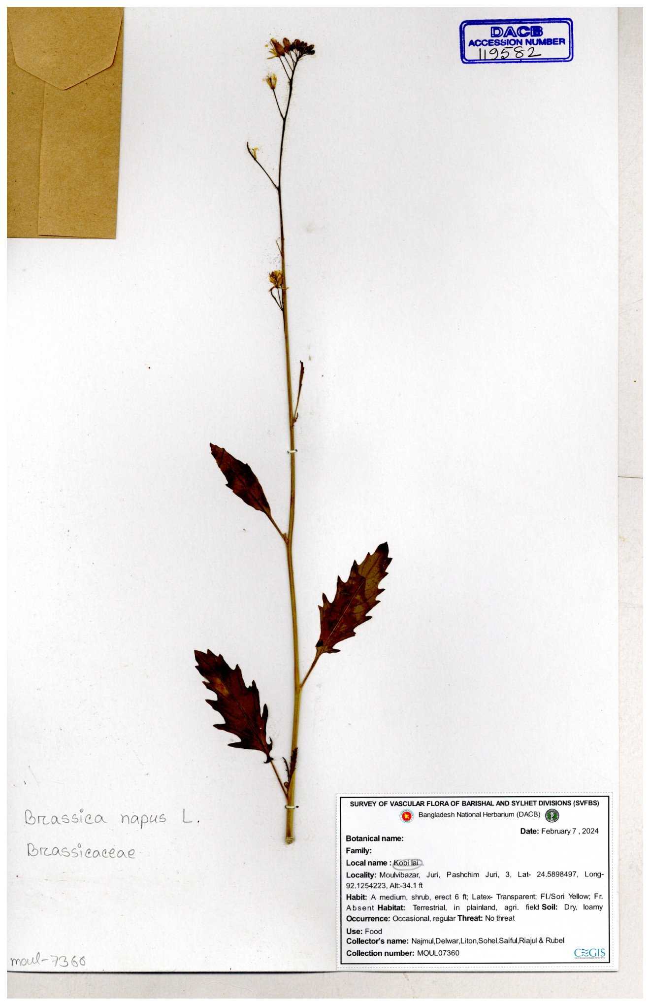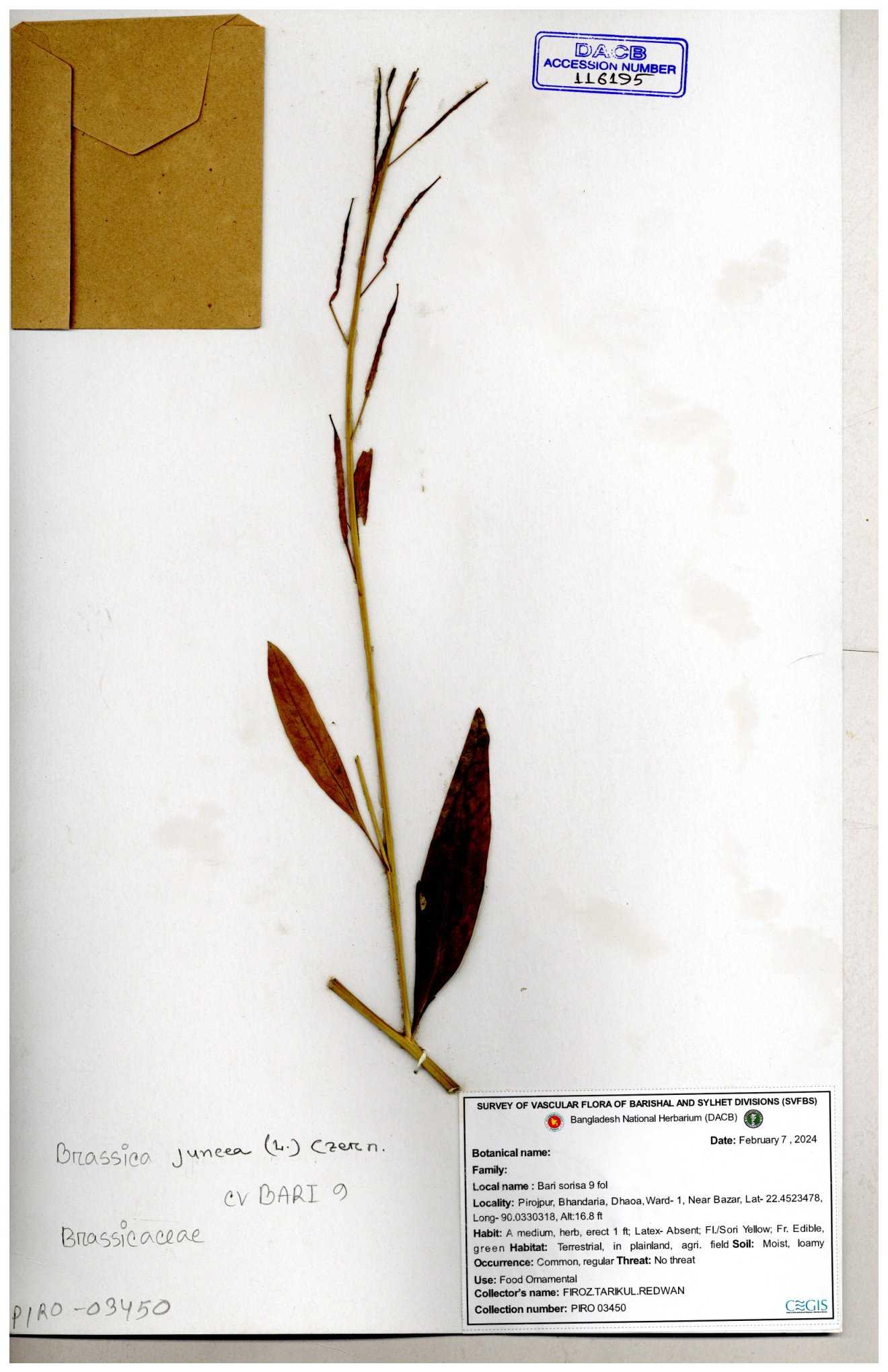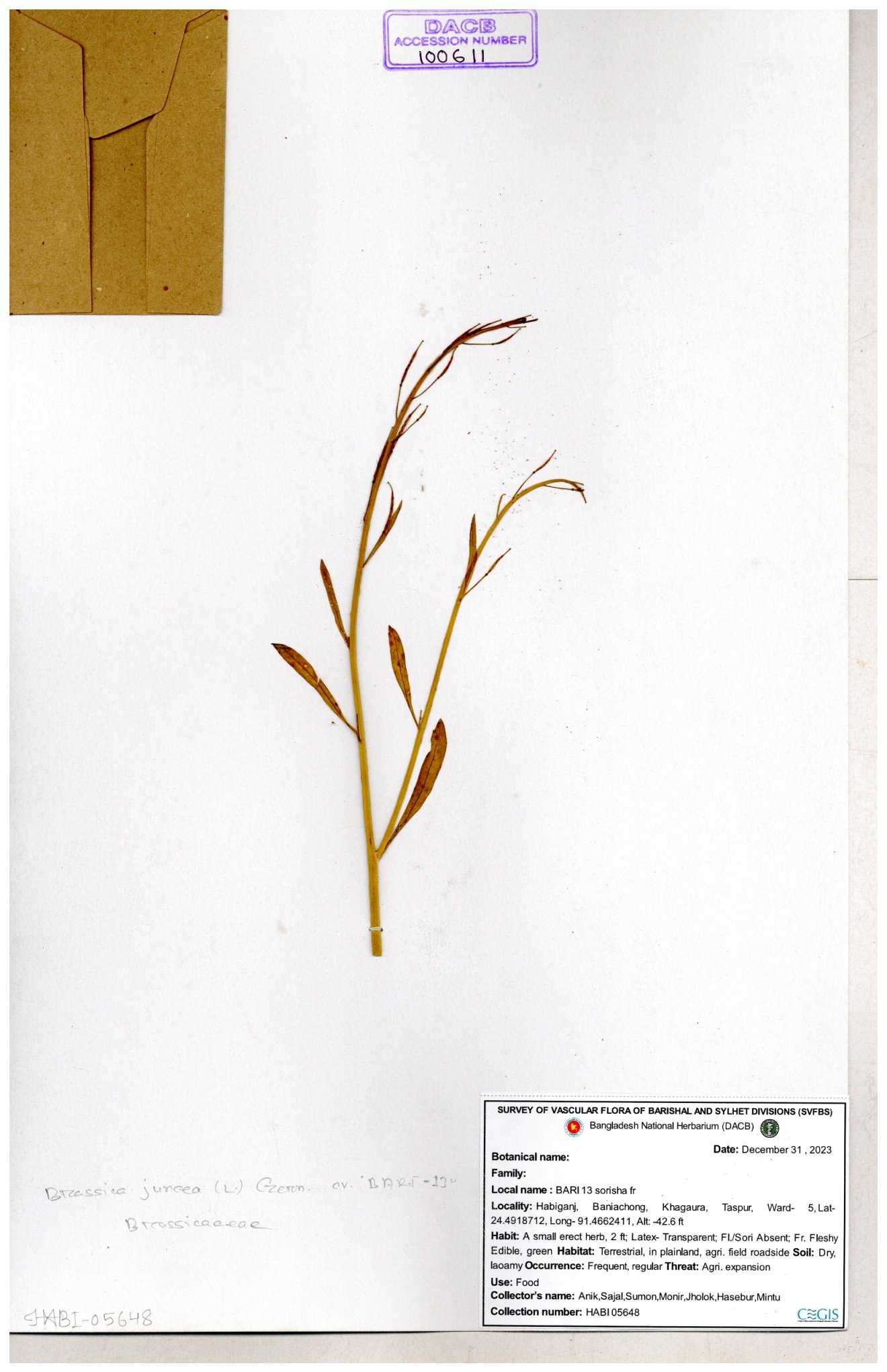 | 8360 | Brassicaceae | Brassica sp. | A.M. Huq et al | H. 8183 04-02-1987 |