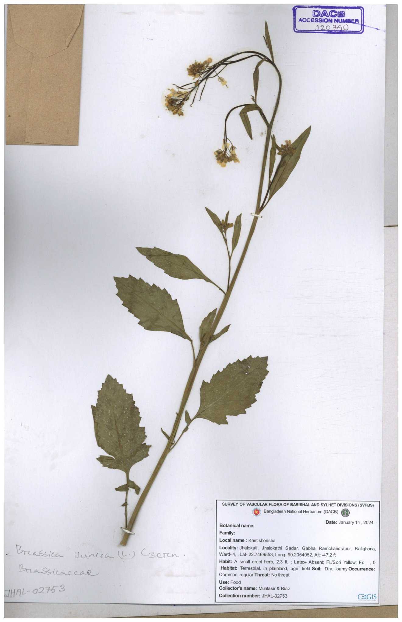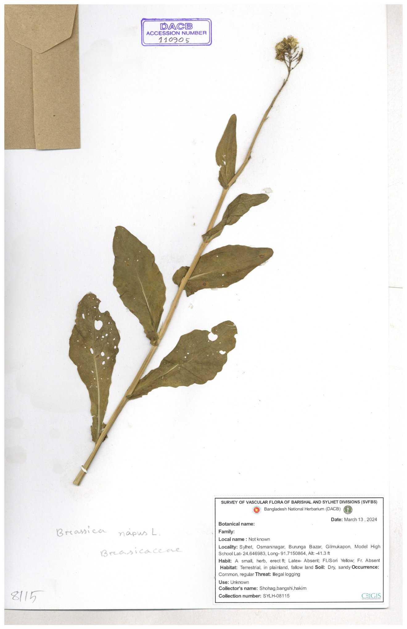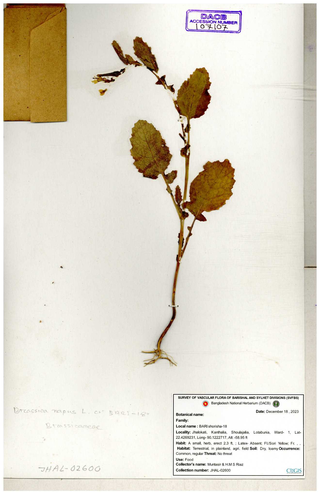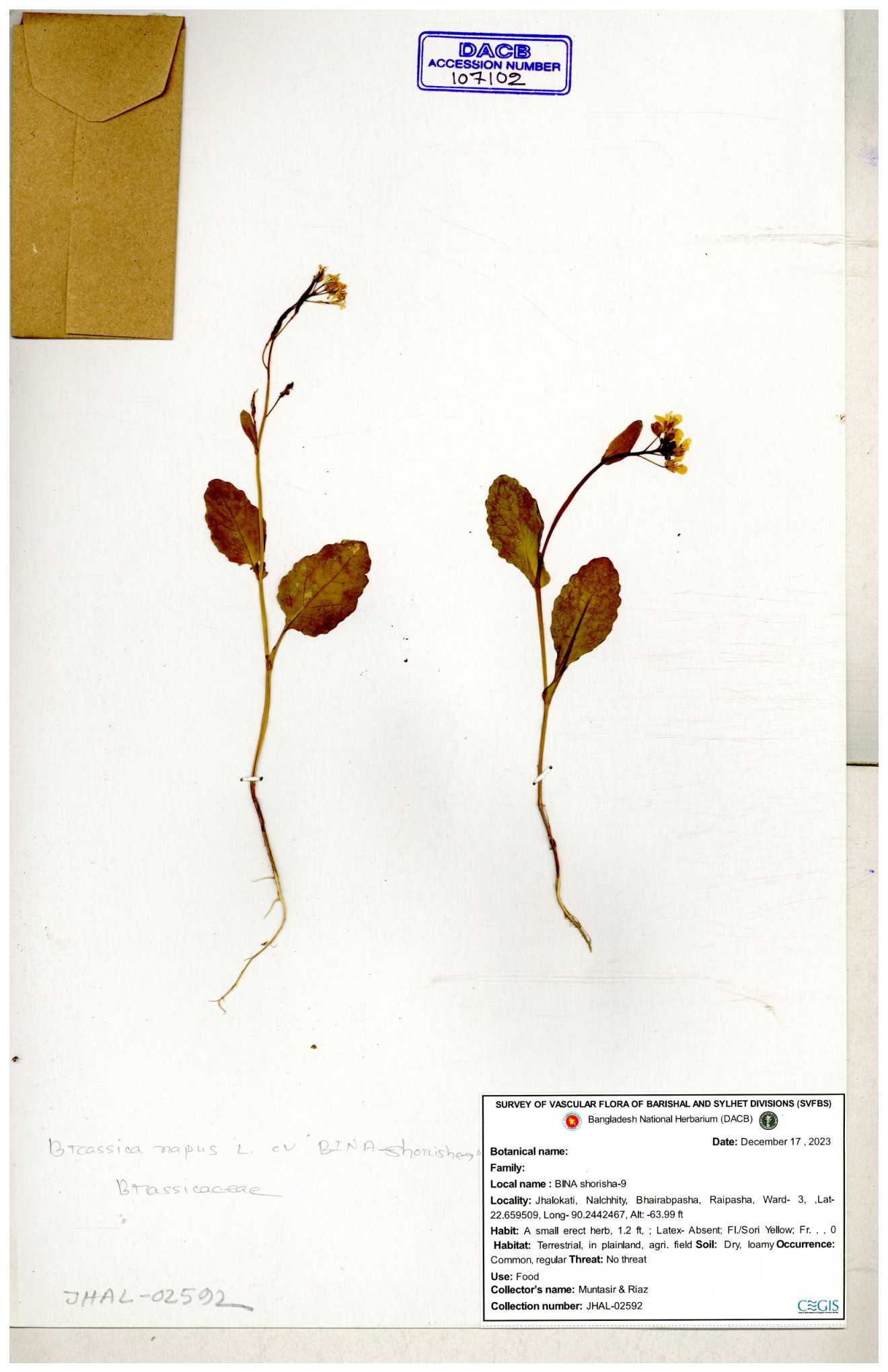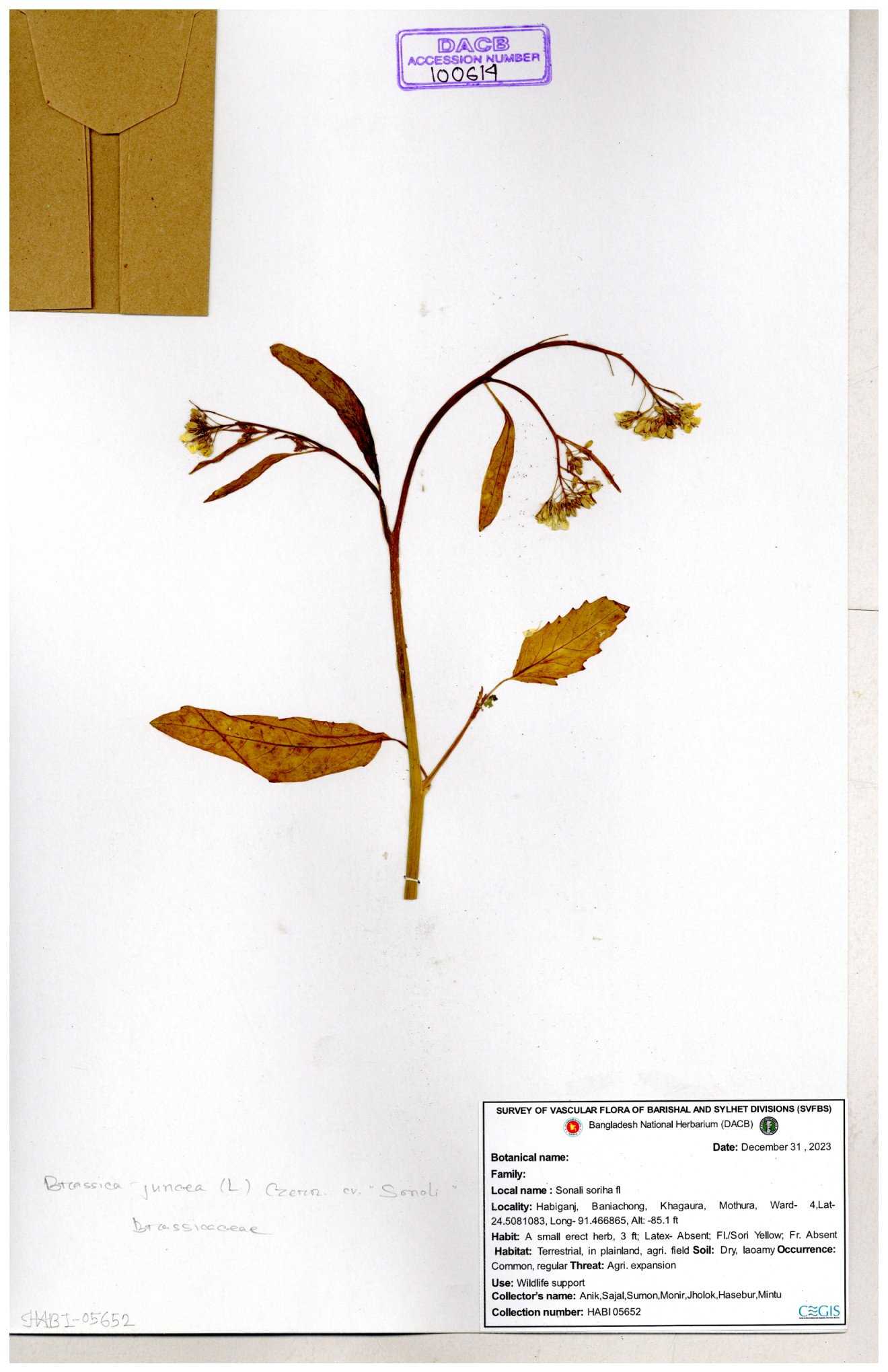 | 8360 | Brassicaceae | Brassica sp. | A.M. Huq et al | H. 8183 04-02-1987 |