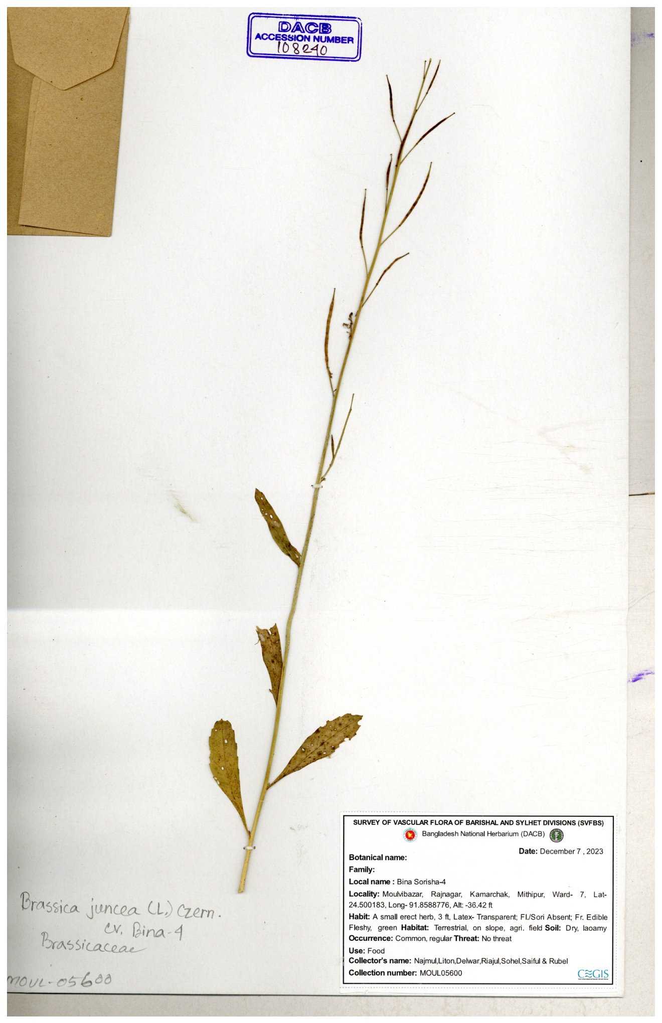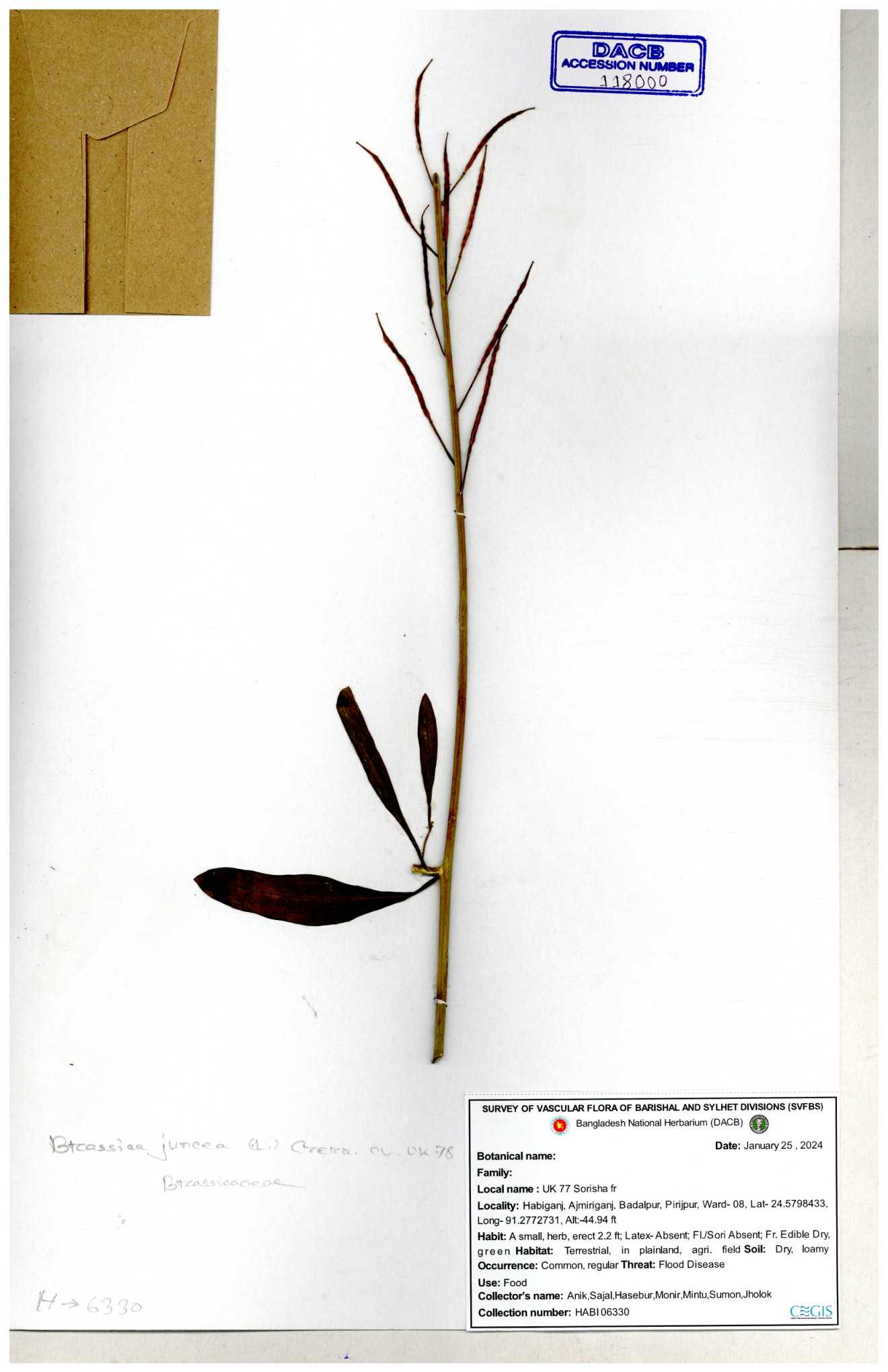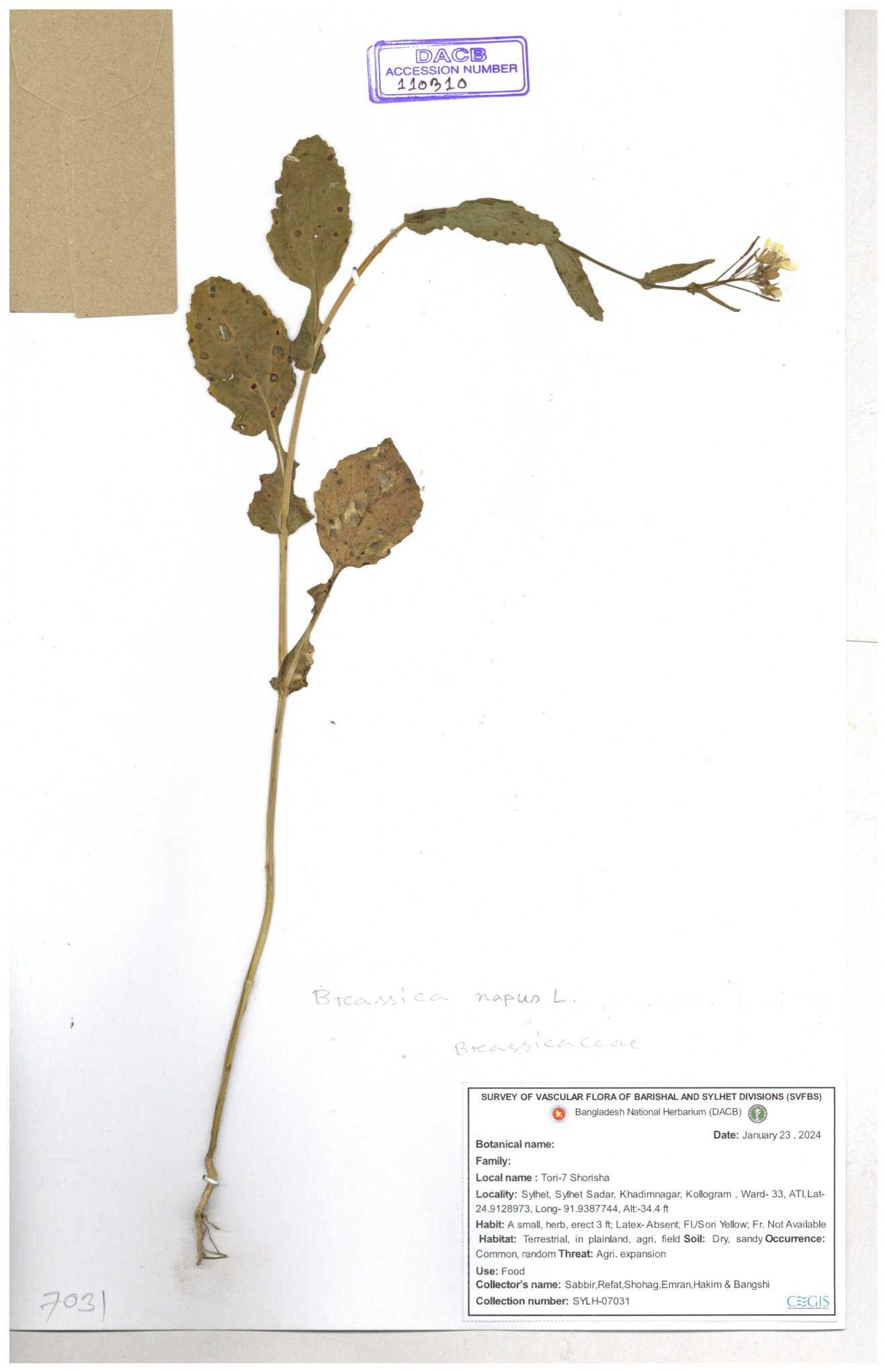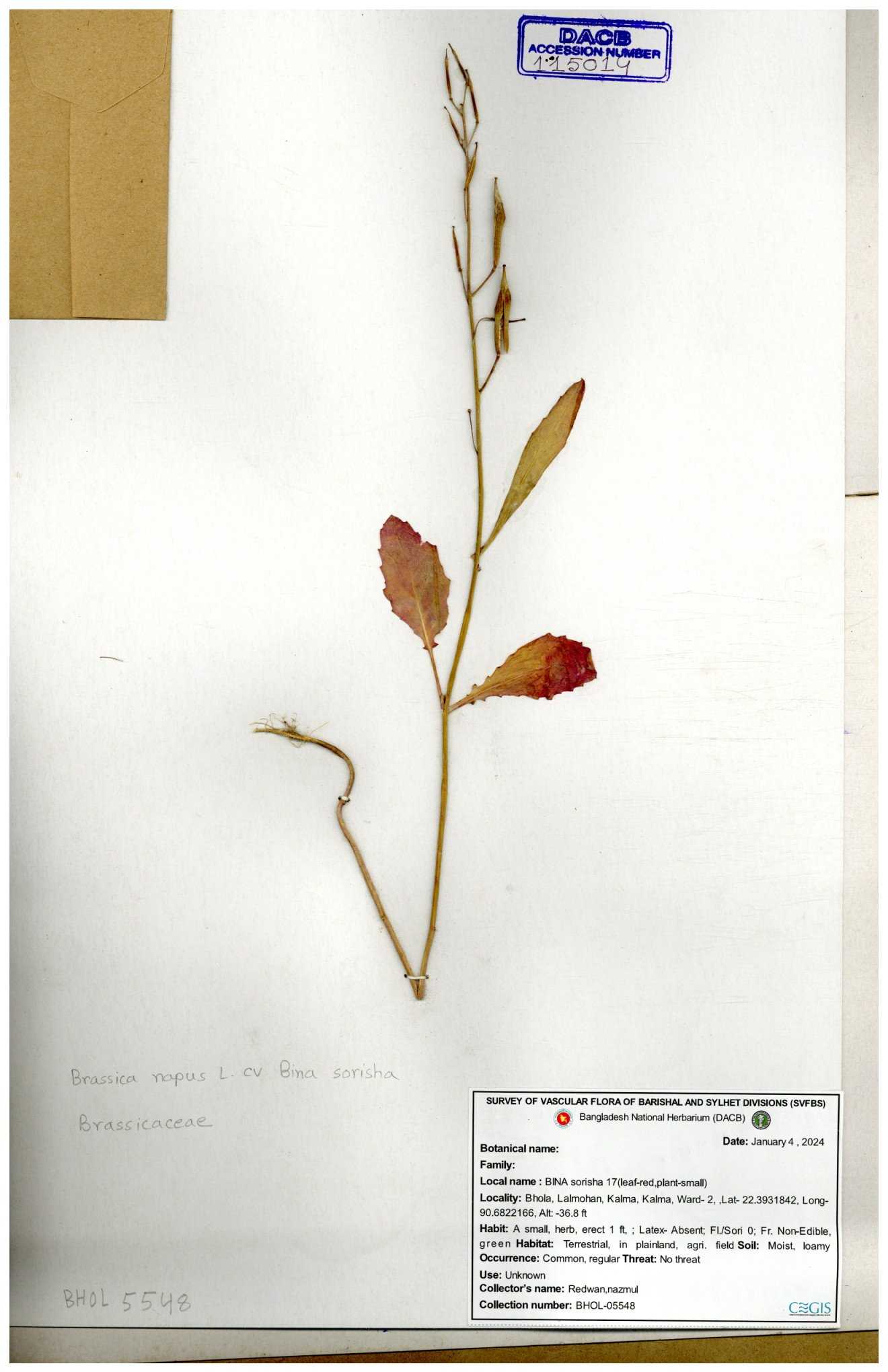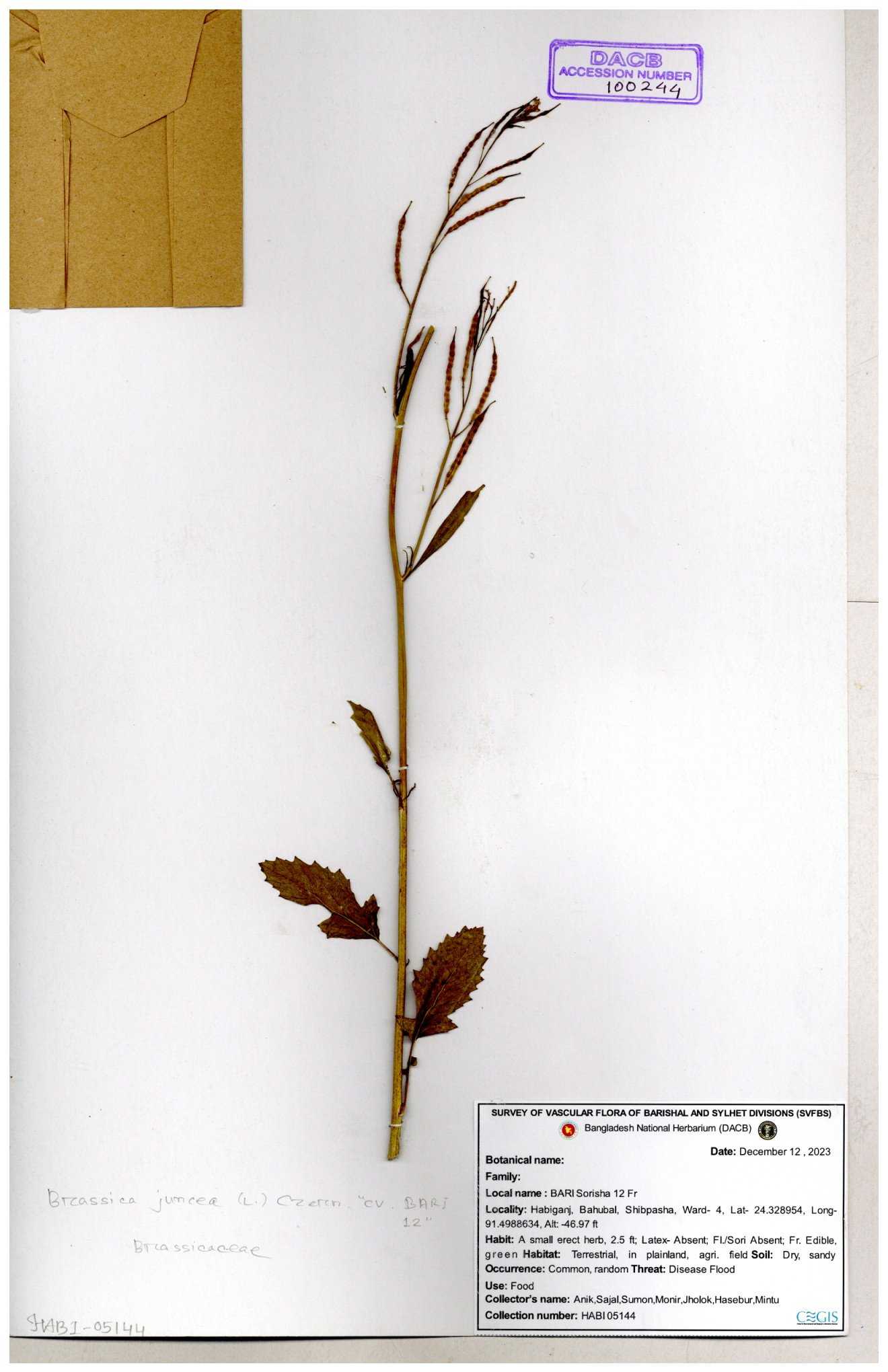 | 8360 | Brassicaceae | Brassica sp. | A.M. Huq et al | H. 8183 04-02-1987 |