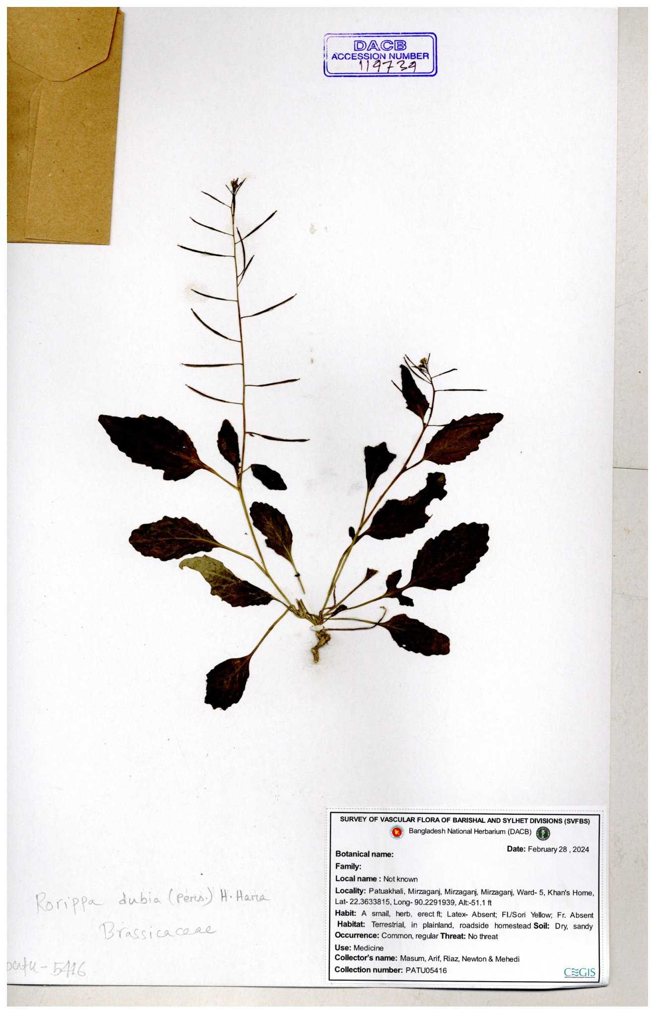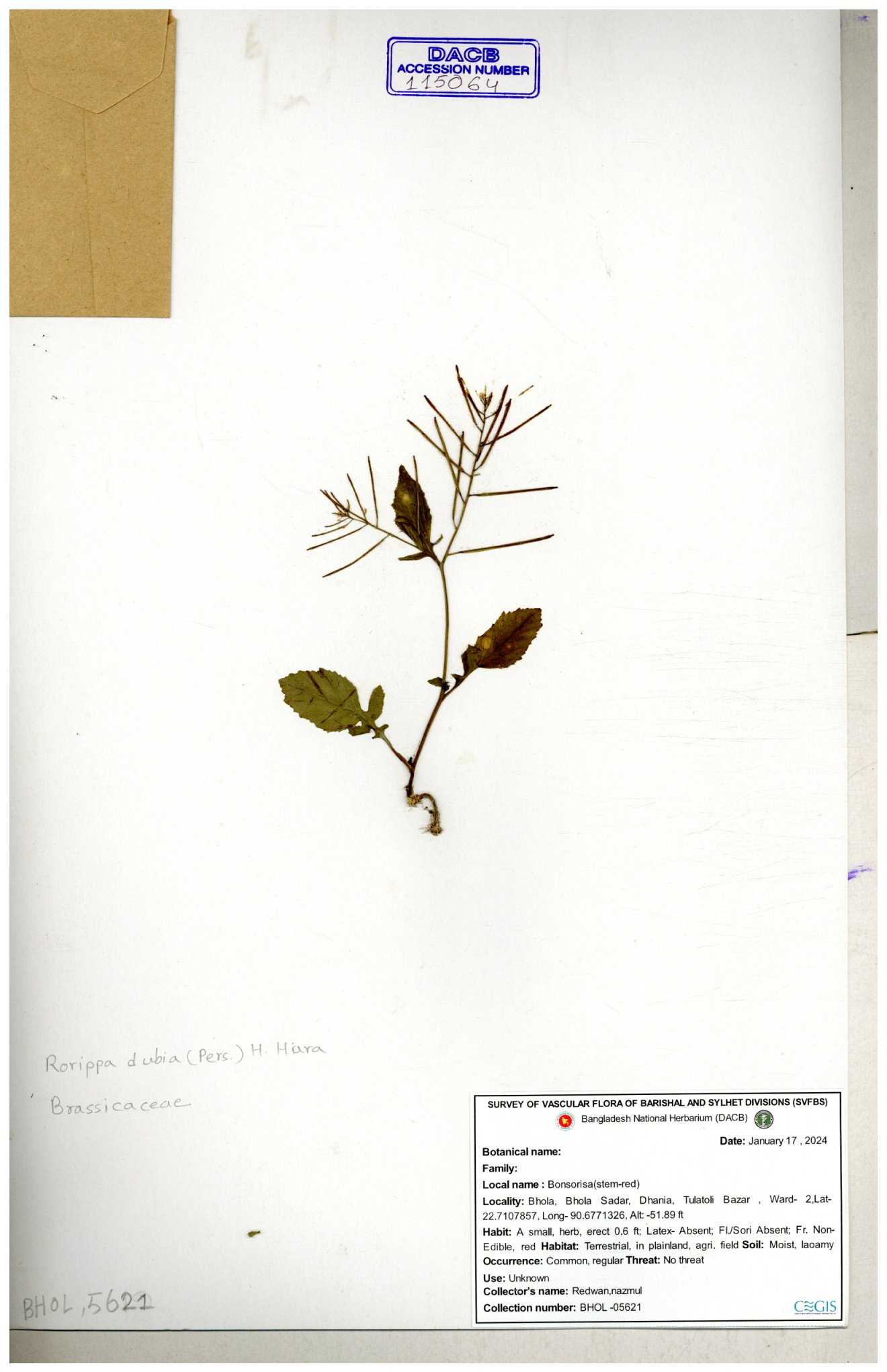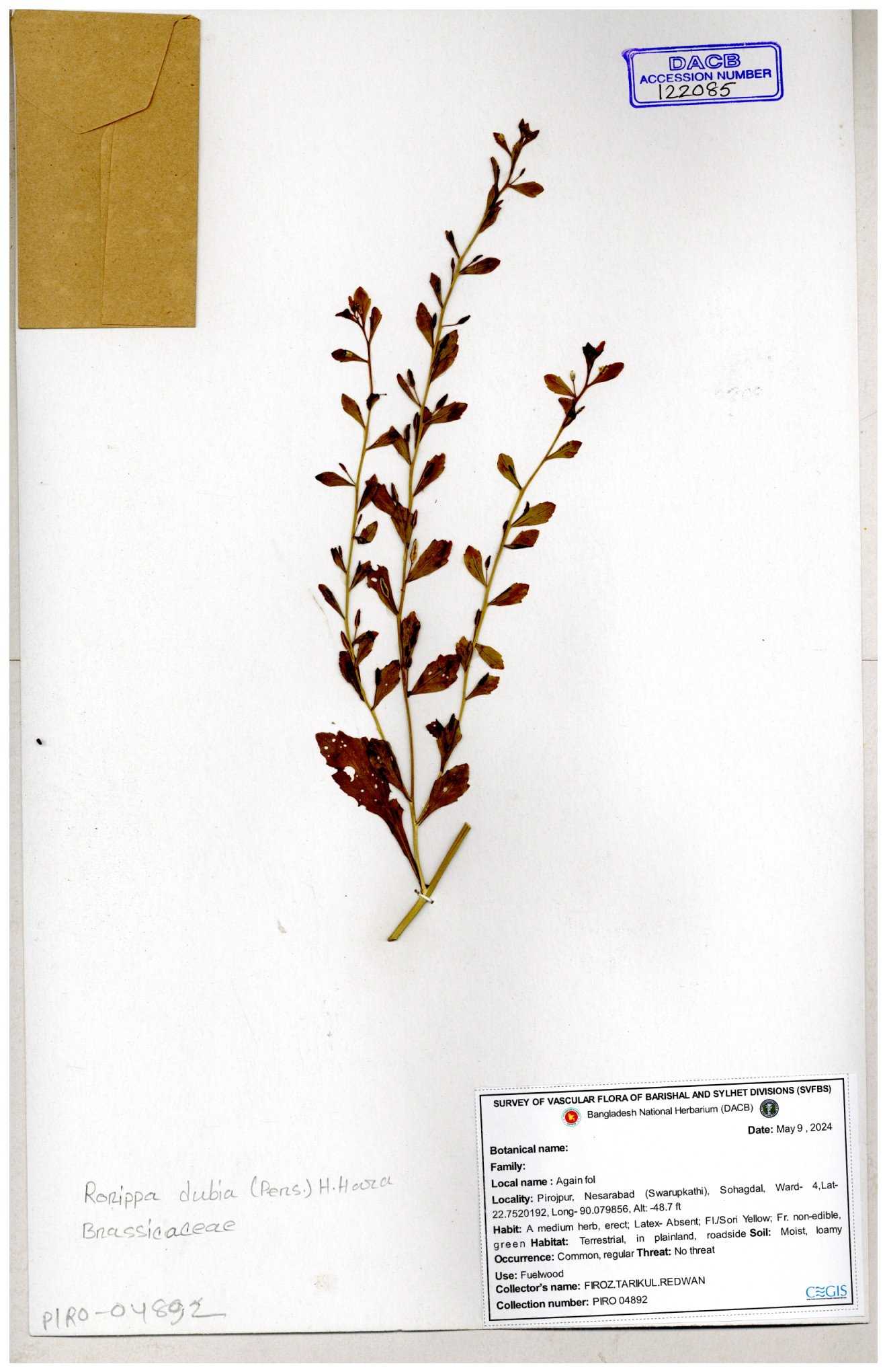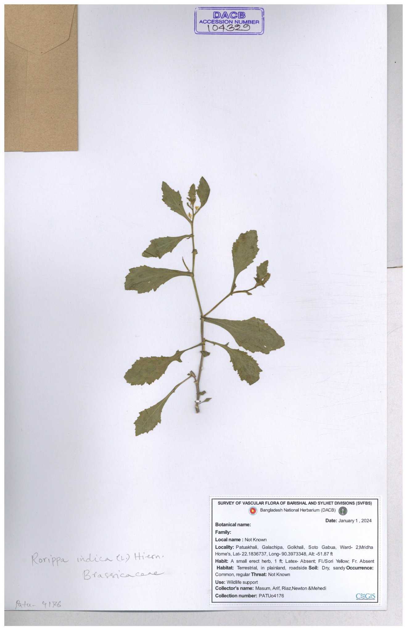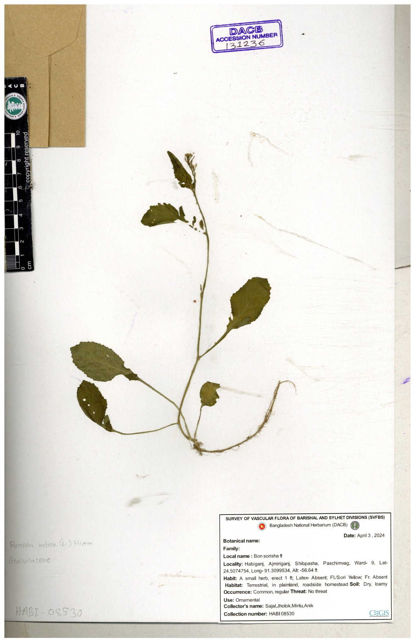 | 130598 | Brassicaceae | Rorippa dubia | Anik, Jholok, Mintu, Sajal | 30-11--0001 |