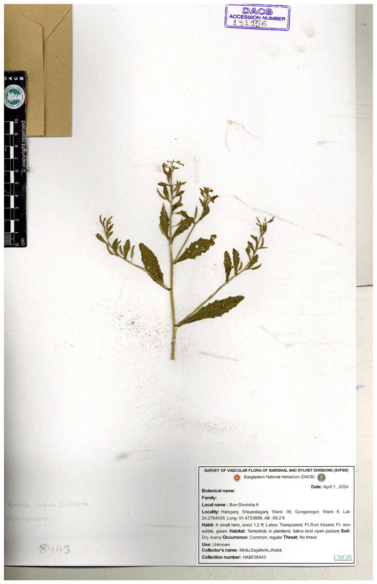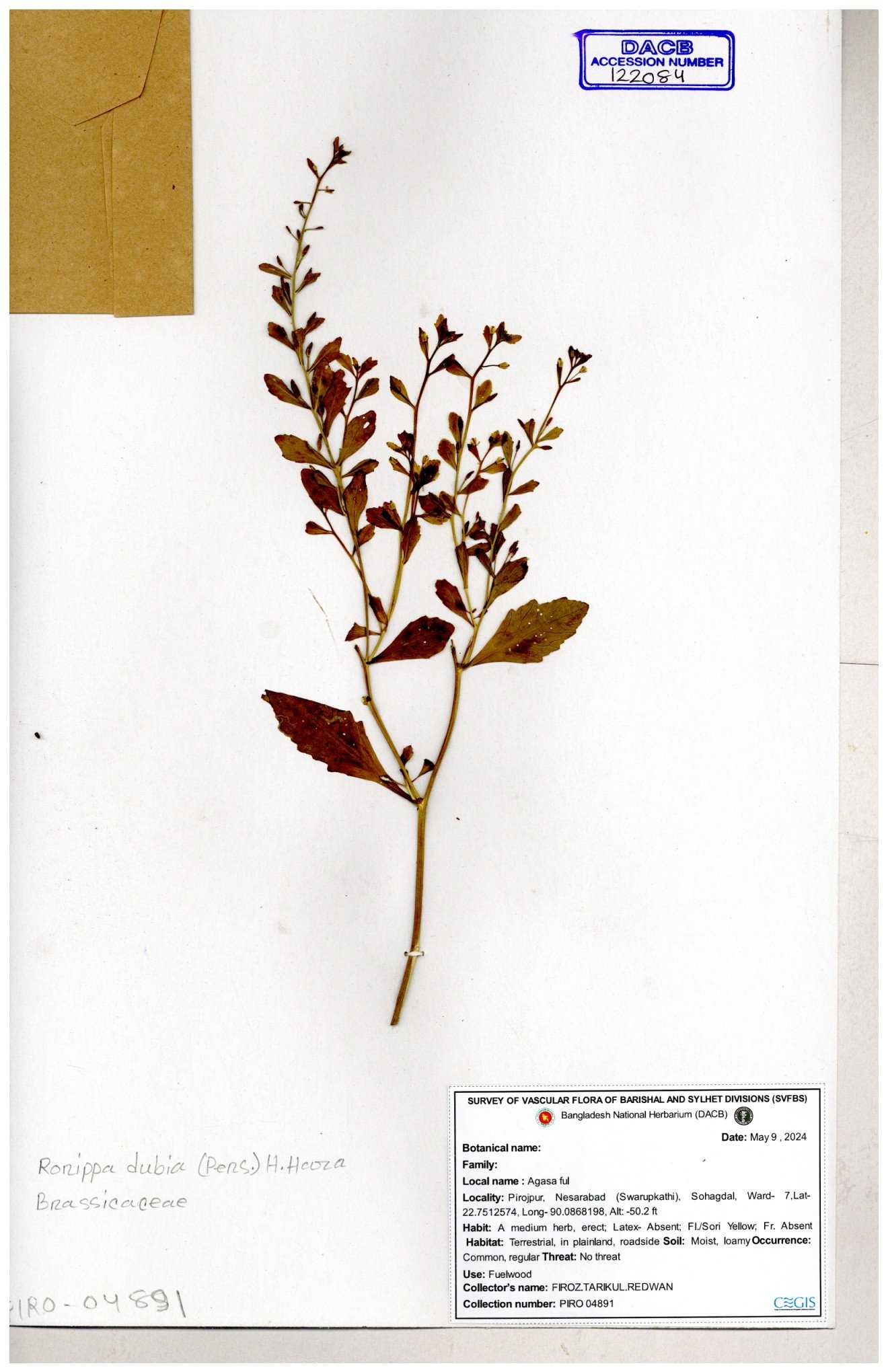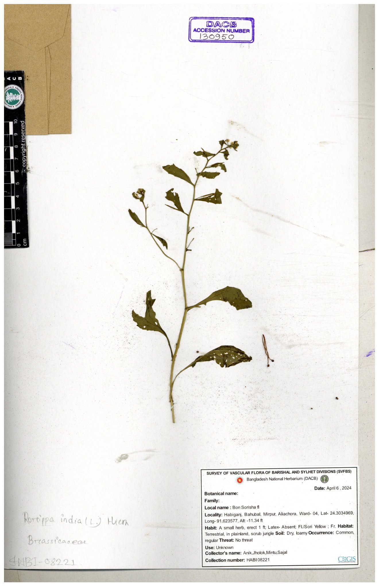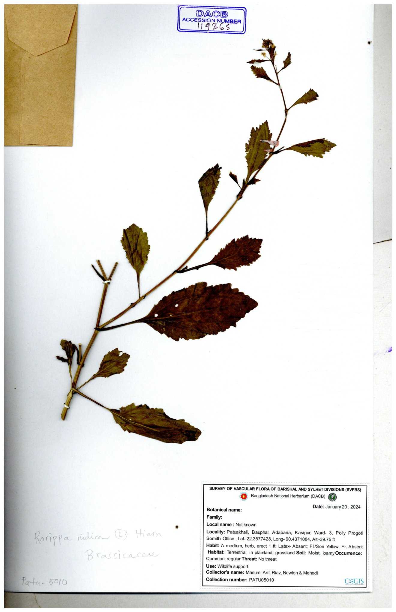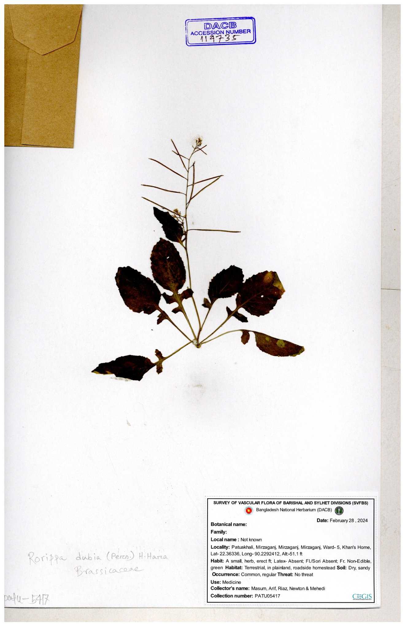 | 130598 | Brassicaceae | Rorippa dubia | Anik, Jholok, Mintu, Sajal | 30-11--0001 |