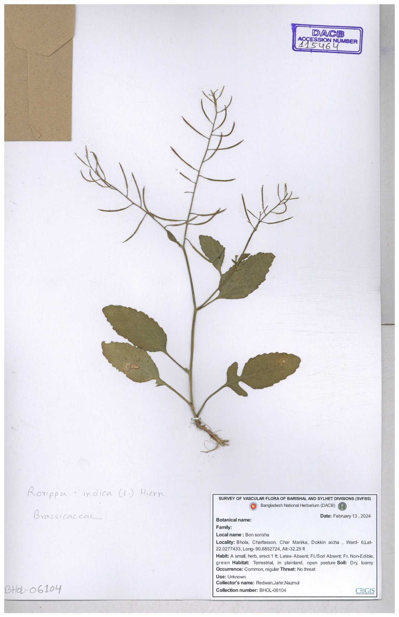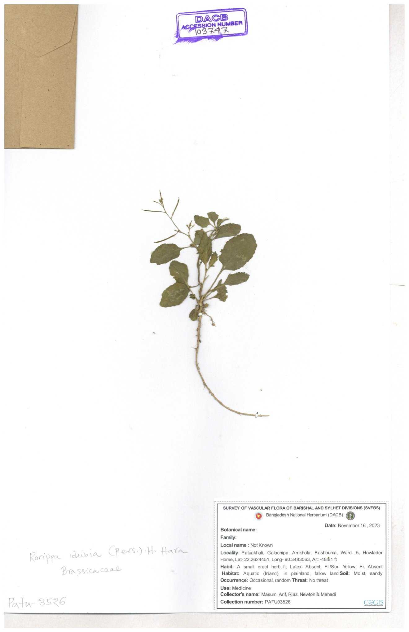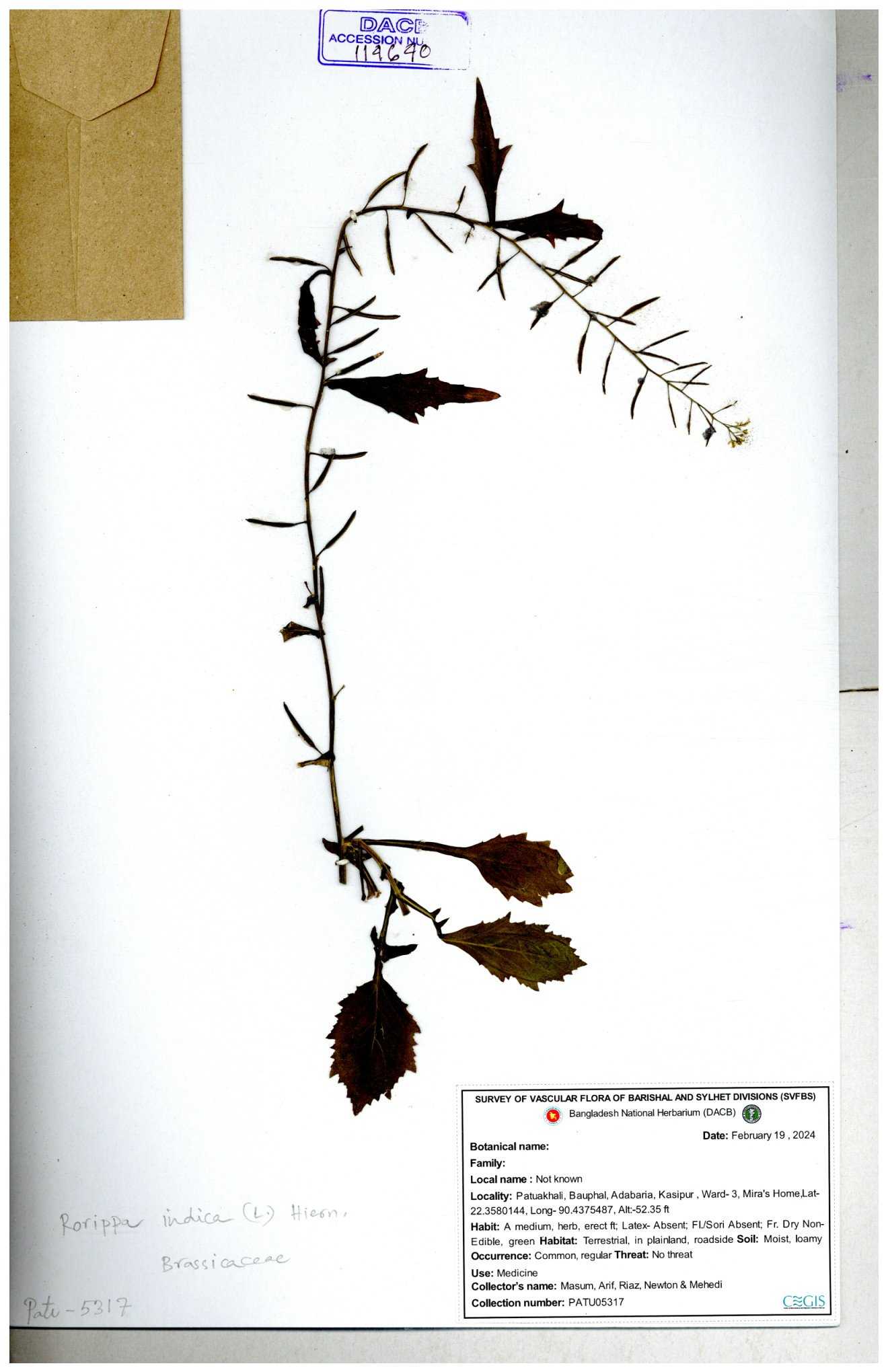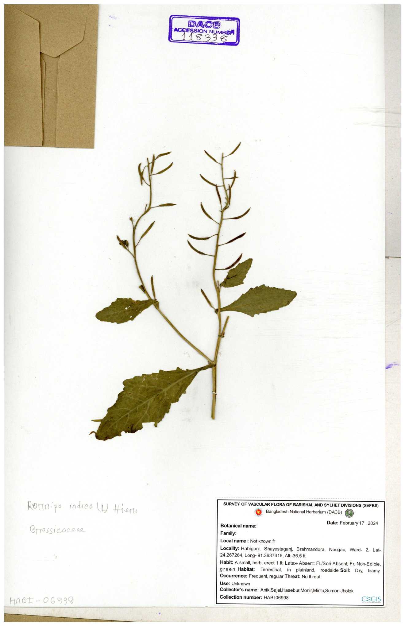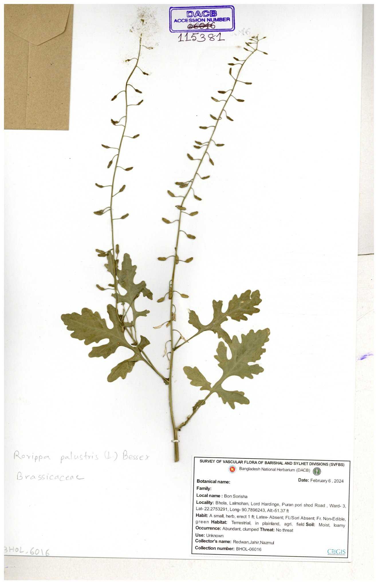| 130598 | Brassicaceae | Rorippa dubia | Anik, Jholok, Mintu, Sajal | 30-11--0001 |
