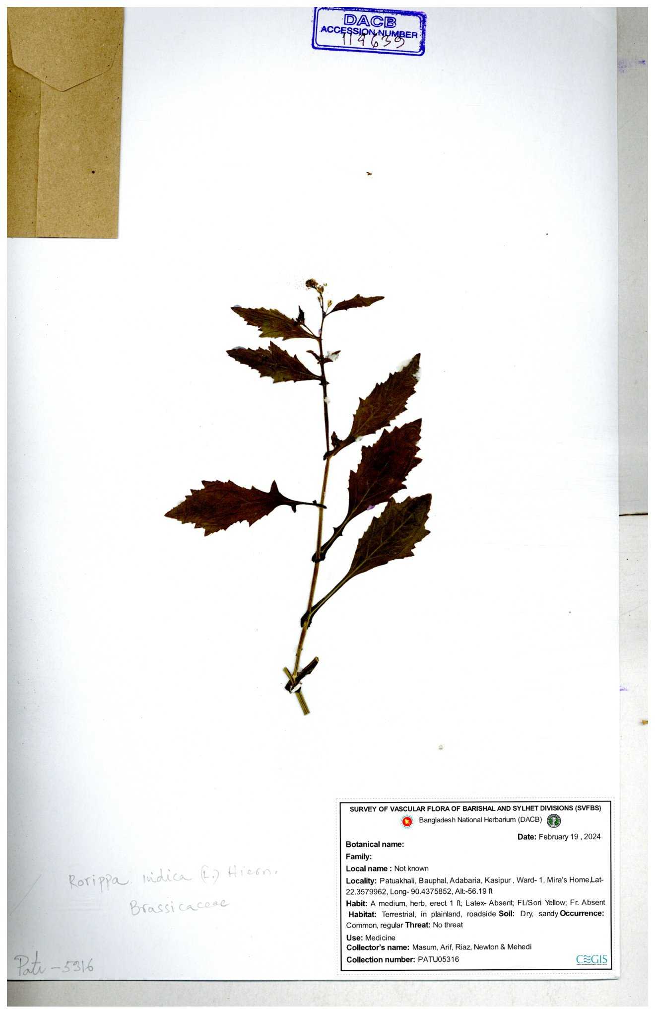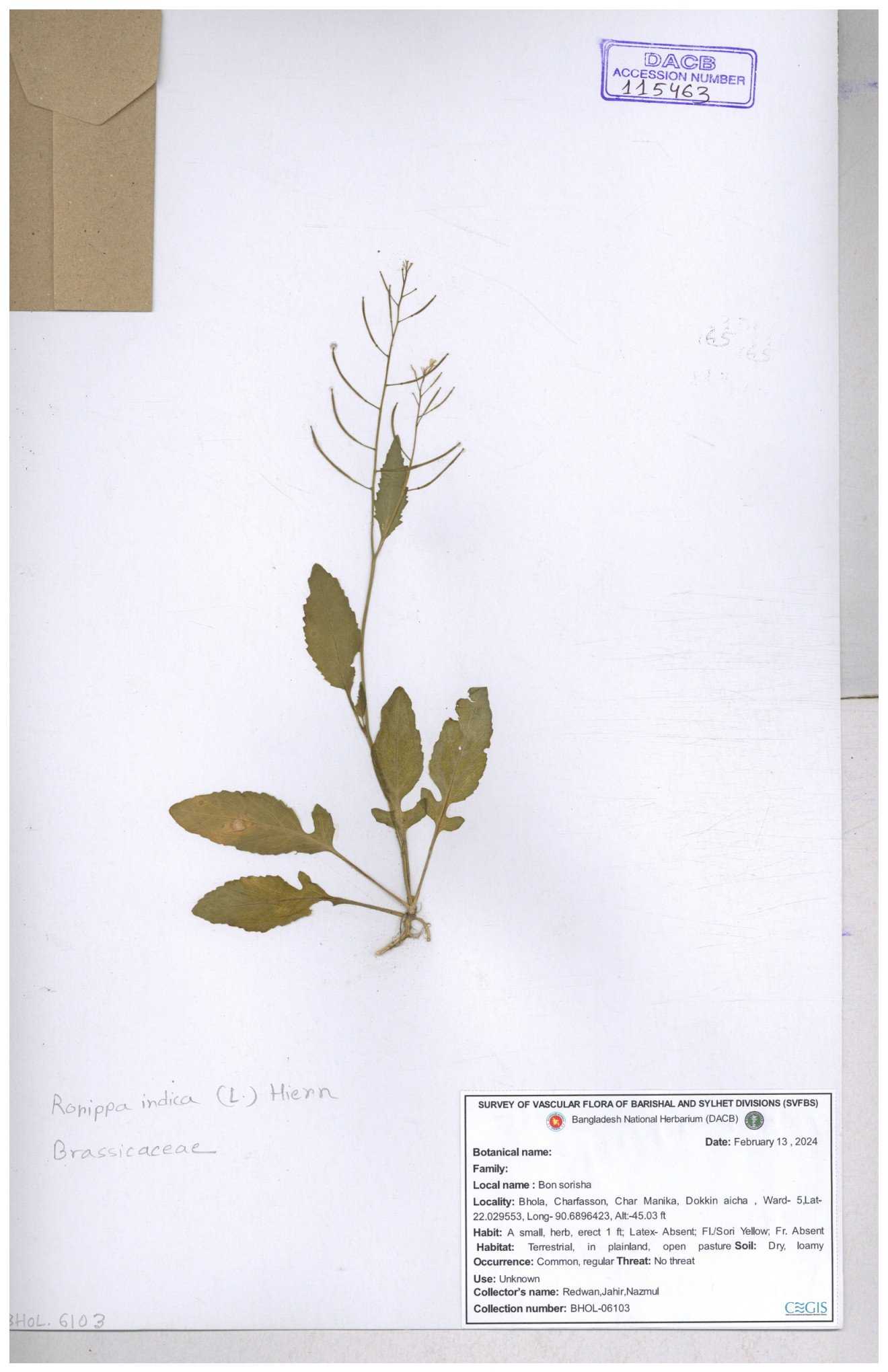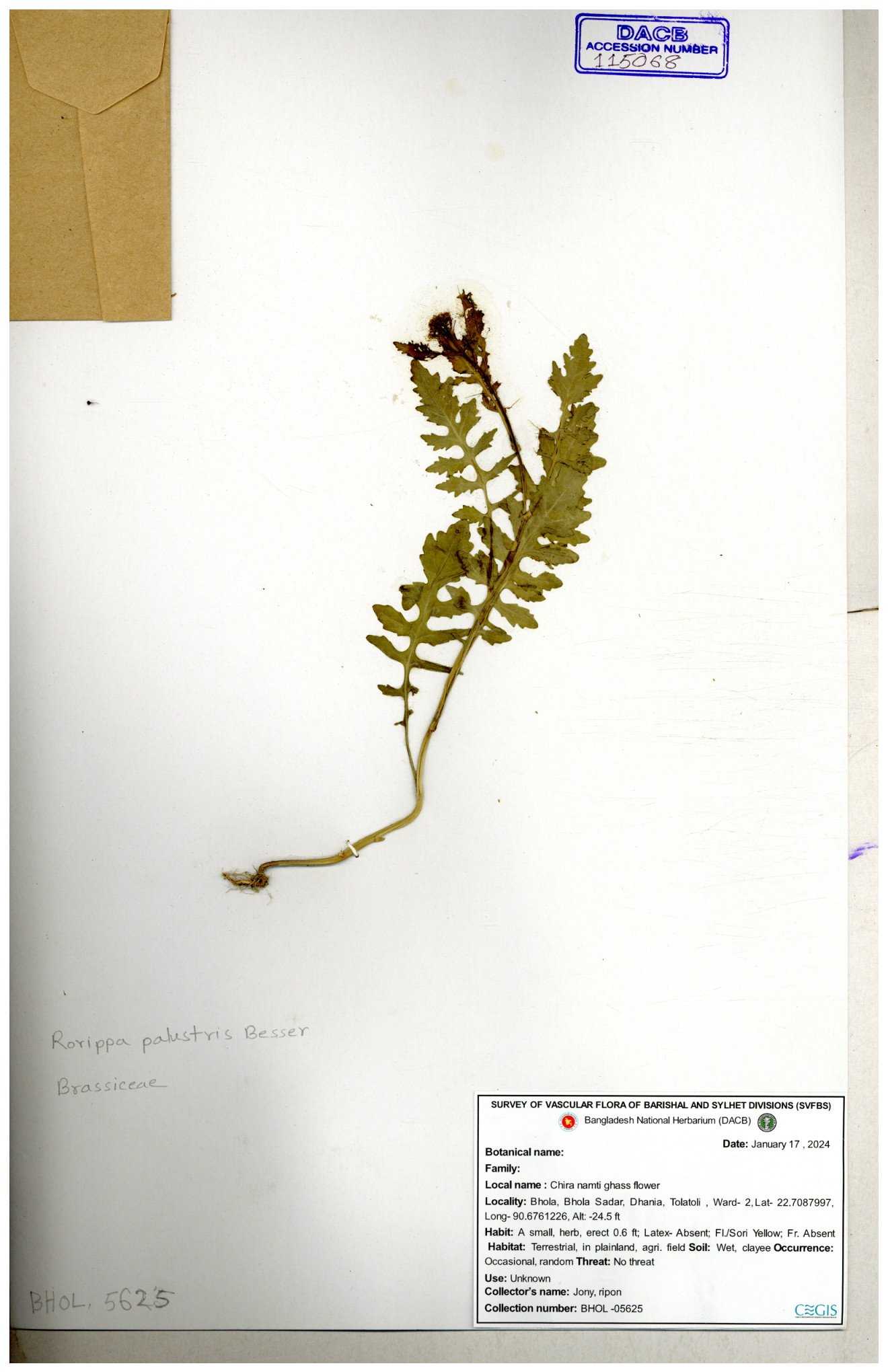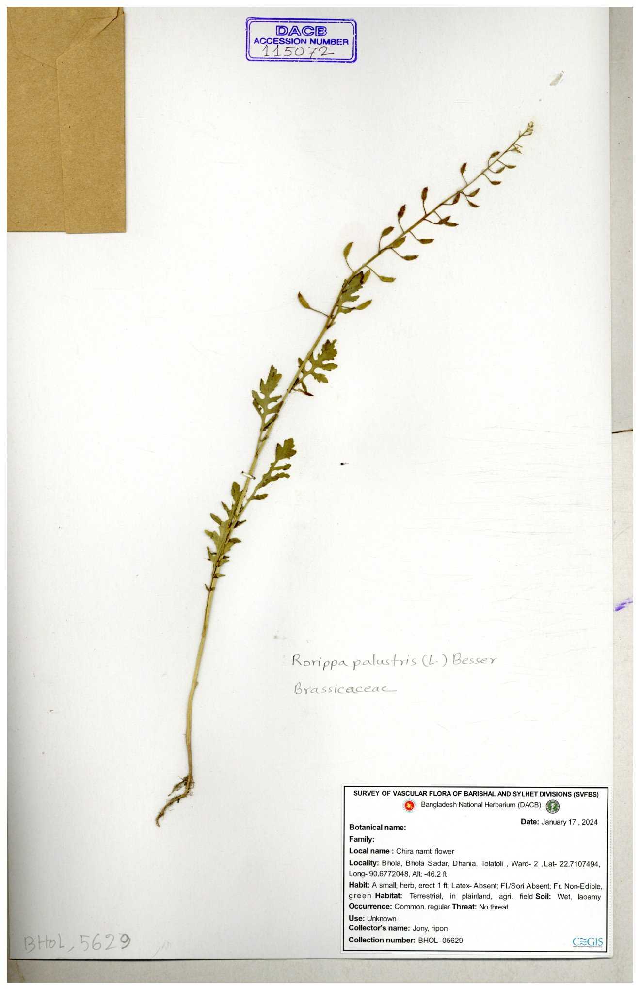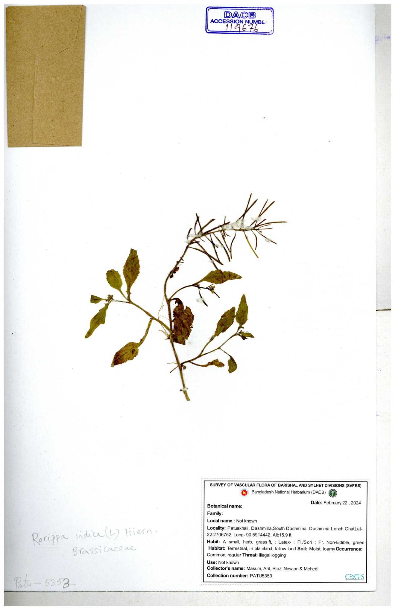 | 130598 | Brassicaceae | Rorippa dubia | Anik, Jholok, Mintu, Sajal | 30-11--0001 |