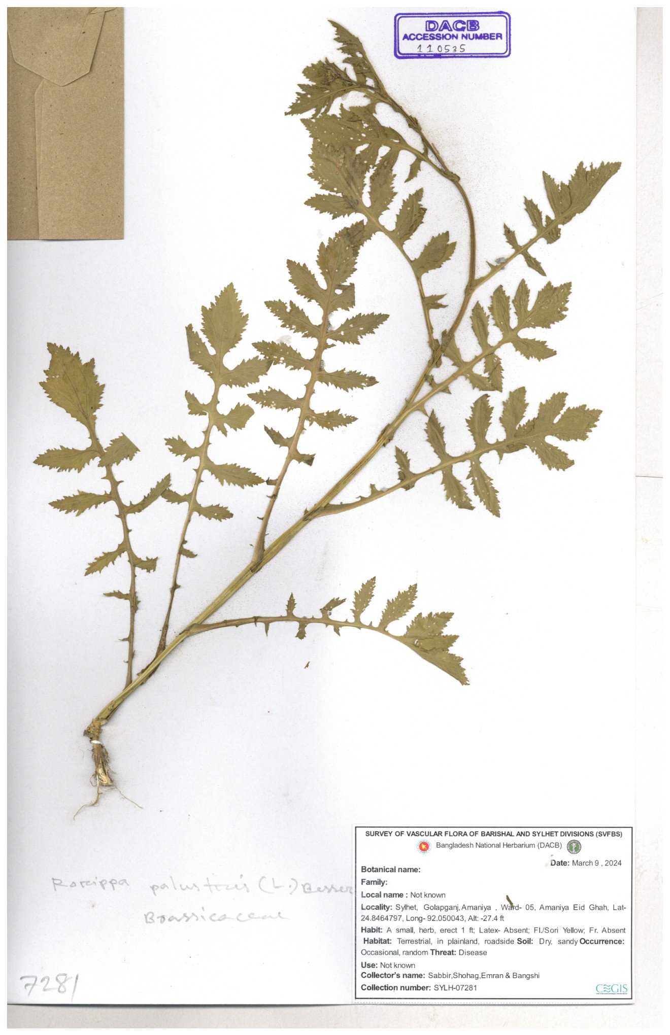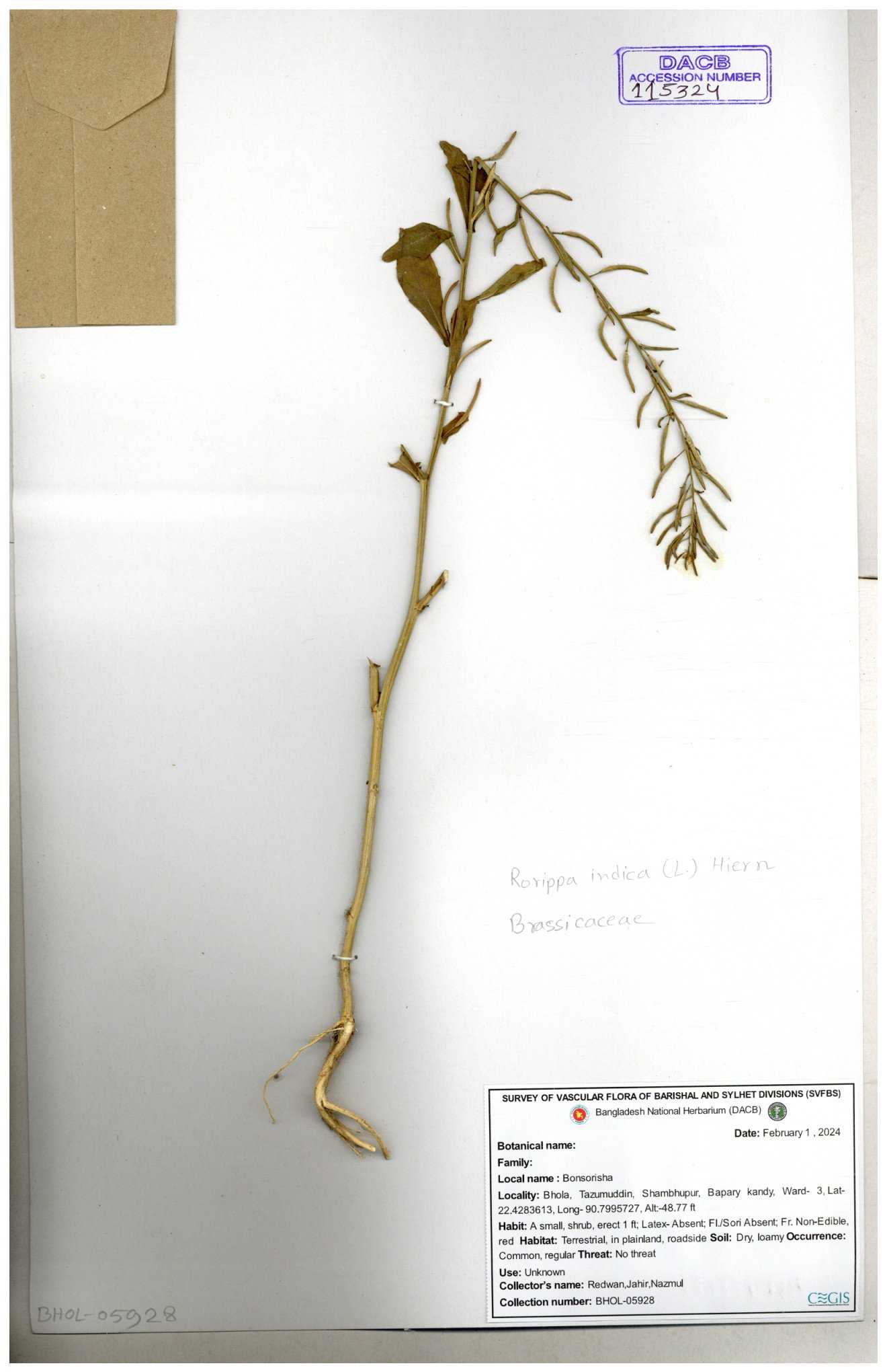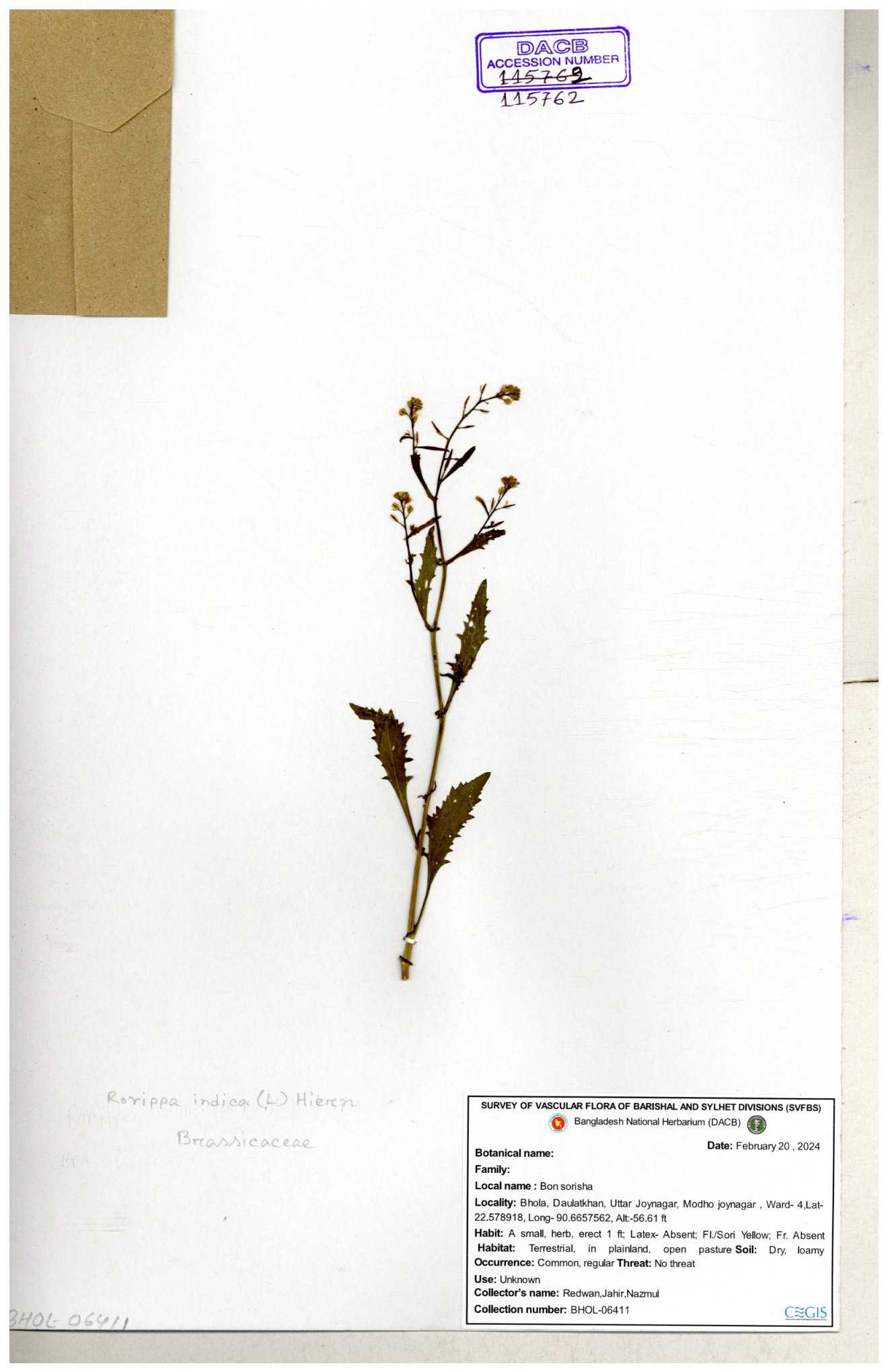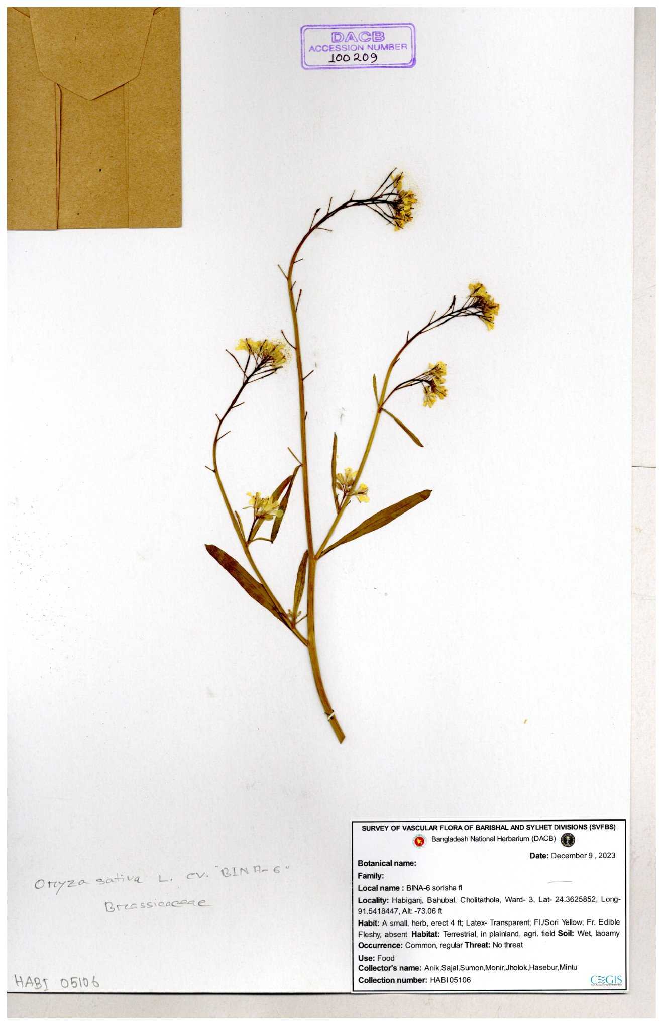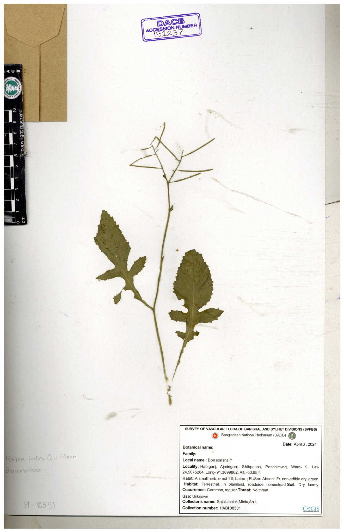 | 130598 | Brassicaceae | Rorippa dubia | Anik, Jholok, Mintu, Sajal | 30-11--0001 |