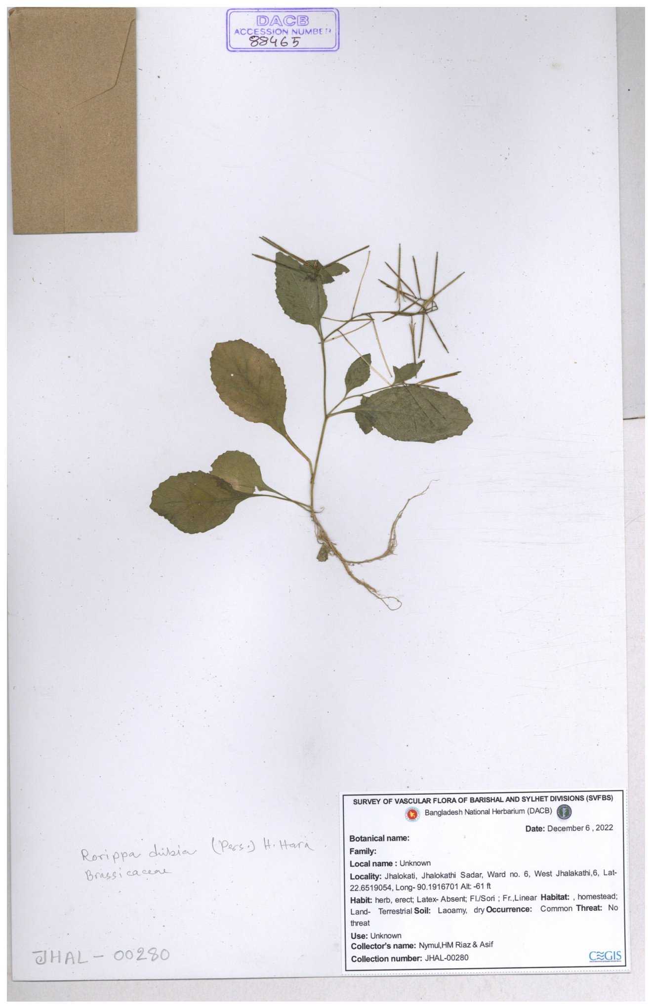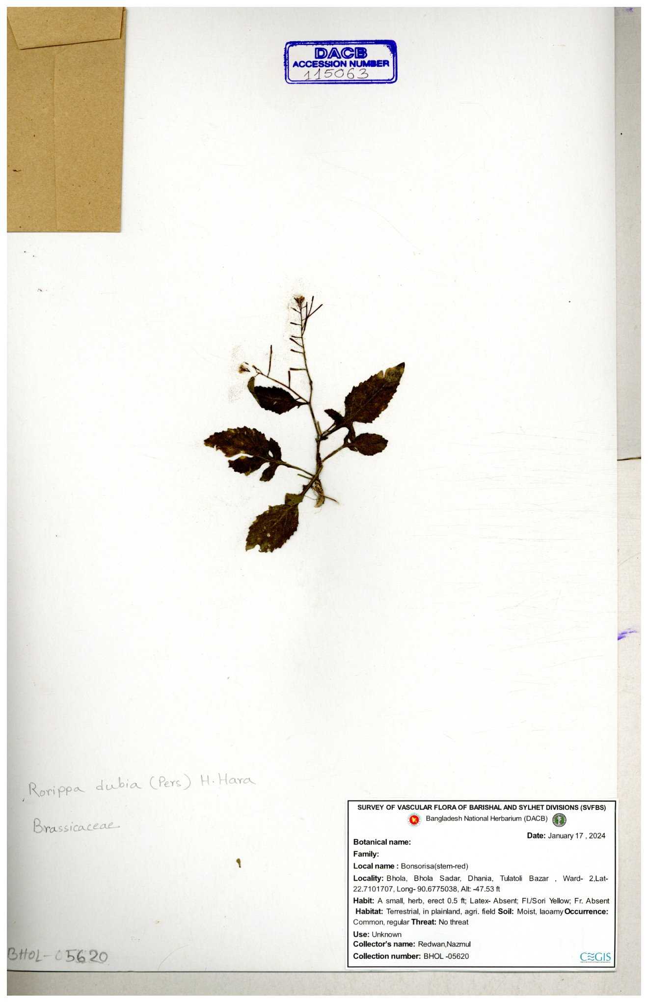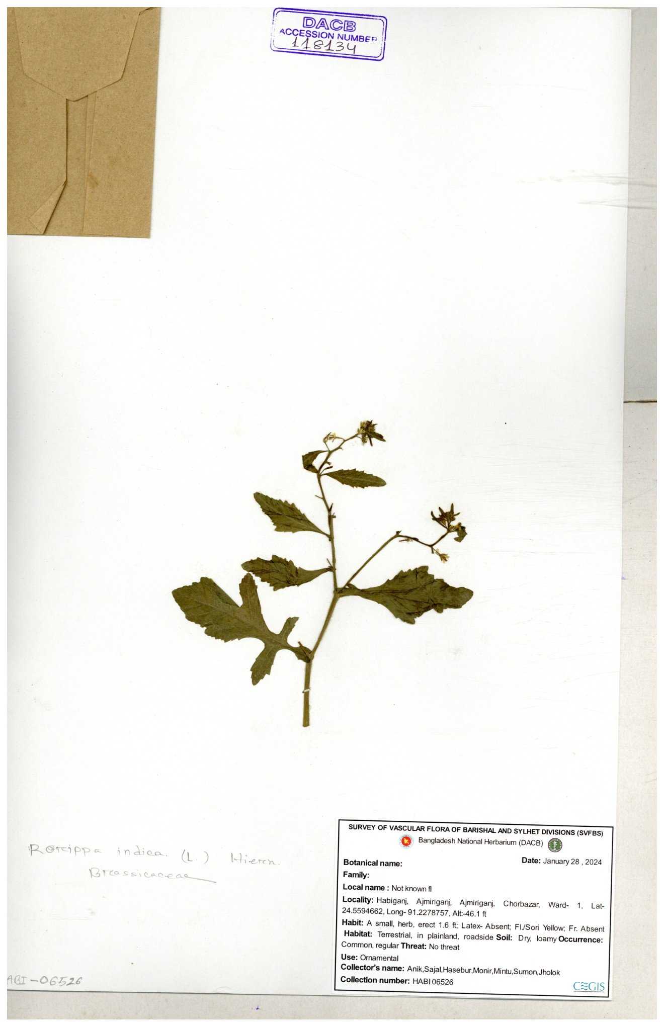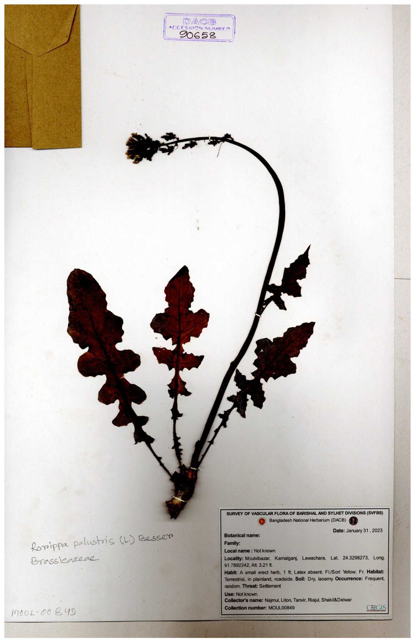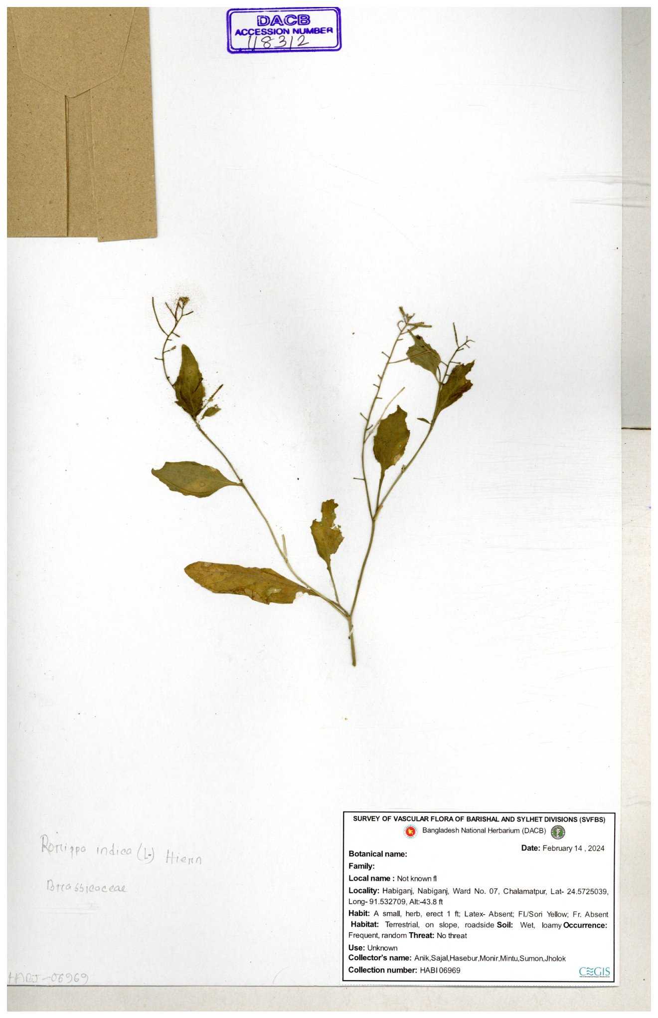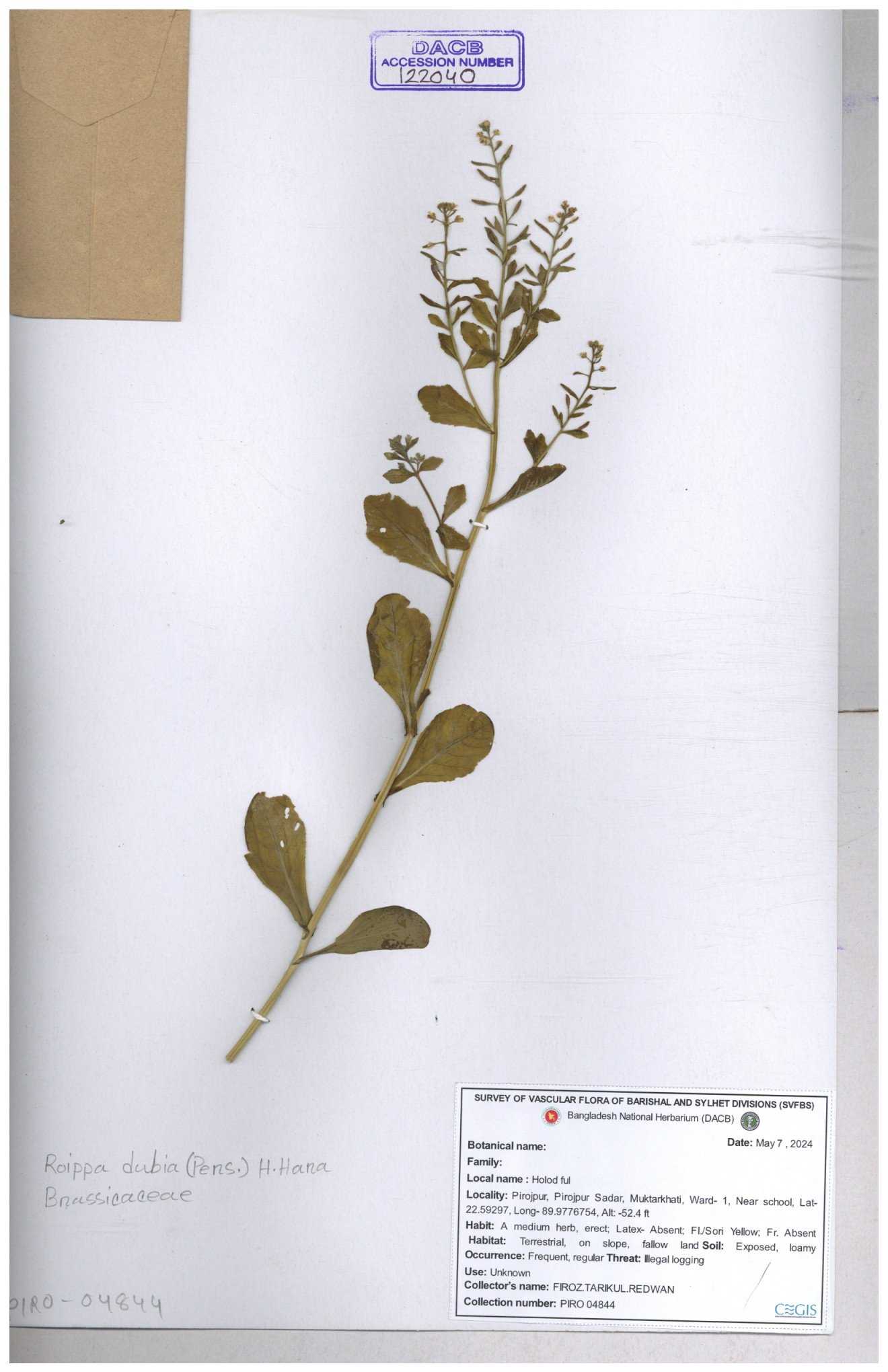 | 130598 | Brassicaceae | Rorippa dubia | Anik, Jholok, Mintu, Sajal | 30-11--0001 |
