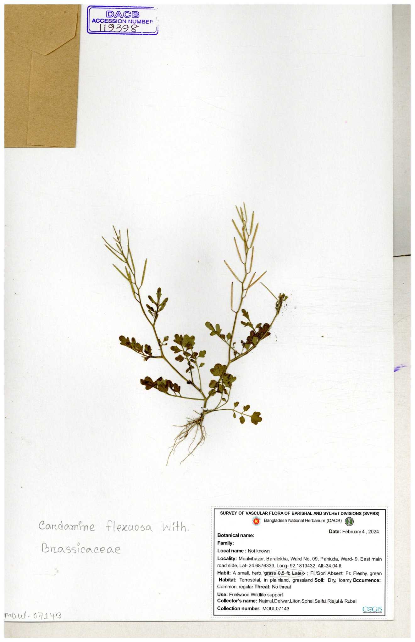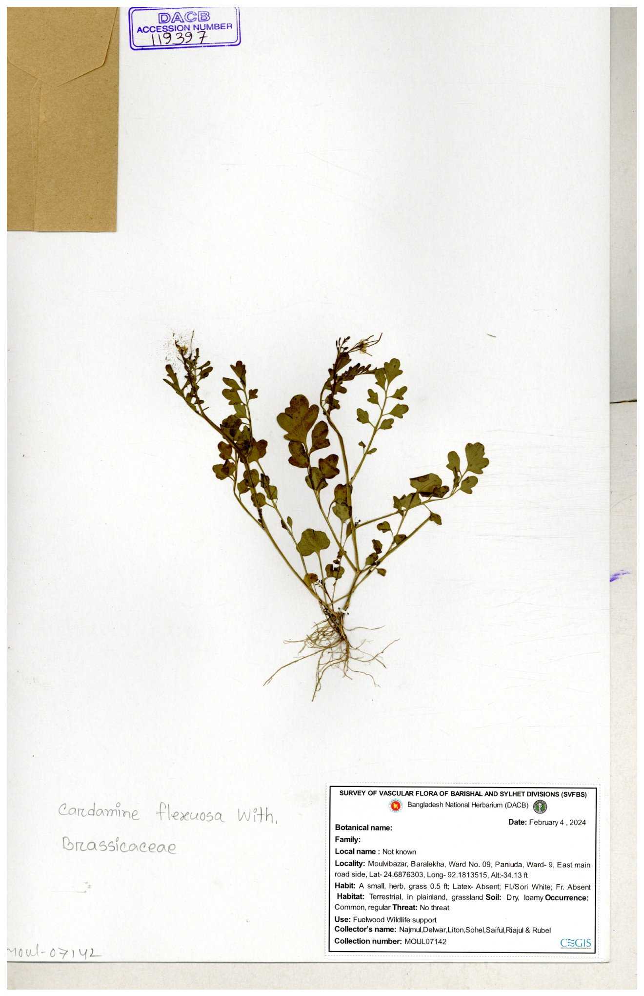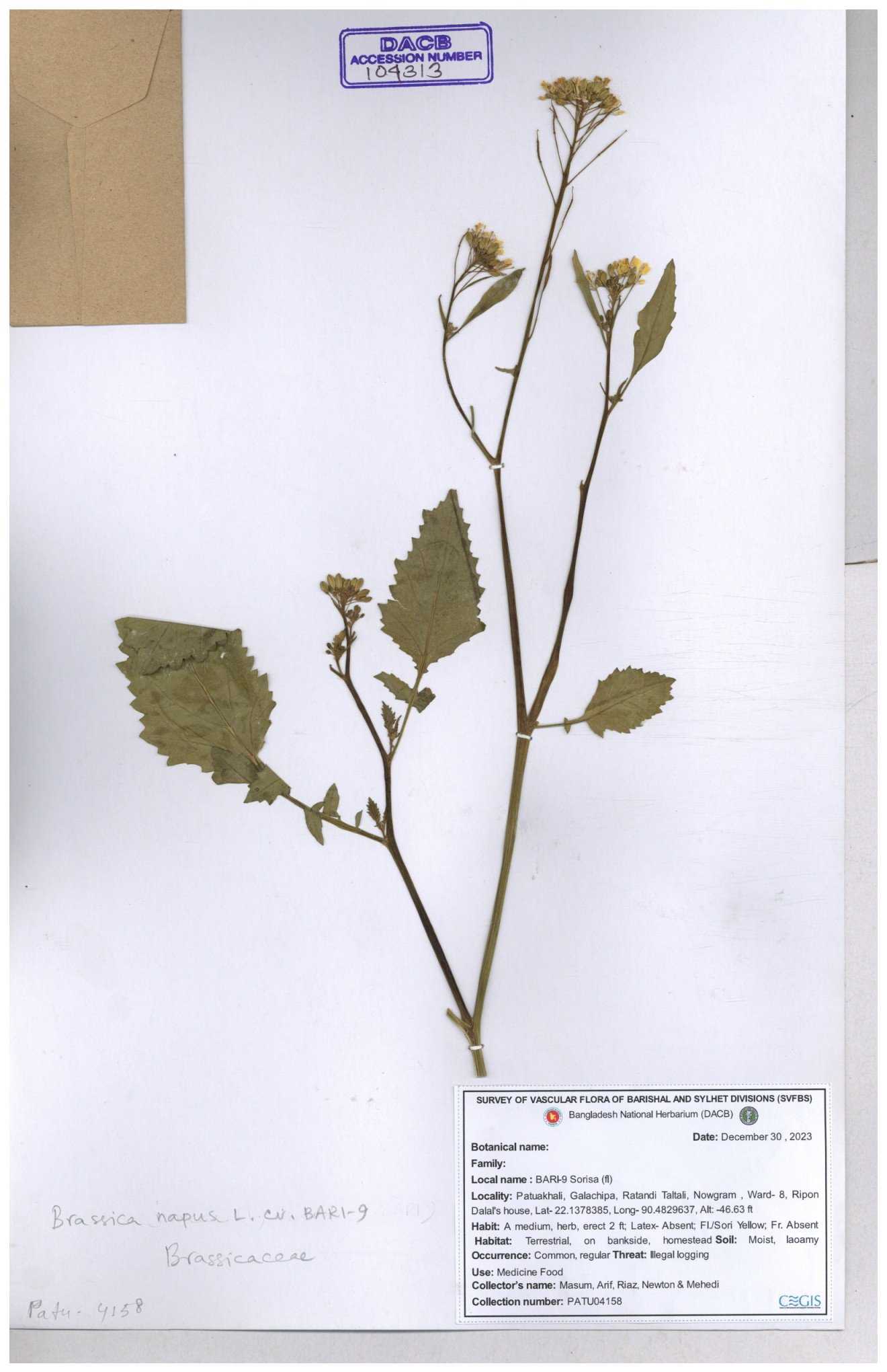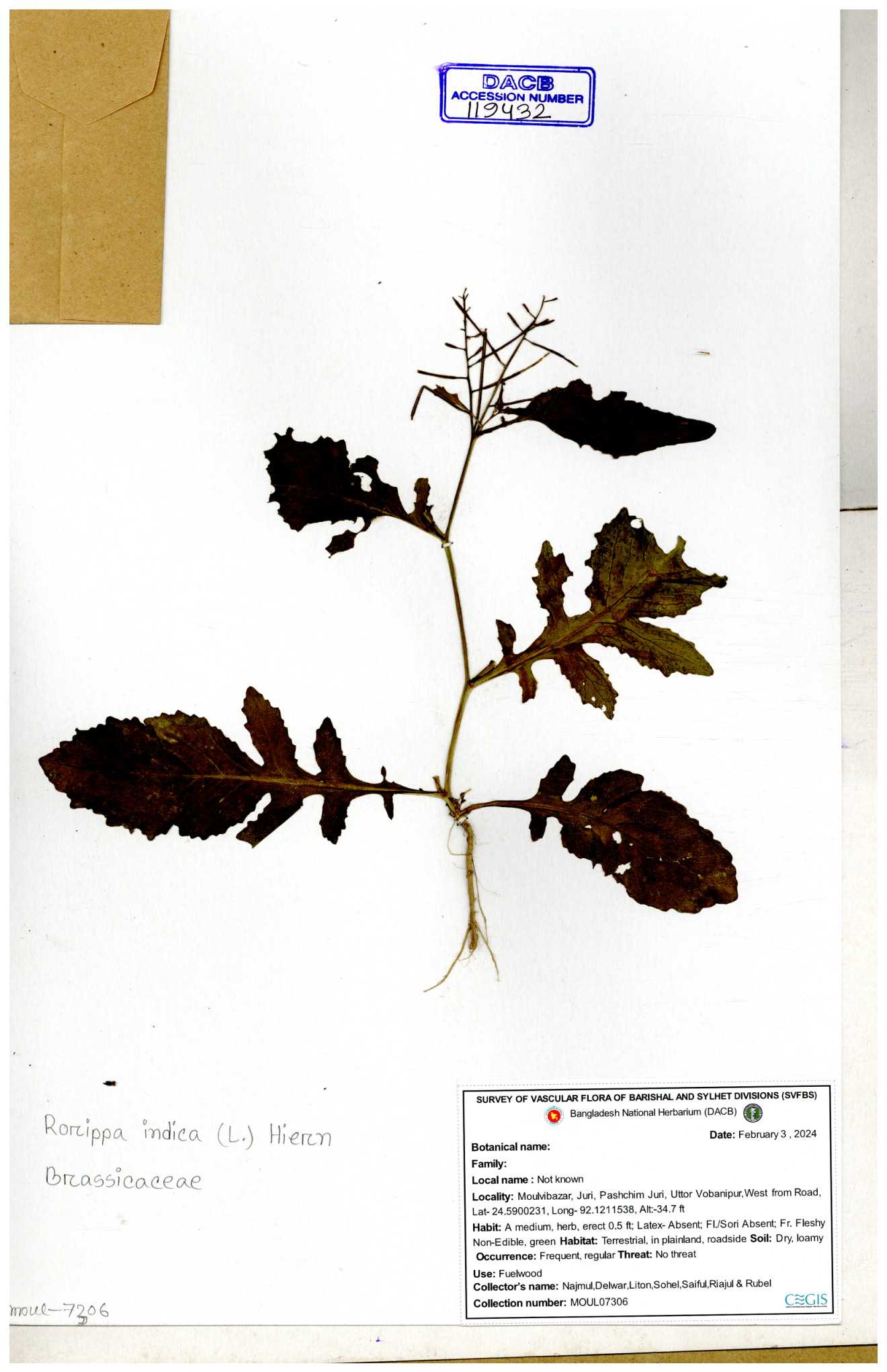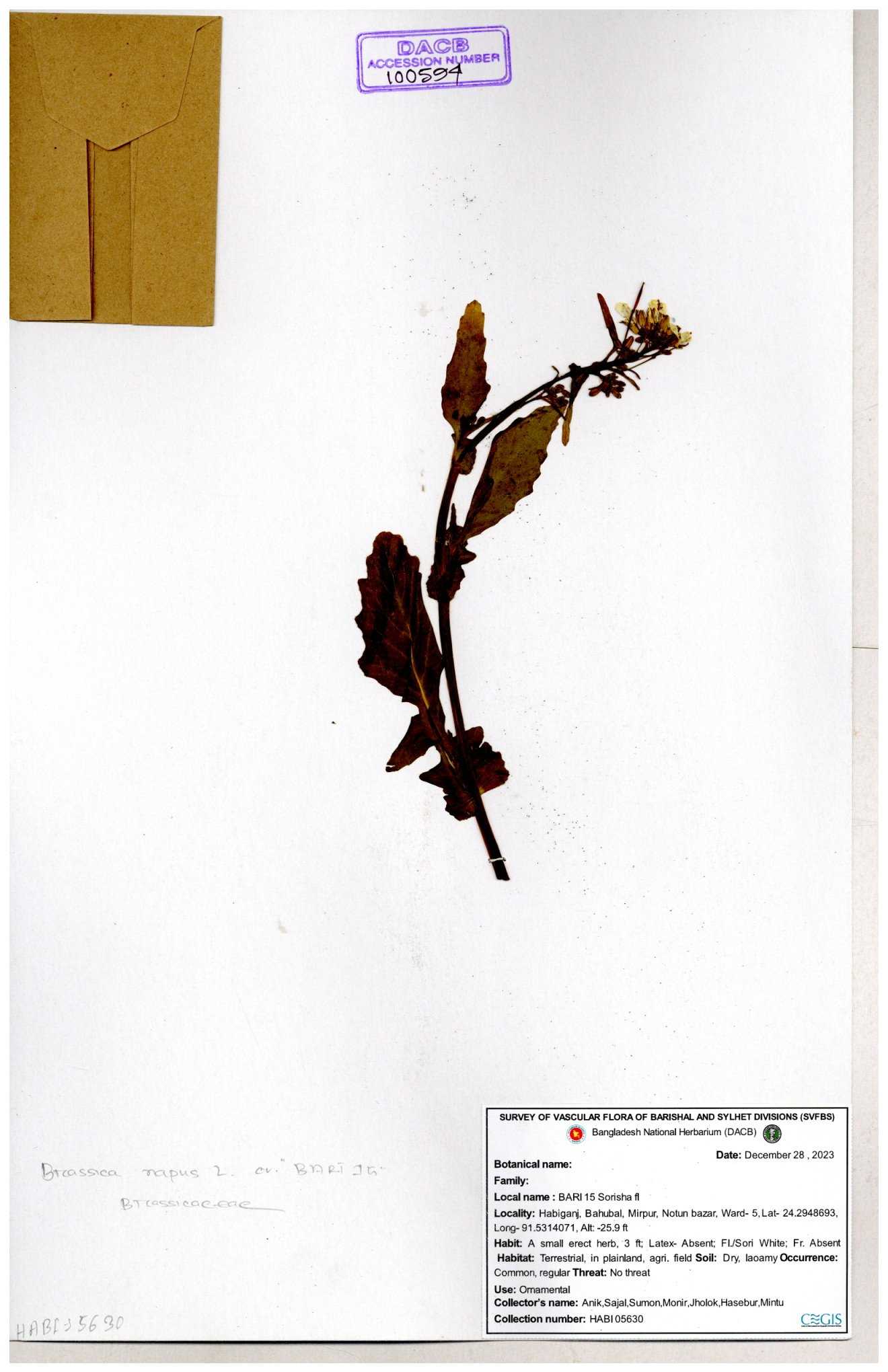 | 130598 | Brassicaceae | Rorippa dubia | Anik, Jholok, Mintu, Sajal | 30-11--0001 |