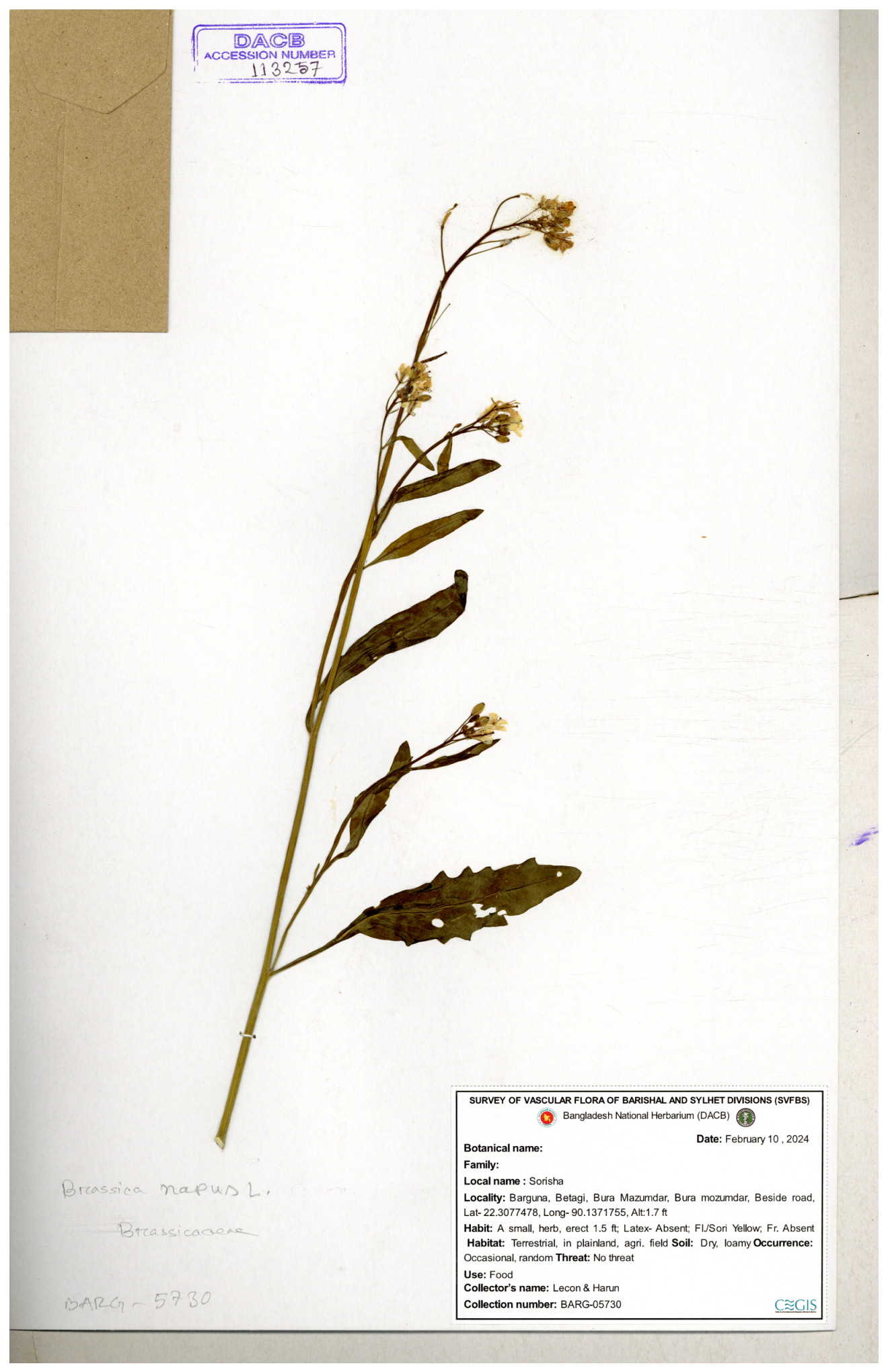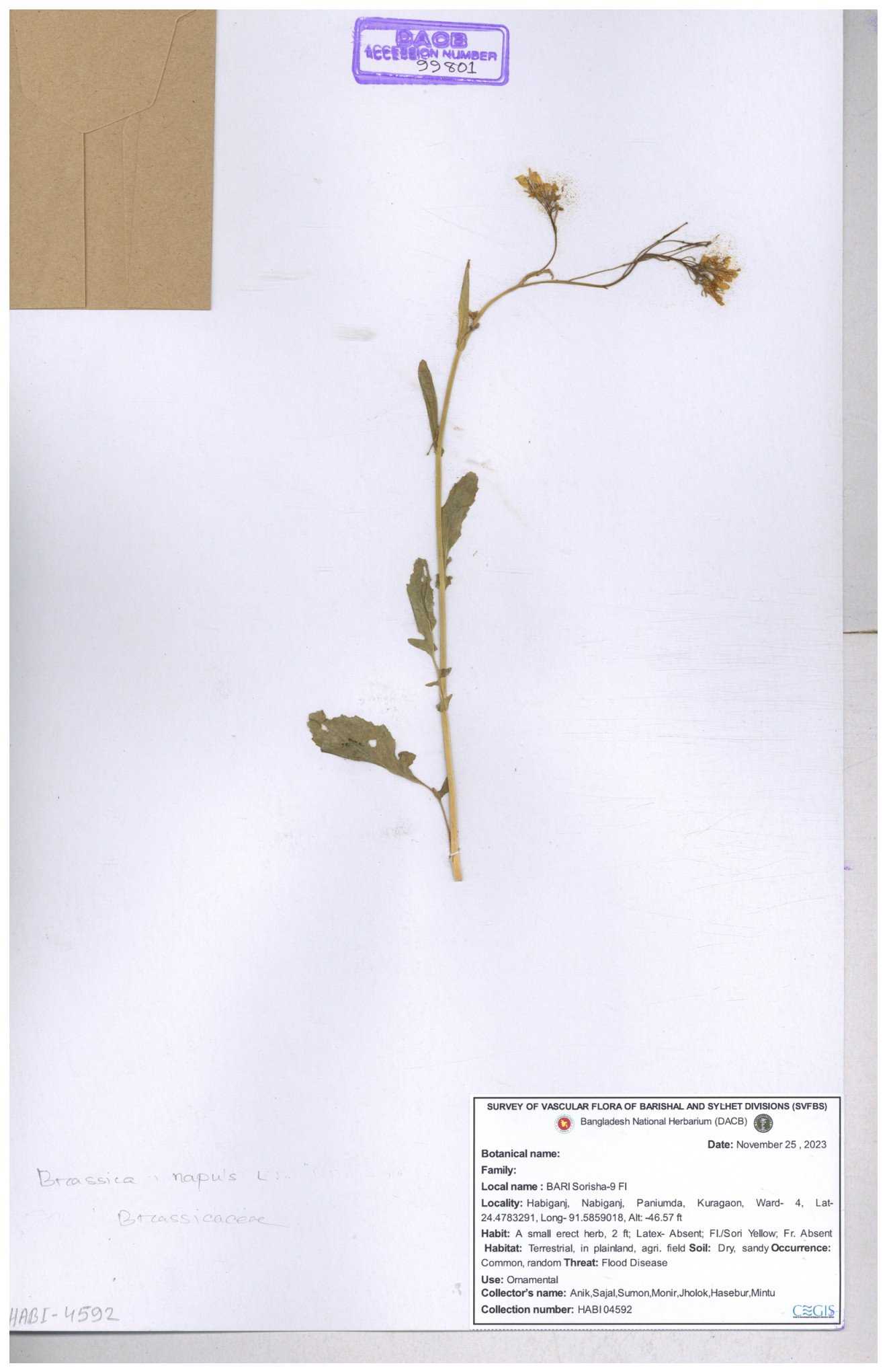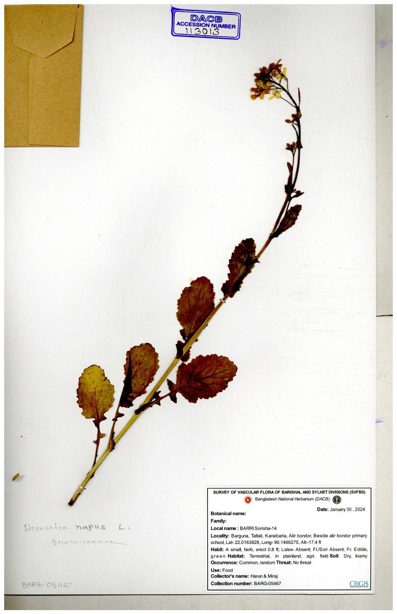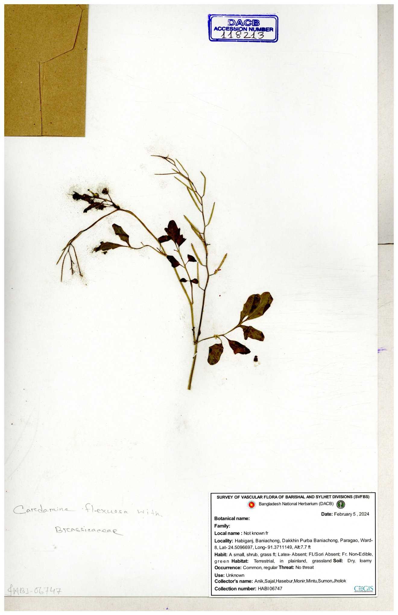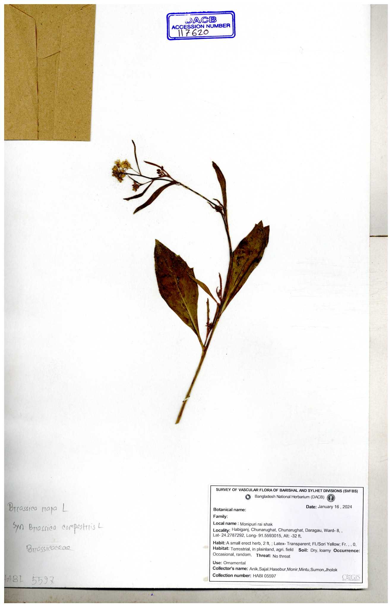 | 130598 | Brassicaceae | Rorippa dubia | Anik, Jholok, Mintu, Sajal | 30-11--0001 |