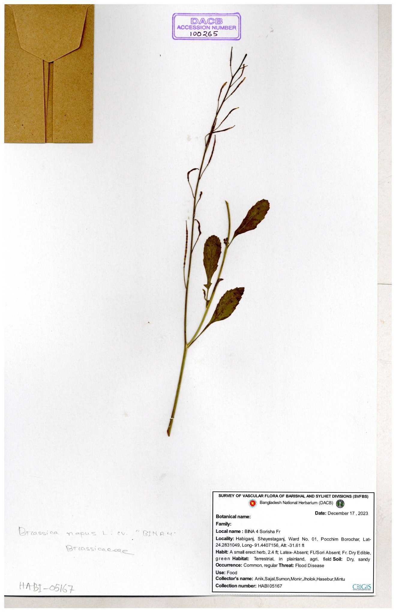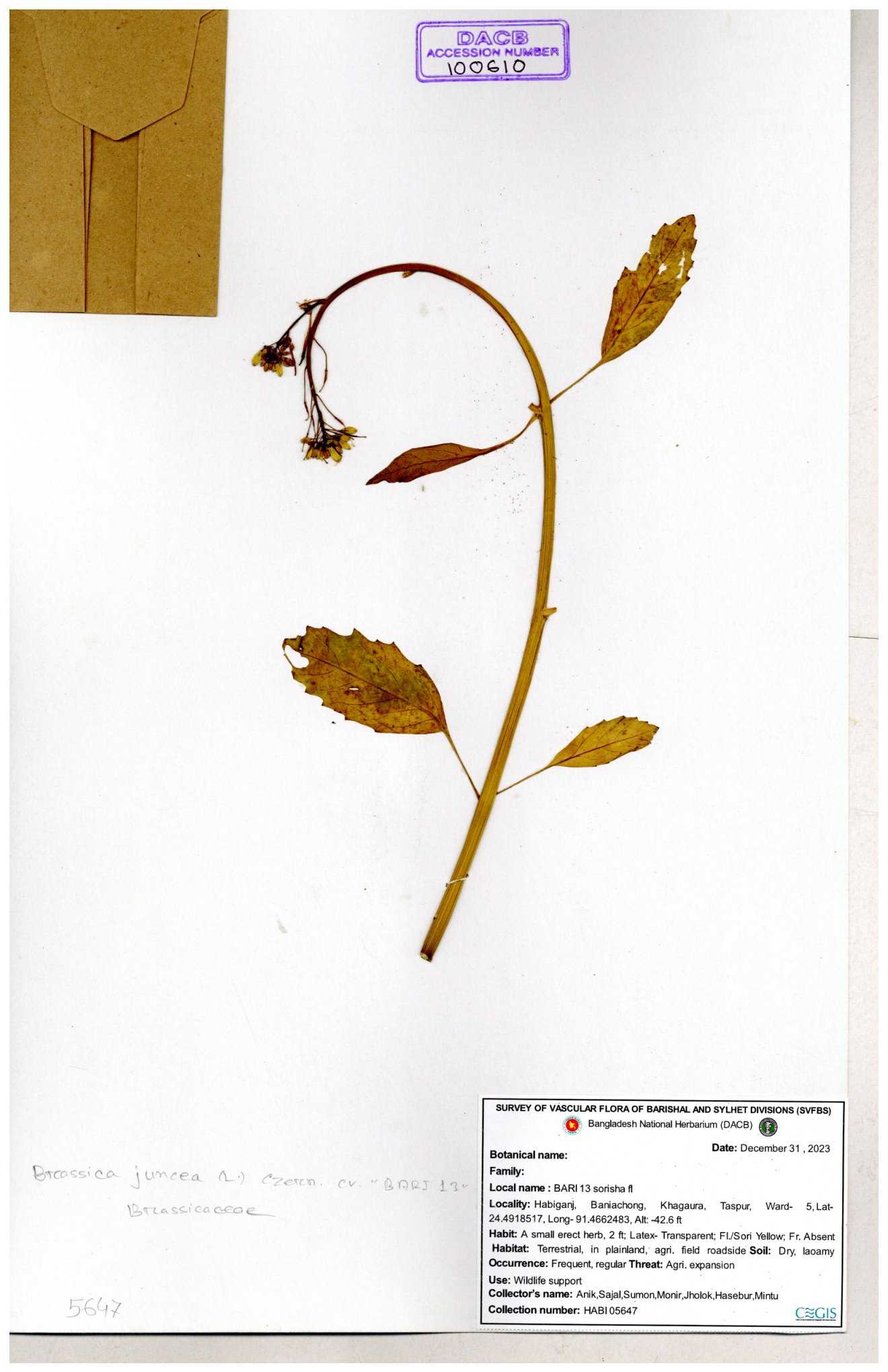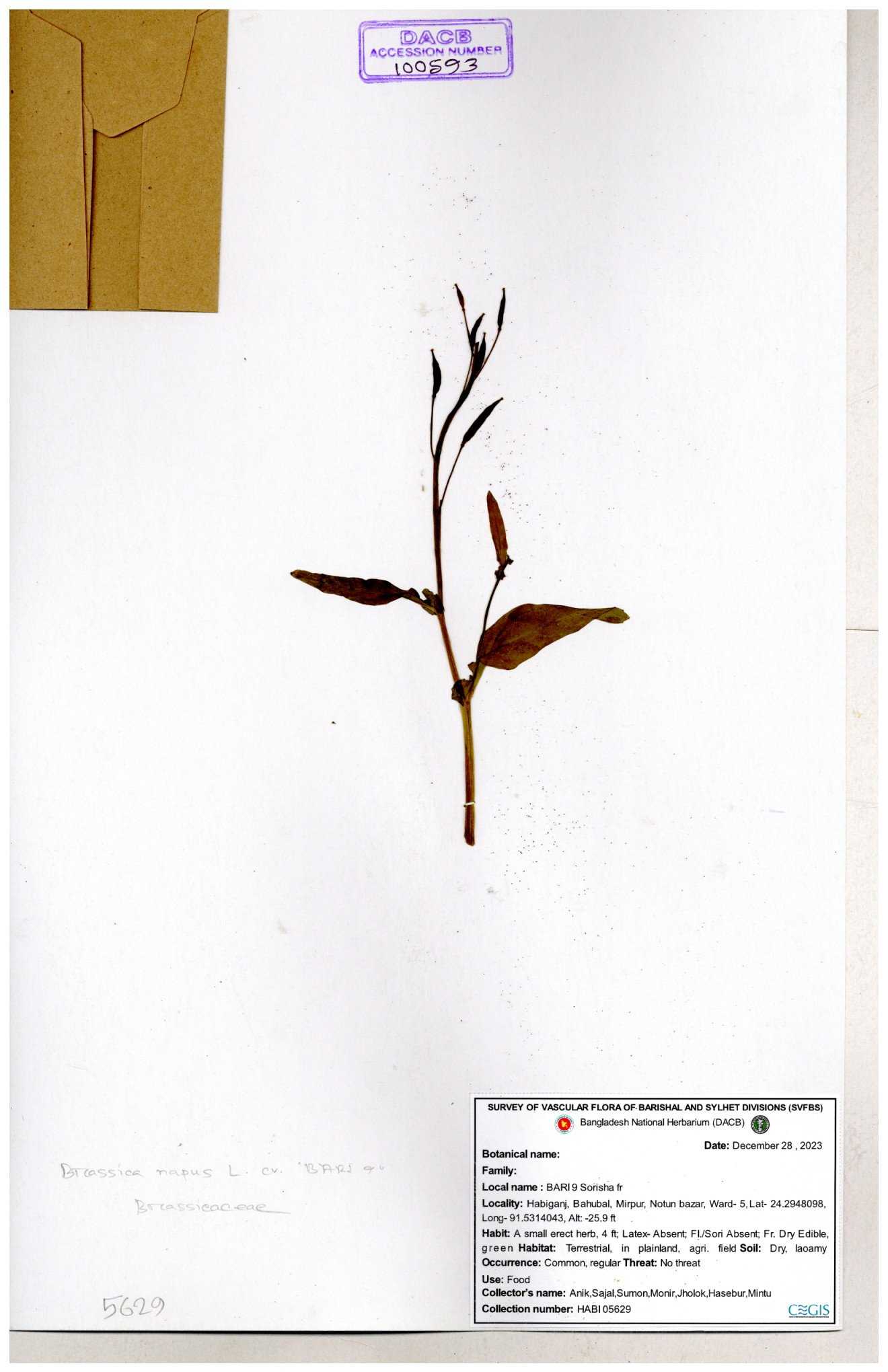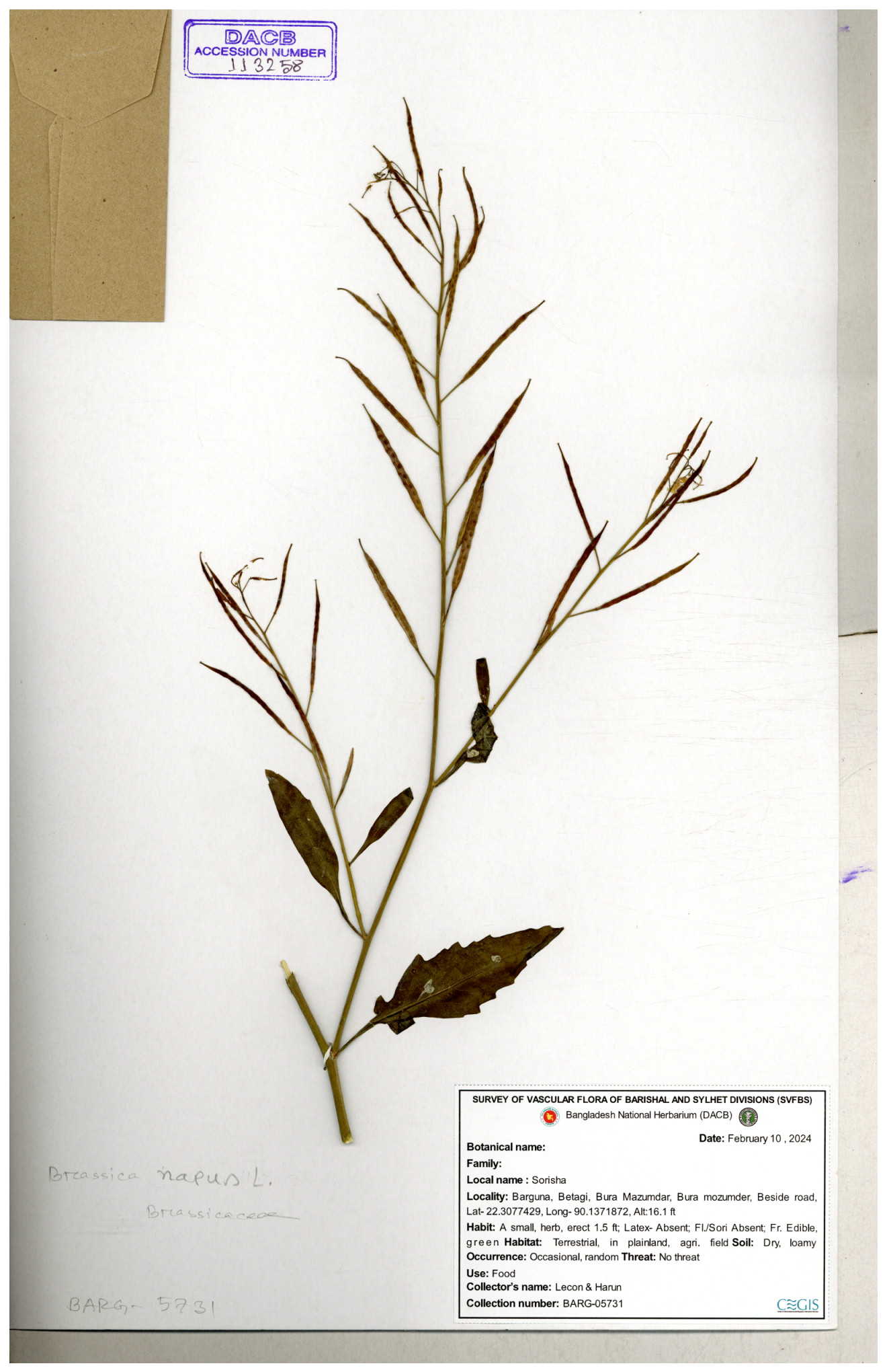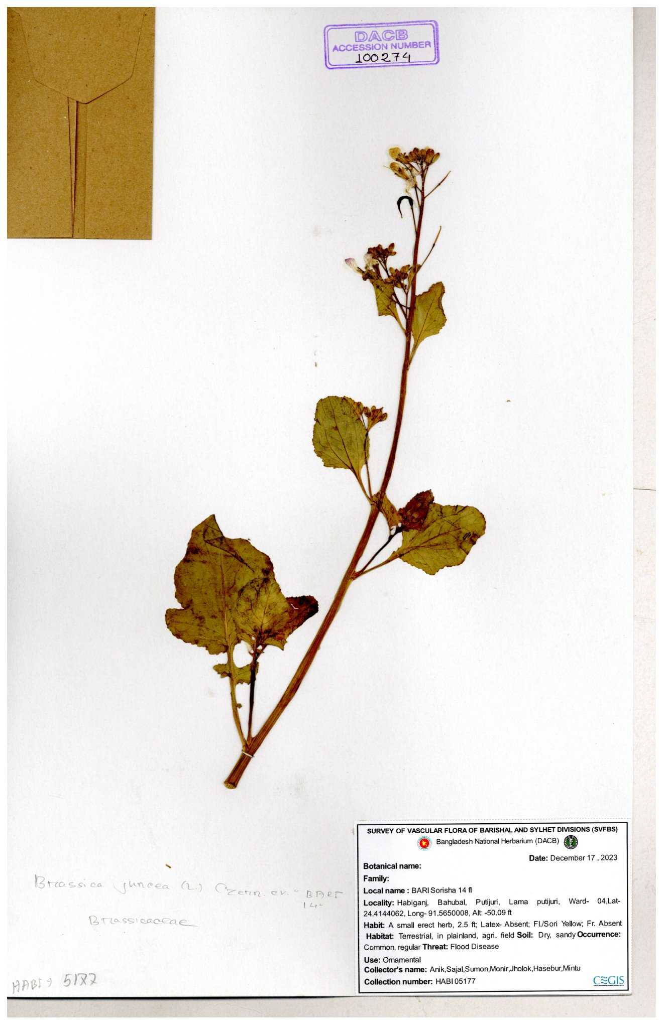 | 130598 | Brassicaceae | Rorippa dubia | Anik, Jholok, Mintu, Sajal | 30-11--0001 |