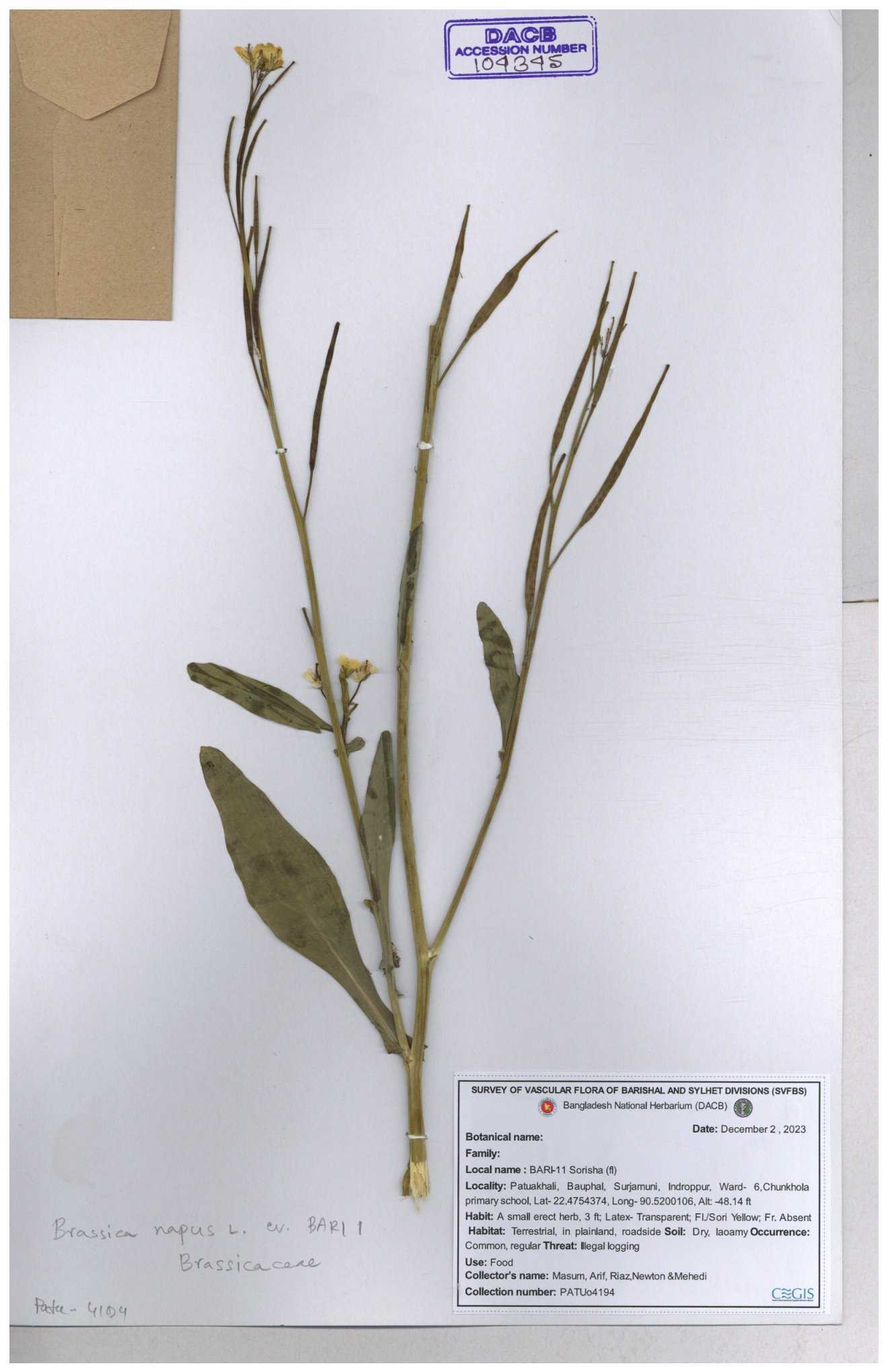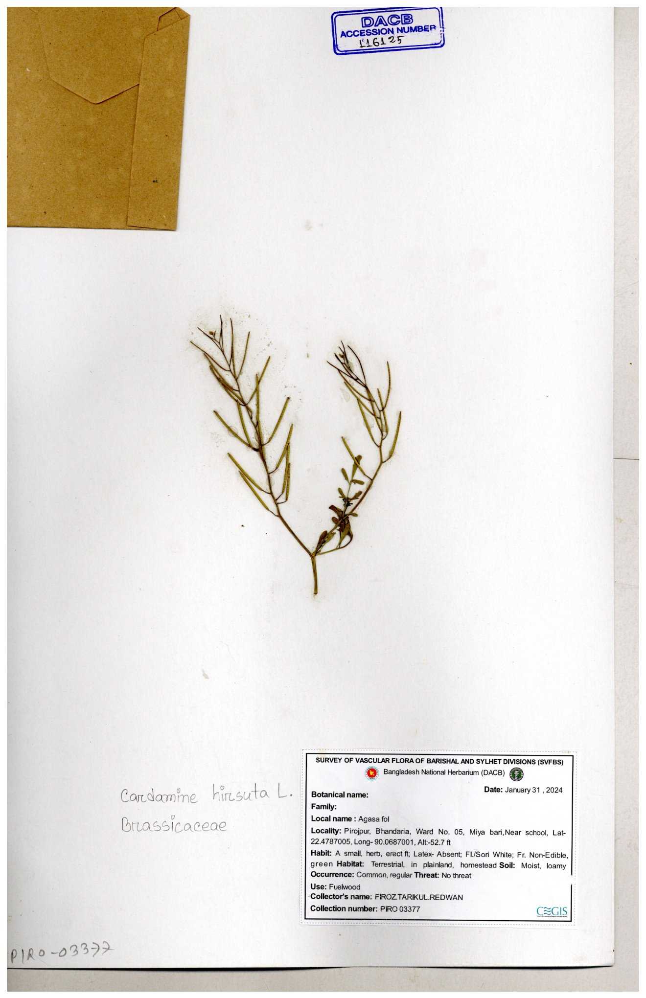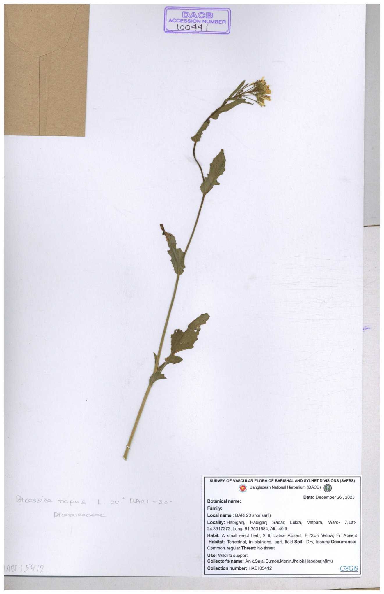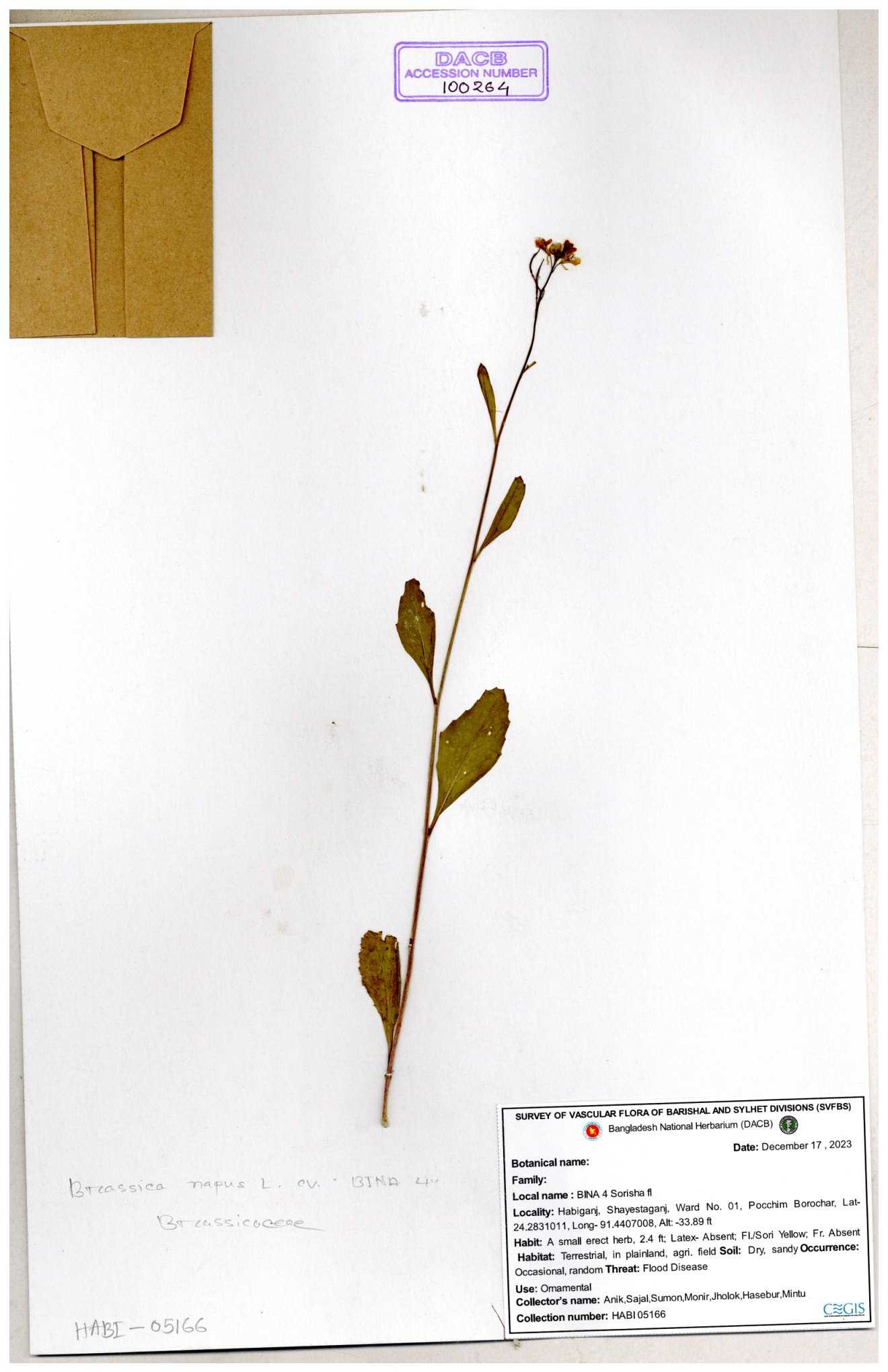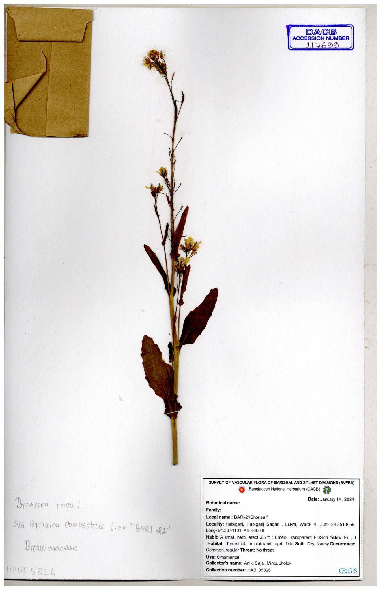 | 130598 | Brassicaceae | Rorippa dubia | Anik, Jholok, Mintu, Sajal | 30-11--0001 |