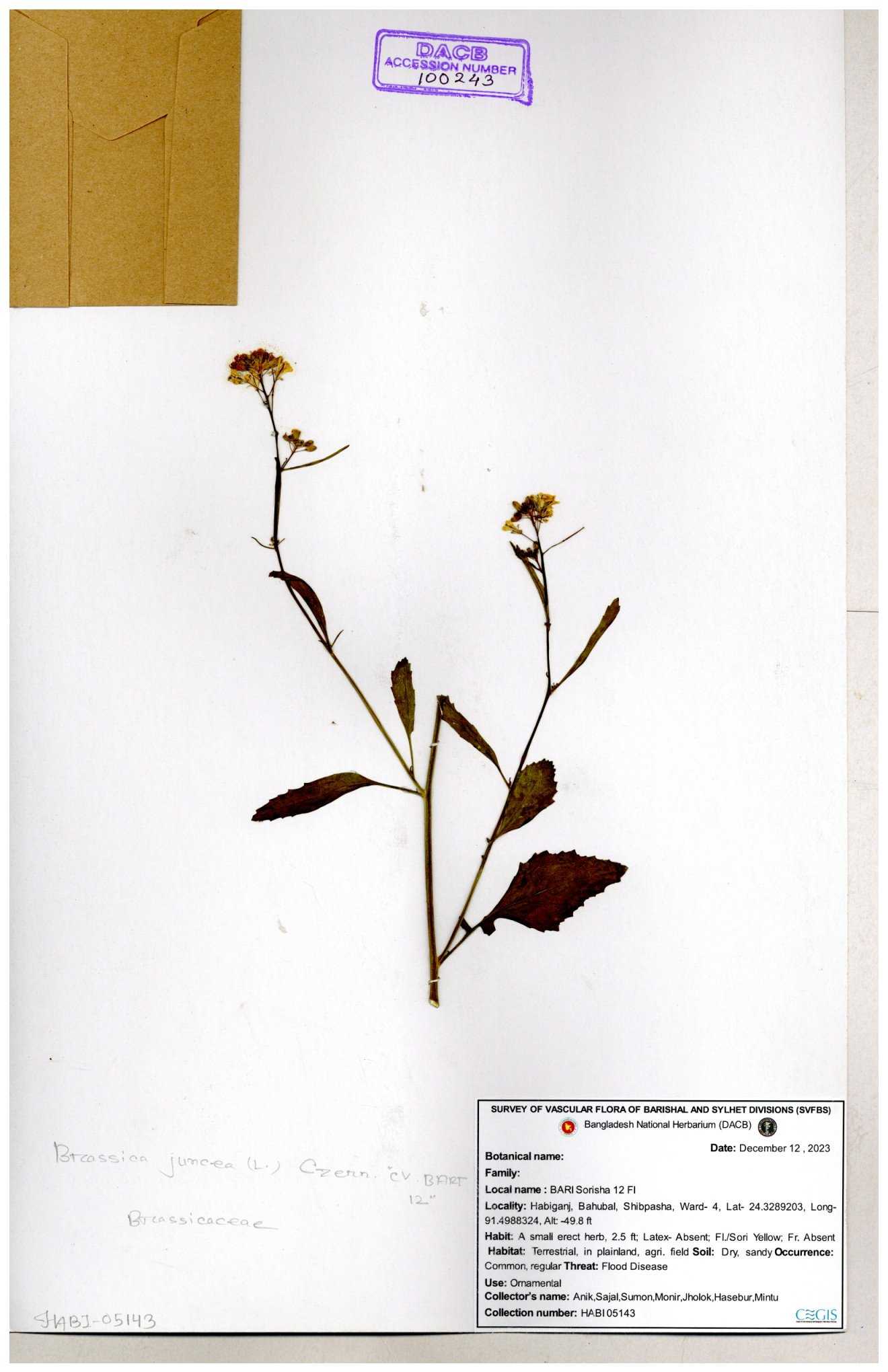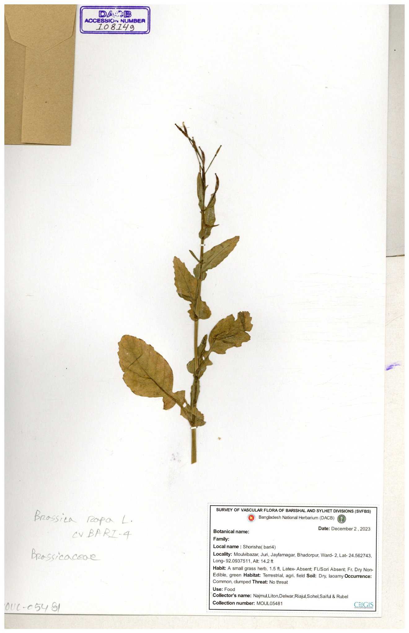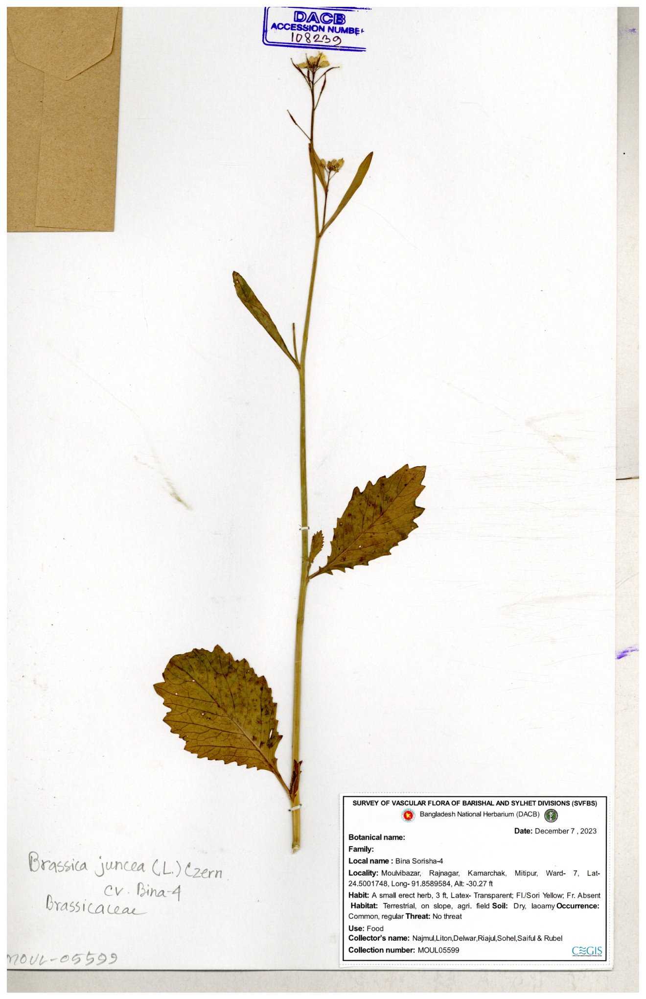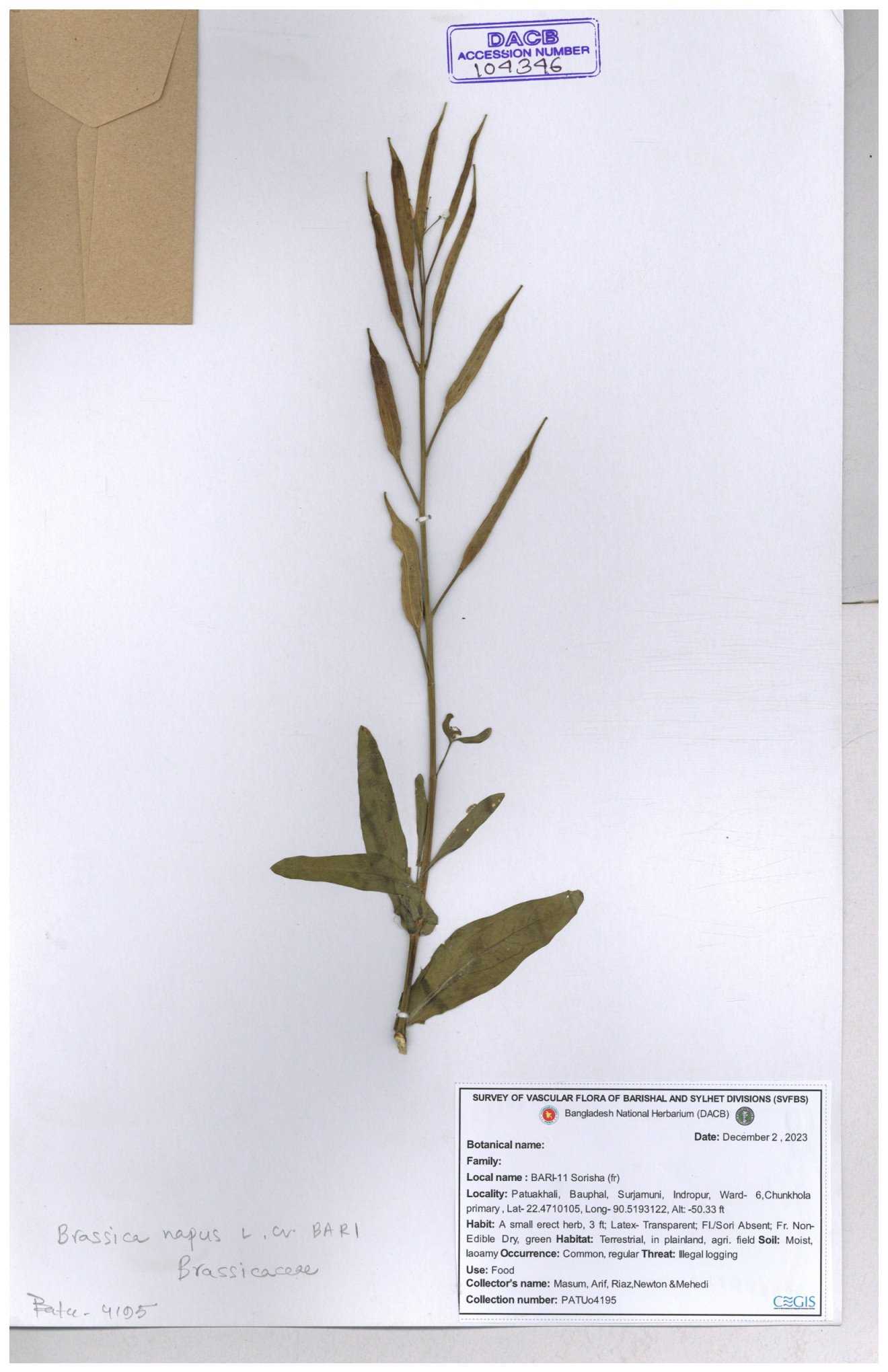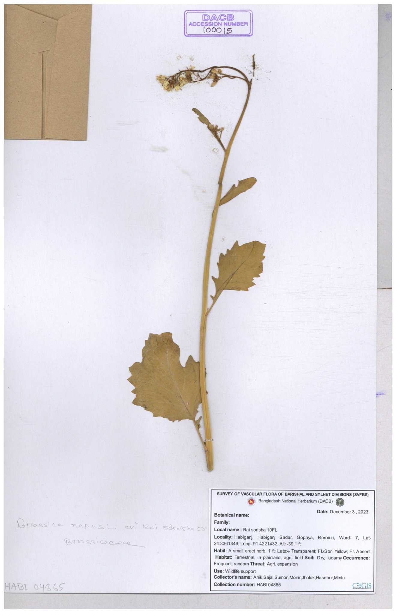 | 130598 | Brassicaceae | Rorippa dubia | Anik, Jholok, Mintu, Sajal | 30-11--0001 |