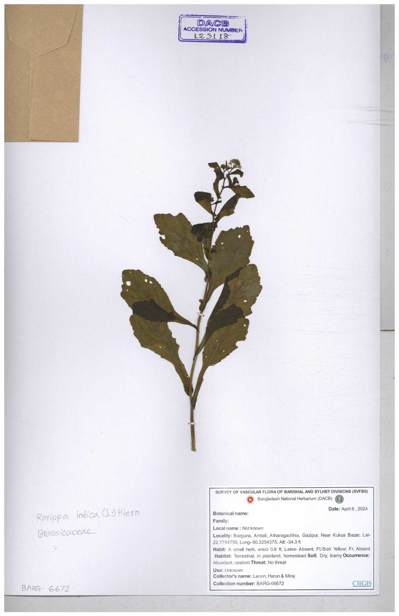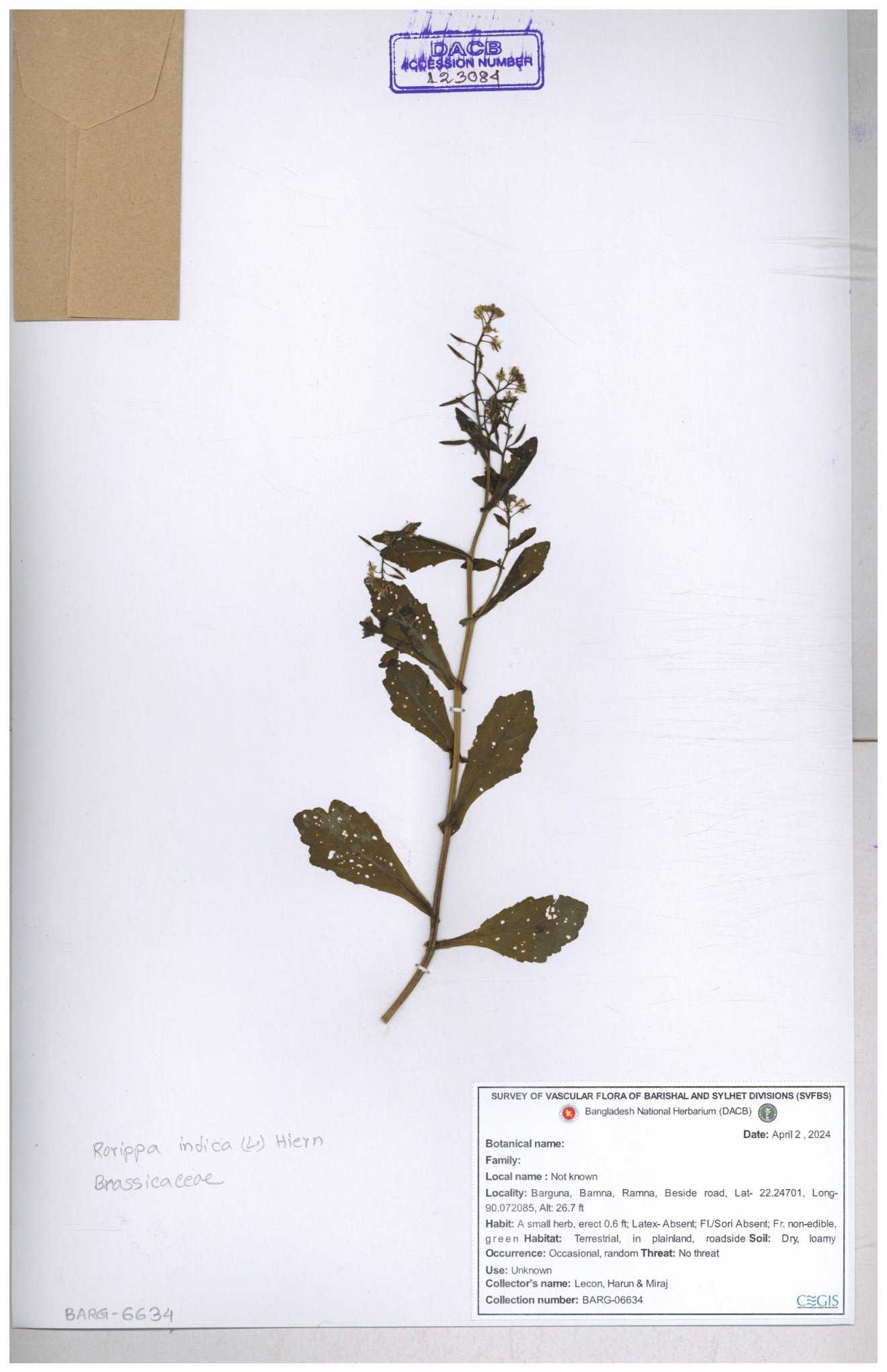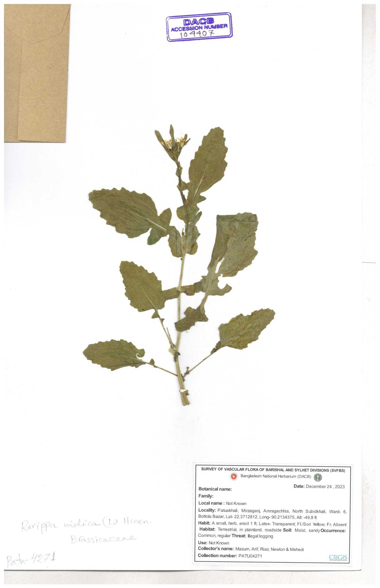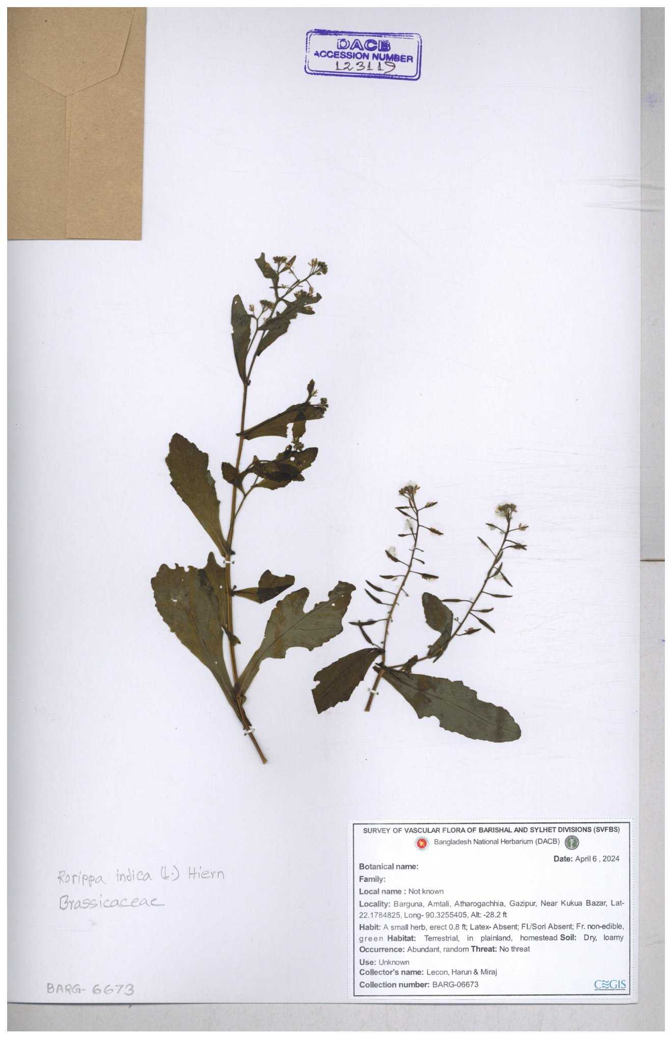 | 120501 | Brassicaceae | Rorippa benghalensis | 30-11--0001 |