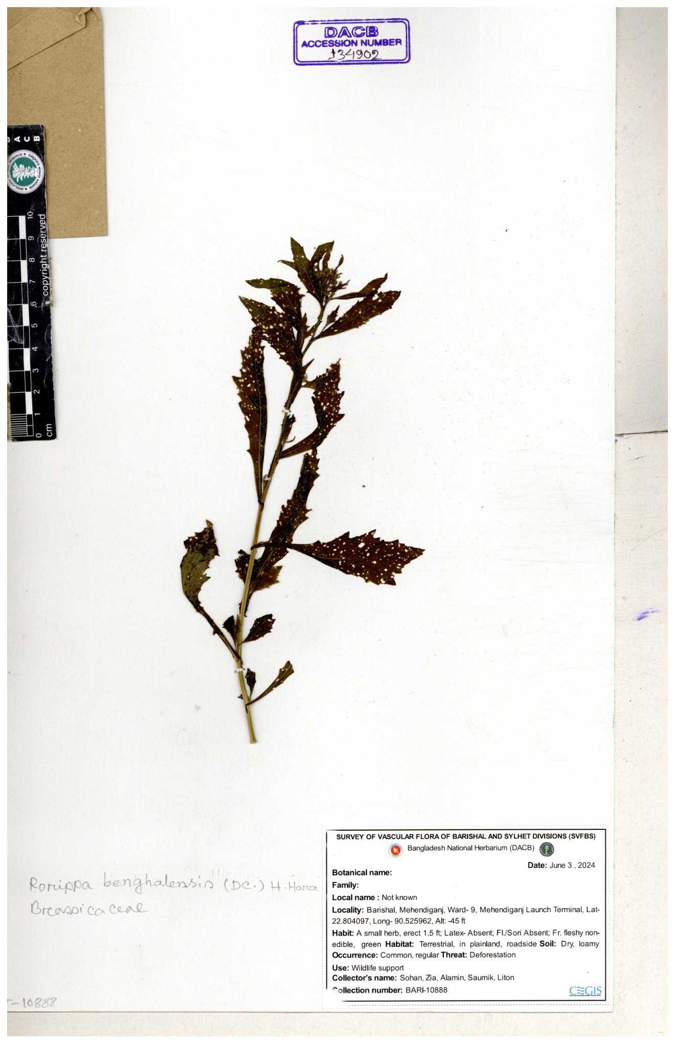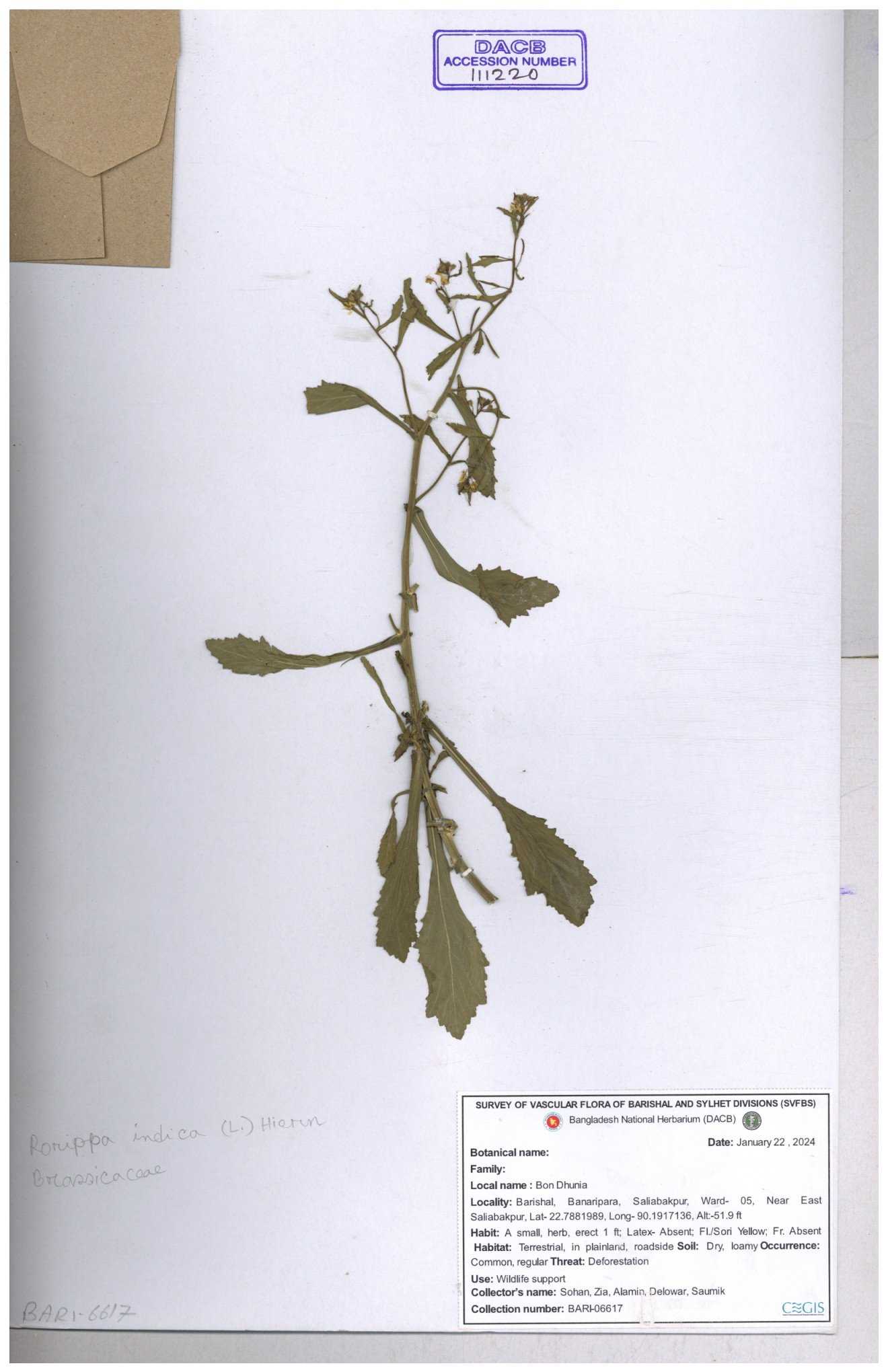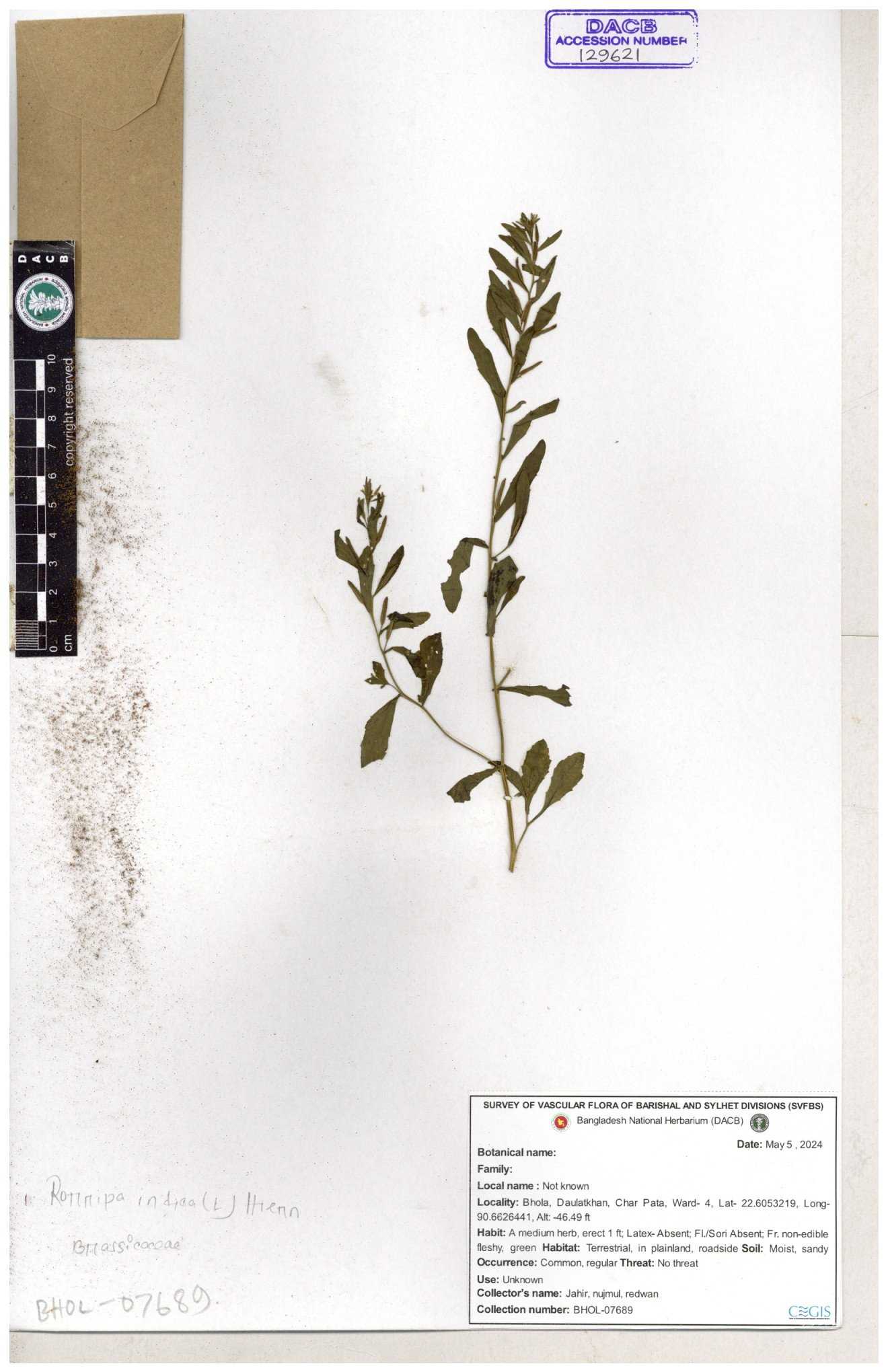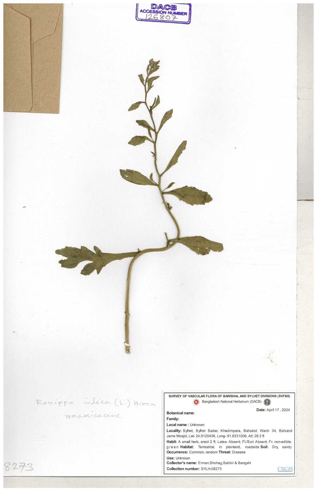 | 120501 | Brassicaceae | Rorippa benghalensis | 30-11--0001 |