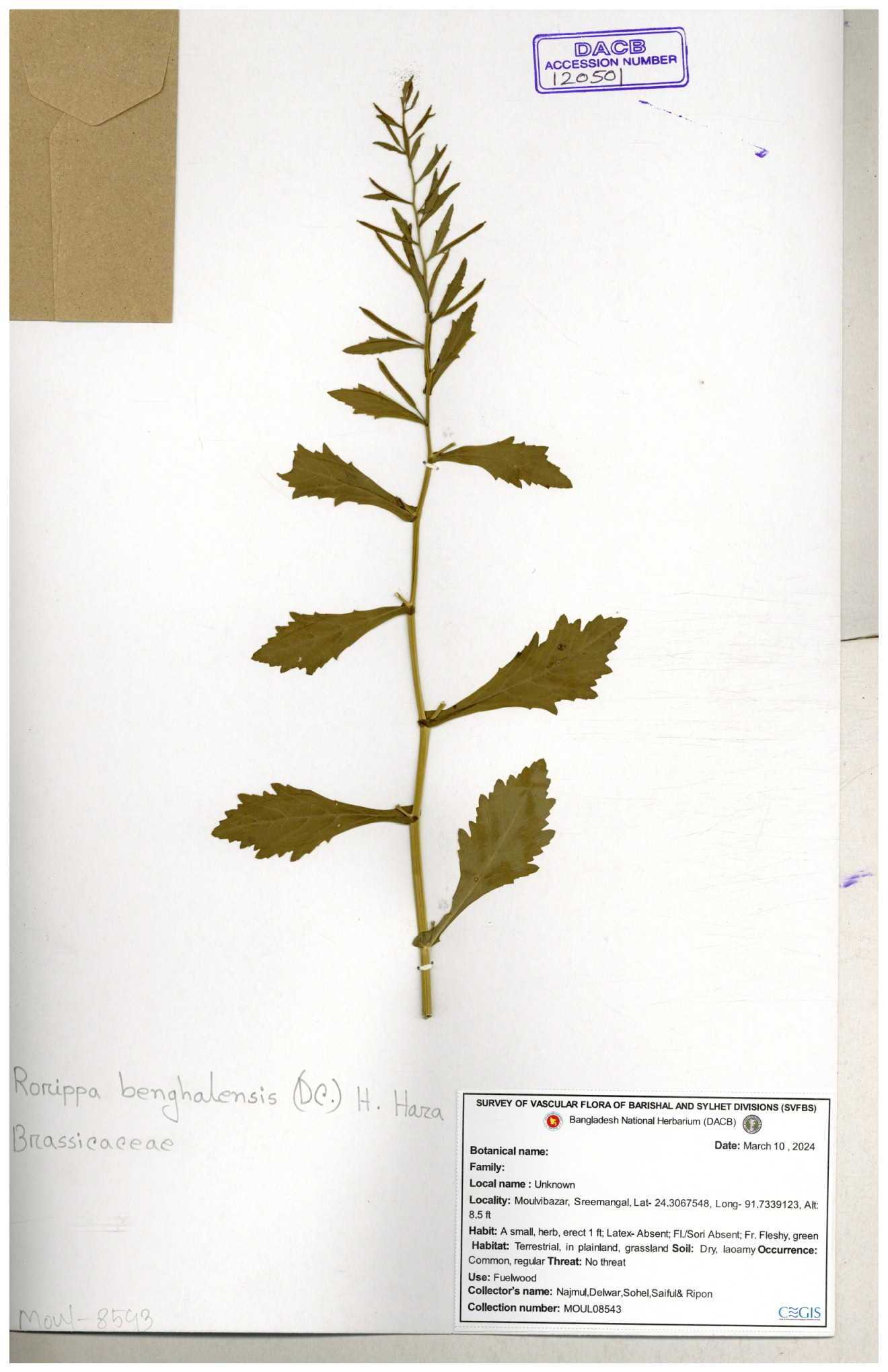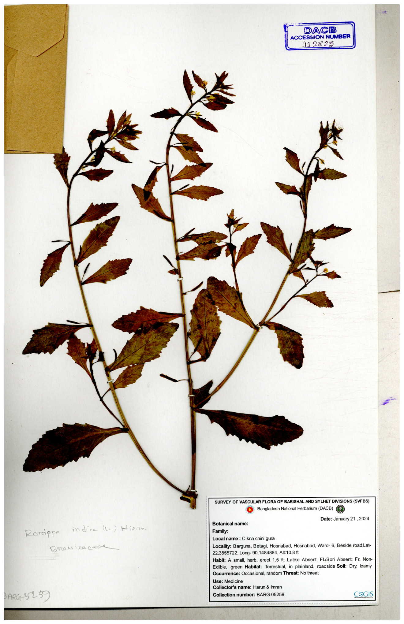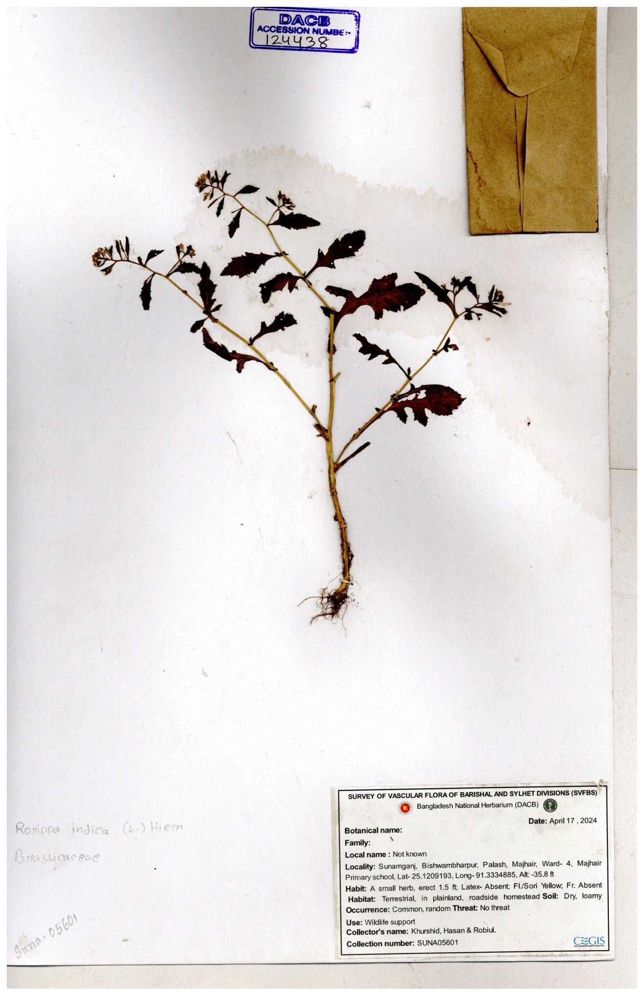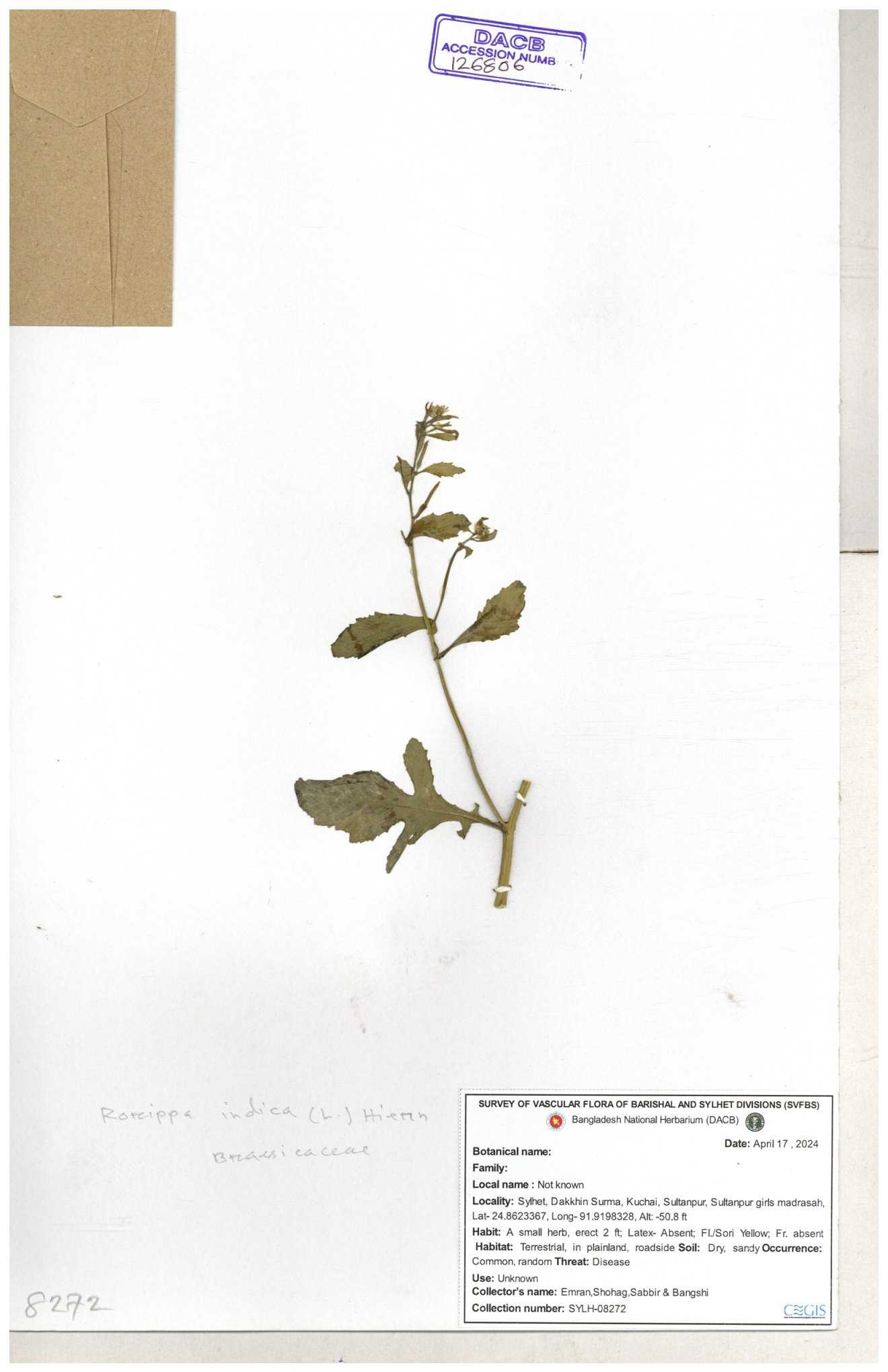 | 120501 | Brassicaceae | Rorippa benghalensis | 30-11--0001 |