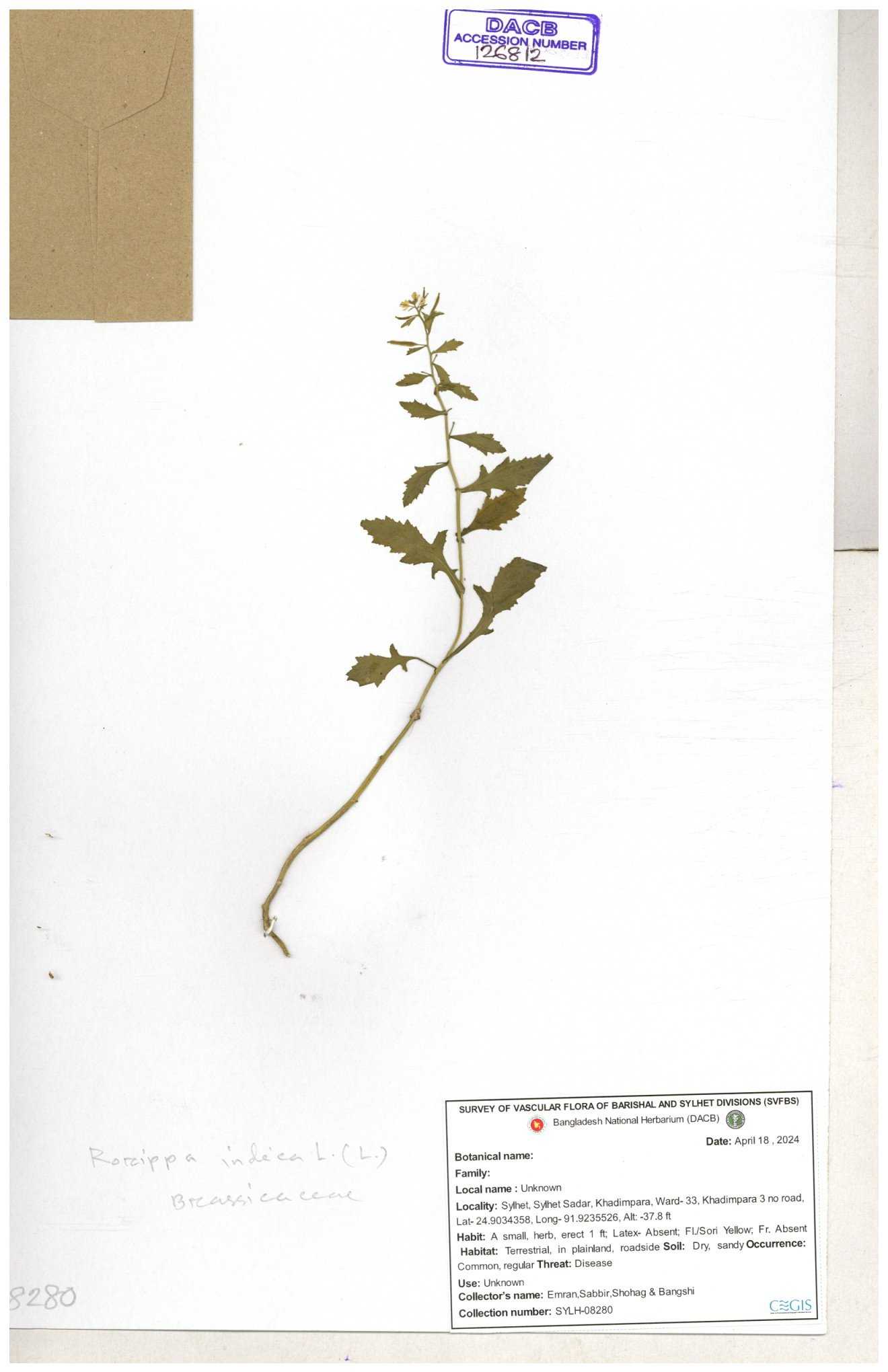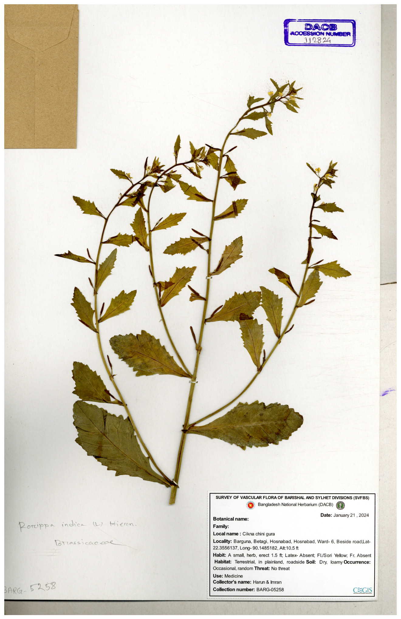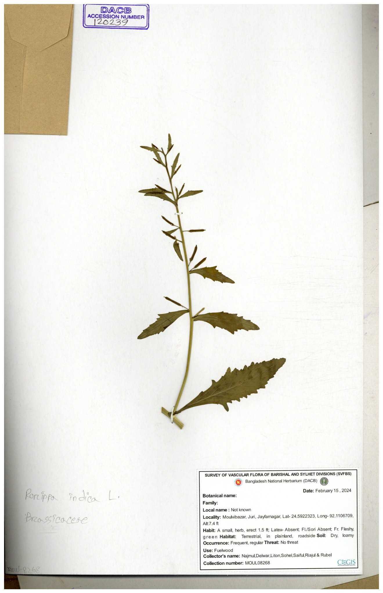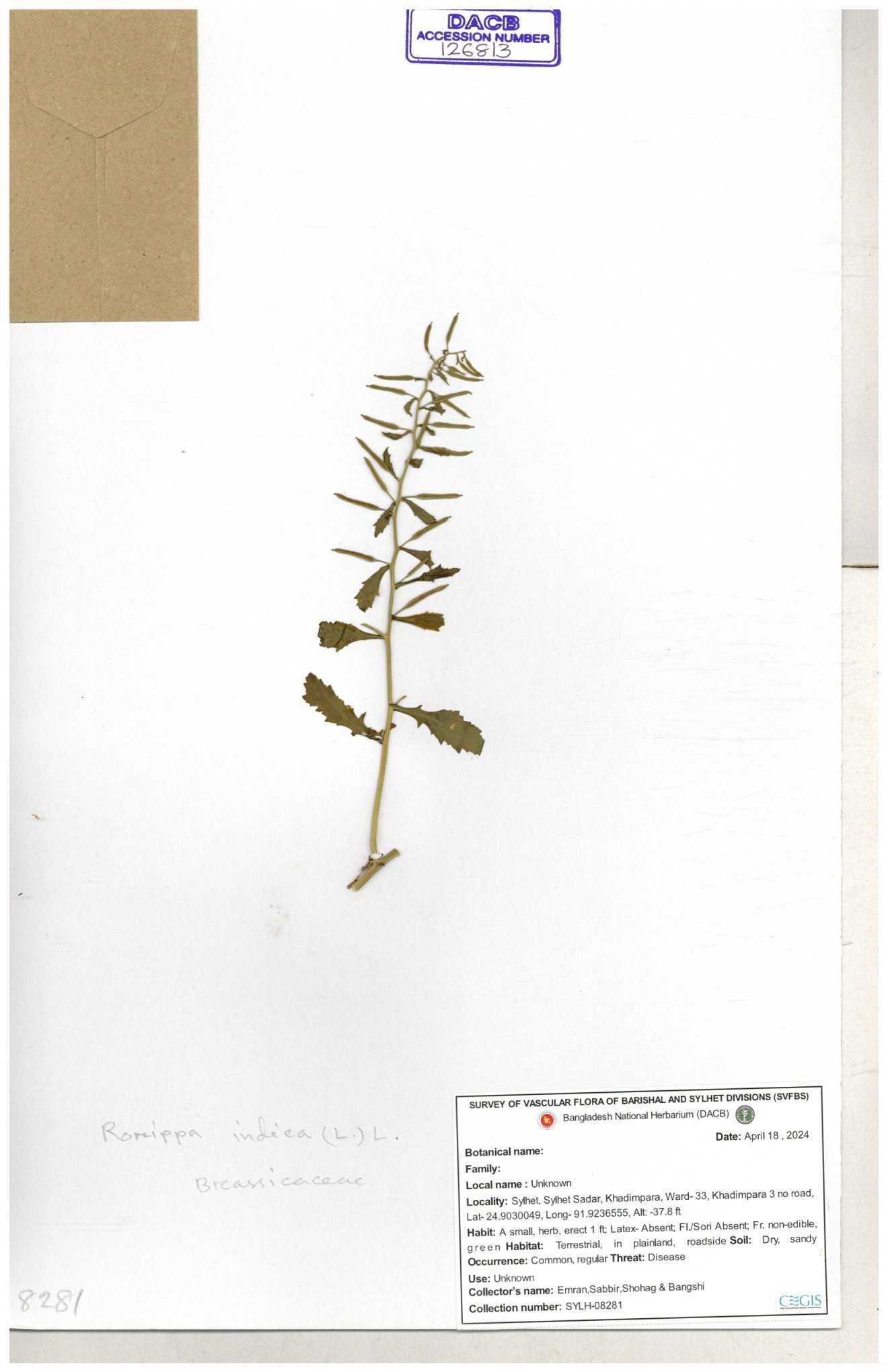 | 120501 | Brassicaceae | Rorippa benghalensis | 30-11--0001 |