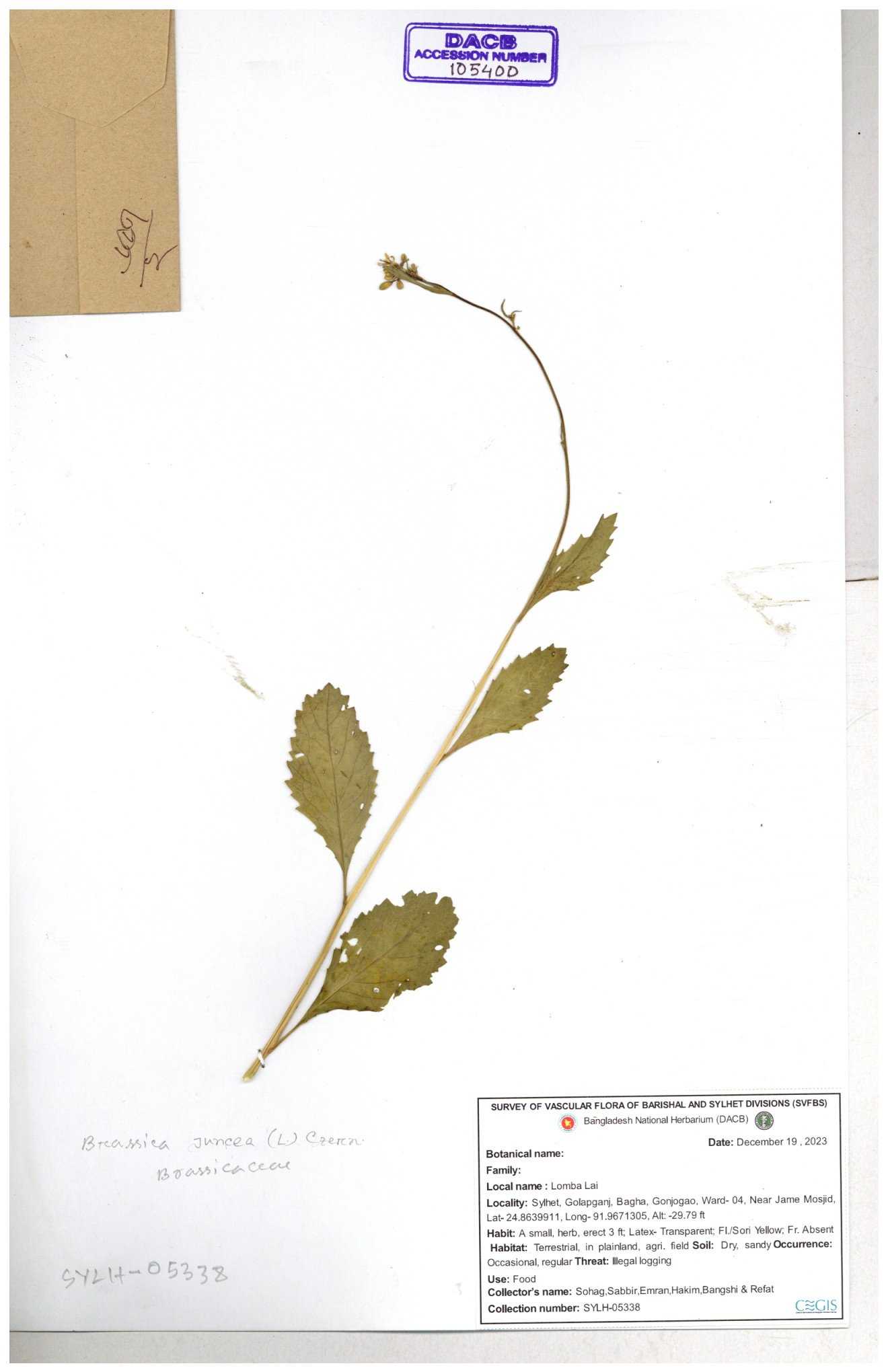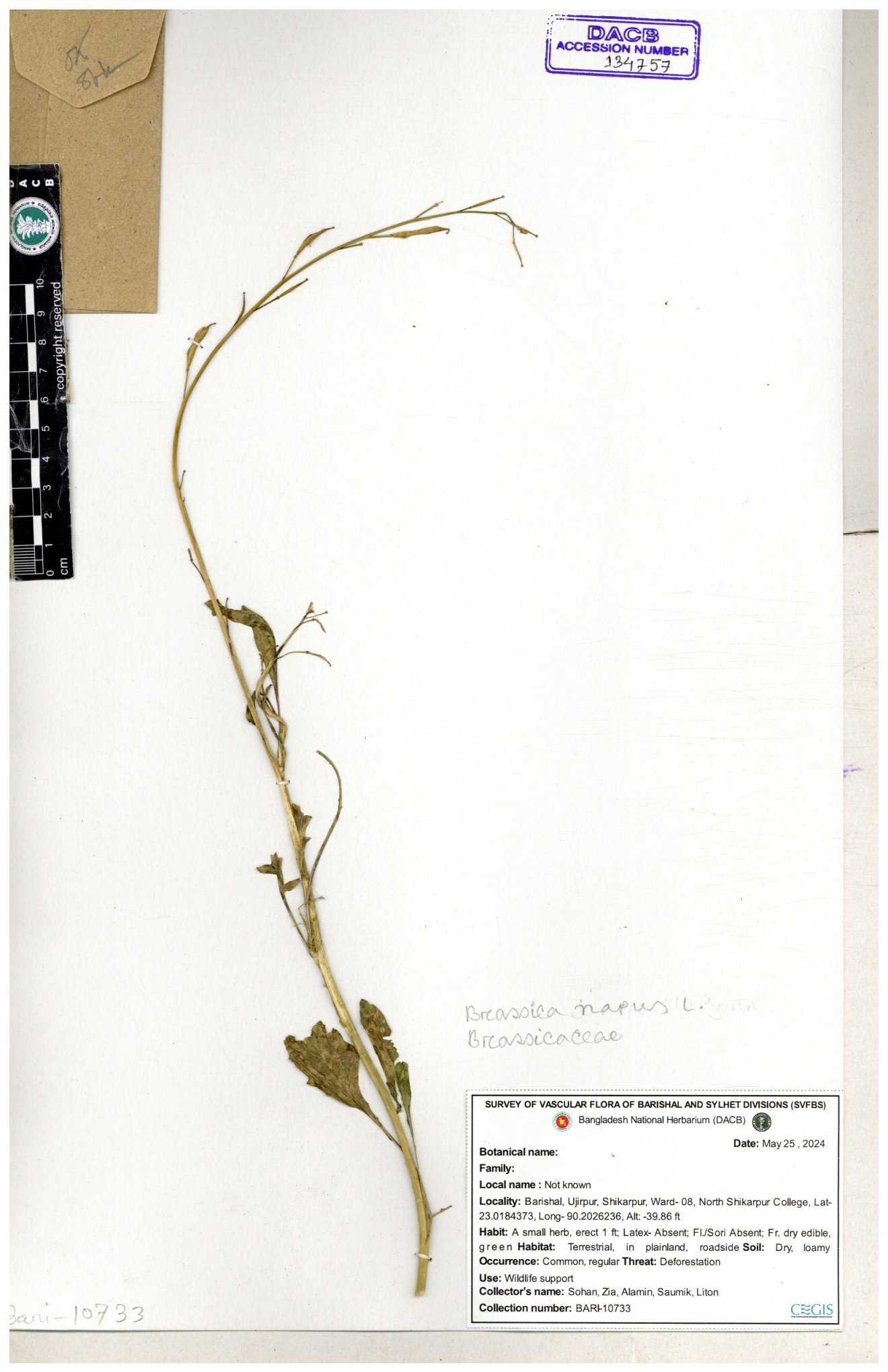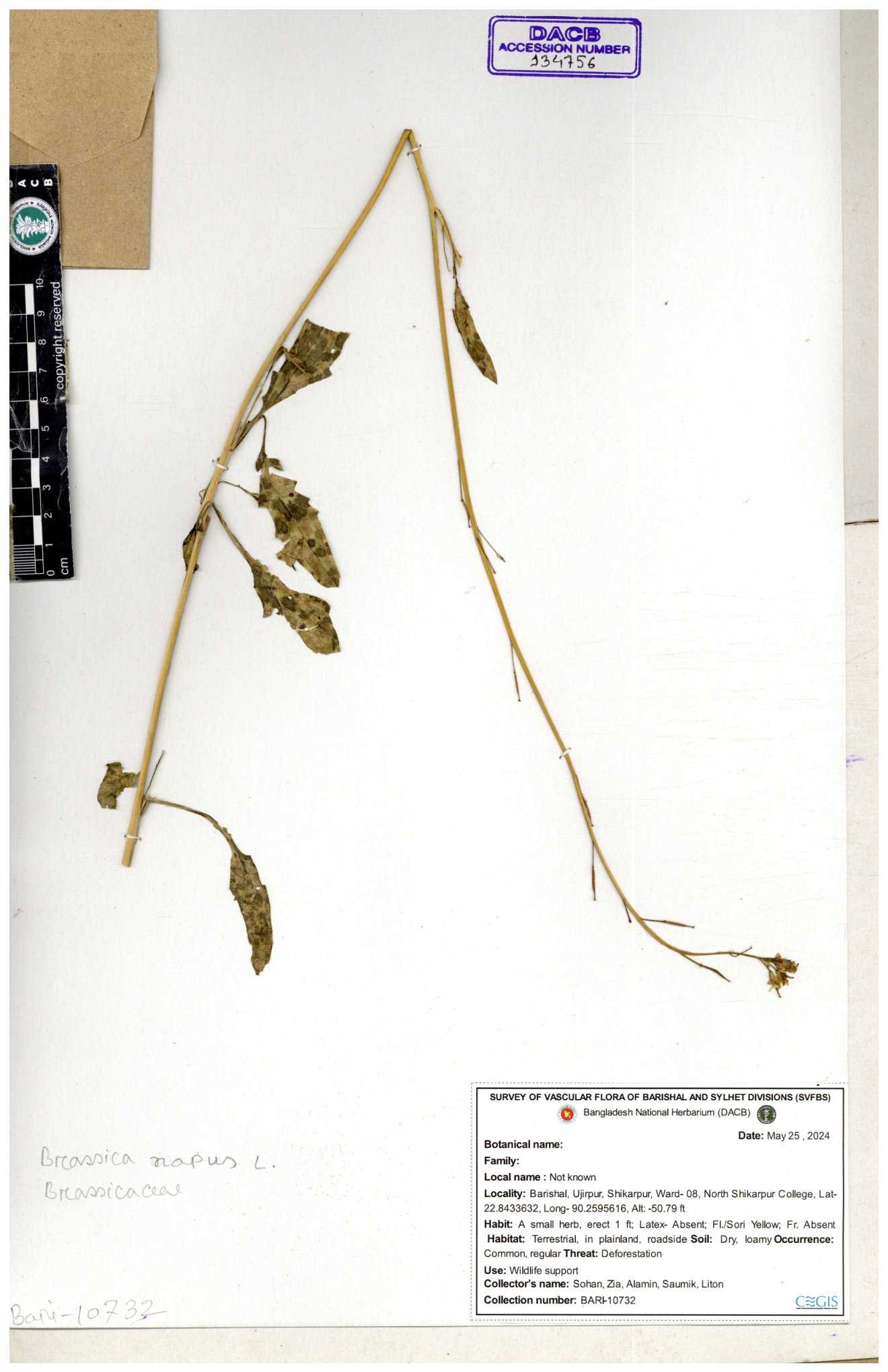 | 47207 | Brassicaceae | Capsella bursa-pastoris (L.) Medik | Dr. Mahbuba Sulatana | DMS-2501 23-01-2019 |