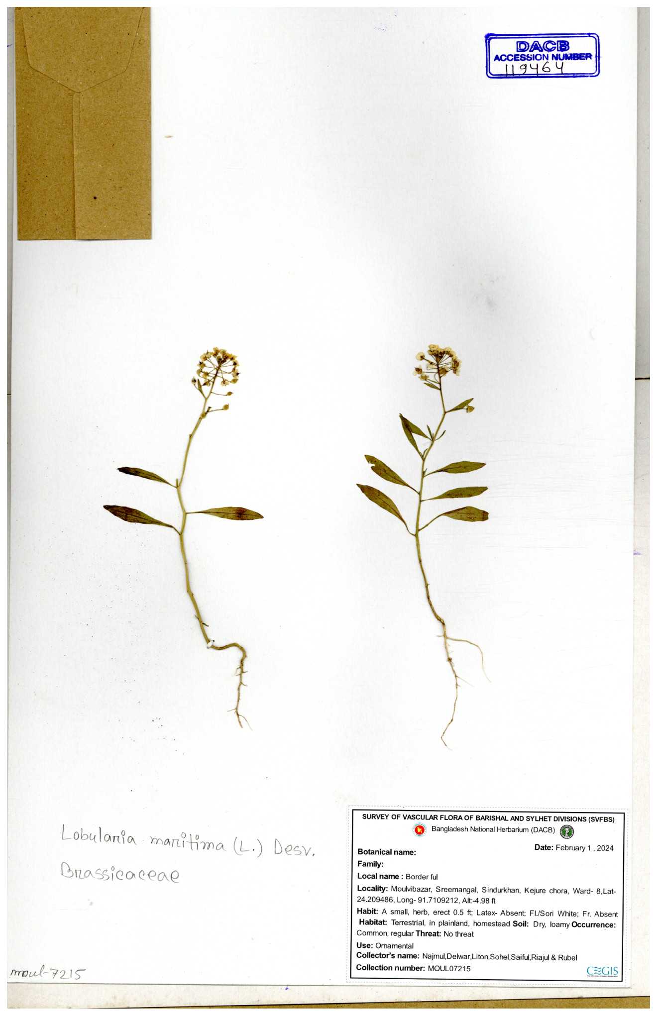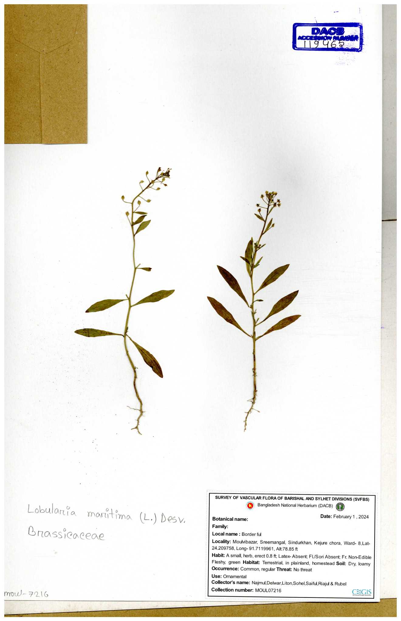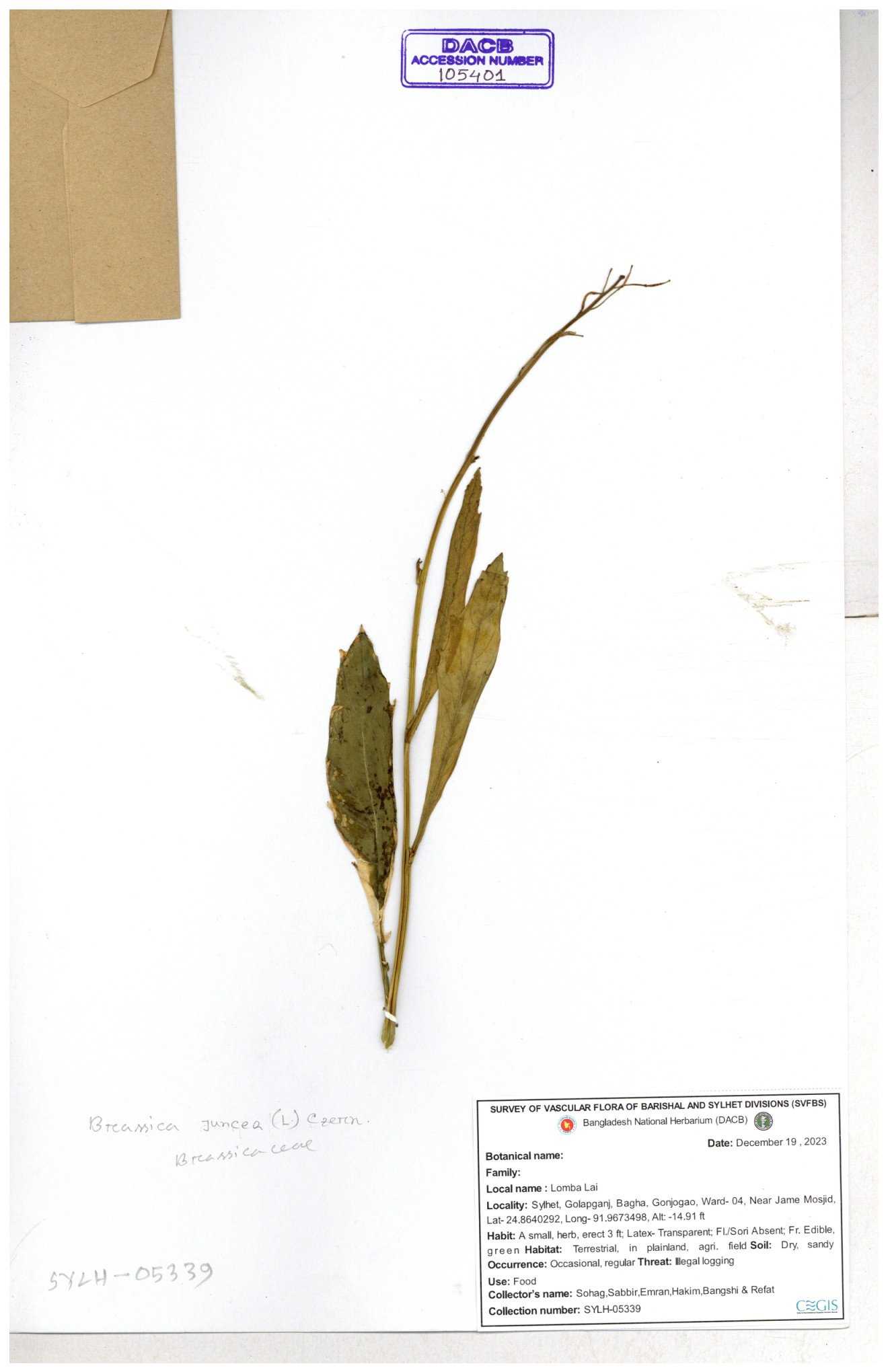| 47207 | Brassicaceae | Capsella bursa-pastoris (L.) Medik | Dr. Mahbuba Sulatana | DMS-2501 23-01-2019 |