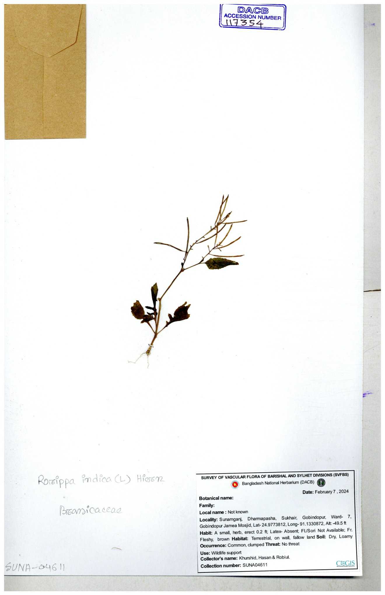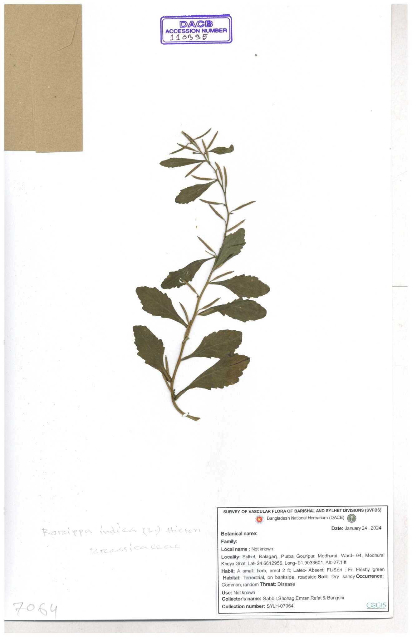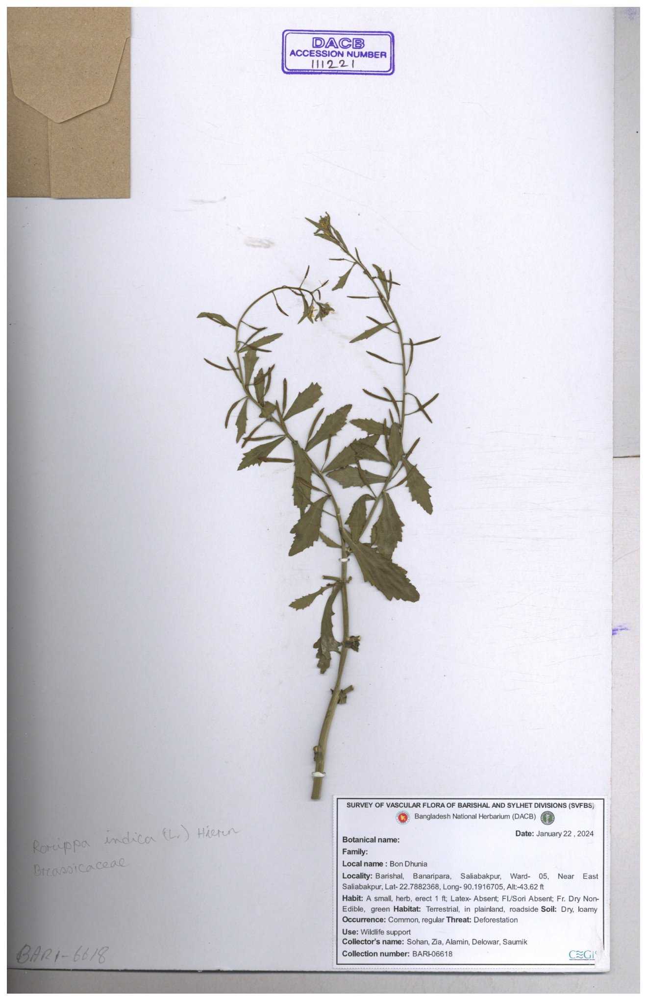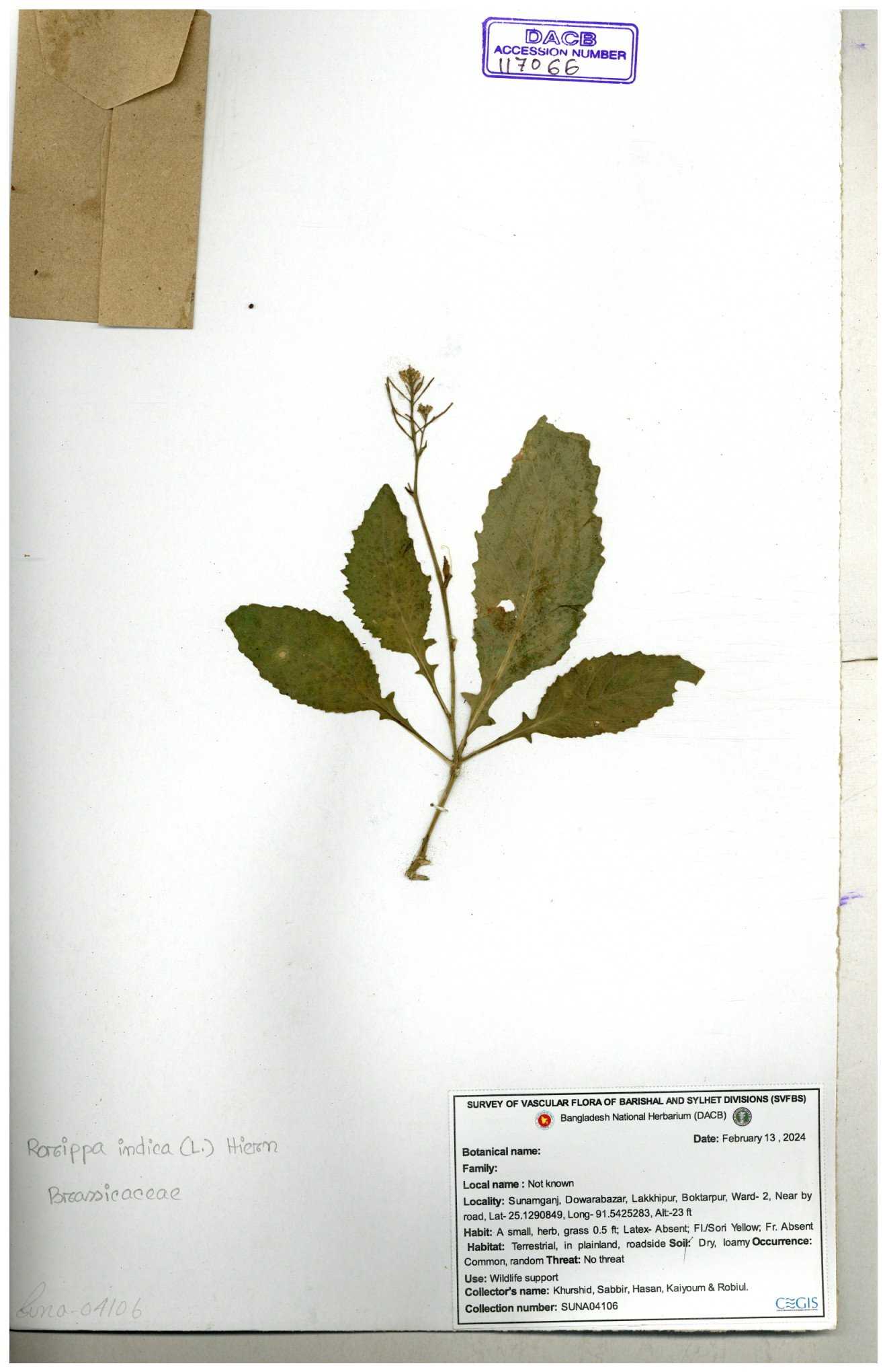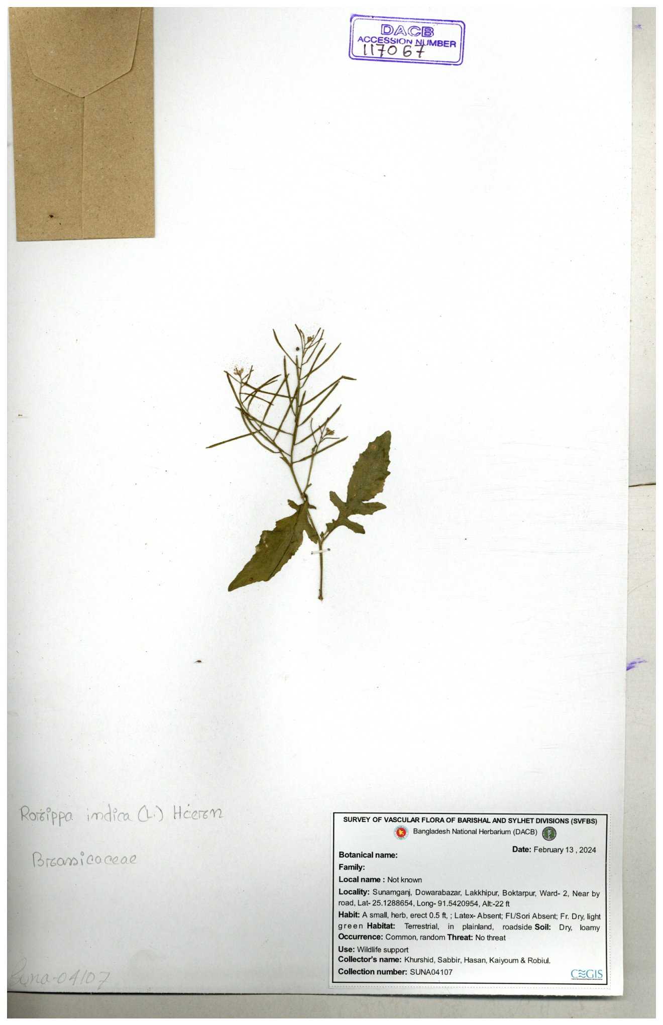 | 116043 | Brassicaceae | Rorippa benghalensis | 30-11--0001 |