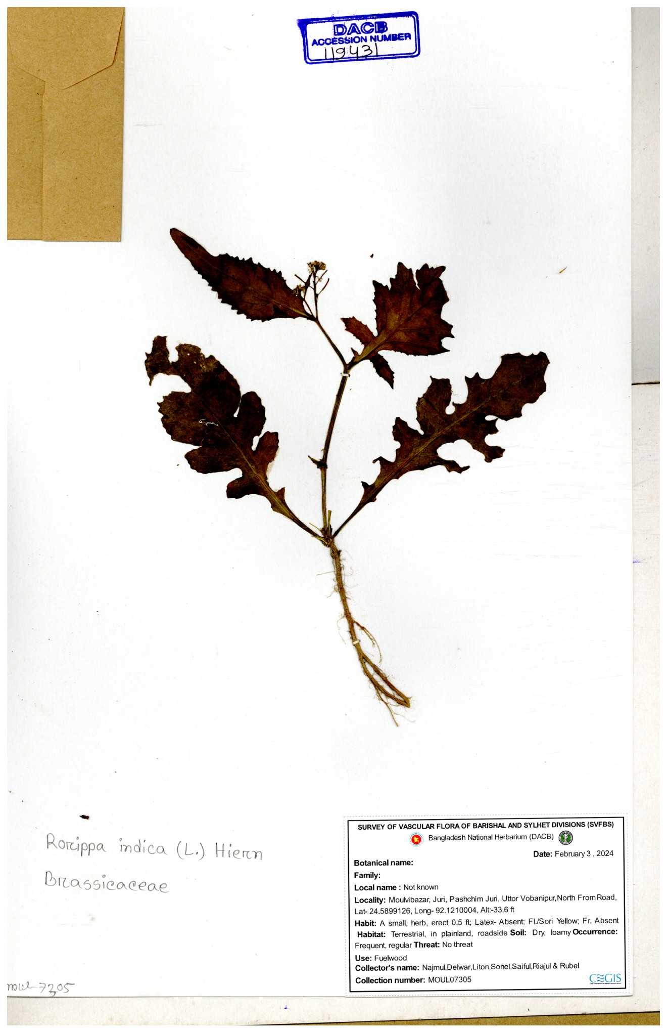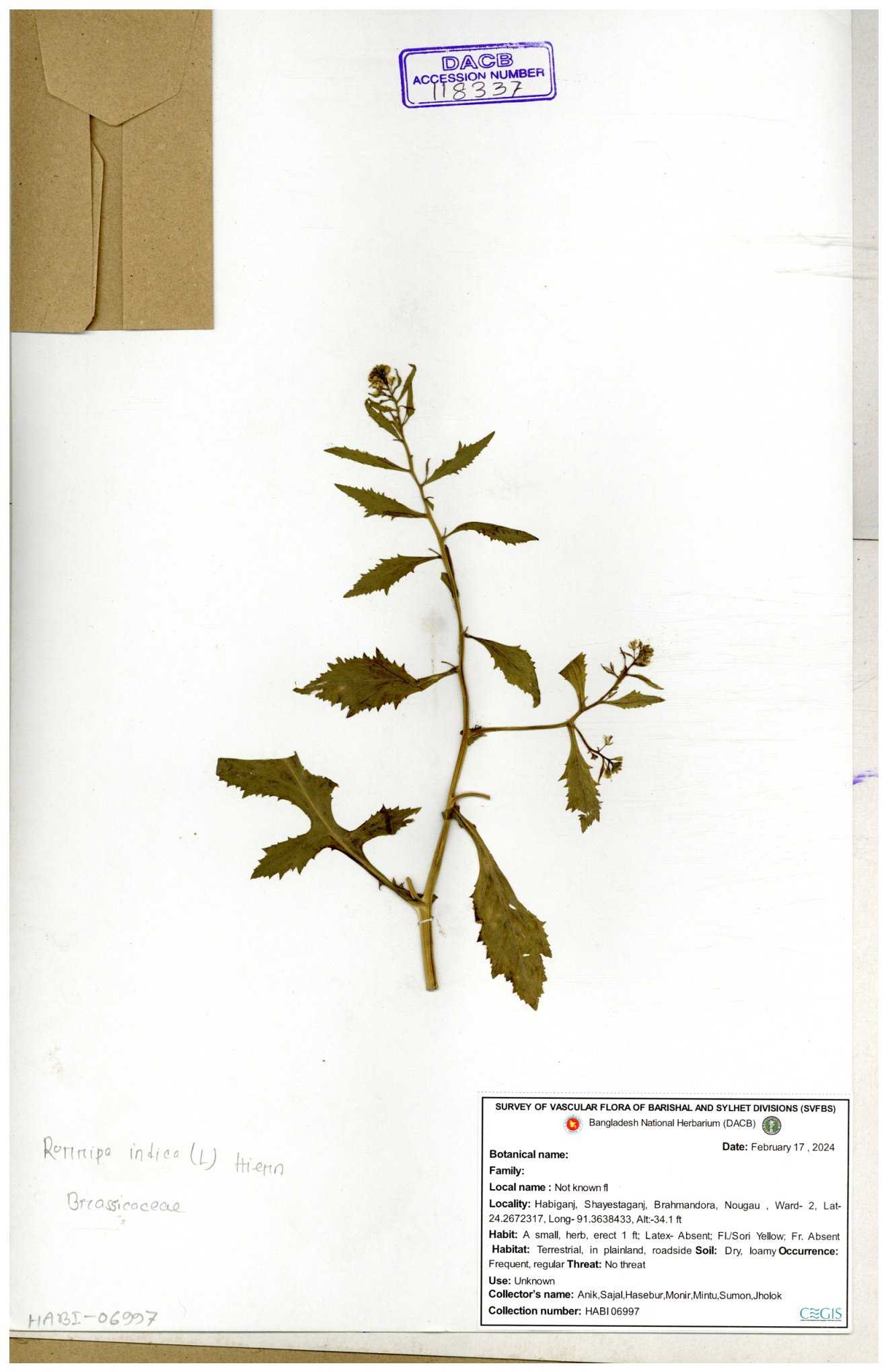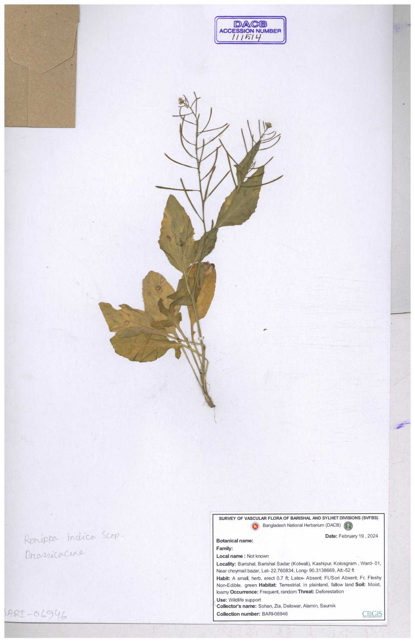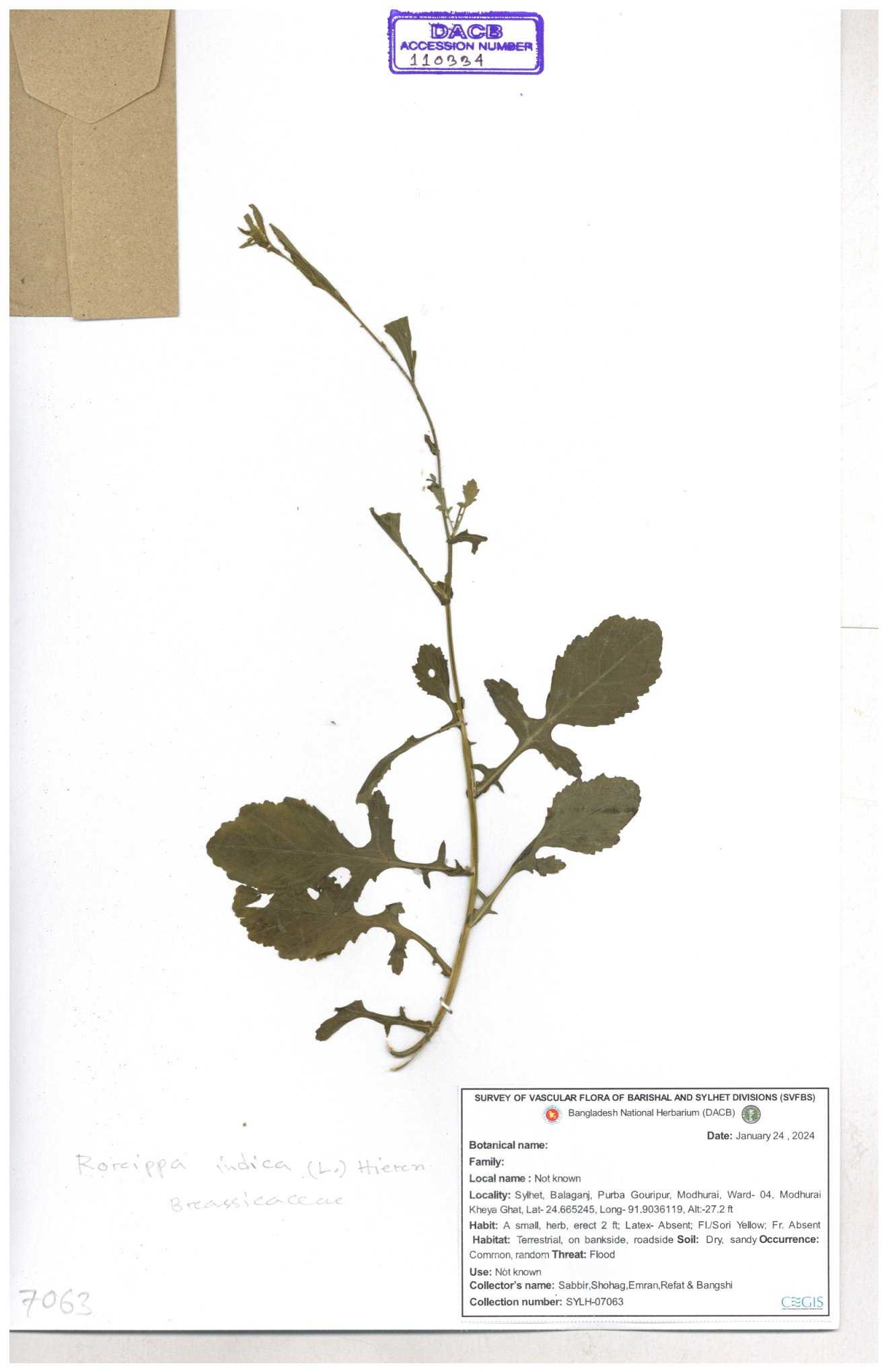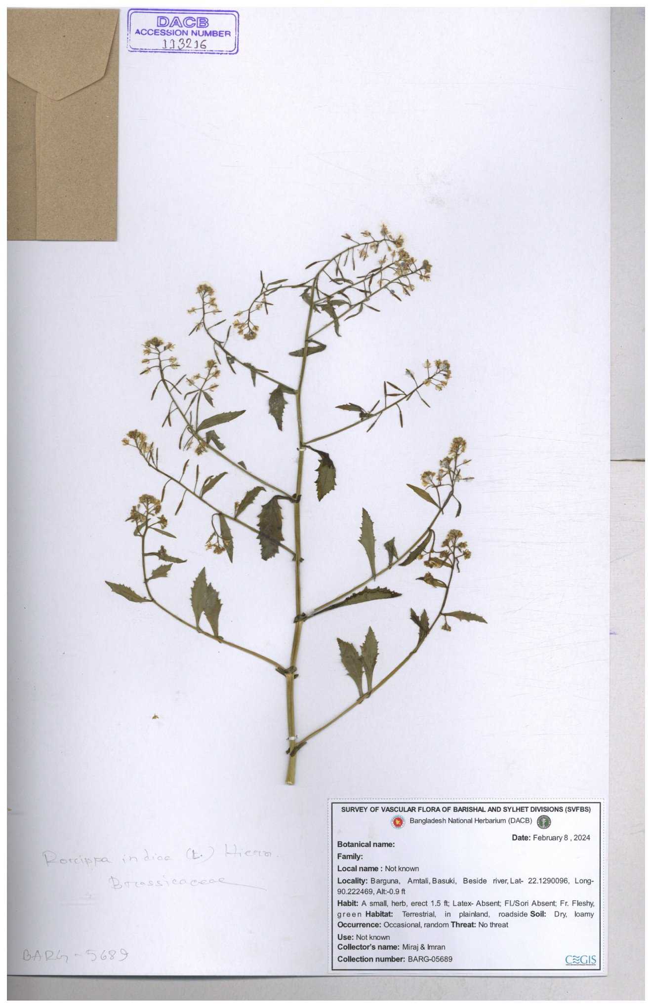 | 116043 | Brassicaceae | Rorippa benghalensis | 30-11--0001 |