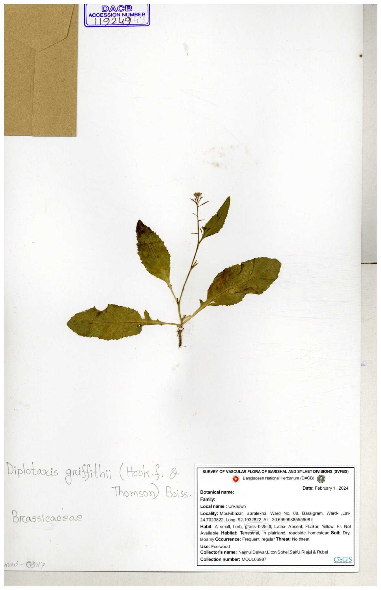 | 119249 | Brassicaceae | Diplotaxis griffithii | 30-11--0001 |