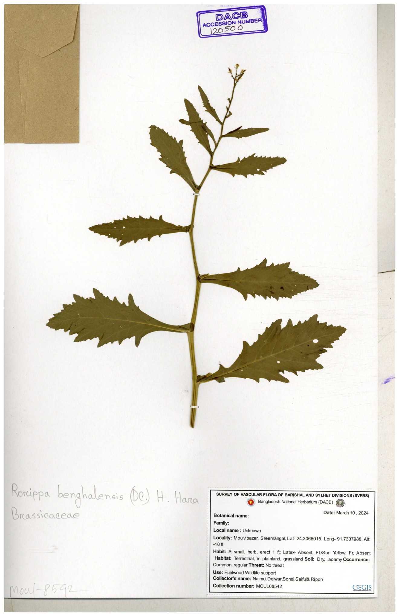 | 120500 | Brassicaceae | Rorippa benghalensis | 30-11--0001 |