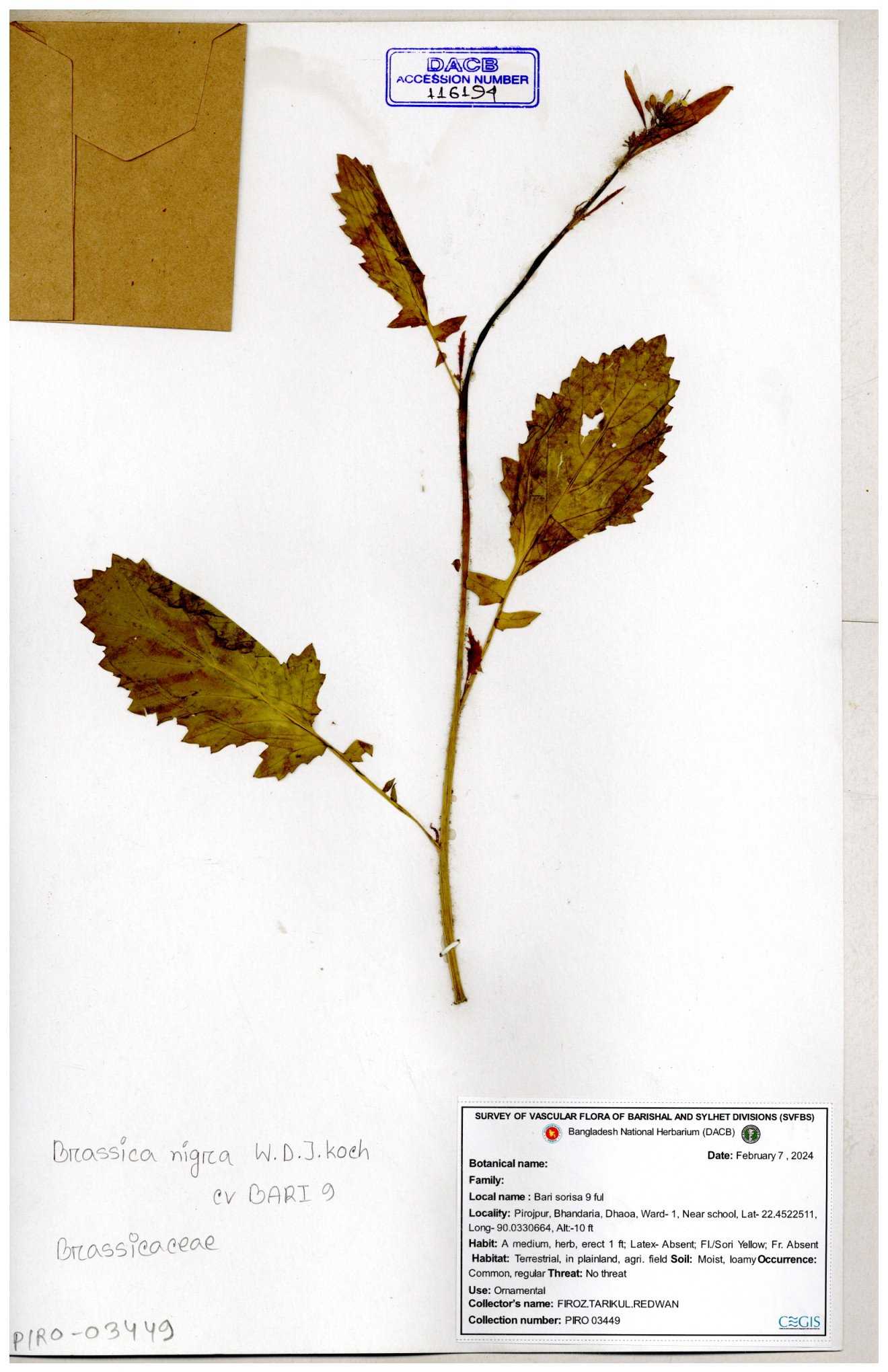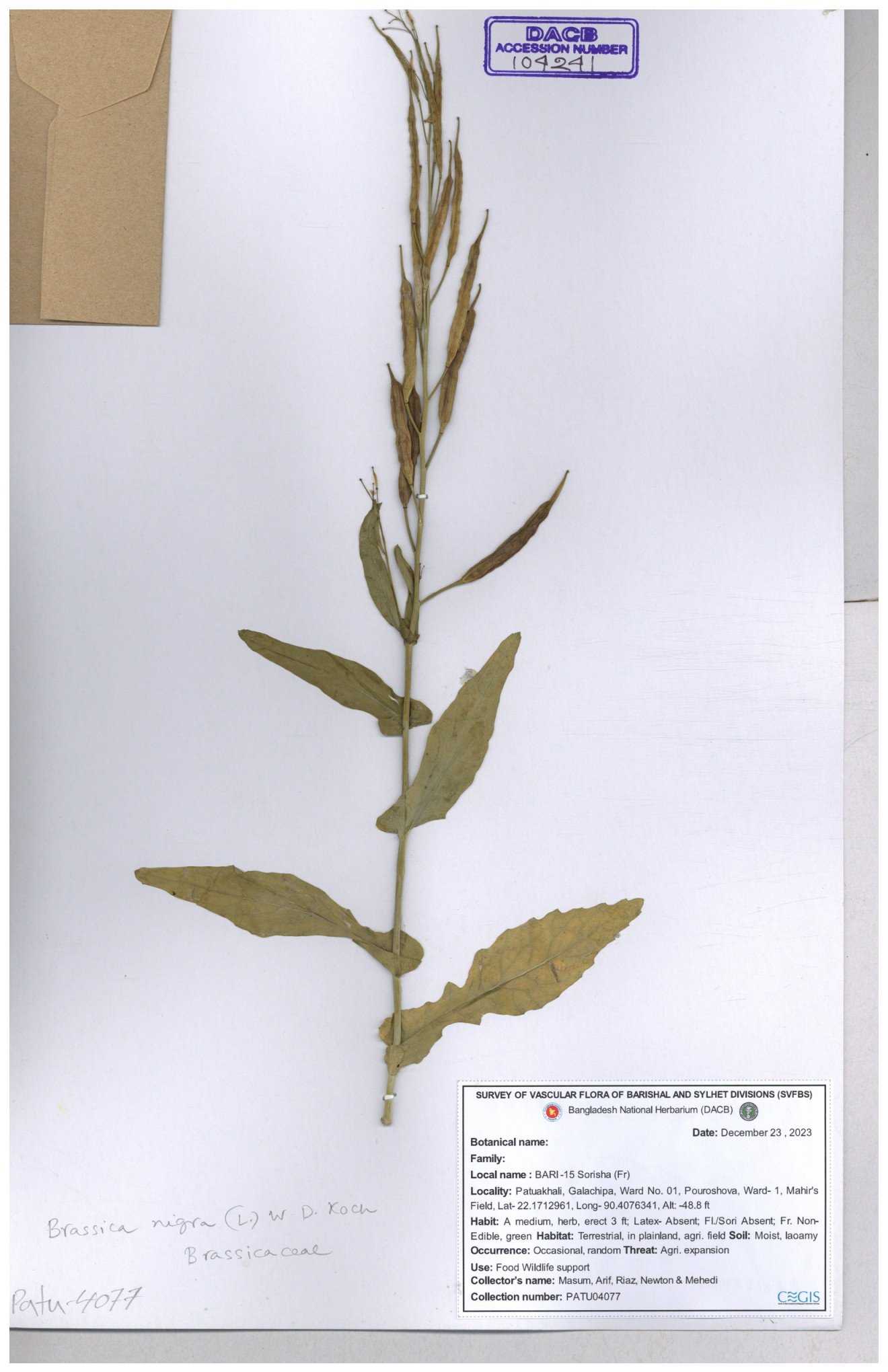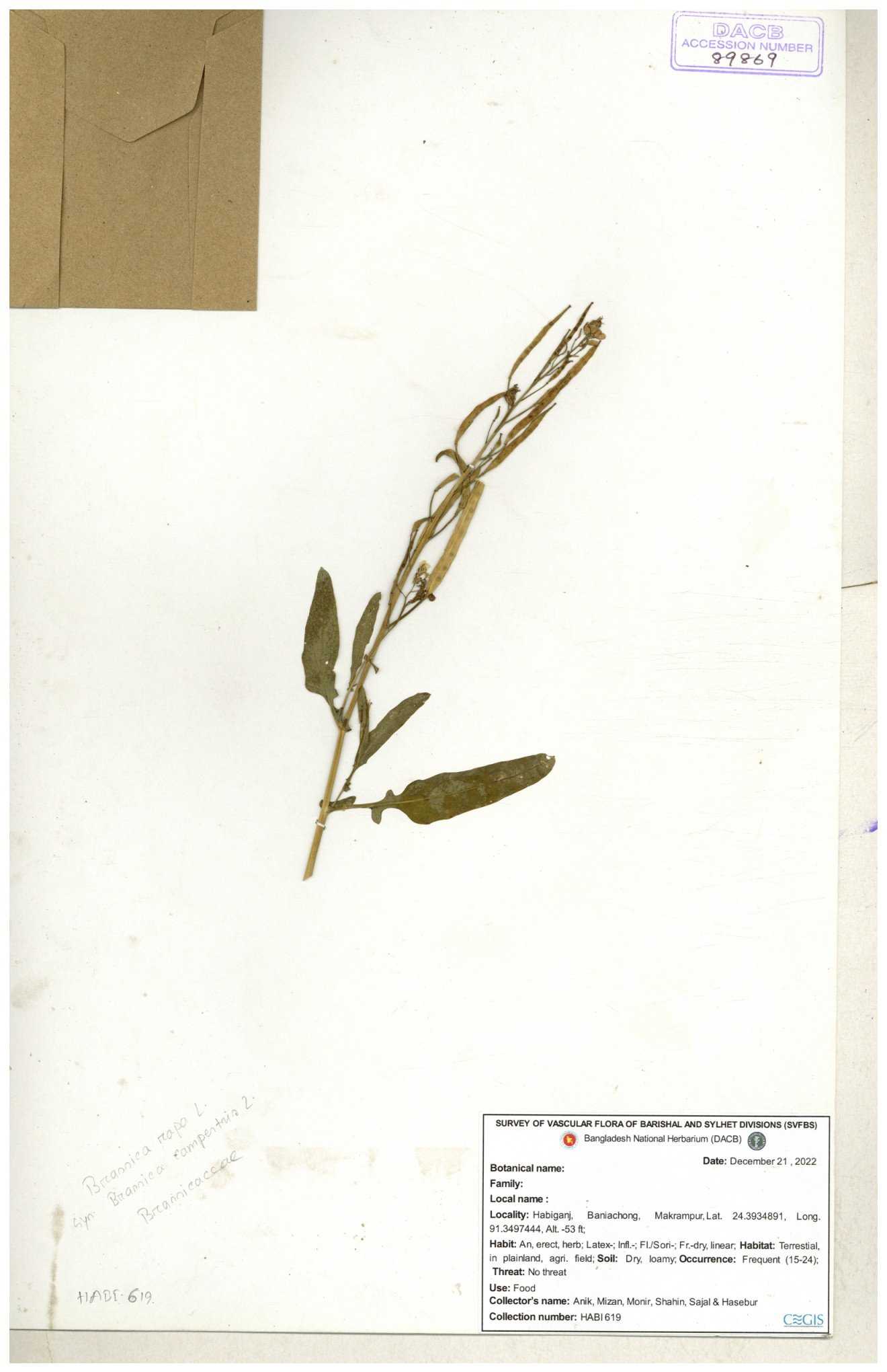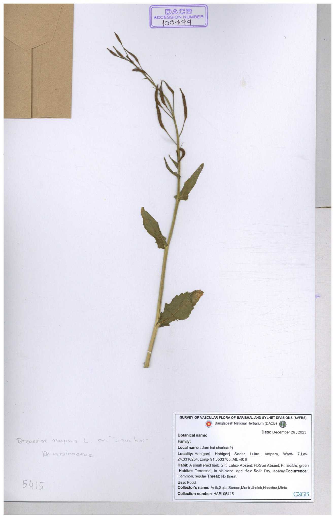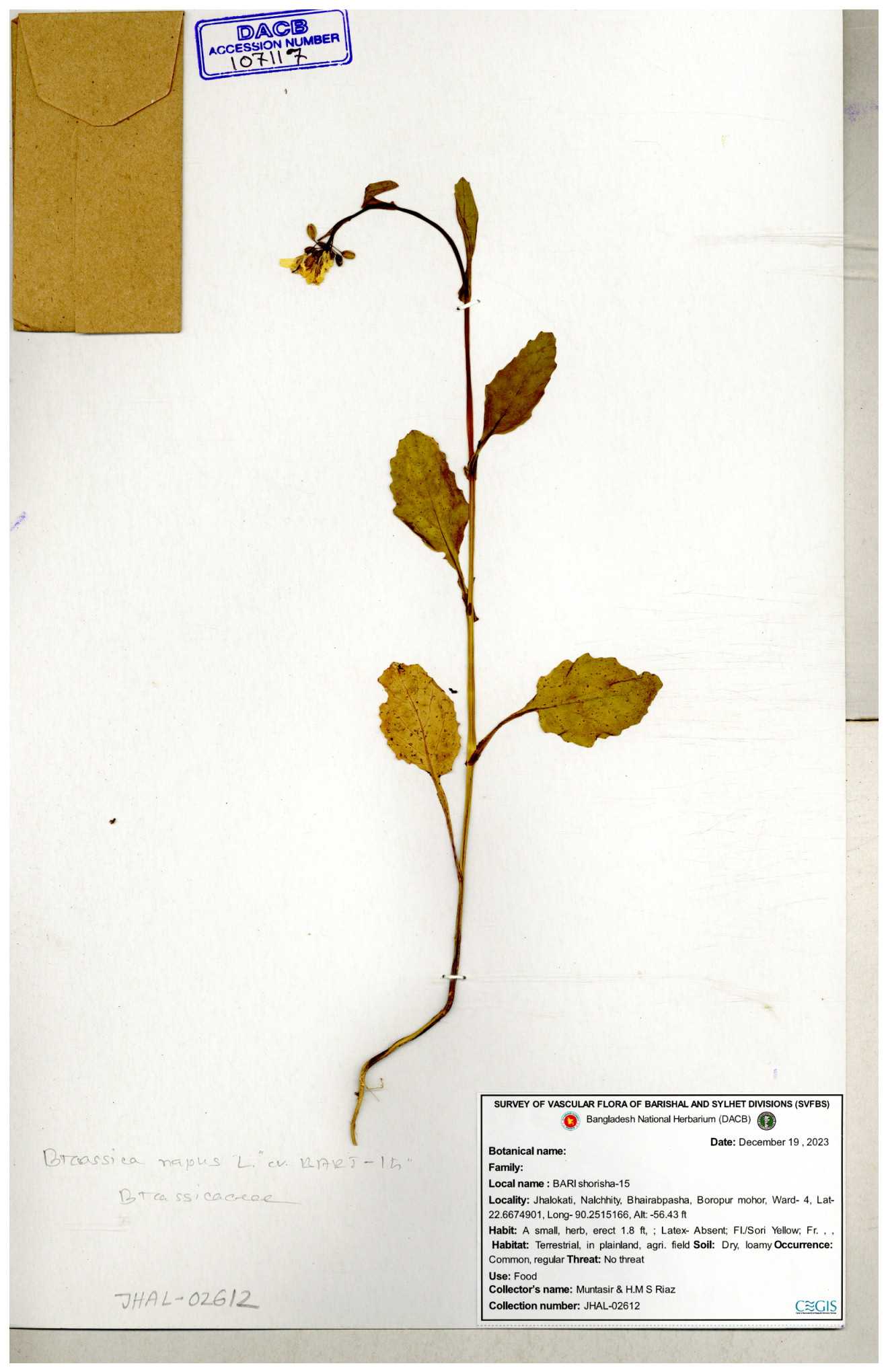 | 8361 | Brassicaceae | Brassica sp. | Huq et all | H. 3779 17-01-1978 |