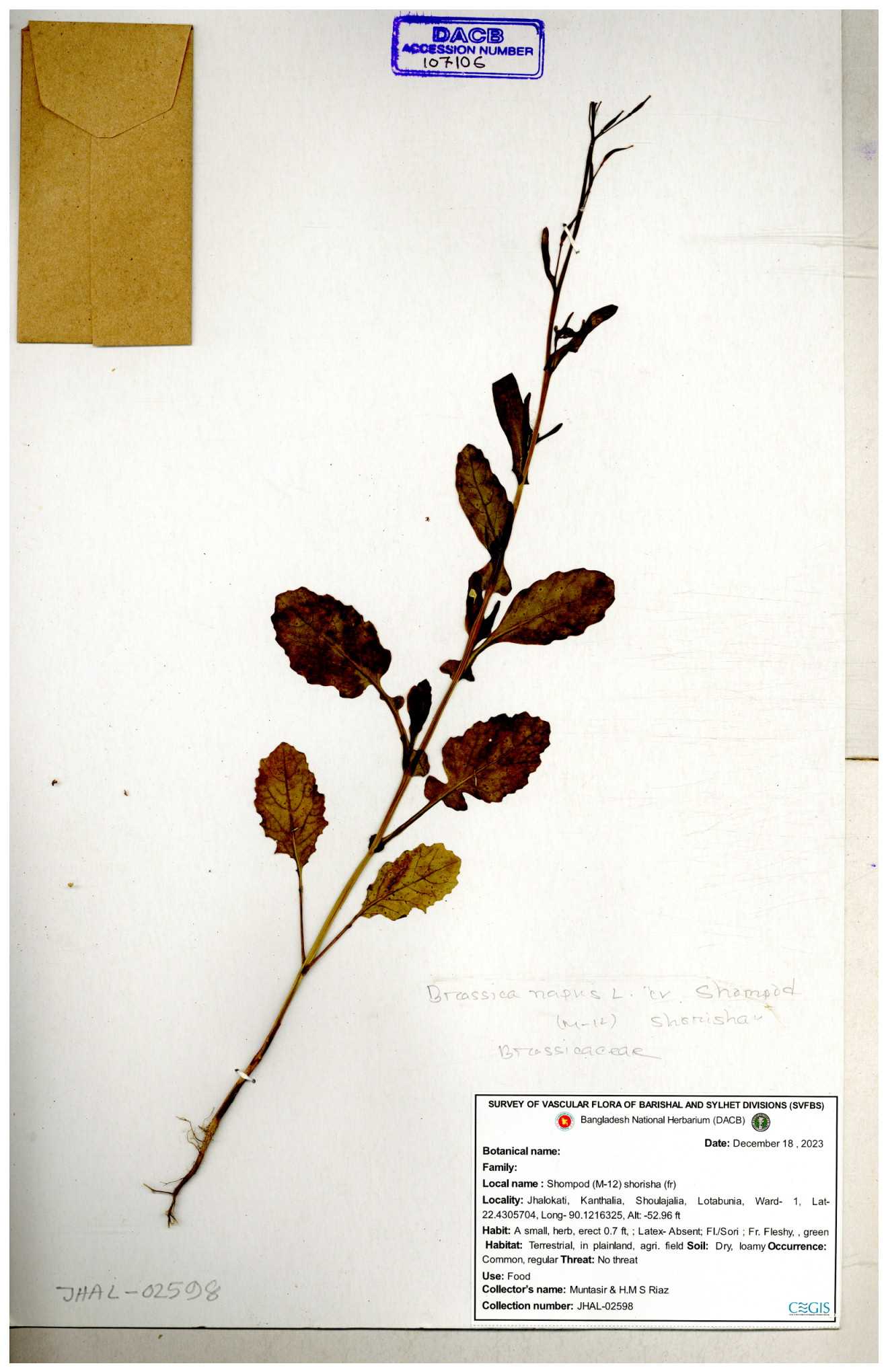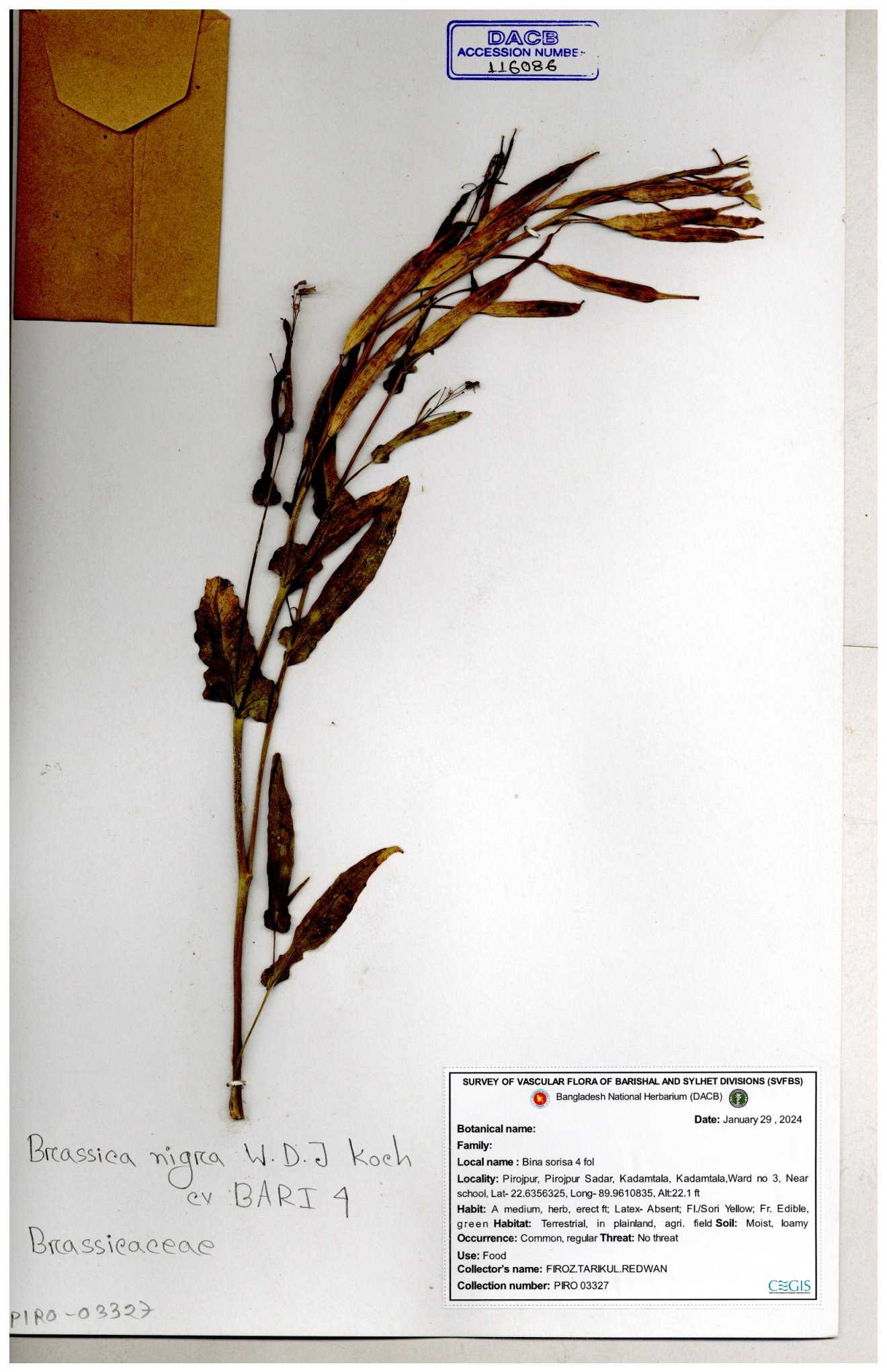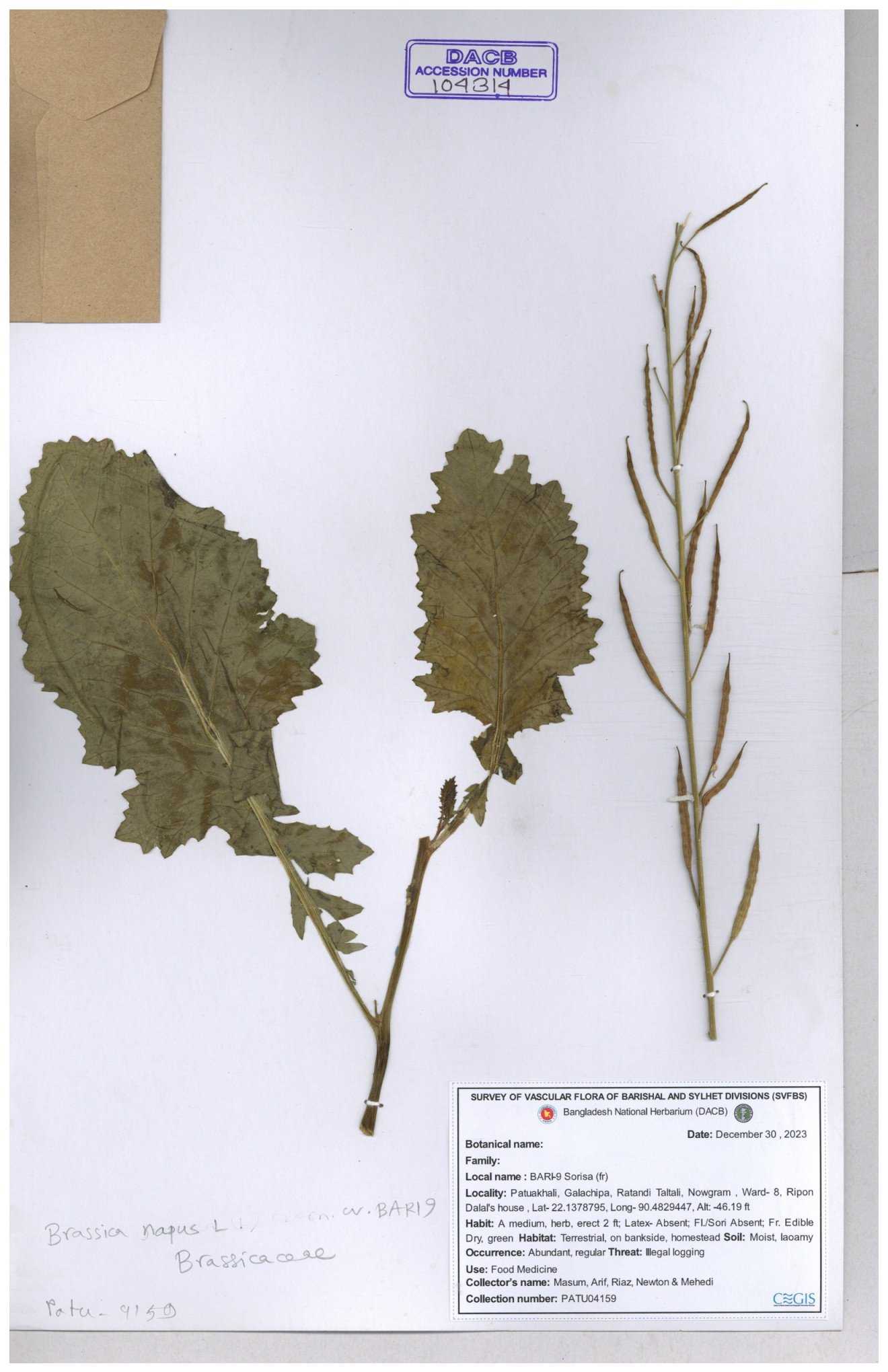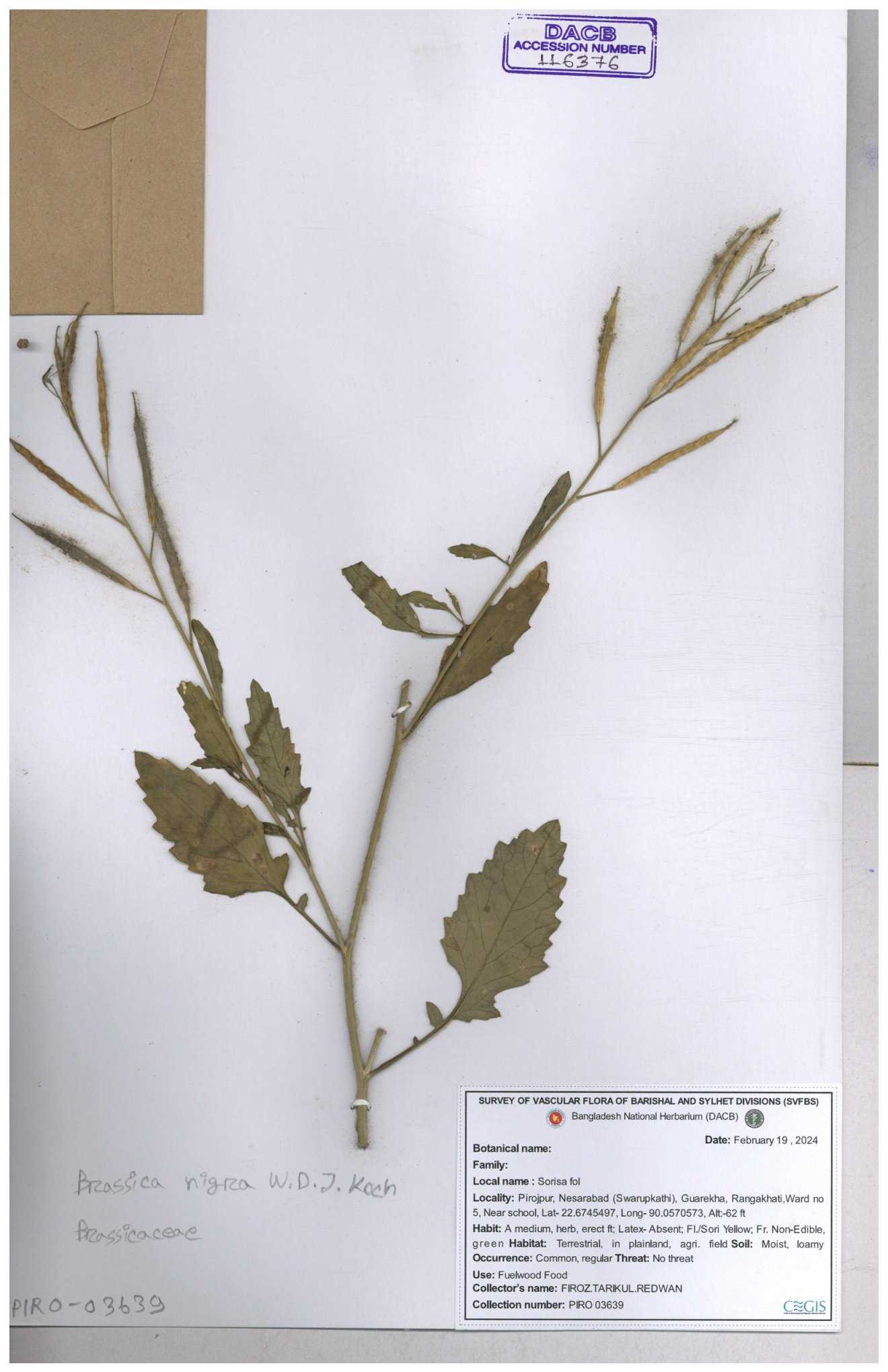 | 8361 | Brassicaceae | Brassica sp. | Huq et all | H. 3779 17-01-1978 |
