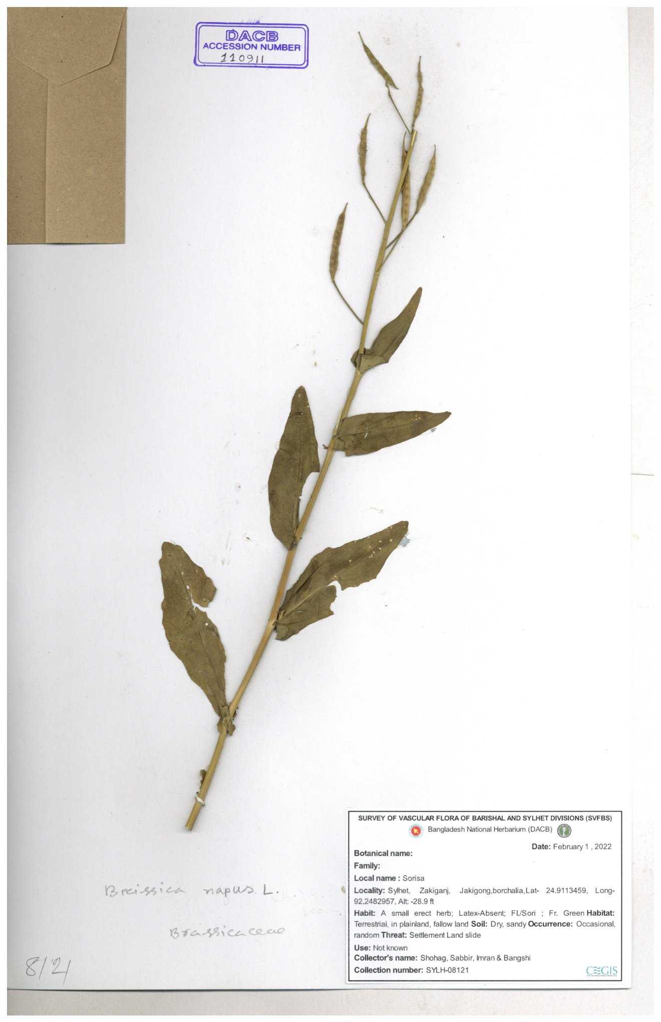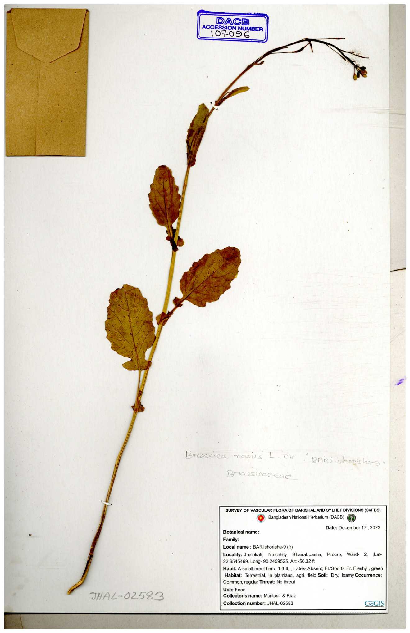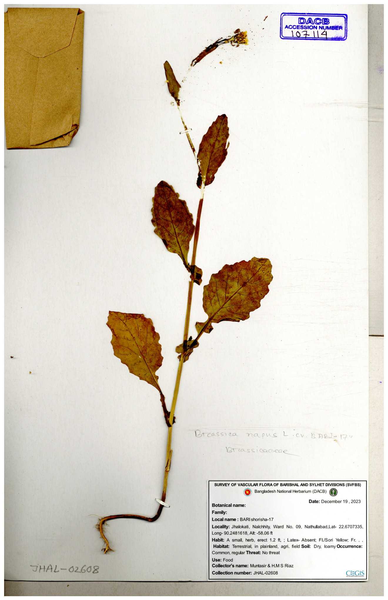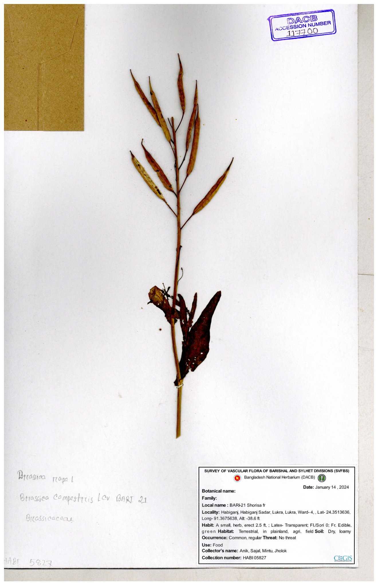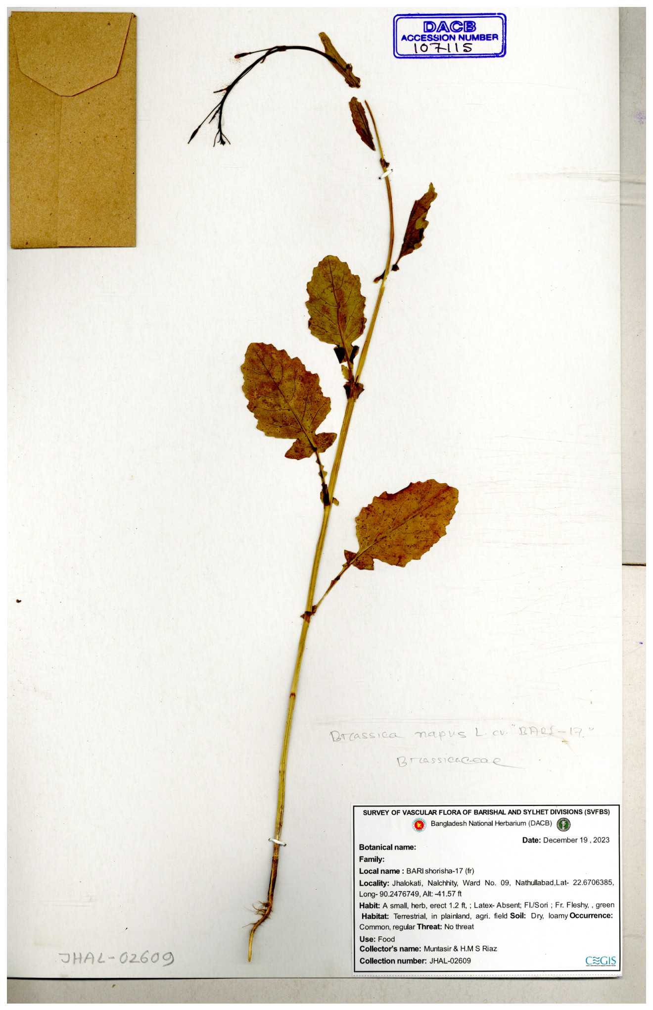 | 8361 | Brassicaceae | Brassica sp. | Huq et all | H. 3779 17-01-1978 |