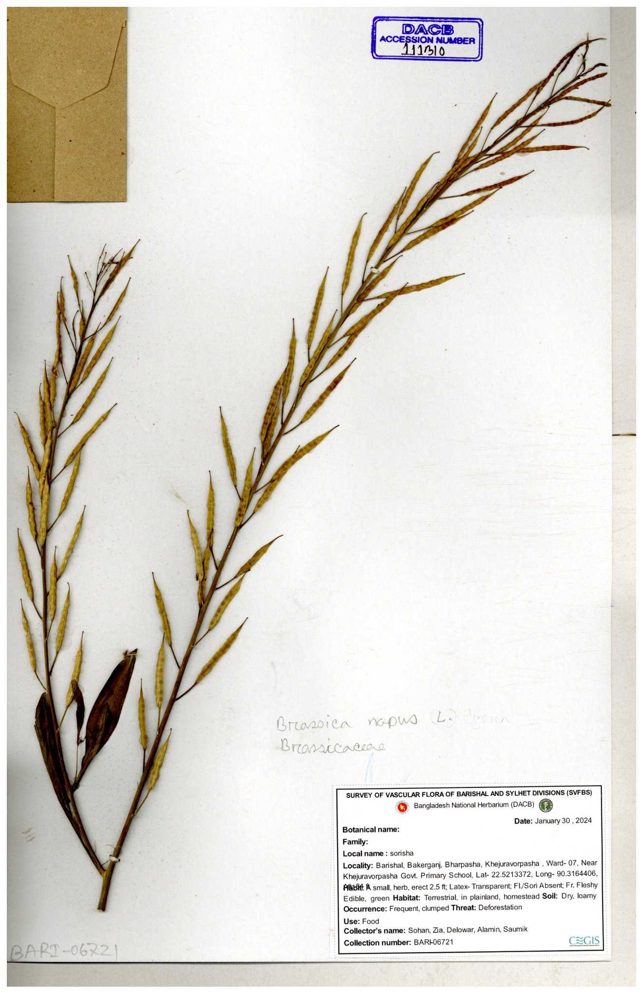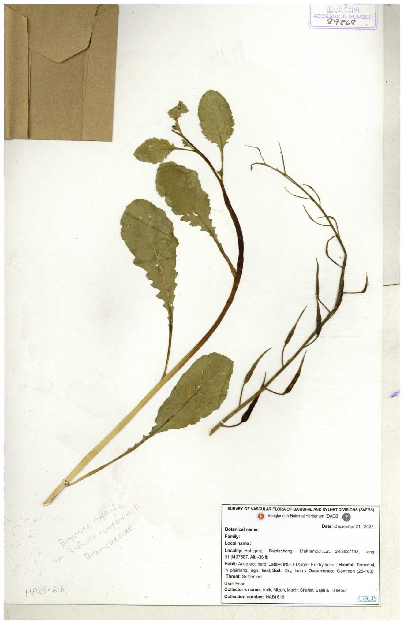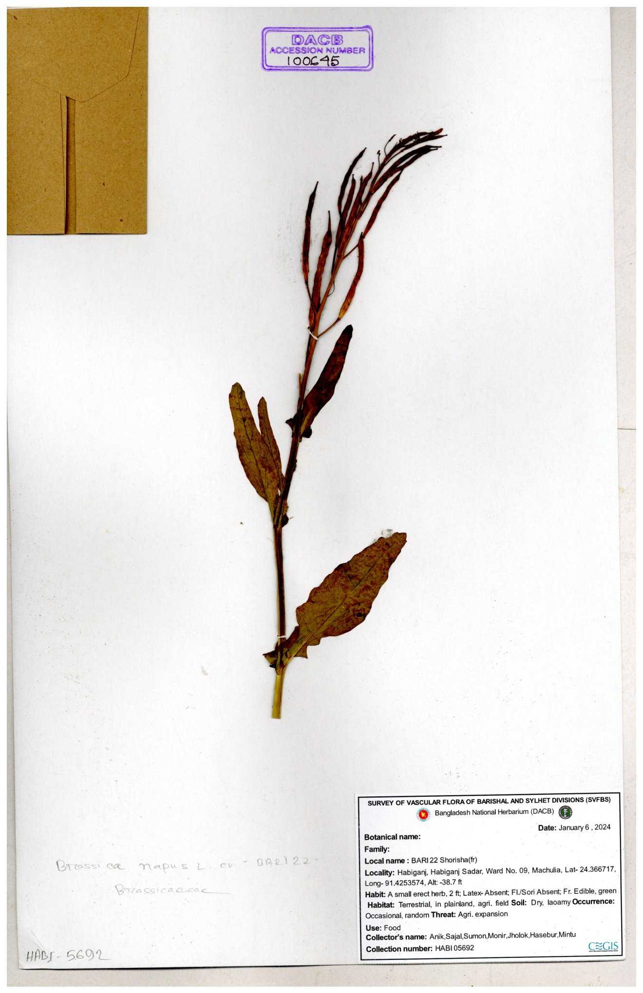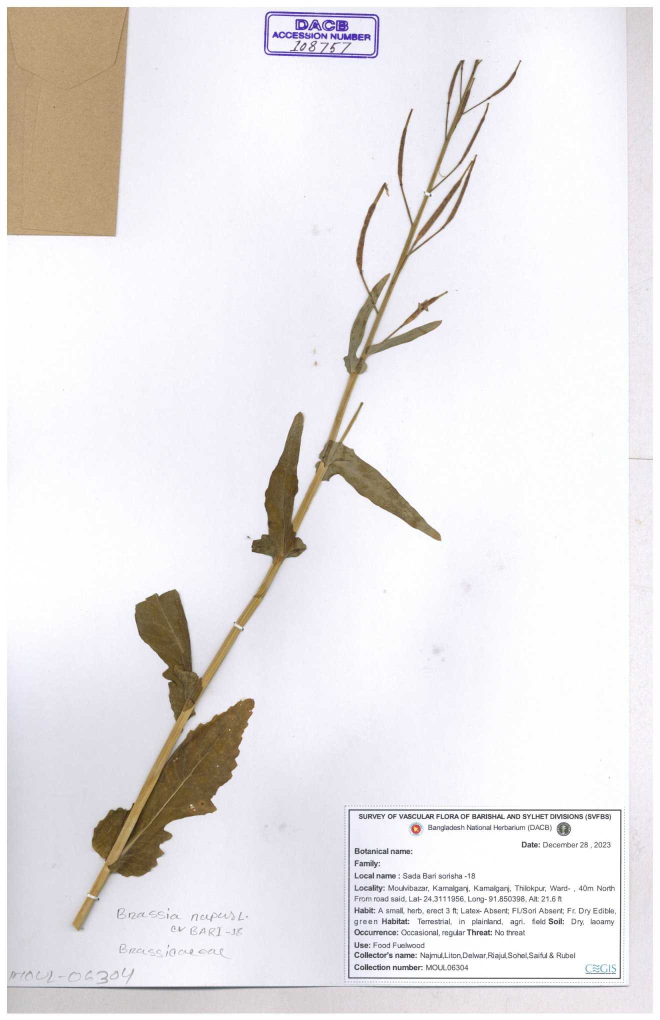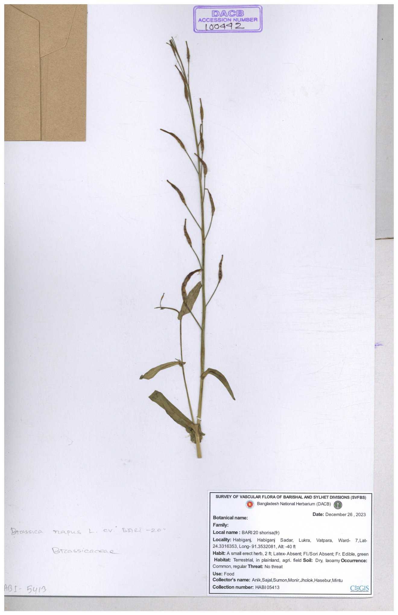 | 8361 | Brassicaceae | Brassica sp. | Huq et all | H. 3779 17-01-1978 |