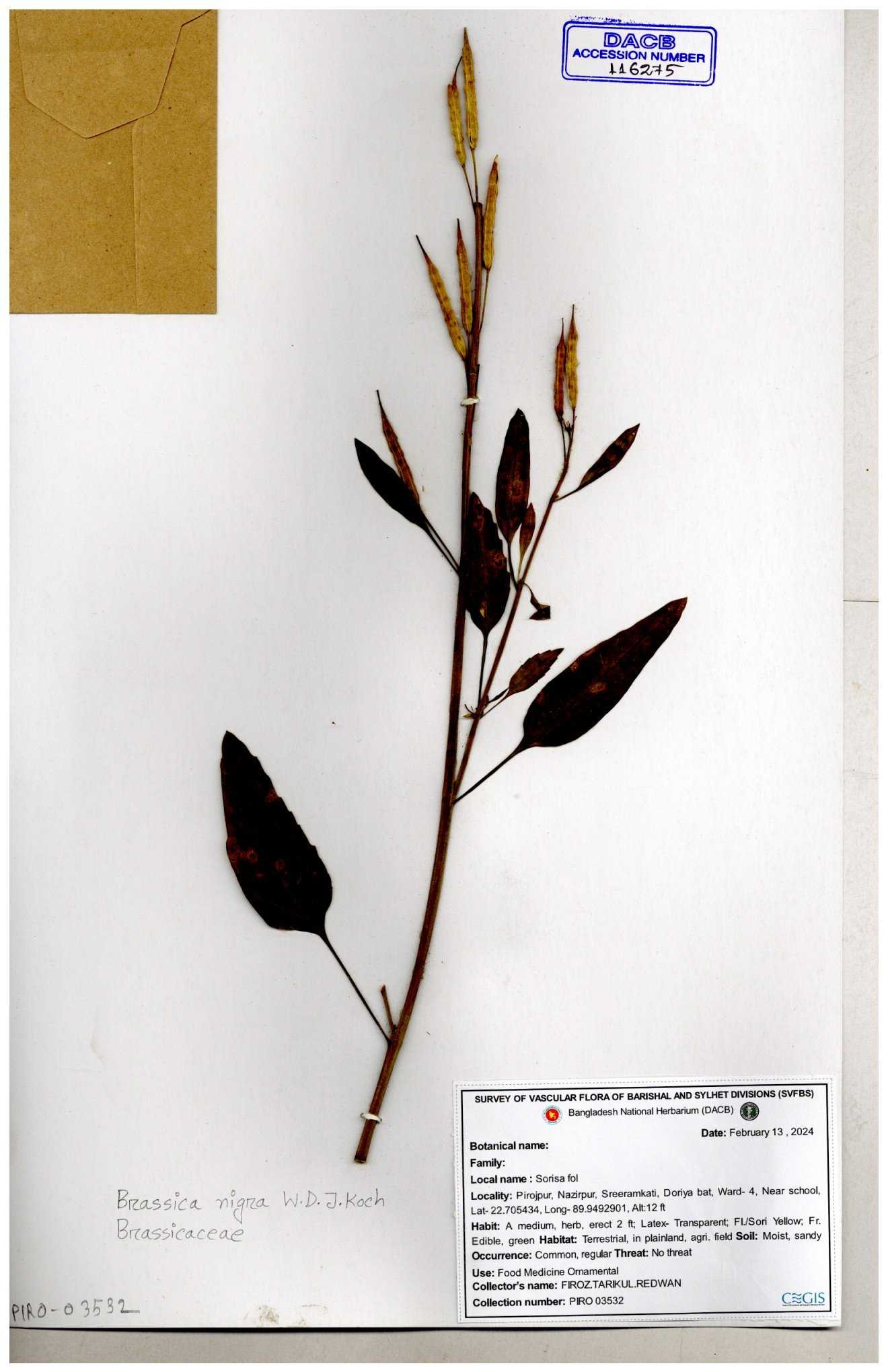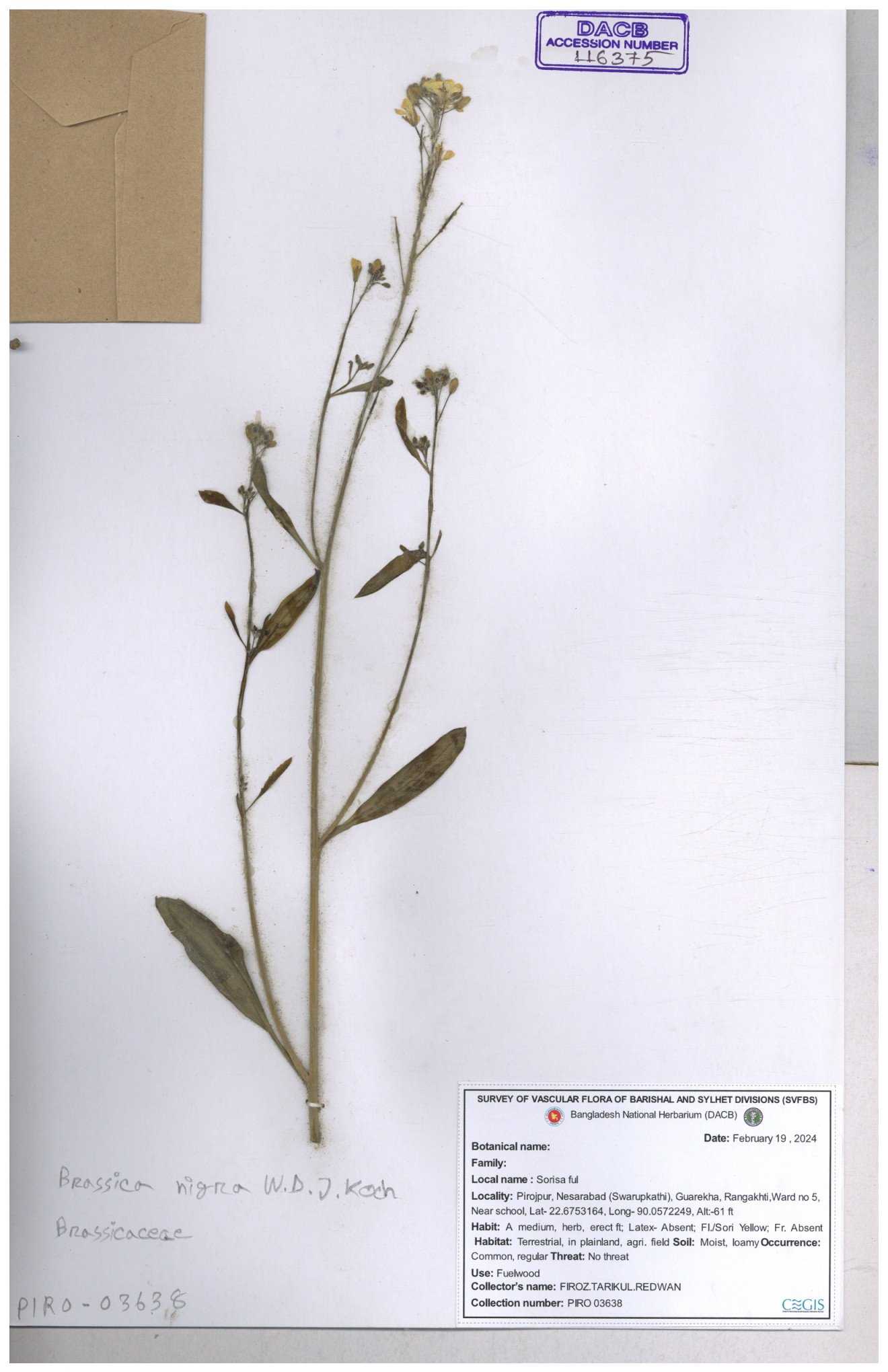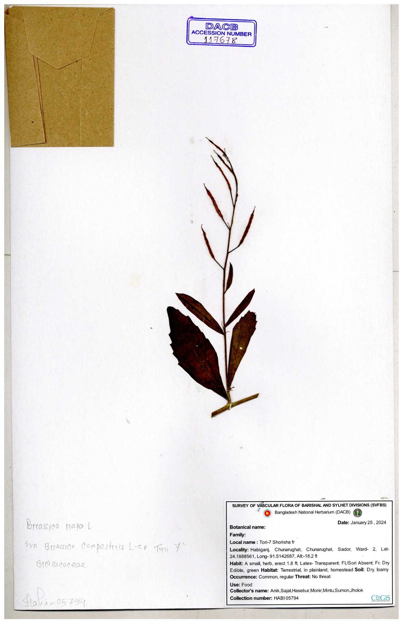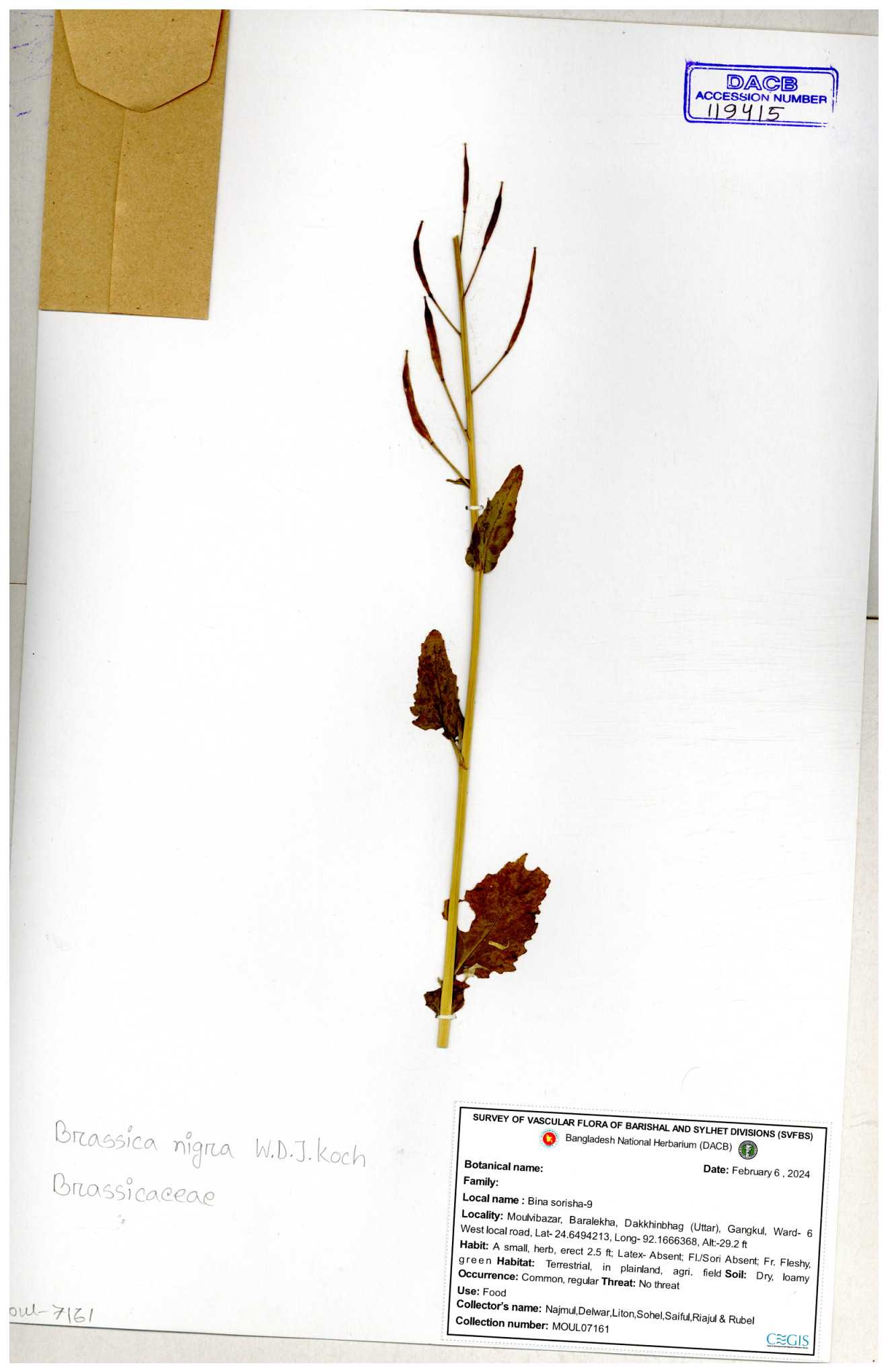 | 8361 | Brassicaceae | Brassica sp. | Huq et all | H. 3779 17-01-1978 |