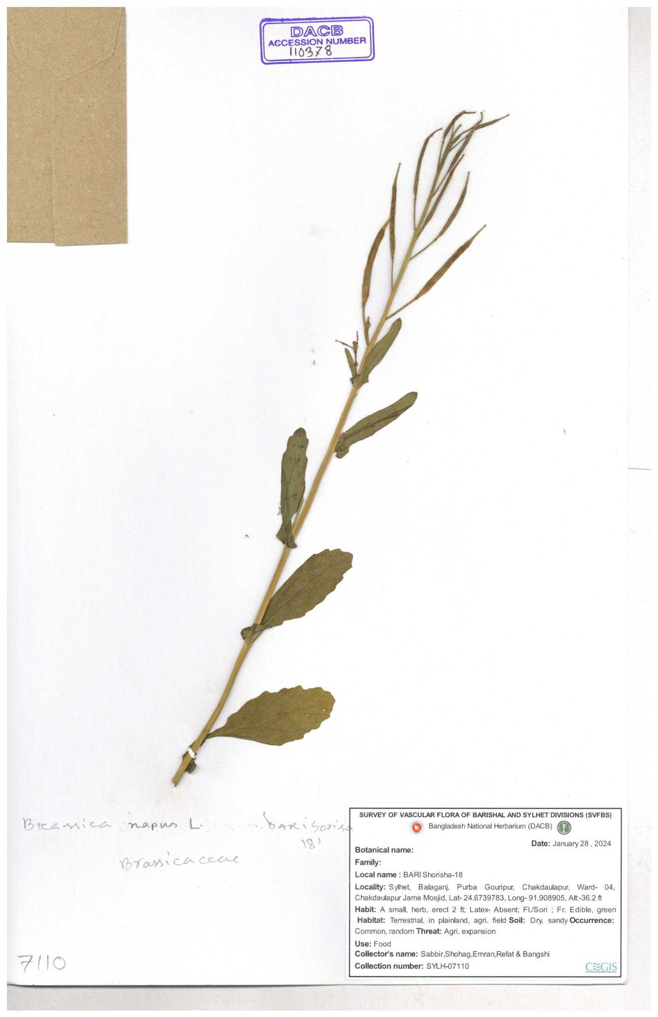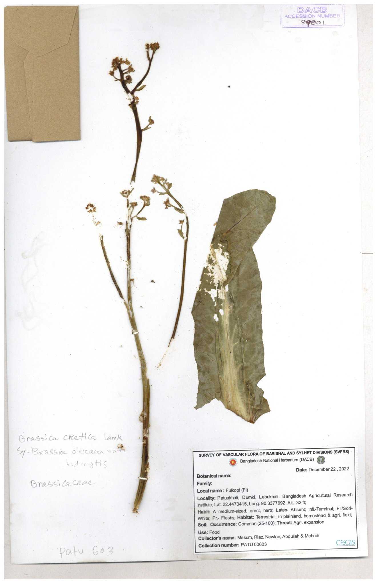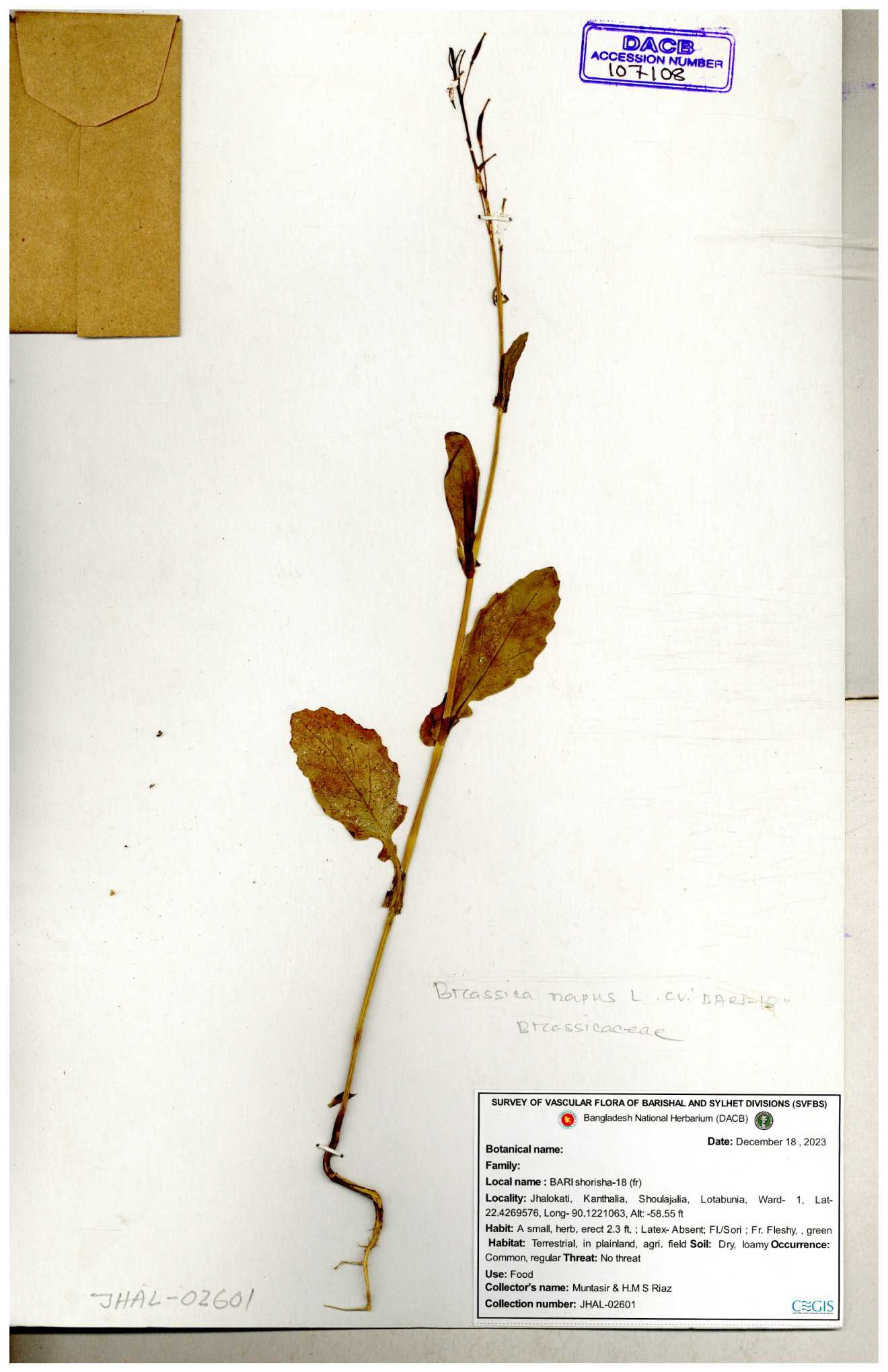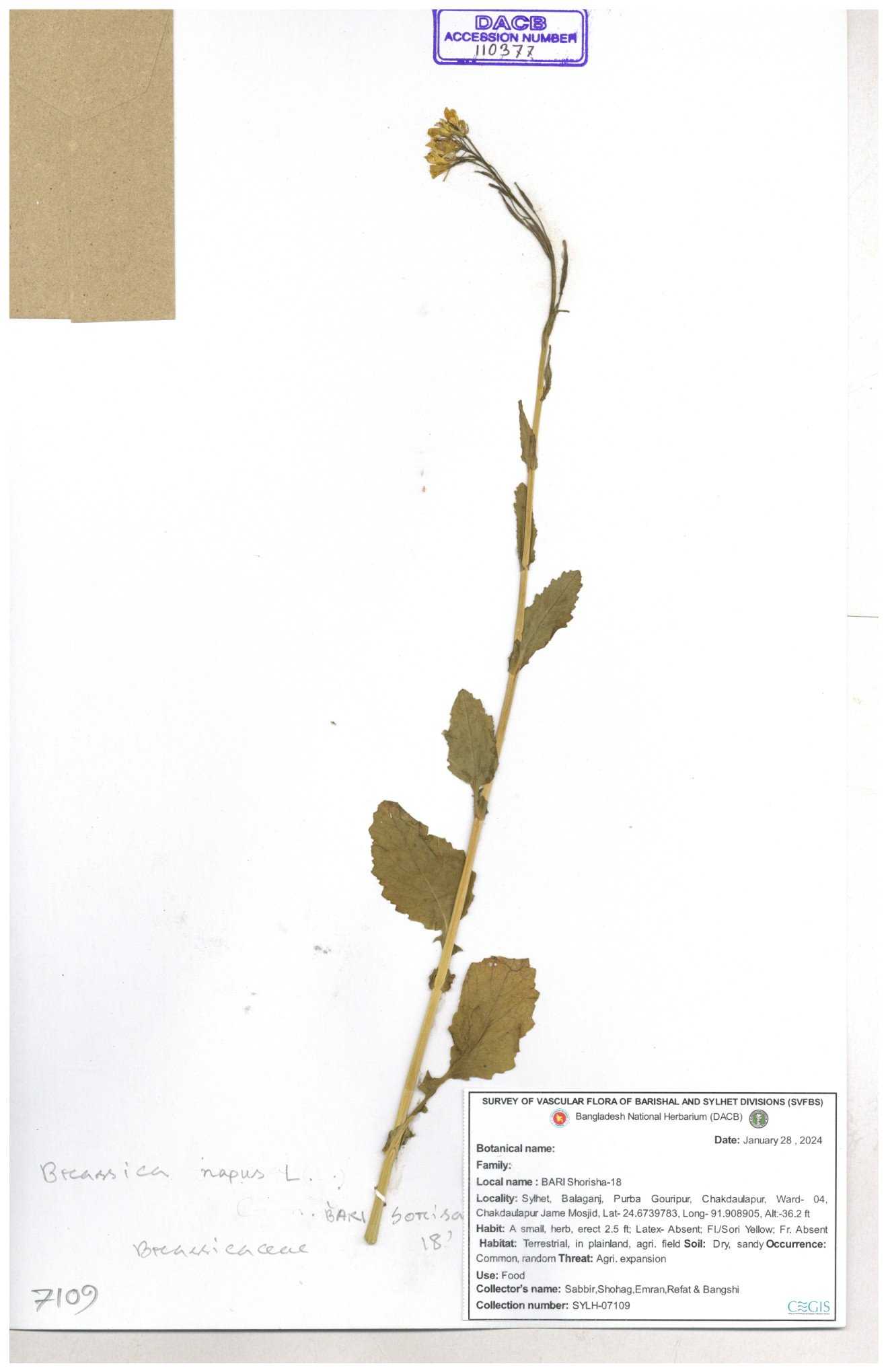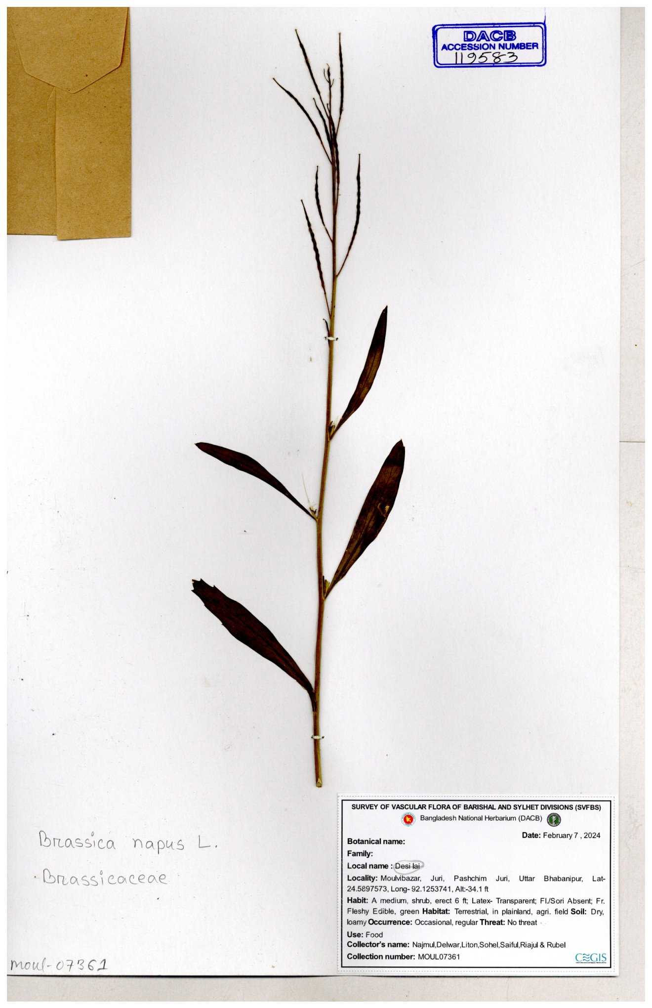 | 8361 | Brassicaceae | Brassica sp. | Huq et all | H. 3779 17-01-1978 |