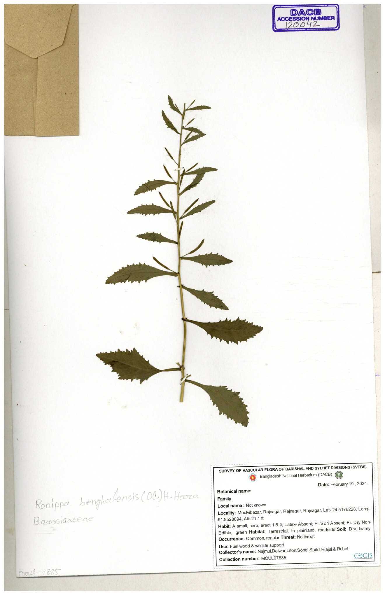 | 120042 | Brassicaceae | Rorippa benghalensis | 30-11--0001 |