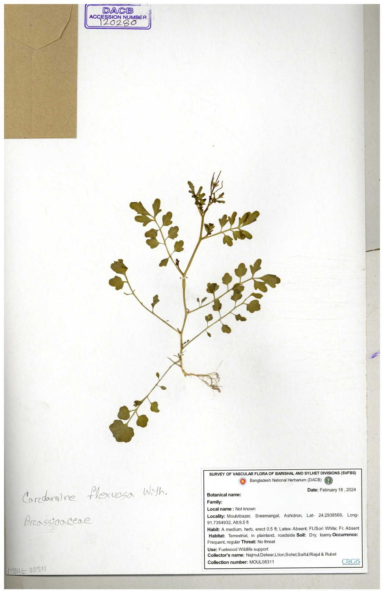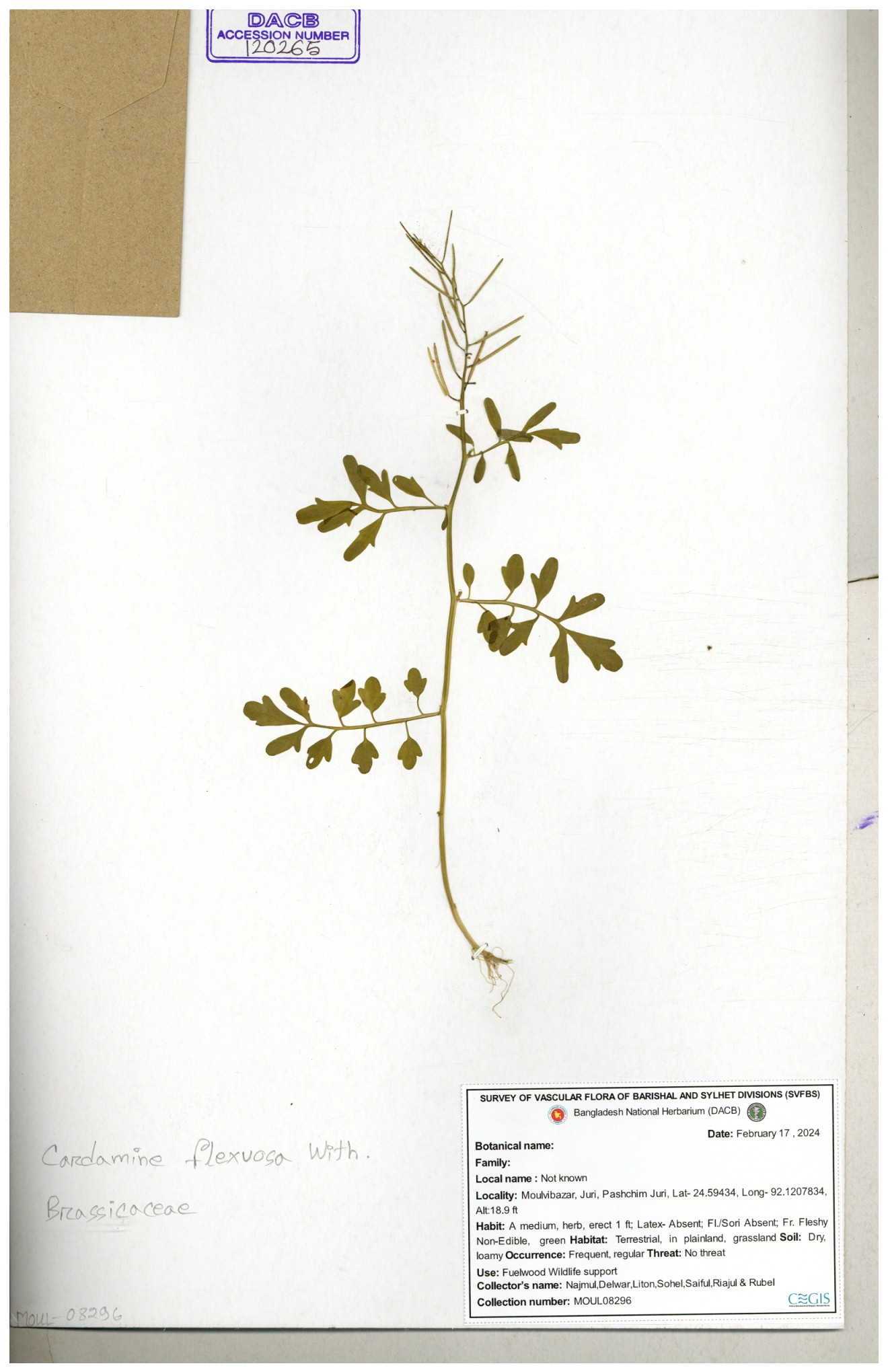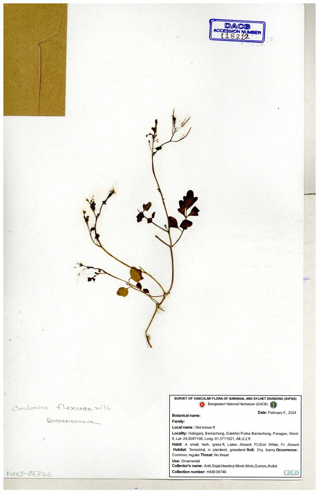 | 46990 | Brassicaceae | Cardamine flexuosa With | Dr. Mahbuba Sulatana | DMS. 2075 31-12-2017 |