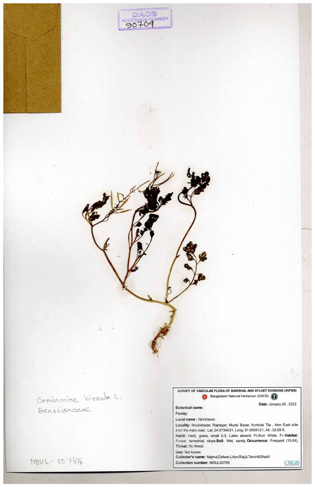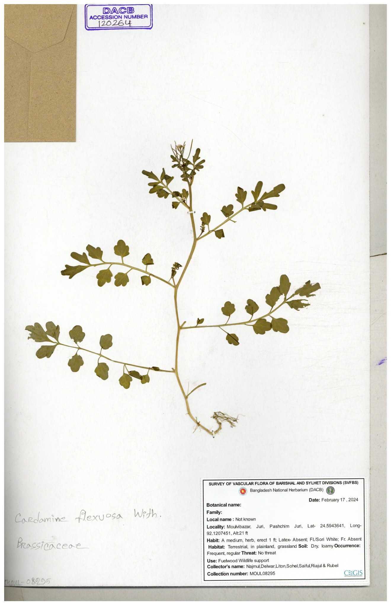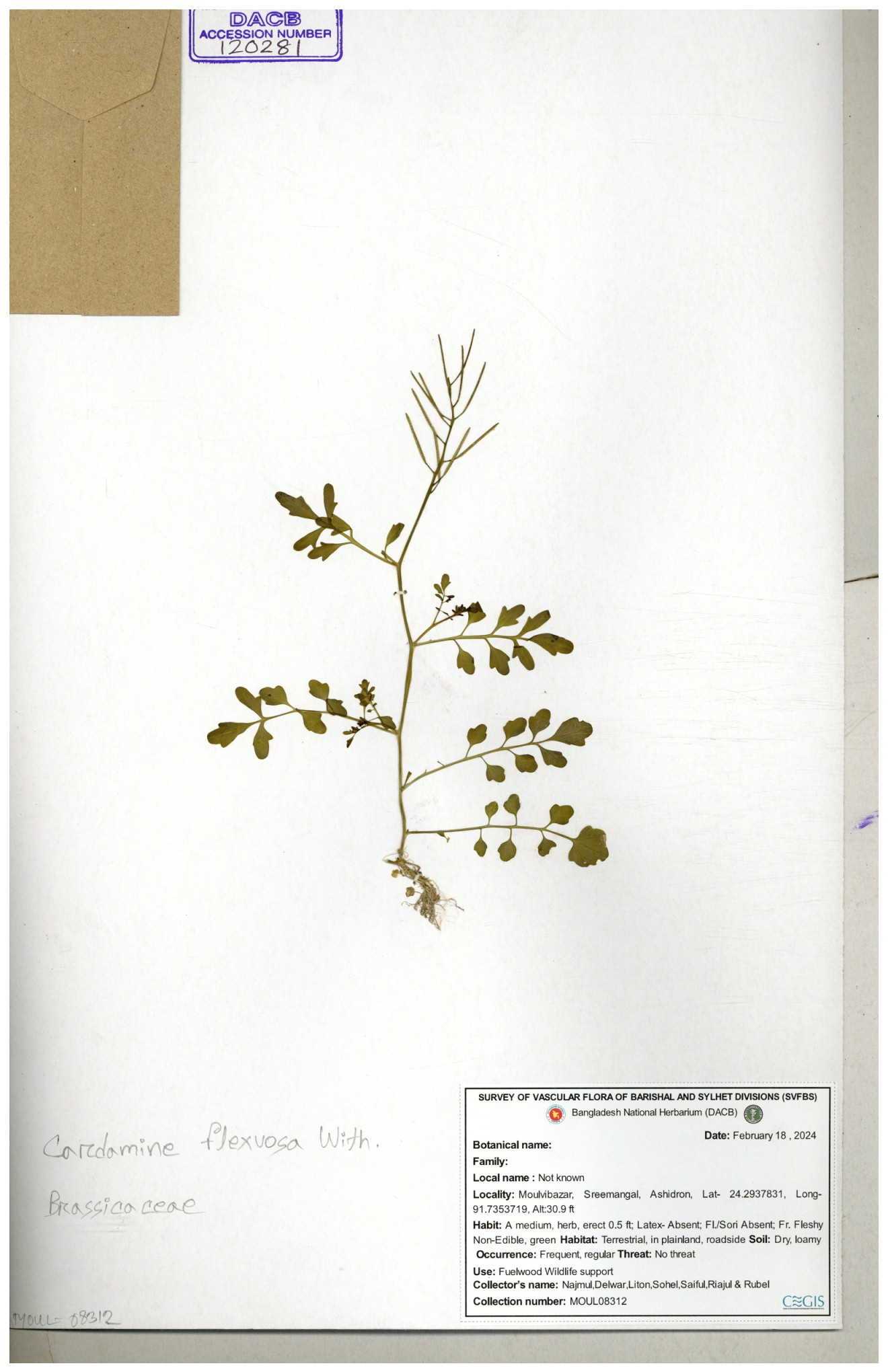 | 46990 | Brassicaceae | Cardamine flexuosa With | Dr. Mahbuba Sulatana | DMS. 2075 31-12-2017 |