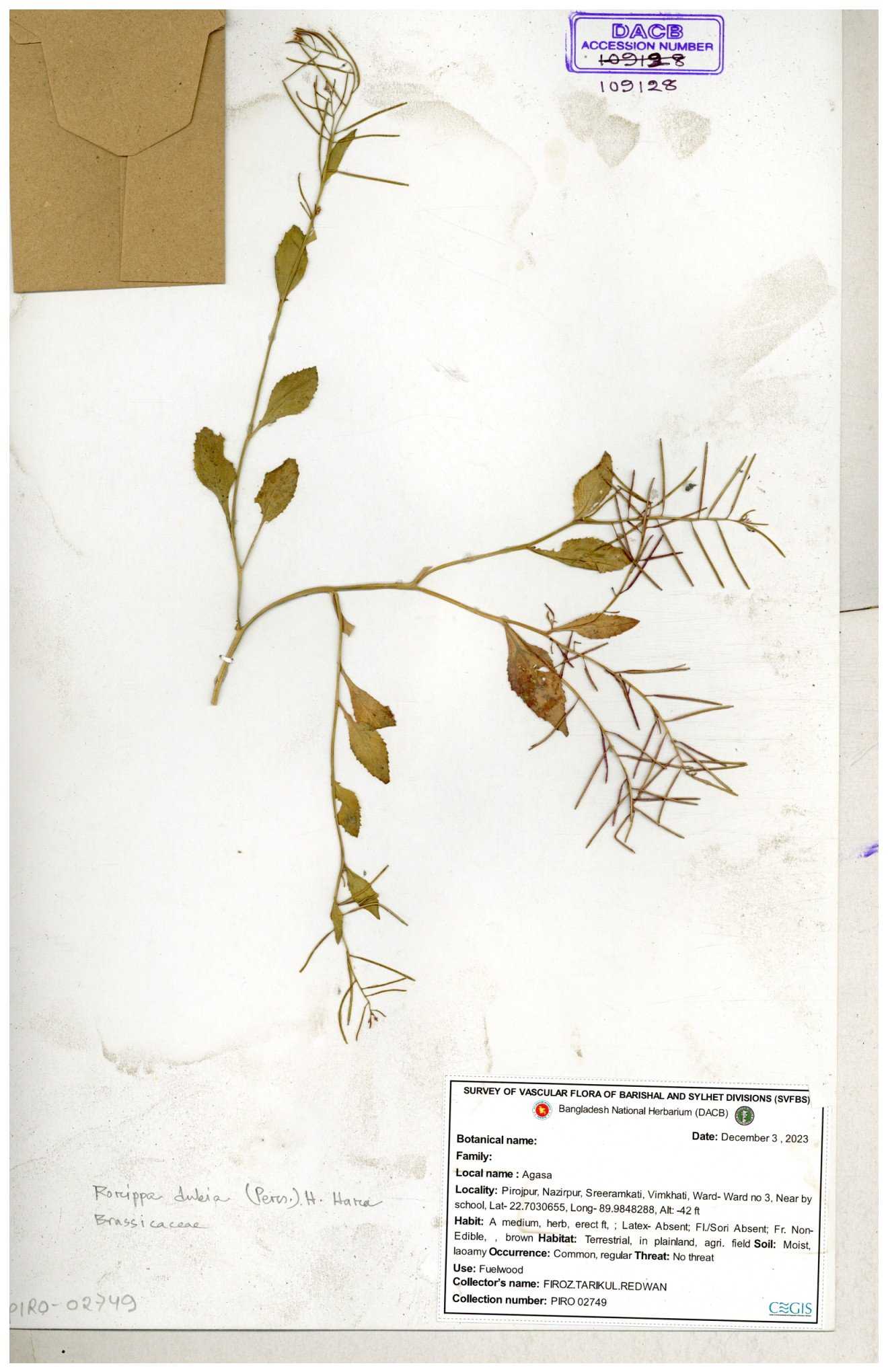 | 109974 | Brassicaceae | Rorippa benghalensis | 30-11--0001 |
