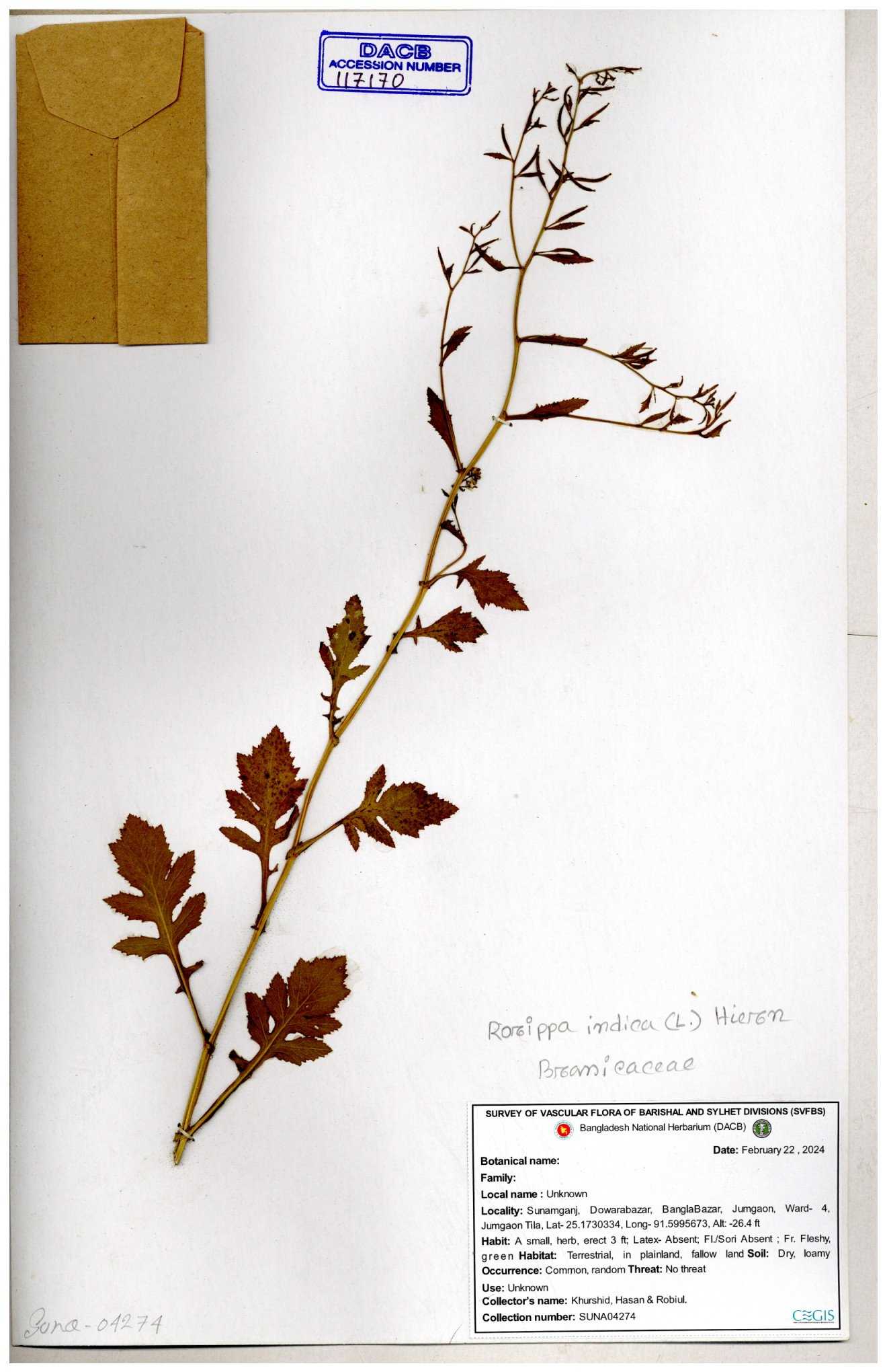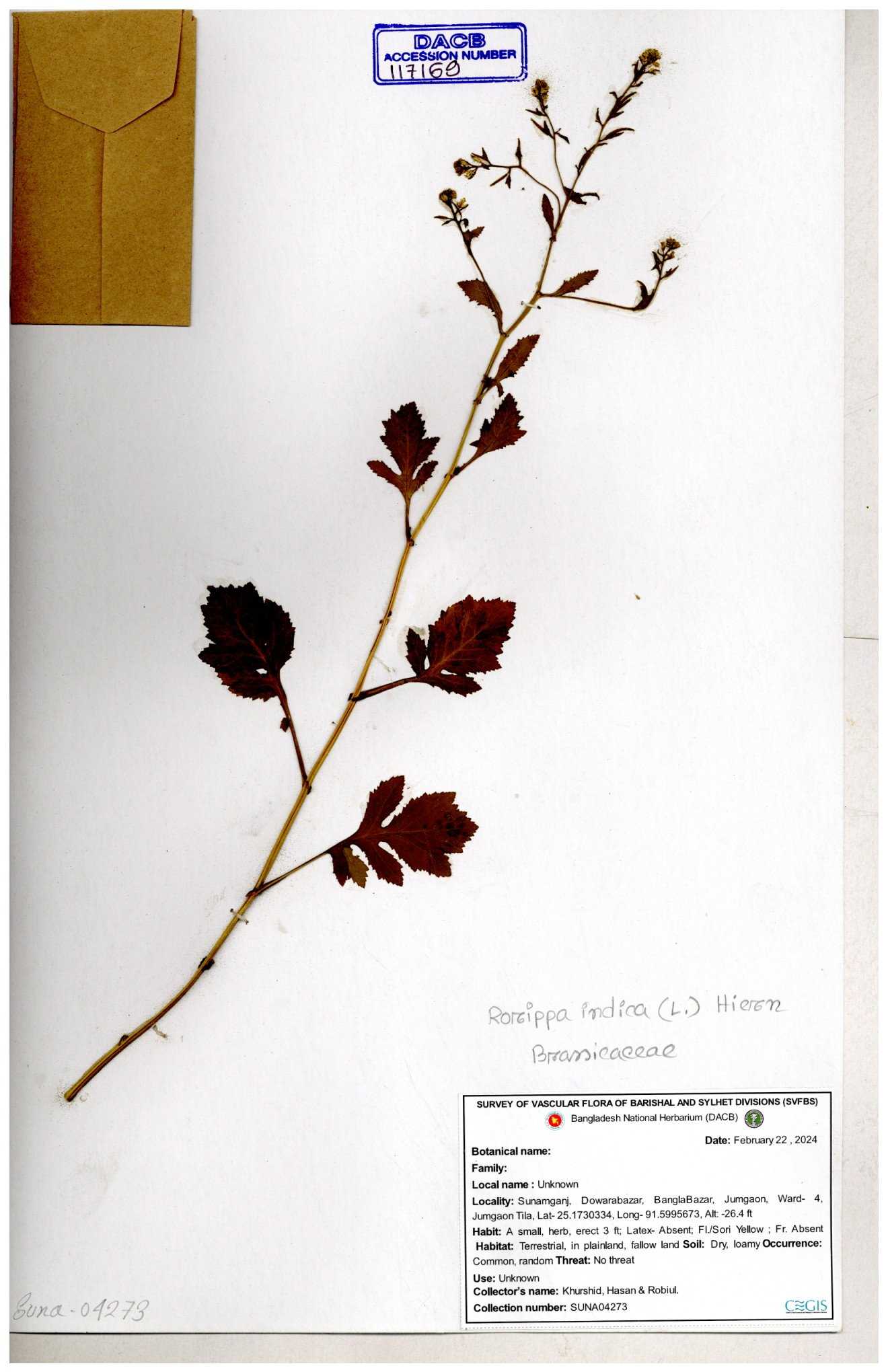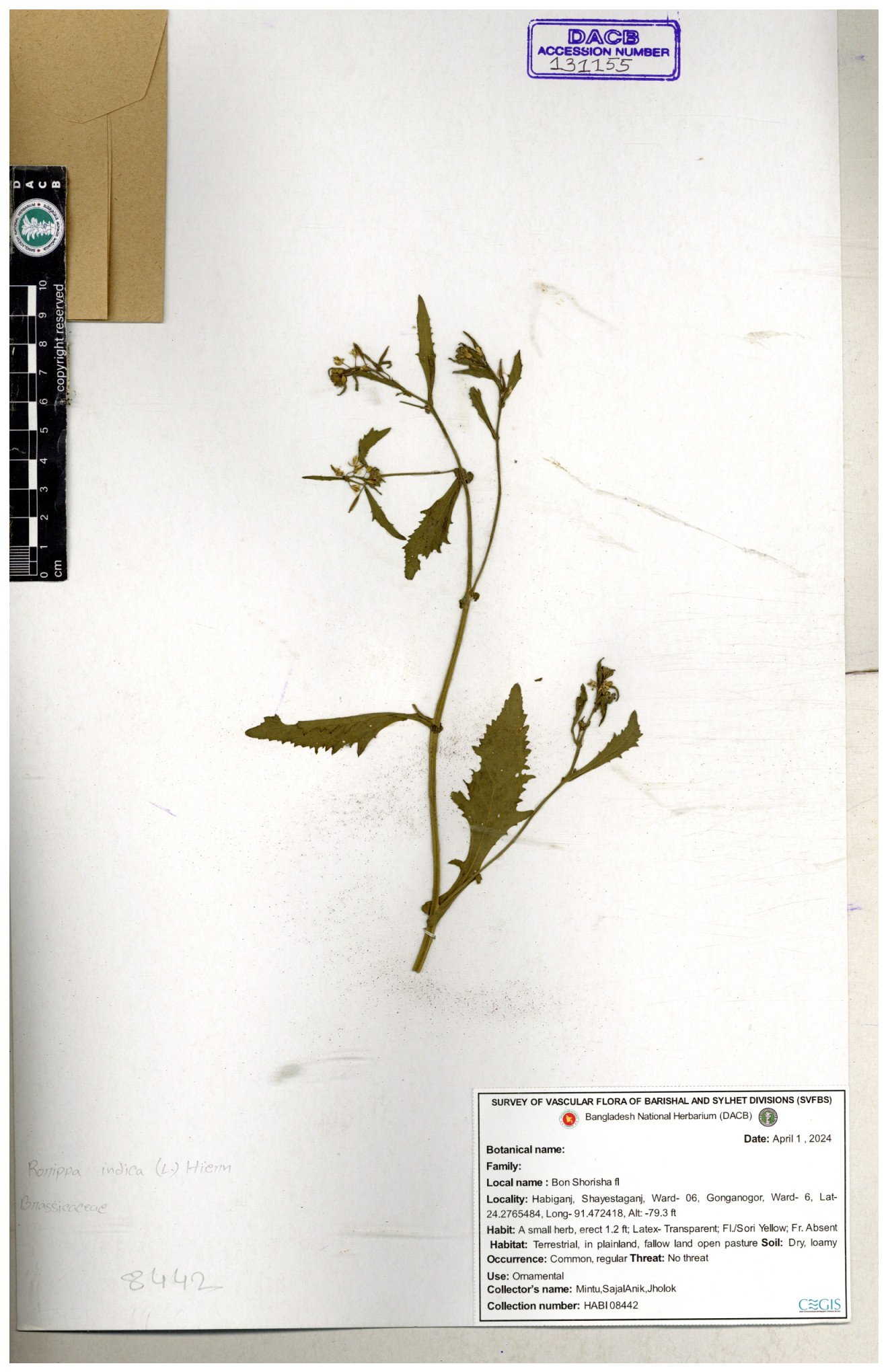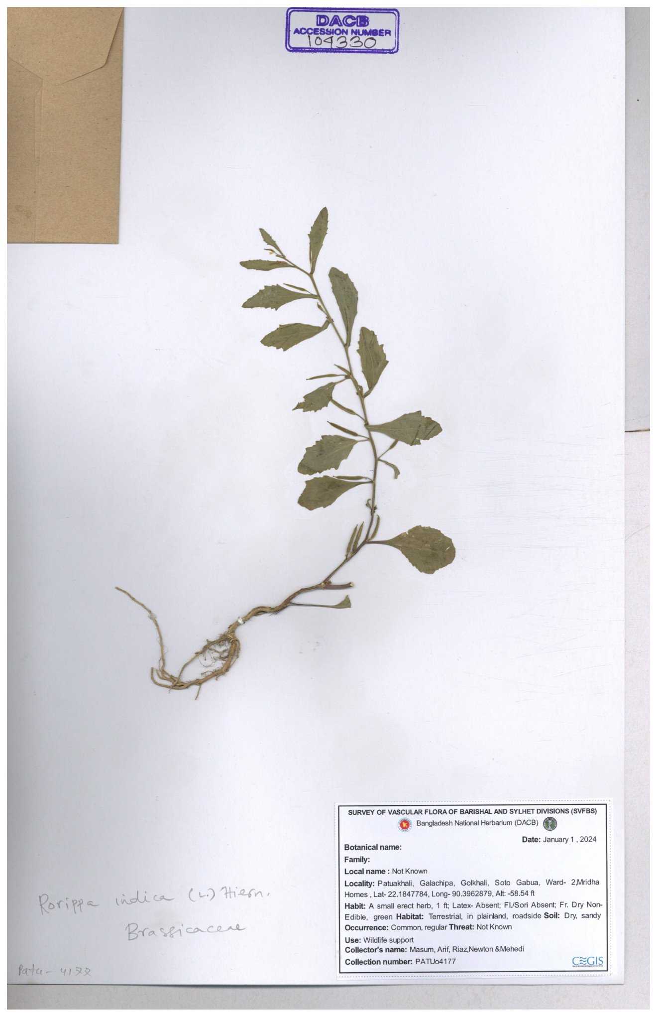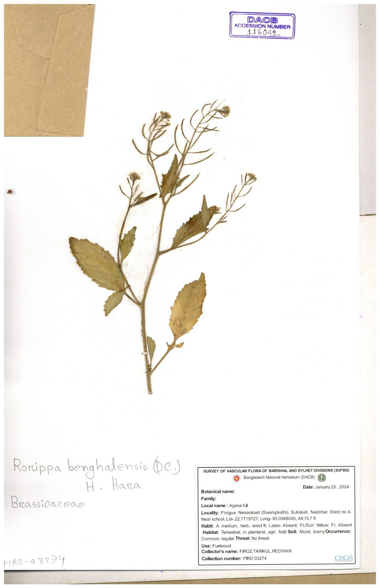 | 116042 | Brassicaceae | Rorippa benghalensis | 30-11--0001 |