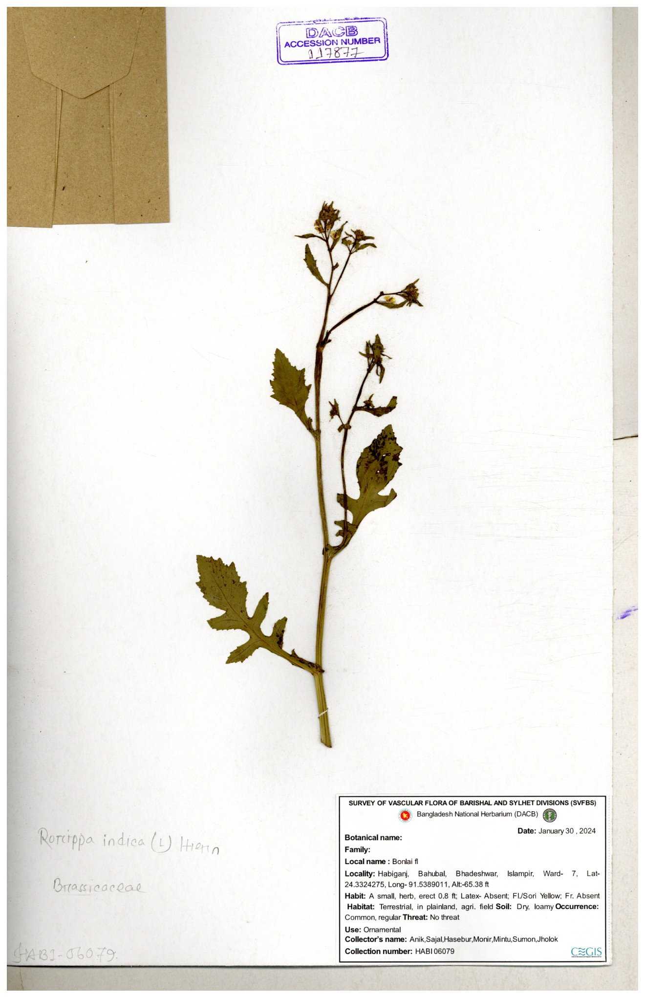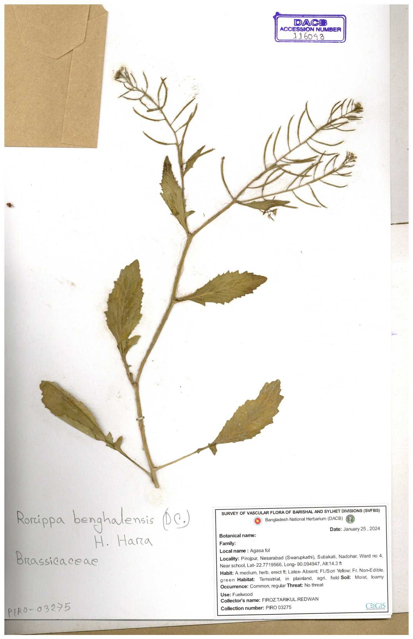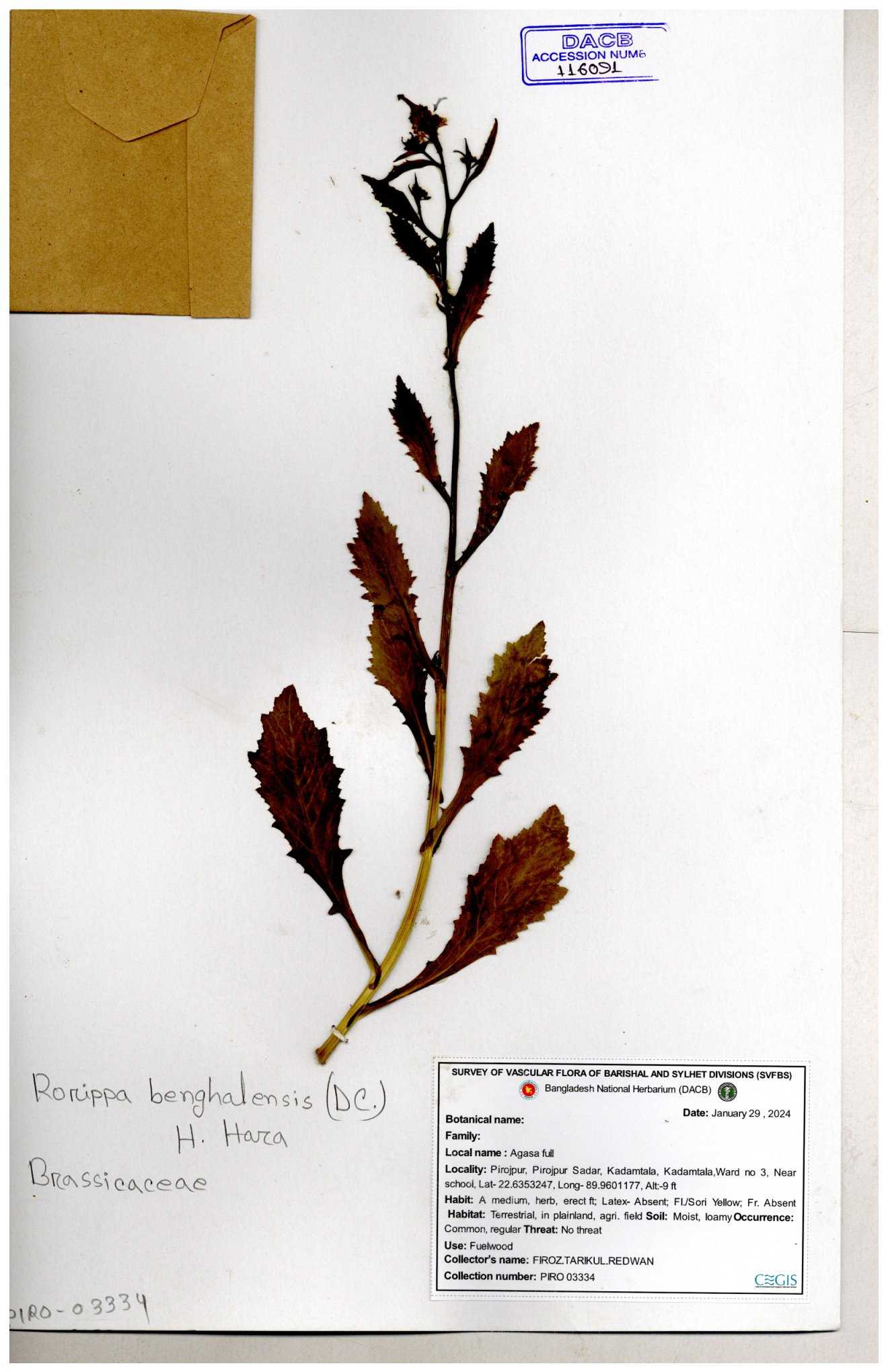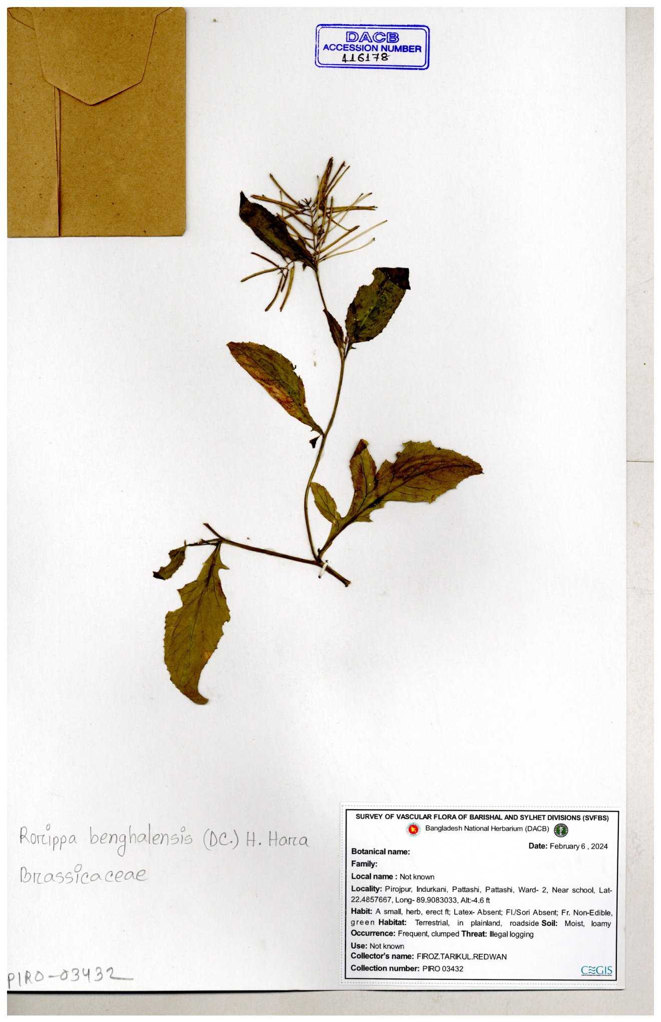 | 116042 | Brassicaceae | Rorippa benghalensis | 30-11--0001 |