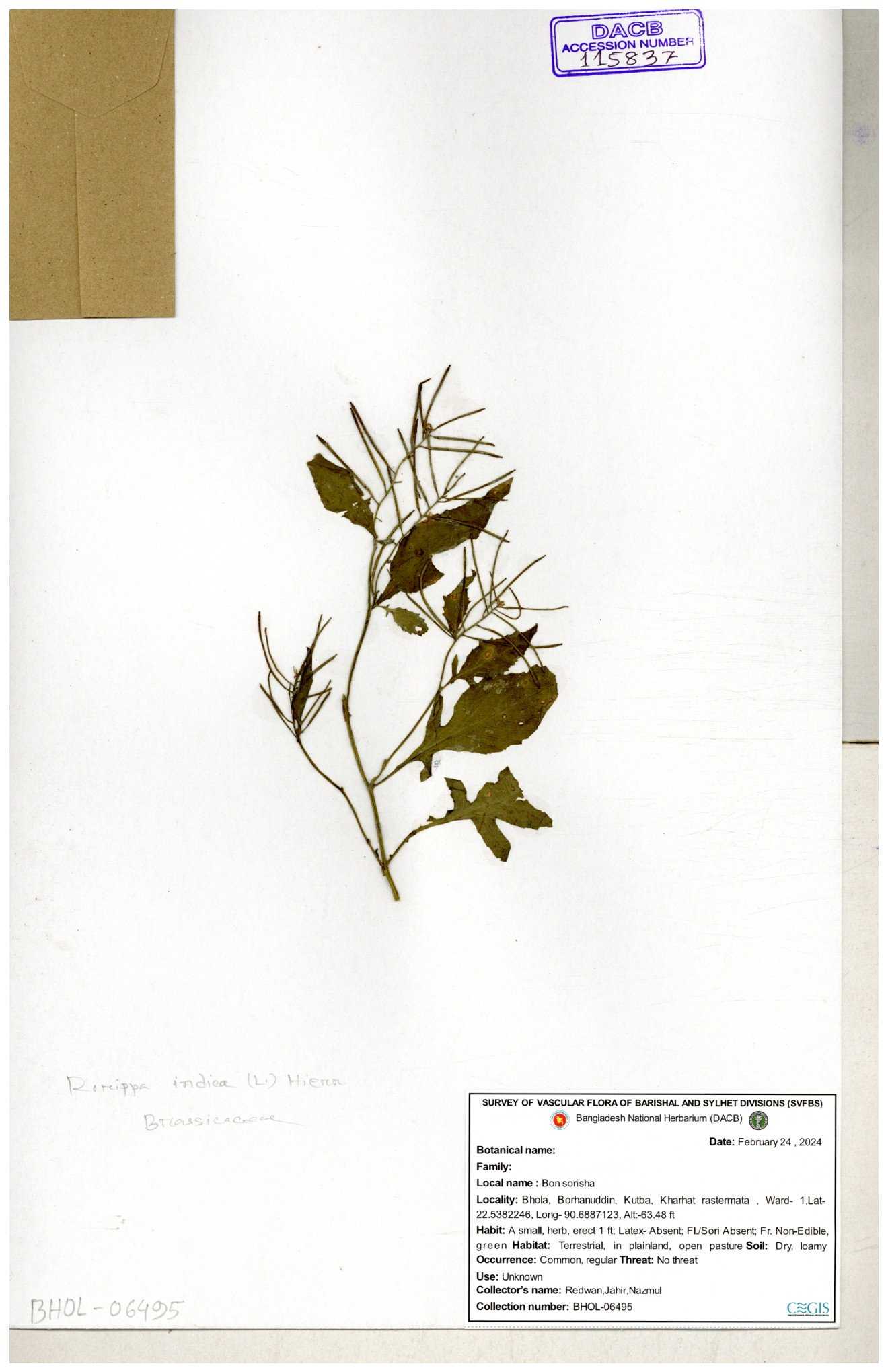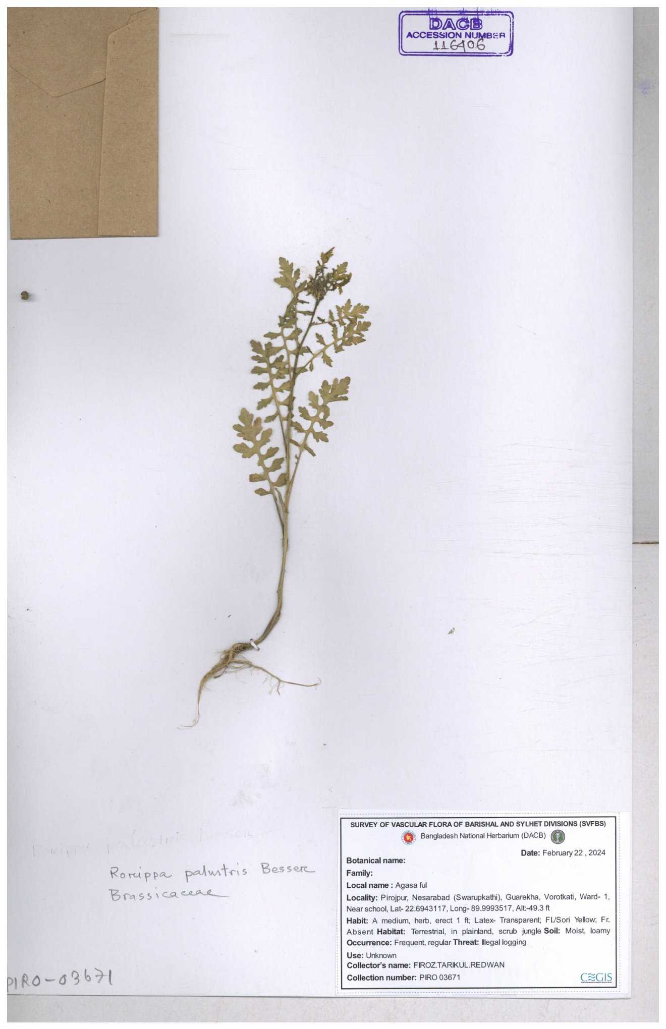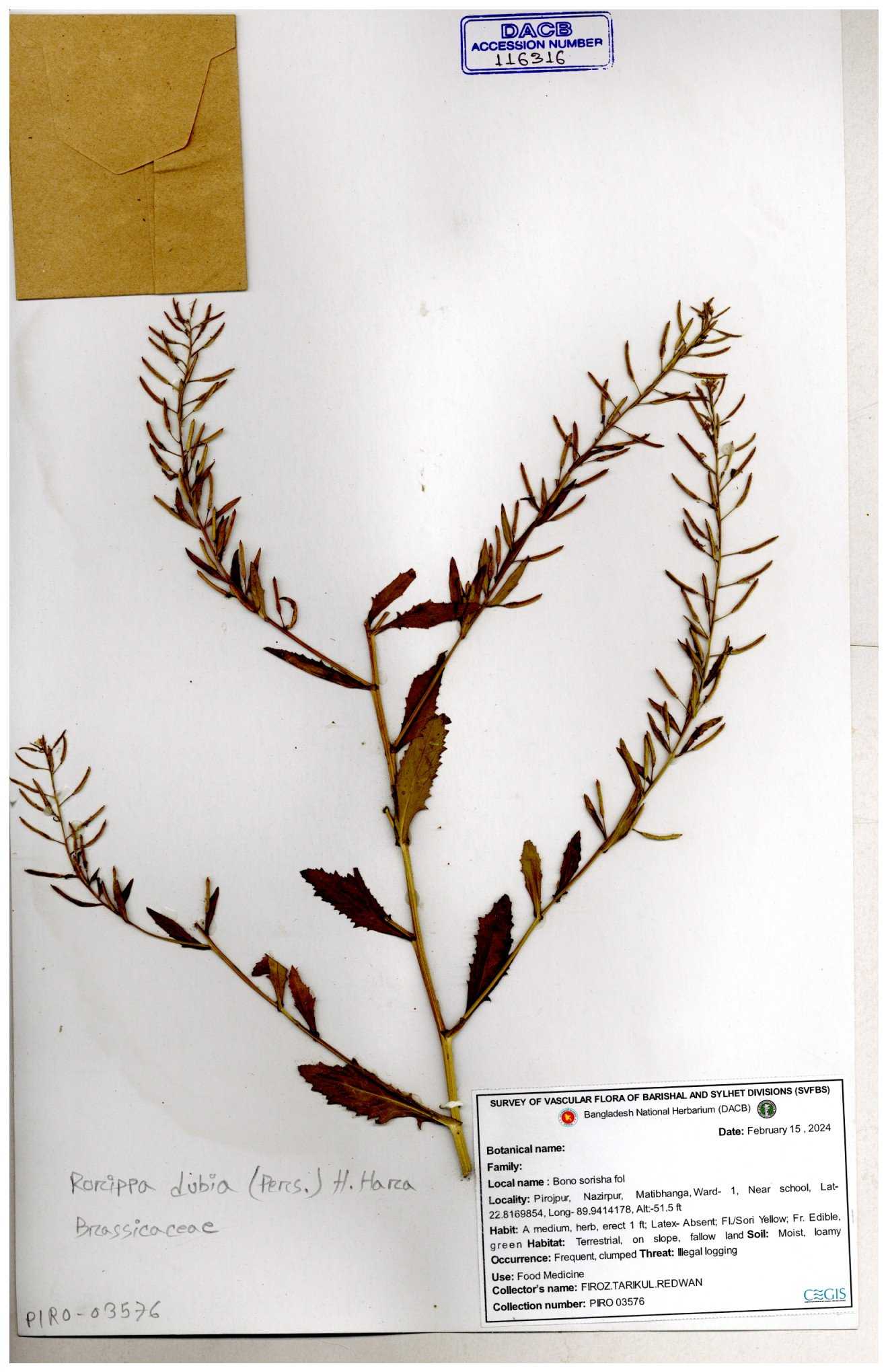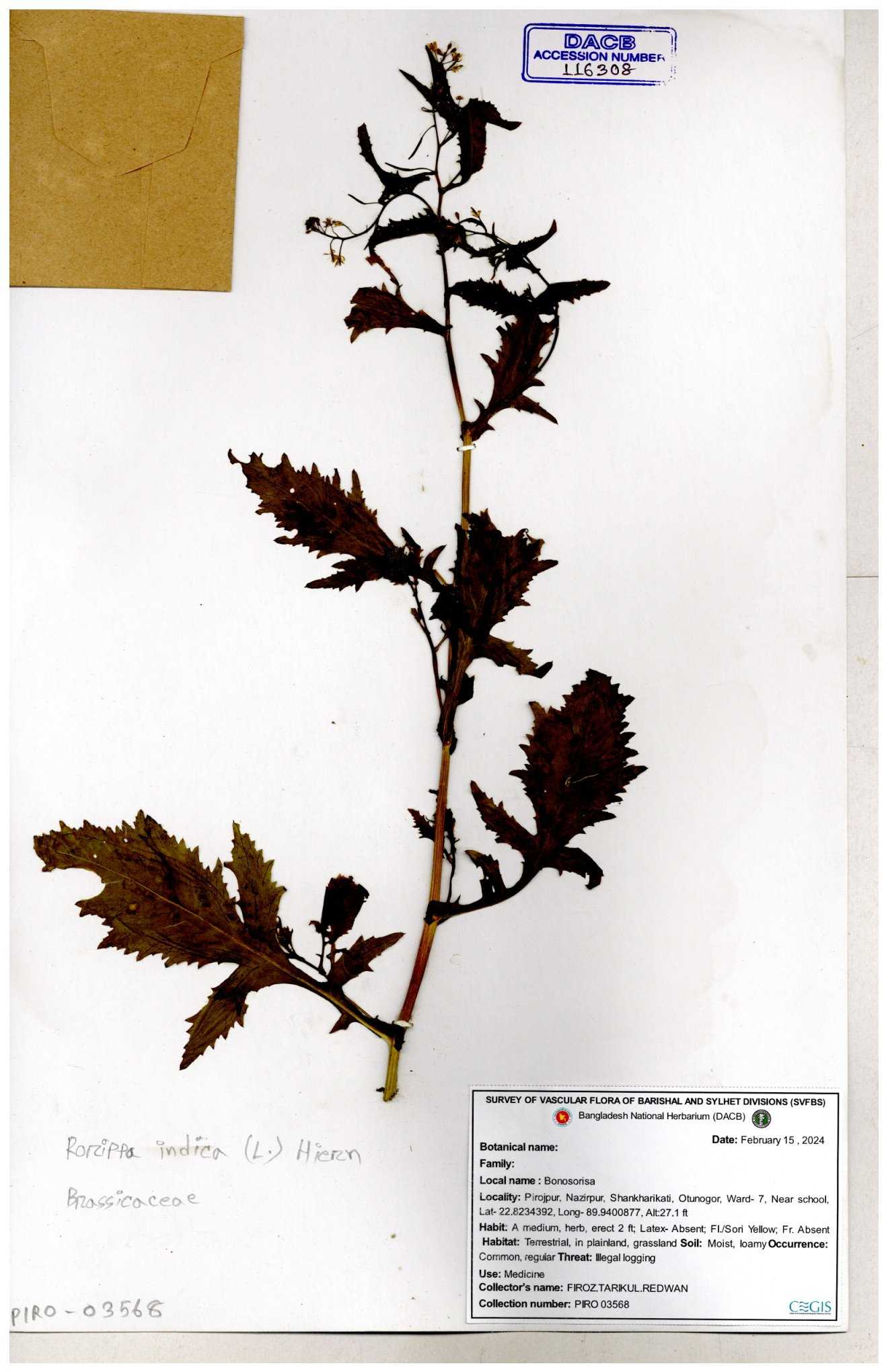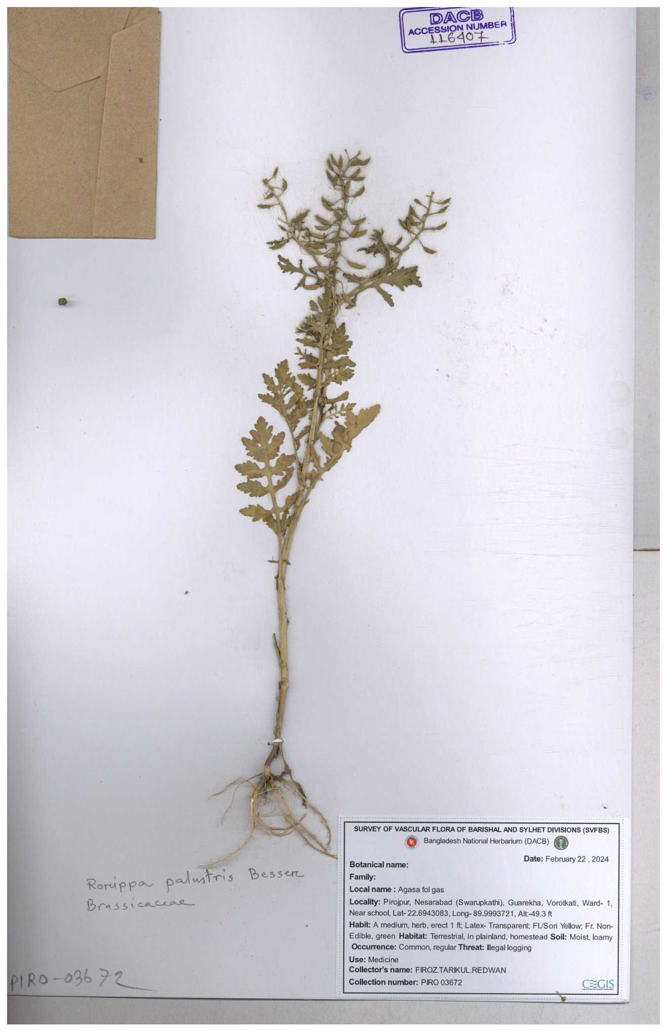 | 116042 | Brassicaceae | Rorippa benghalensis | 30-11--0001 |