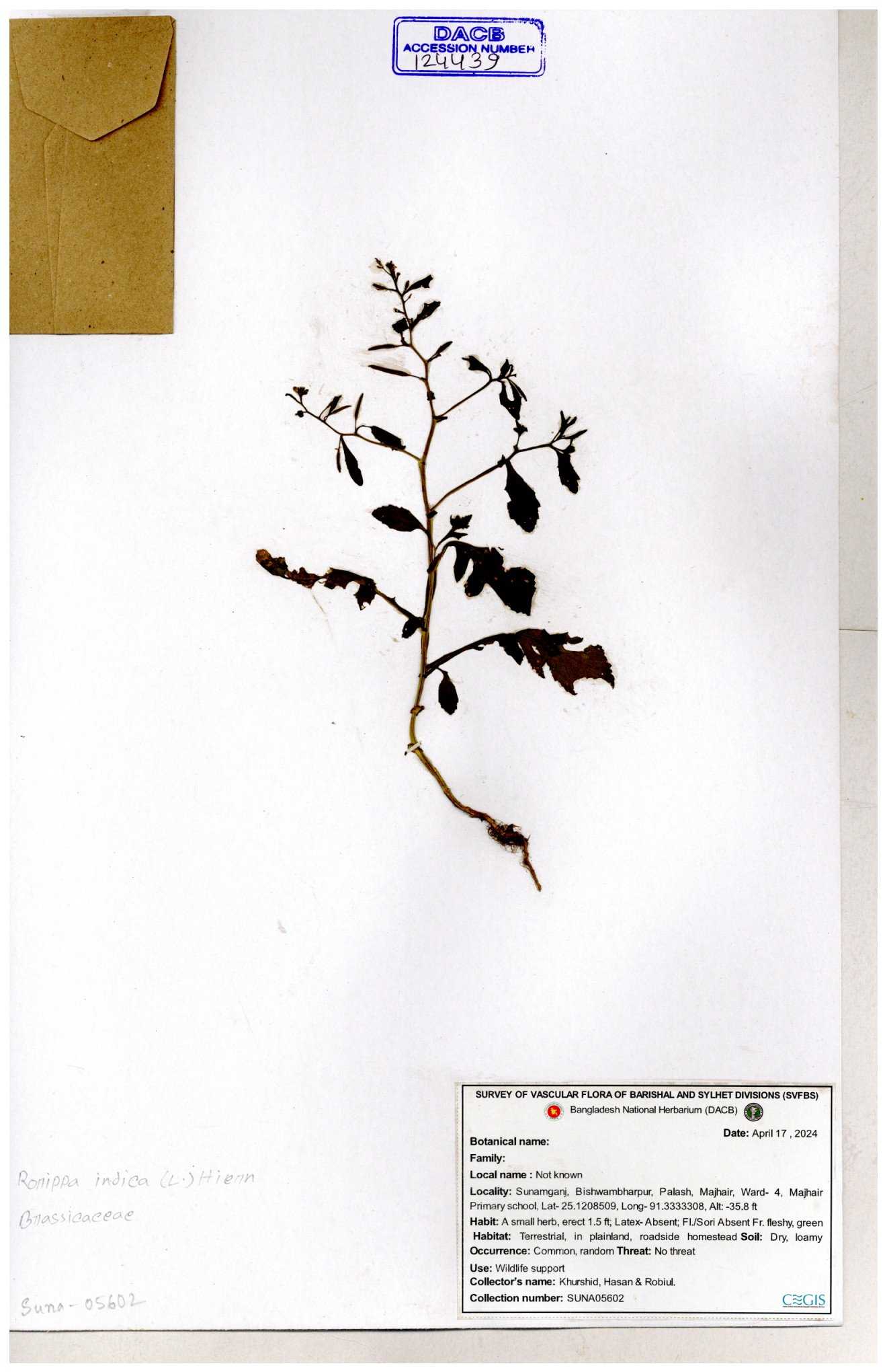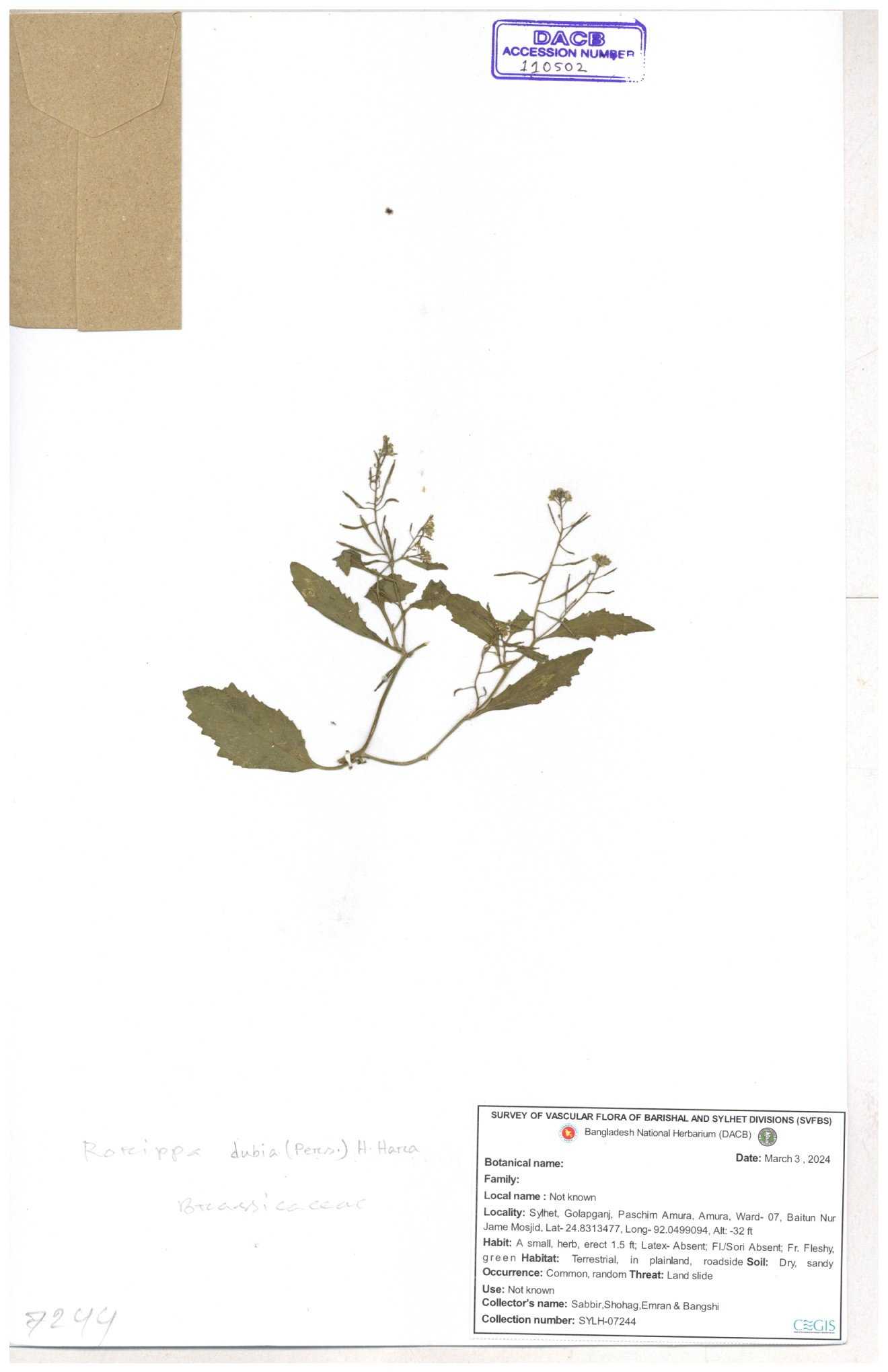 | 95502 | Brassicaceae | Rorippa benghalensis | 30-11--0001 |