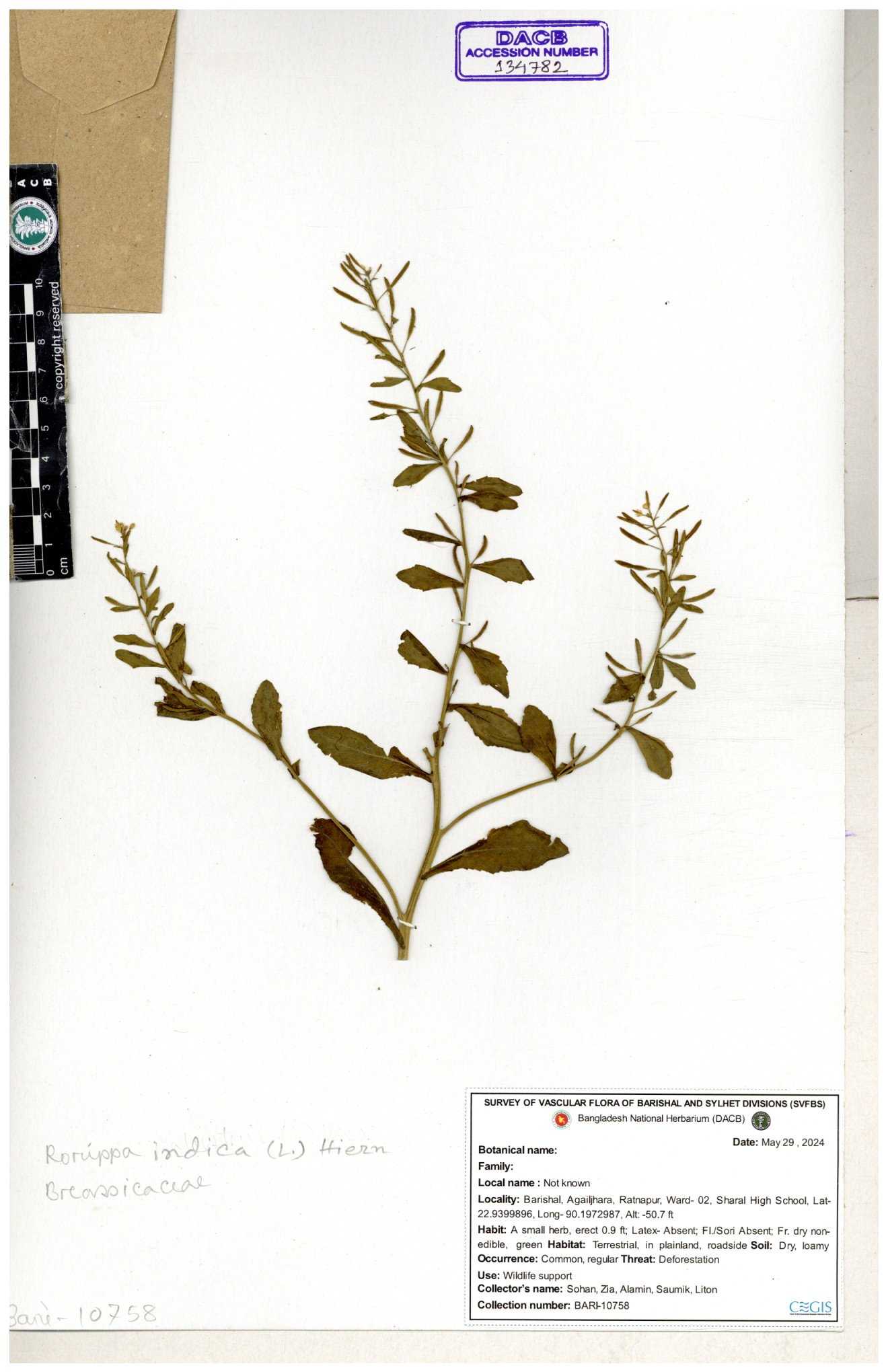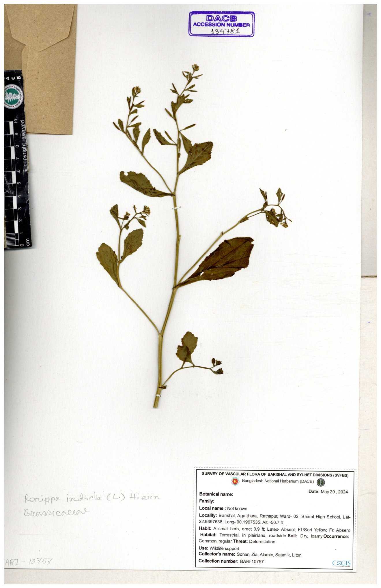 | 134902 | Brassicaceae | Rorippa benghalensis | 30-11--0001 |