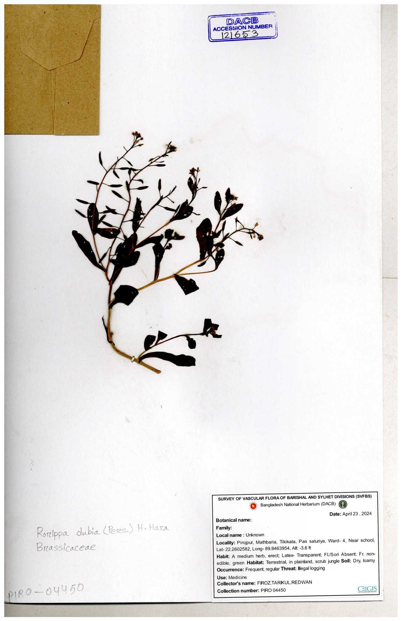 | 121653 | Brassicaceae | Rorippa dubia | 30-11--0001 |