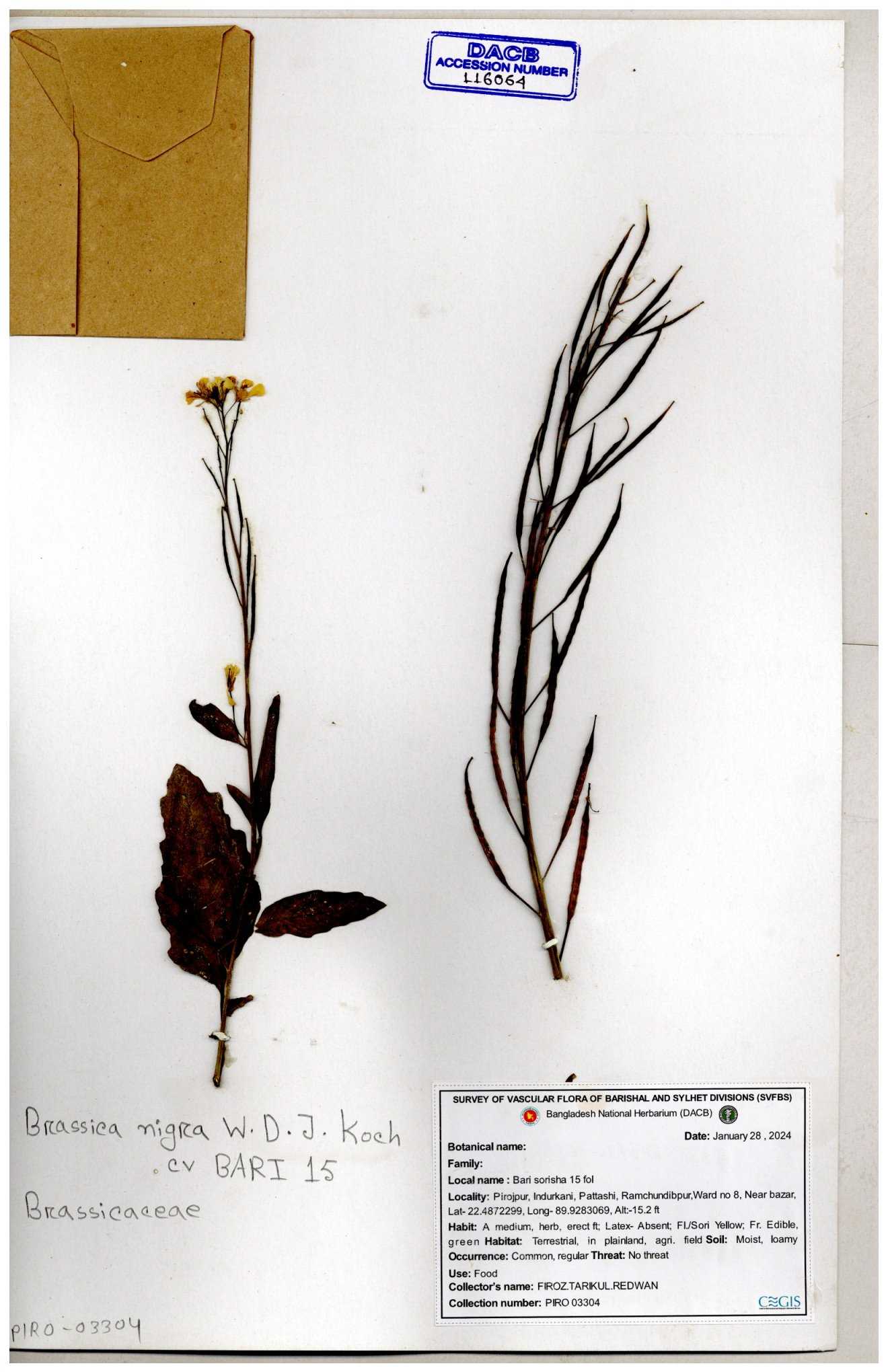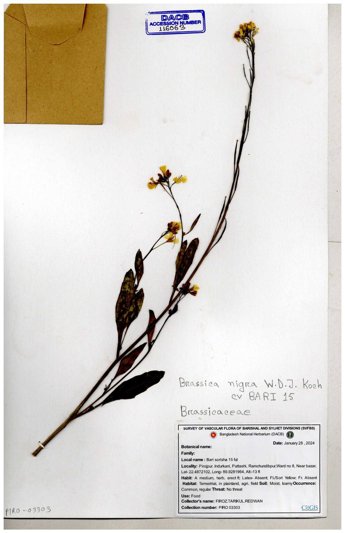 | 8336 | Brassicaceae | Brassica sp | Huq et all | H. 3740 14-01-1978 |