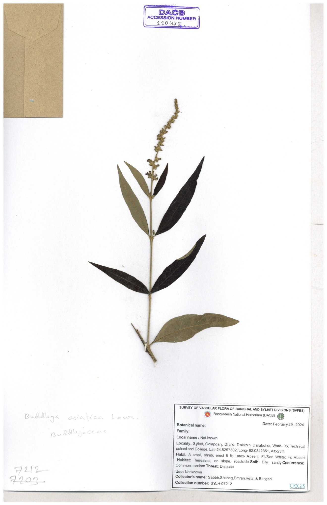 | 63484 | Buddlejaceae | Buddleja asiatica | Niyamul Kabir, Jahid Hasan, Md. Moniruzzaman, Mehedi Hasan | NK-2549 24-01-2017 |