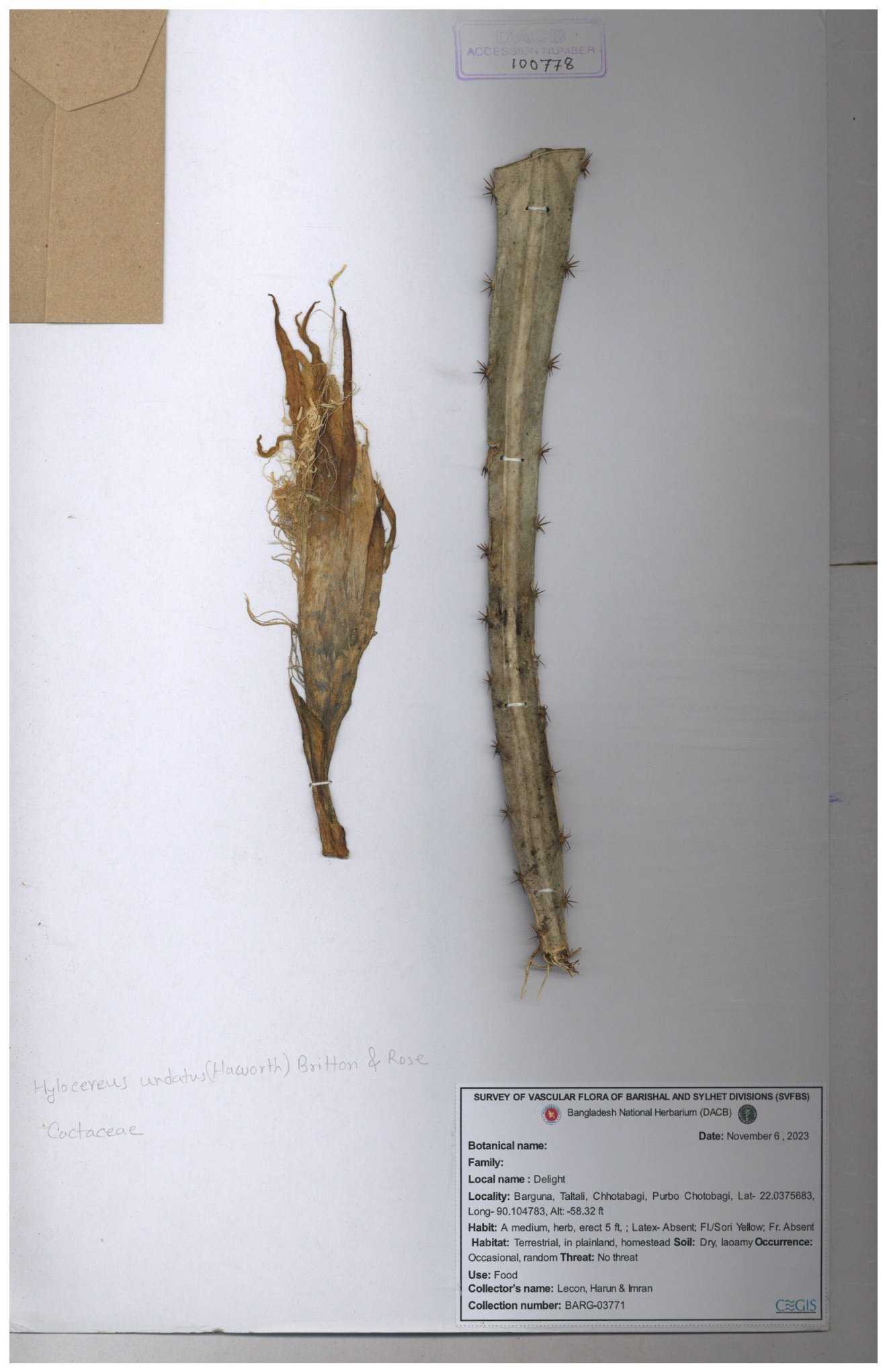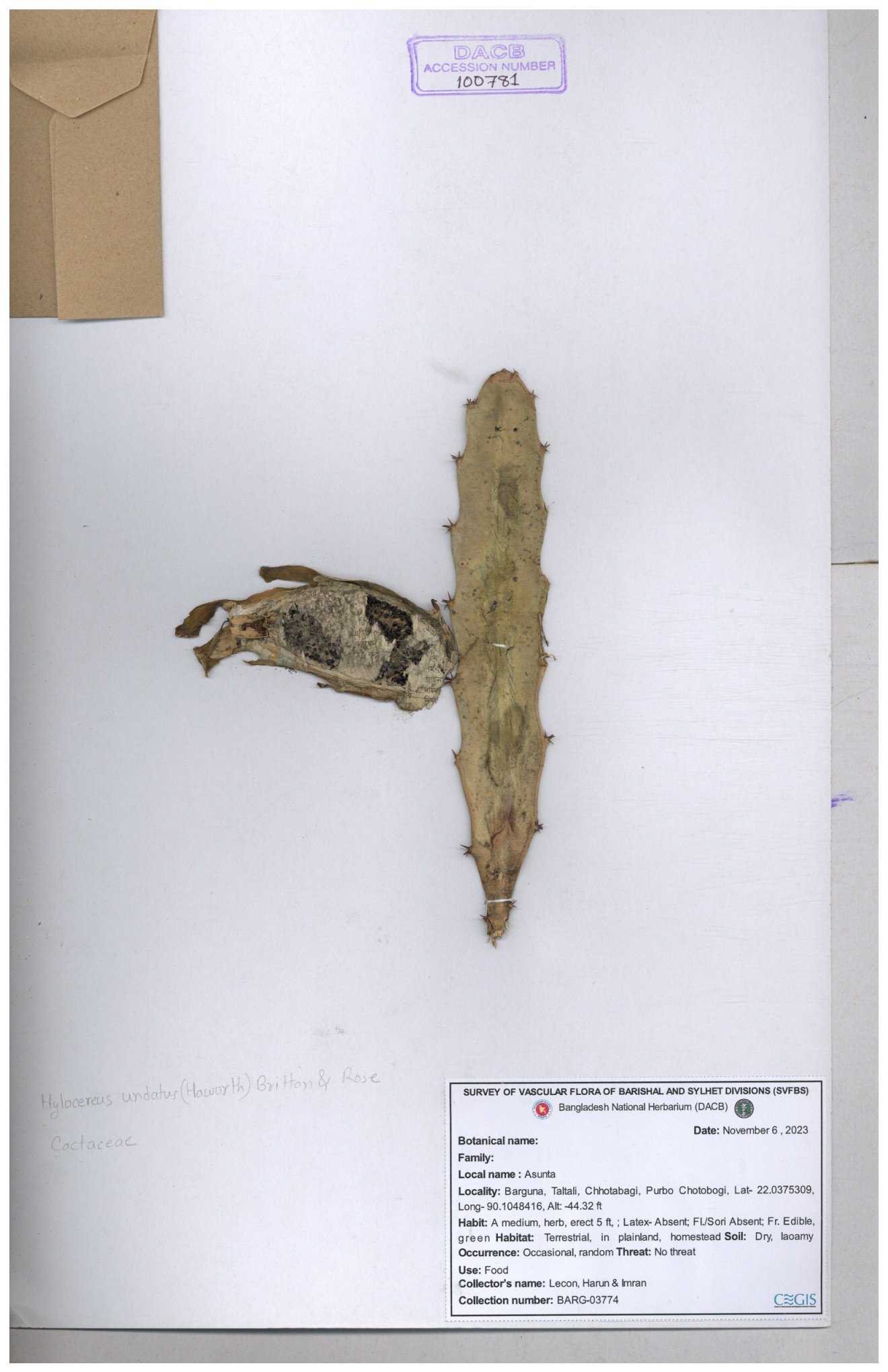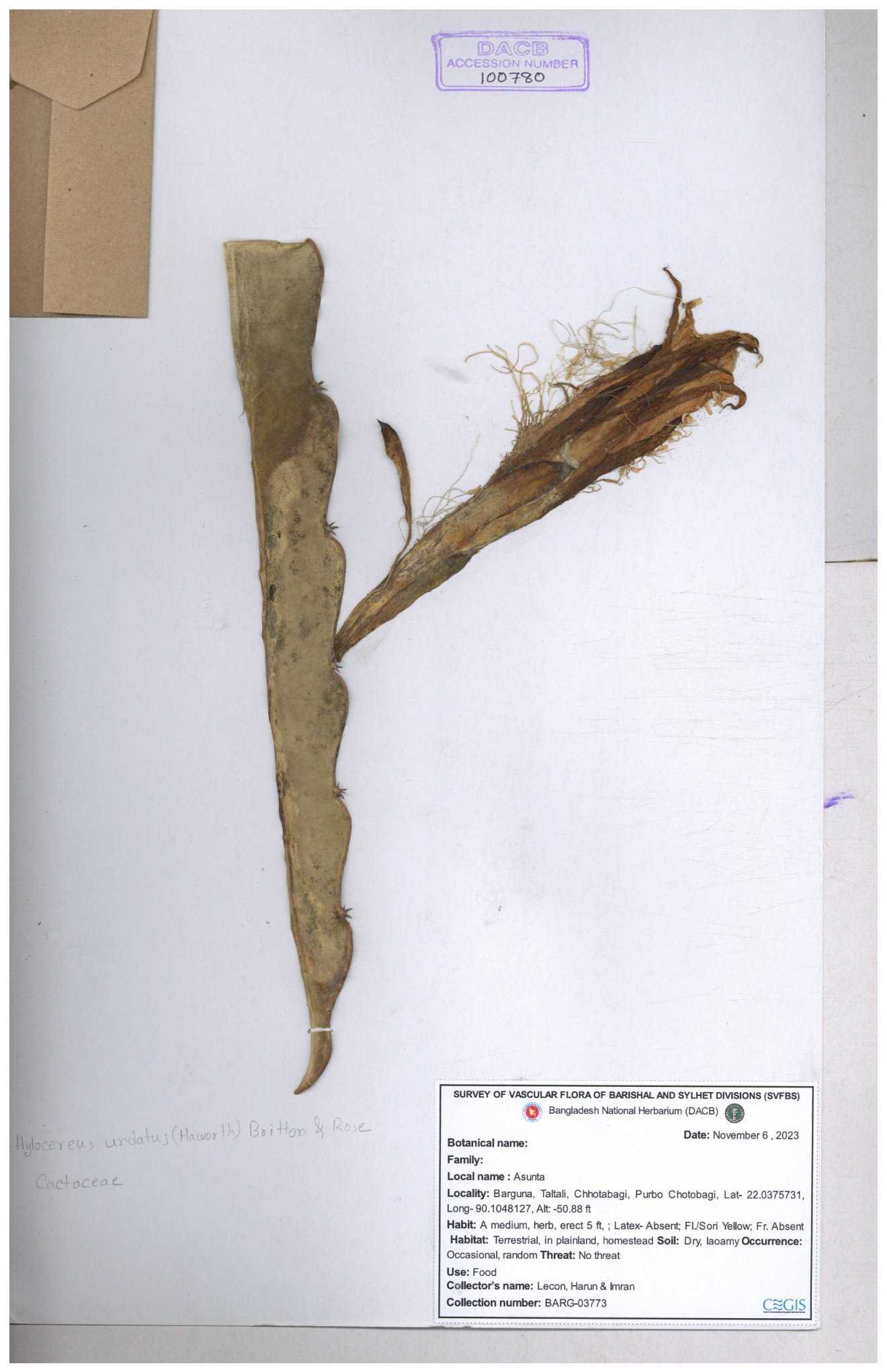 | 100777 | Cactaceae | Hylocereus undatus | 30-11--0001 |