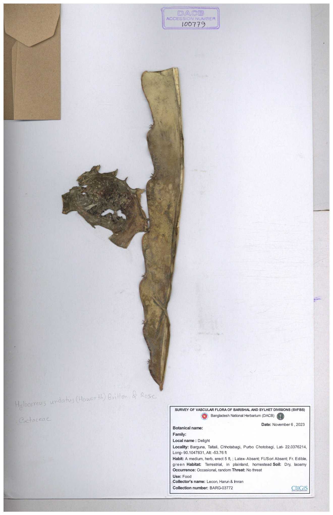 | 100776 | Cactaceae | Hylocereus undatus | 30-11--0001 |