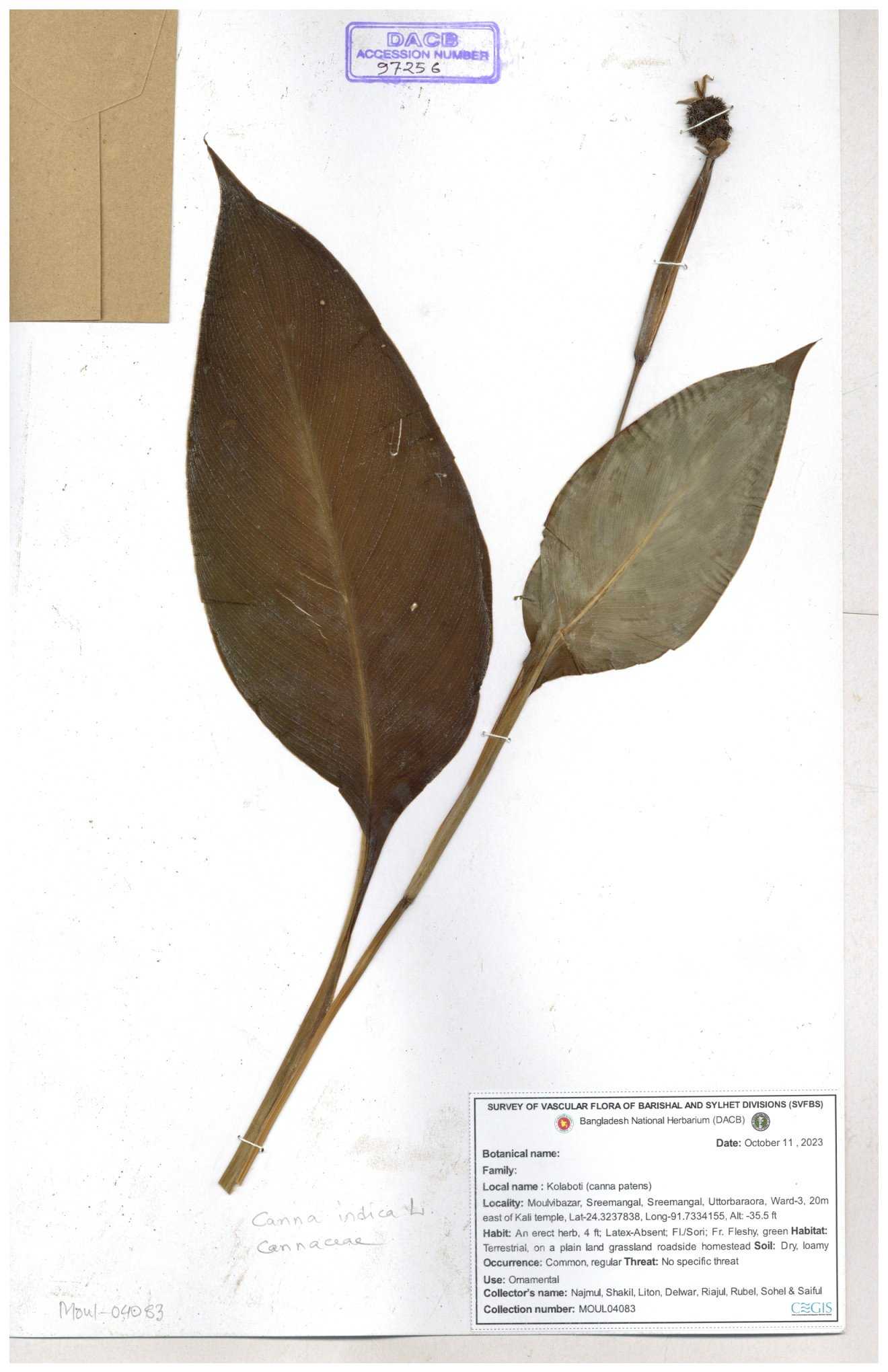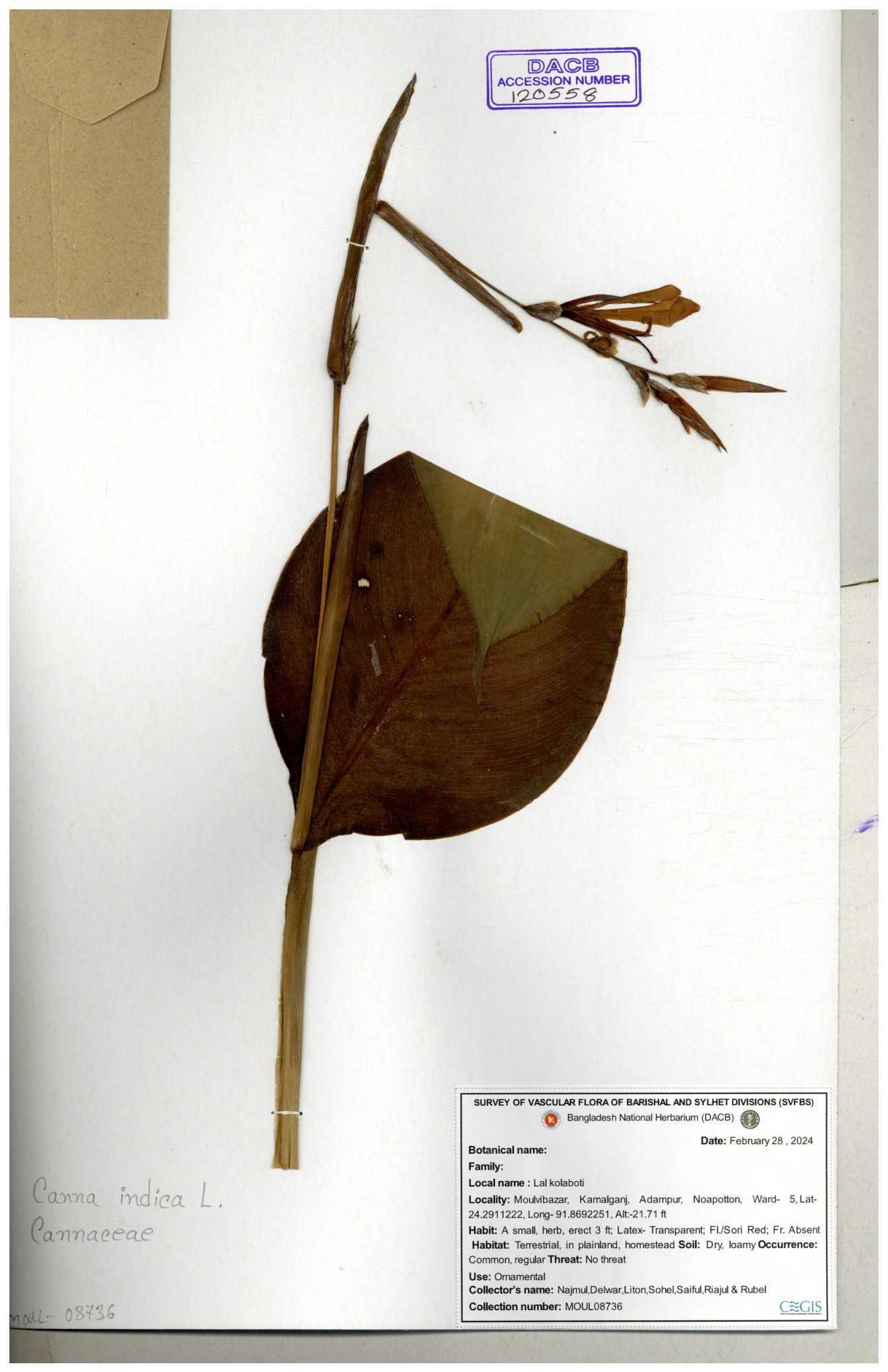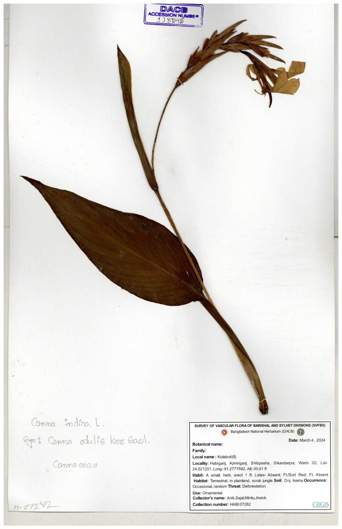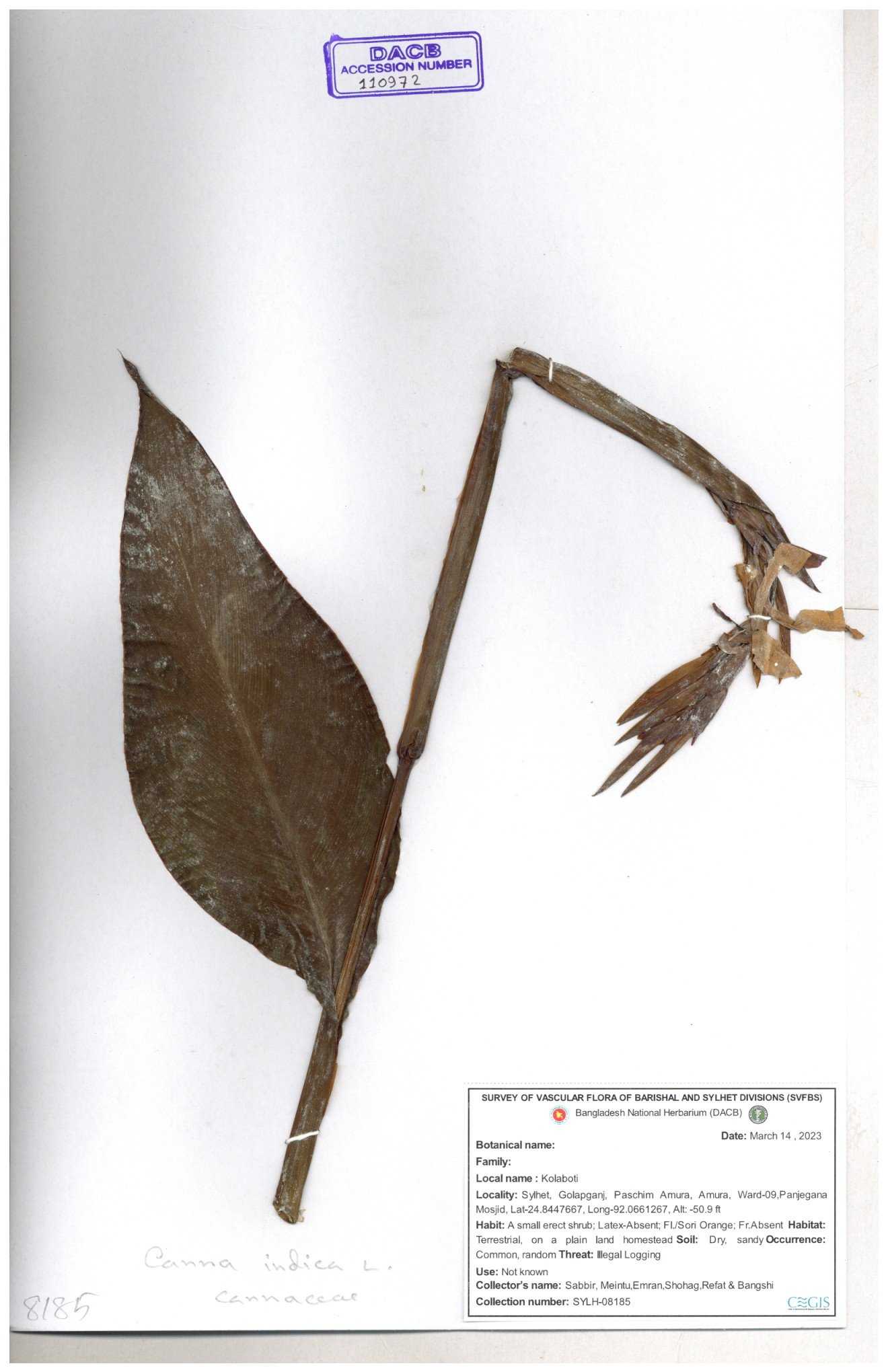 | 80619 | Cannaceae | Canna indica | Iqbal Mahmud | IQ-619 01-03-2017 |