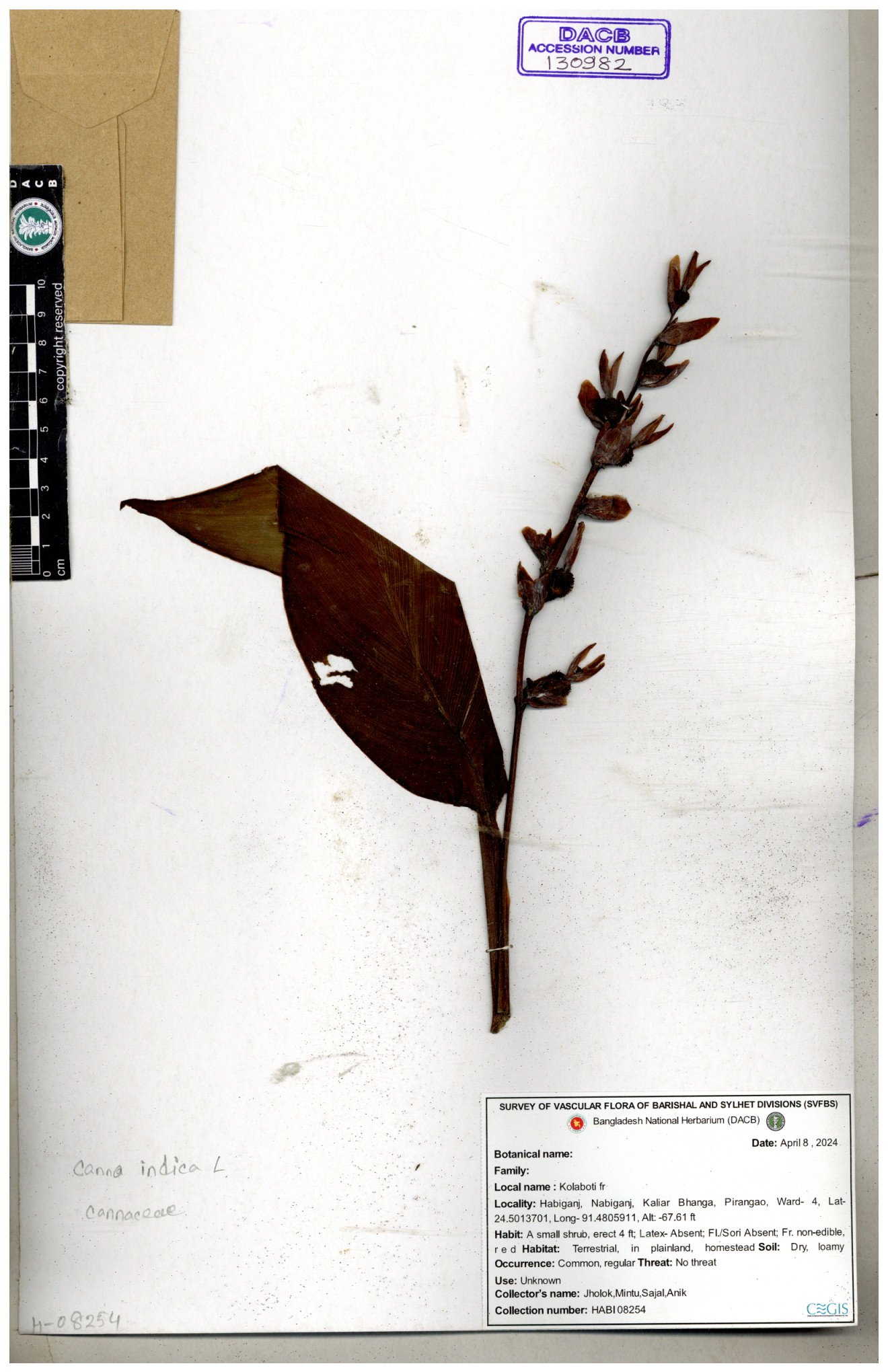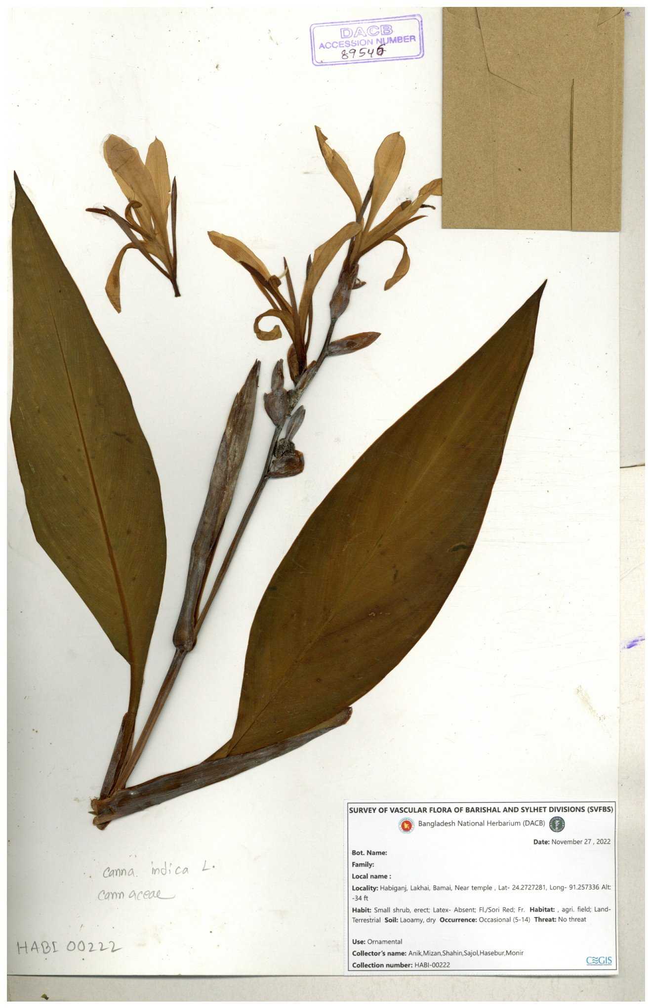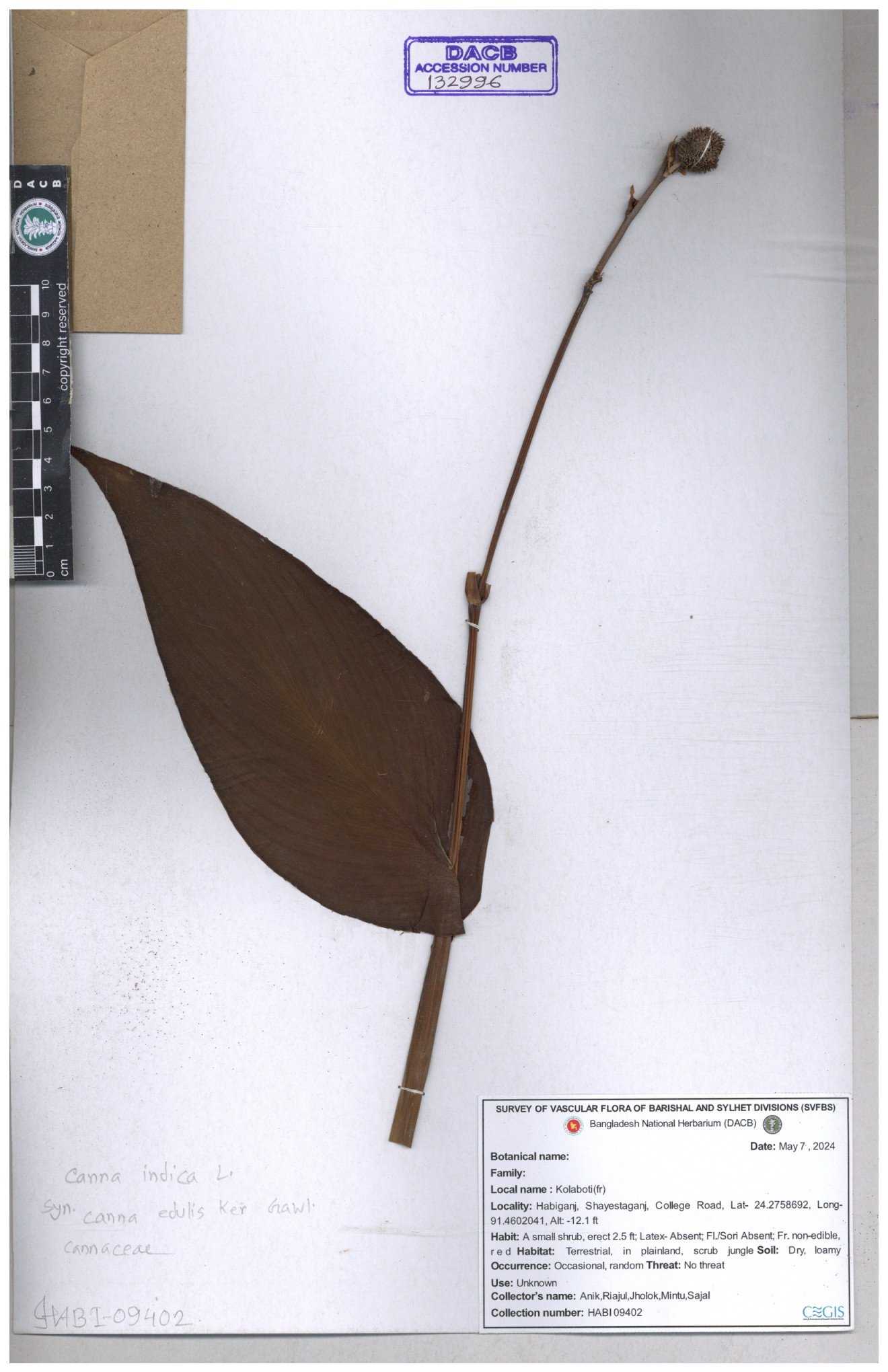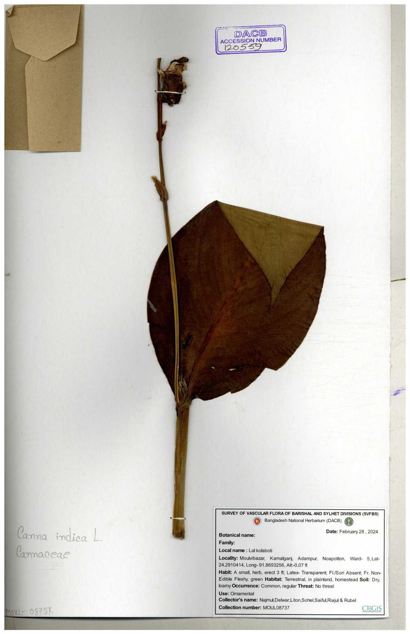 | 80619 | Cannaceae | Canna indica | Iqbal Mahmud | IQ-619 01-03-2017 |