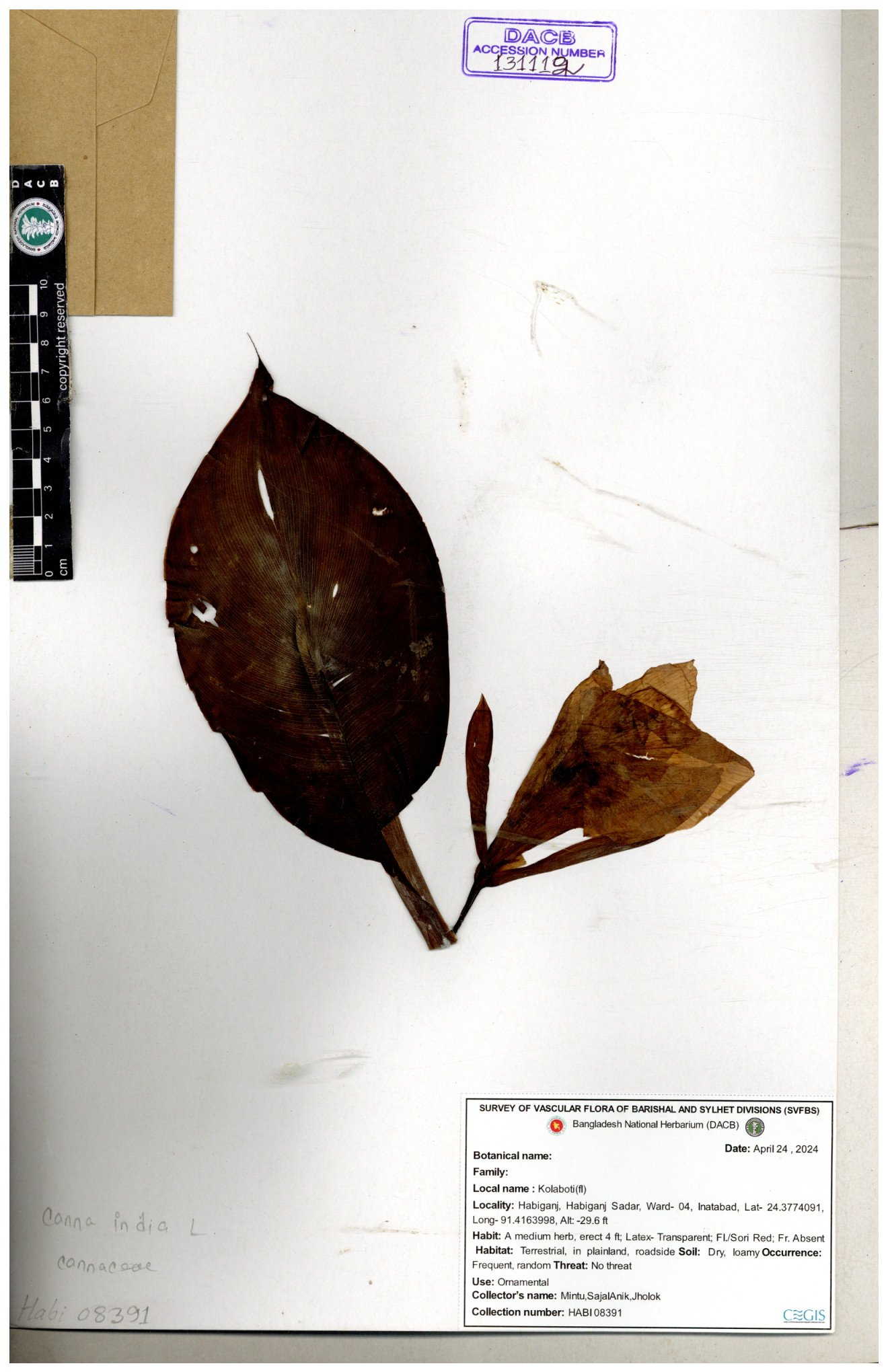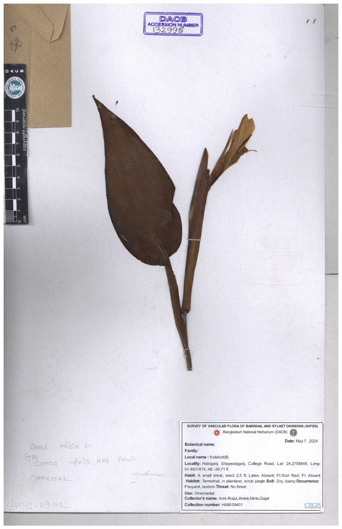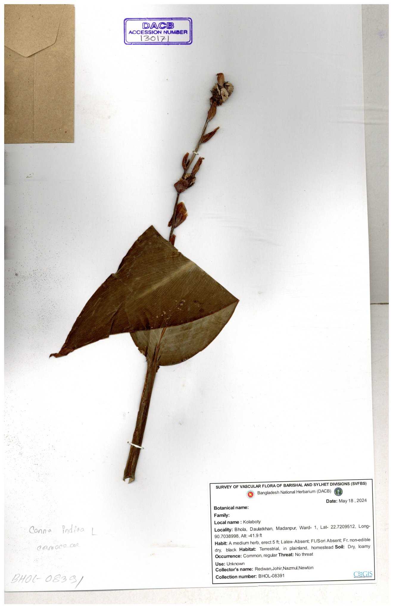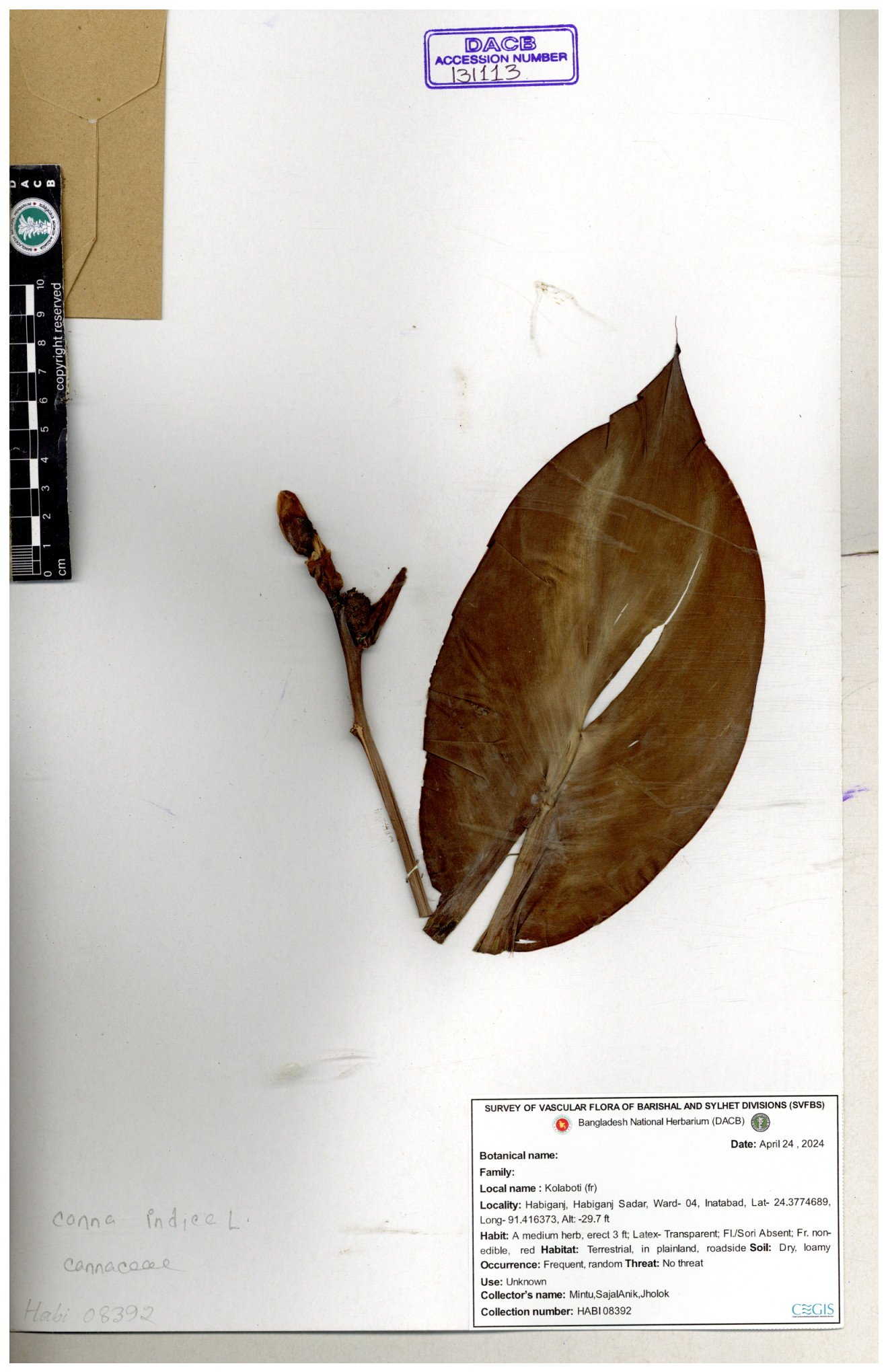 | 80619 | Cannaceae | Canna indica | Iqbal Mahmud | IQ-619 01-03-2017 |